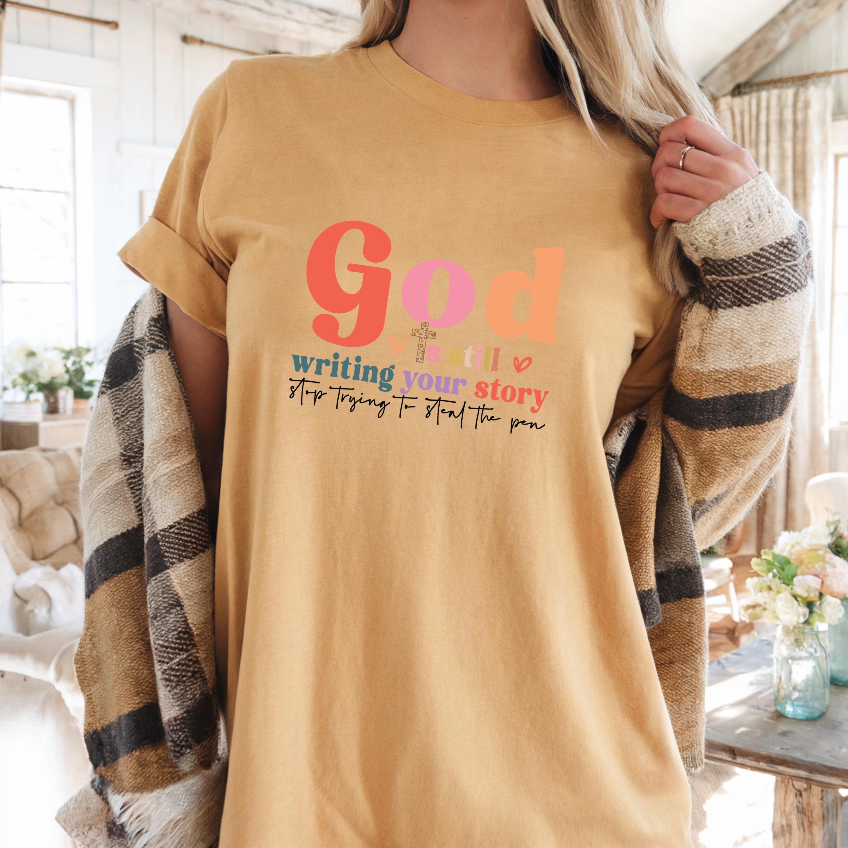 God Is Still Writing Your Story Shirt: Retro Christian Faith Tee Description