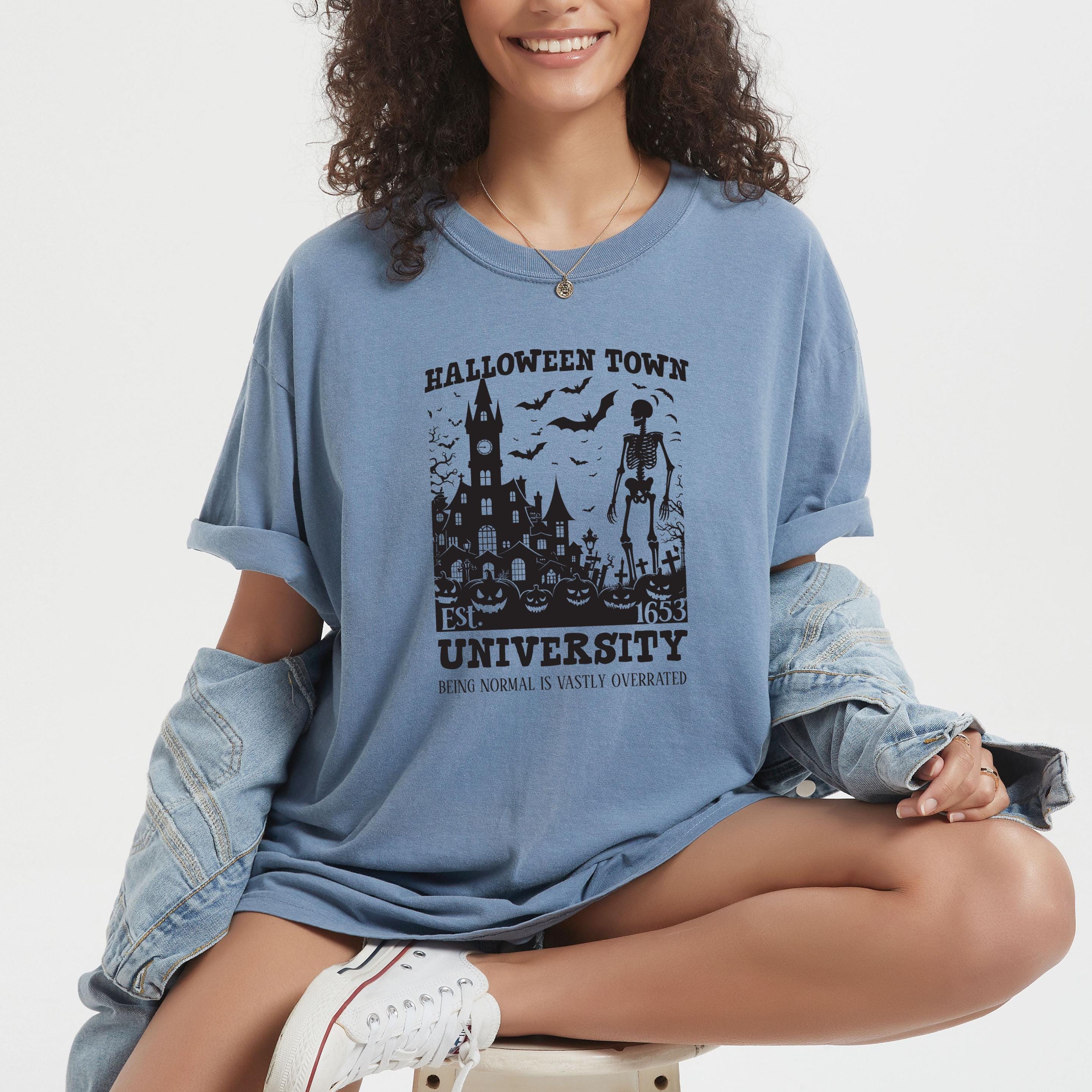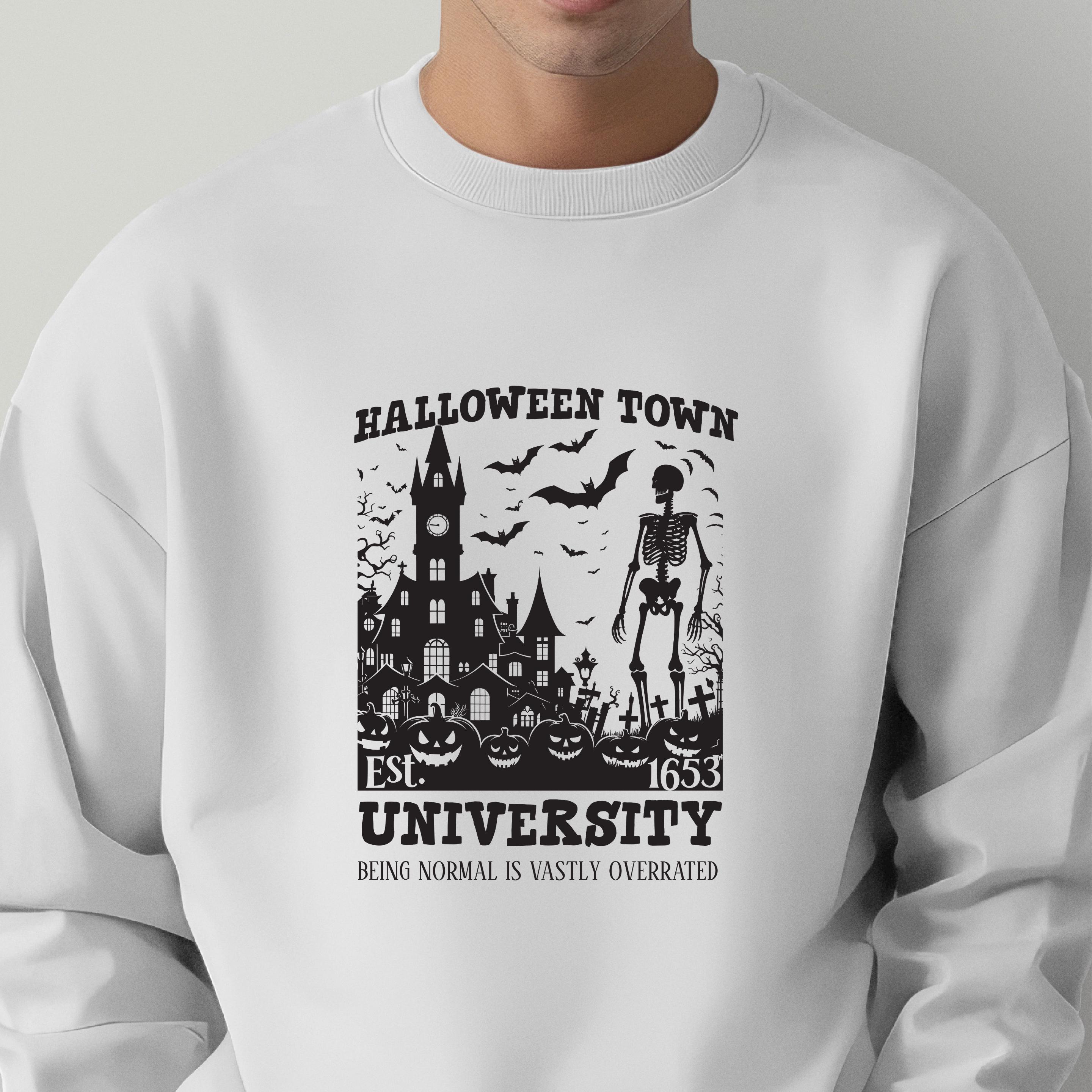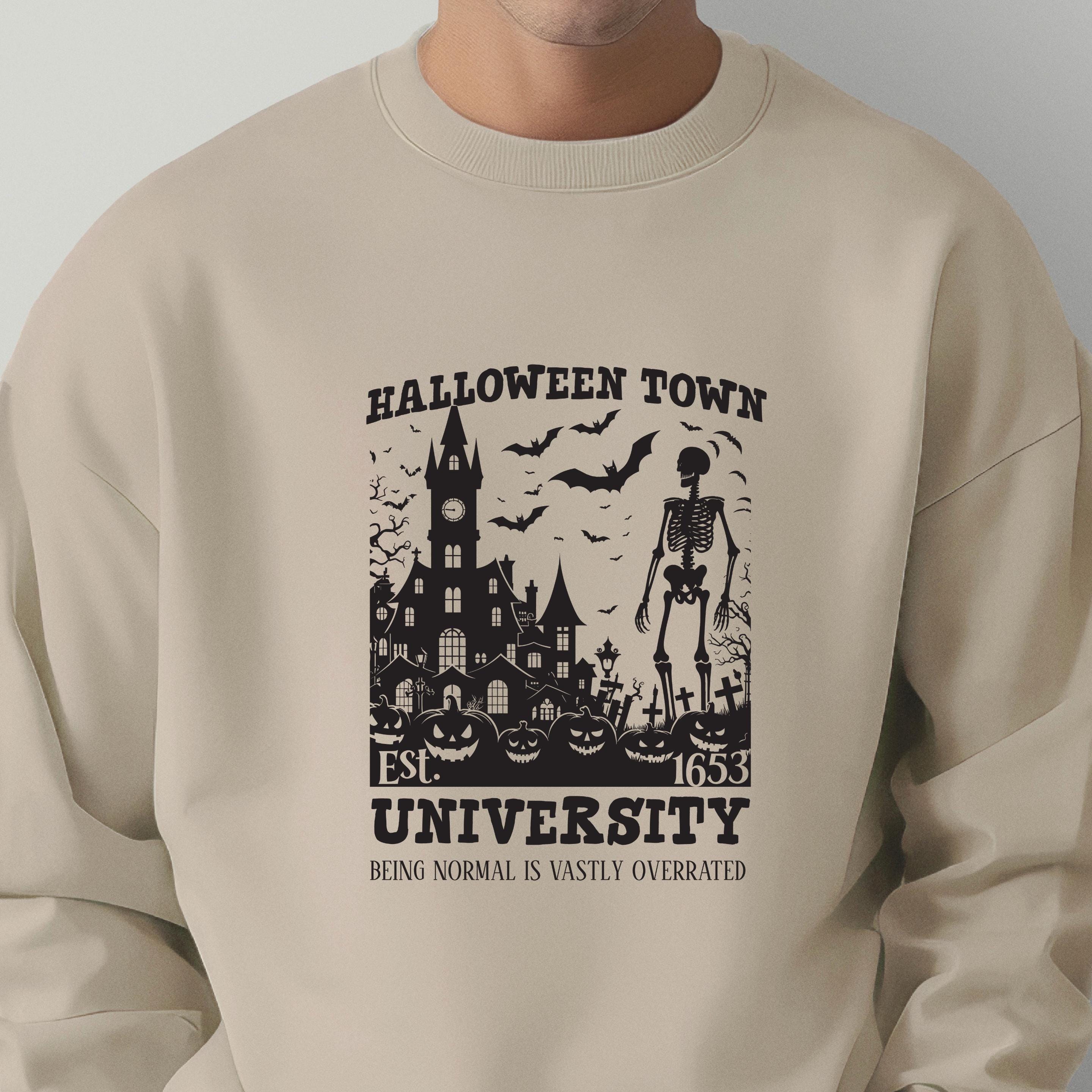 Halloweentown University Sweatshirt: Y2K Fall Pumpkin Design Description 🧵 Product Features: Comfort Colors T-shirts: High-quality unisex t-shirt is made from 100% ring-spun cotton. It’s soft, breathable, and built to last – perfect for everyday wear or special occasion. Gildan Sweatshirt: - Material Type: Polyester, Blends, Cotton/Poly - Unisex style - Gildan brand or any other brand that is available. Customers may make a special request for Gildan.