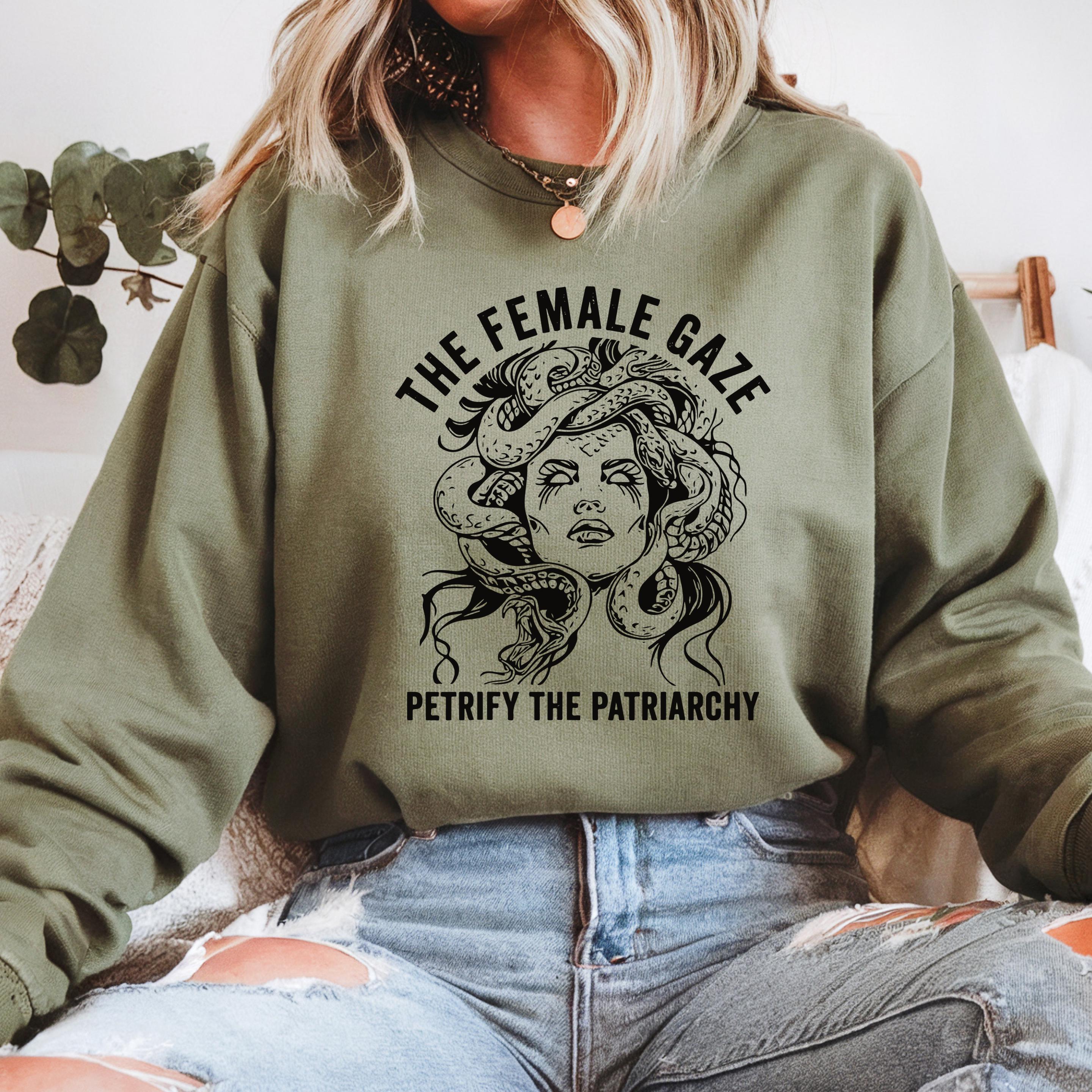 The Female Gaze Petrify the Patriarchy Sweatshirts: Mythologic Medusa Shirt, Greek Mythology Description