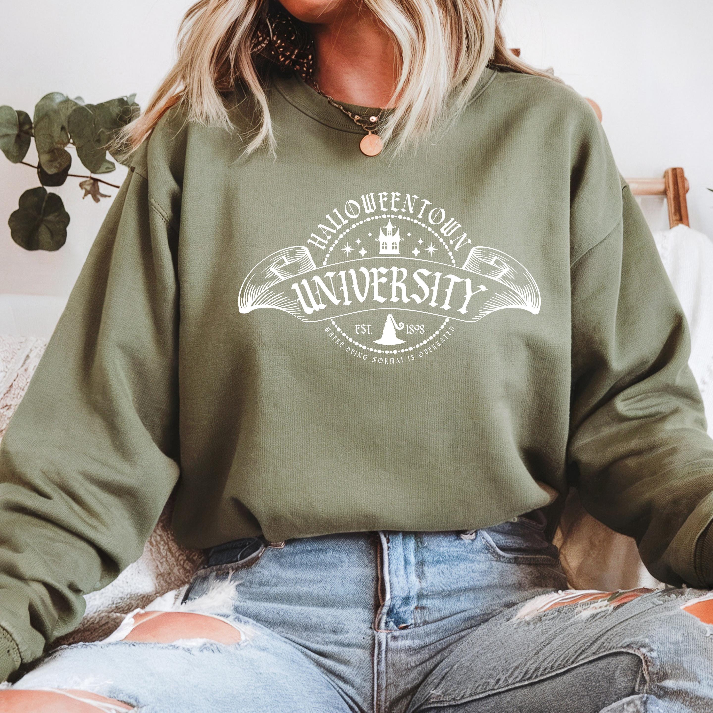 Halloweentown University Sweatshirt Est 1898: Halloween University Shirts 🧵 Product Features Comfort Colors 1717 : -The Comfort Colors 1717 tee is made with medium fabric (6.1 oz/yd² (206.8 g/m²)) consisting of high quality, 100% ring-spun US cotton for long-lasting comfort. - The relaxed fit keeps the wearer comfy in both casual and semi-formal settings while the crew neckline delivers that classic, neat style which makes it perfect for accessorizing. -All Comfort Colors 1717 shirts feature pre-shrunk cotton for size retention and a signature sewn-in twill label. -Made using 100% US cotton that is ethically grown and harvested.