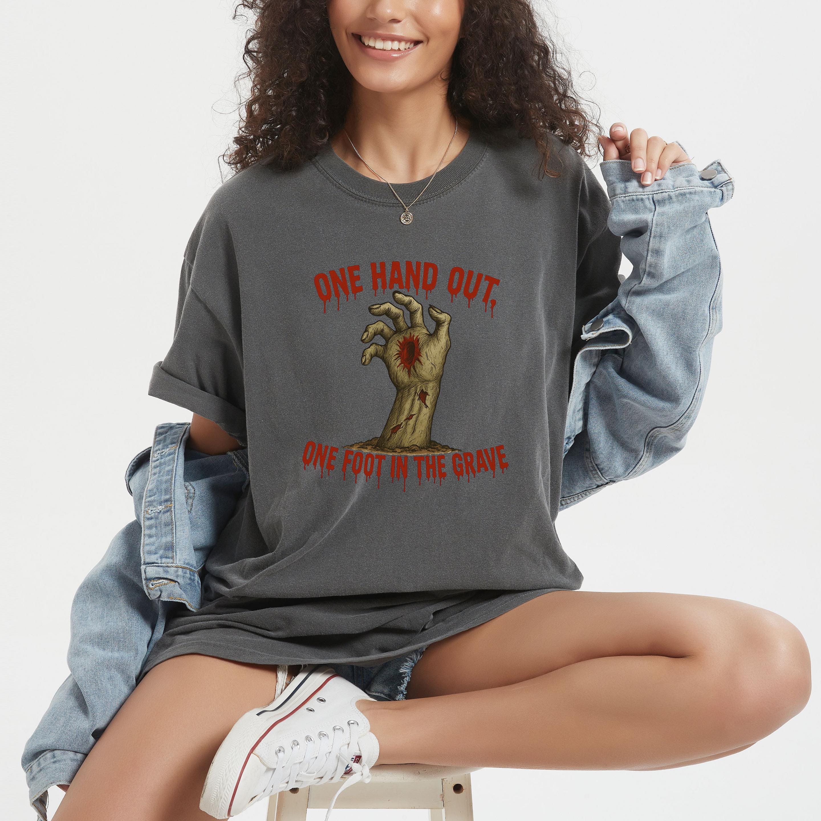 Zombie Hand Grunge Halloween Sweatshirt: Creepy Graphic Tee 🧵 Product Features Comfort Colors 1717 : -The Comfort Colors 1717 tee is made with medium fabric (6.1 oz/yd² (206.8 g/m²)) consisting of high quality, 100% ring-spun US cotton for long-lasting comfort. - The relaxed fit keeps the wearer comfy in both casual and semi-formal settings while the crew neckline delivers that classic, neat style which makes it perfect for accessorizing. -All Comfort Colors 1717 shirts feature pre-shrunk cotton for size retention and a signature sewn-in twill label. -Made using 100% US cotton that is ethically grown and harvested.