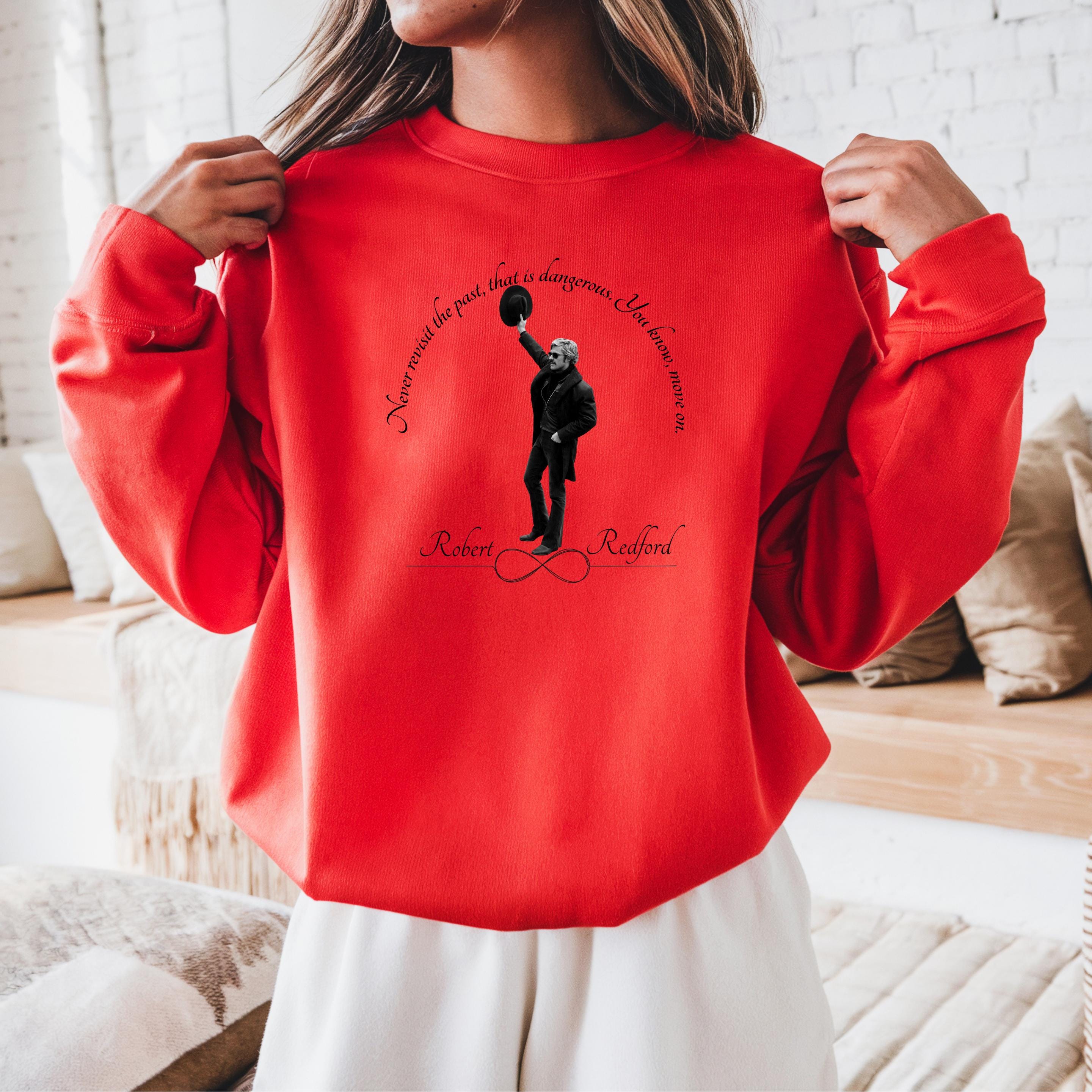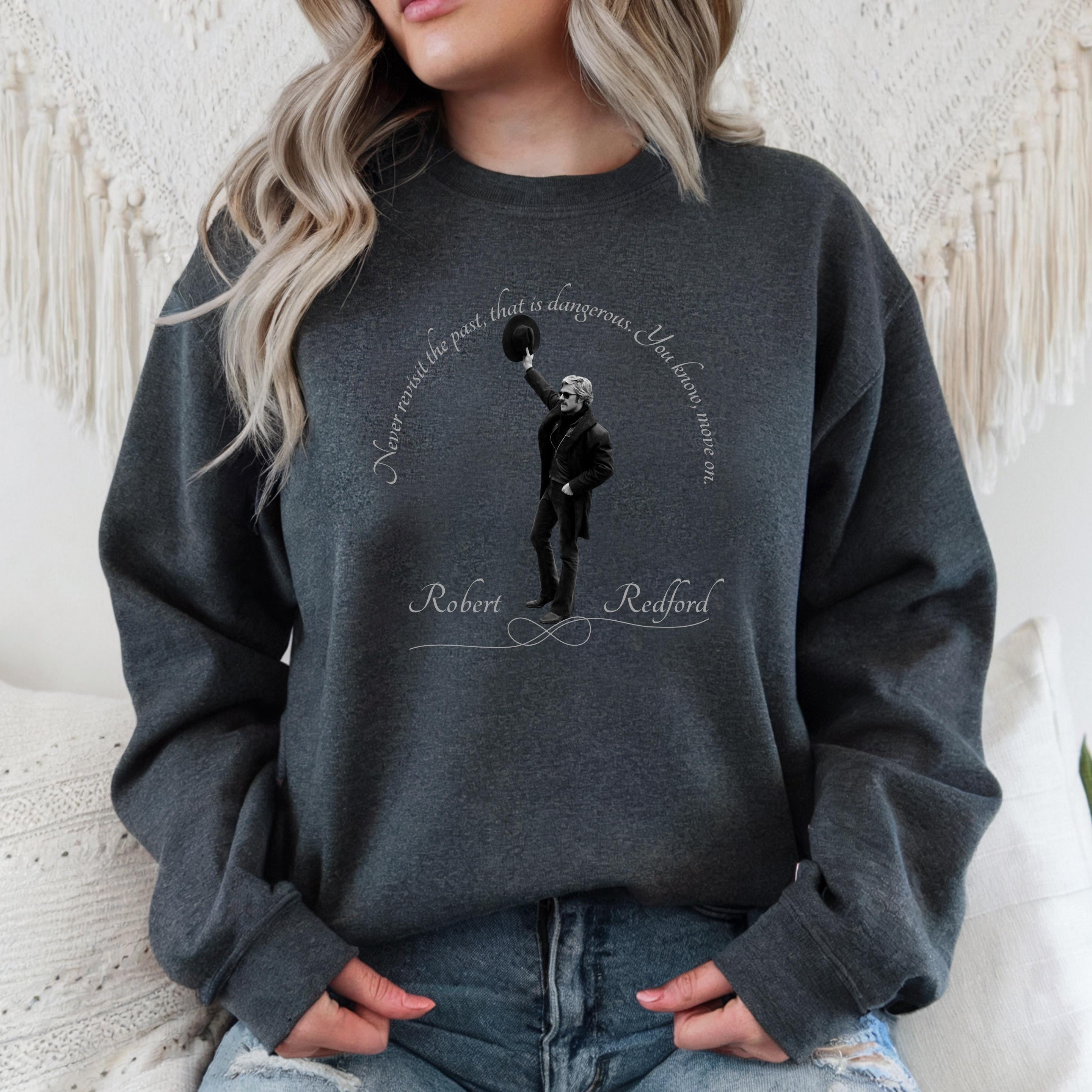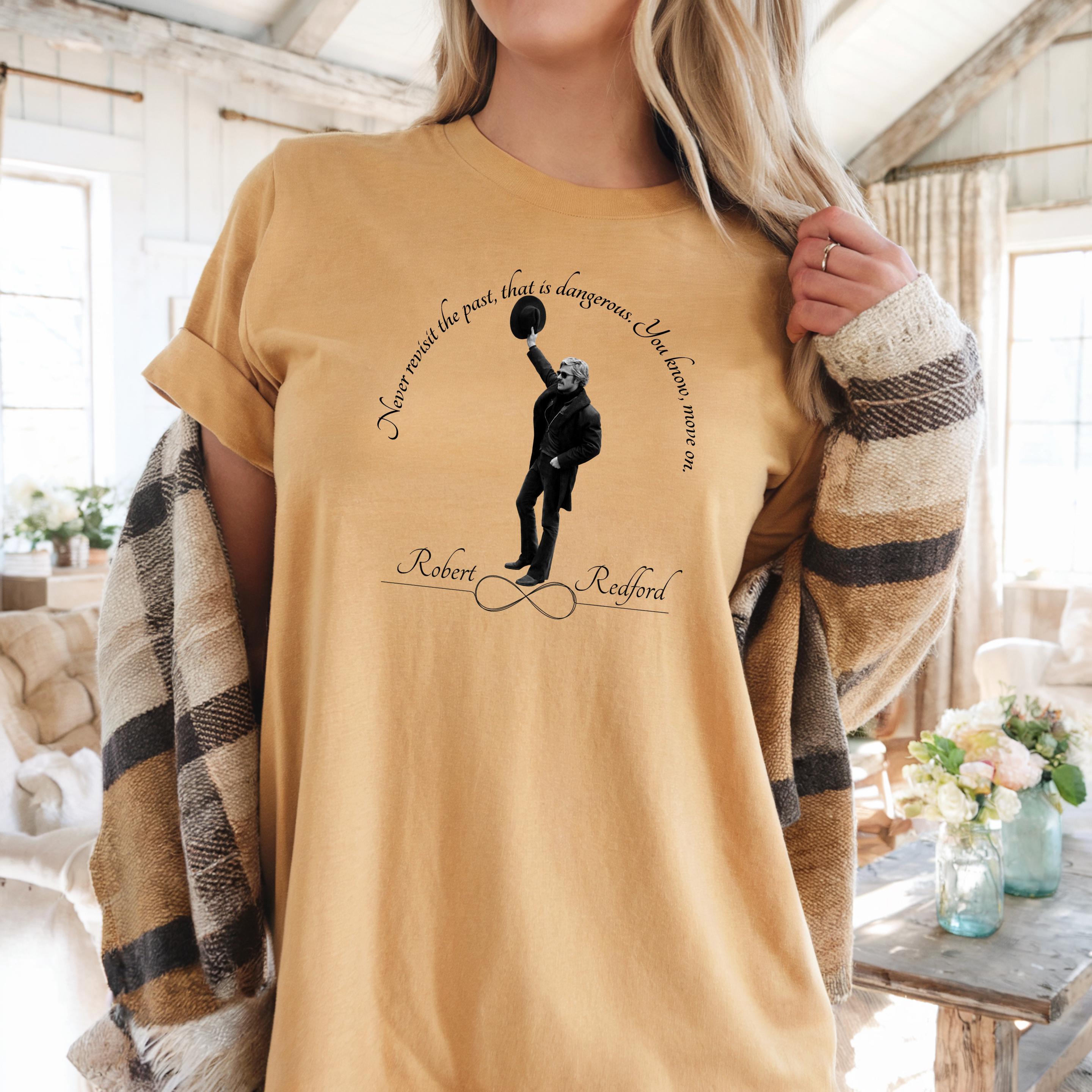 Celebrate timeless wisdom and effortless vintage style with this elegant Robert Redford Quote T-Shirt. Featuring a beautifully arched handwritten-style quote above an iconic full-body silhouette of Robert Redford, this design blends classic Hollywood charm with a meaningful message: