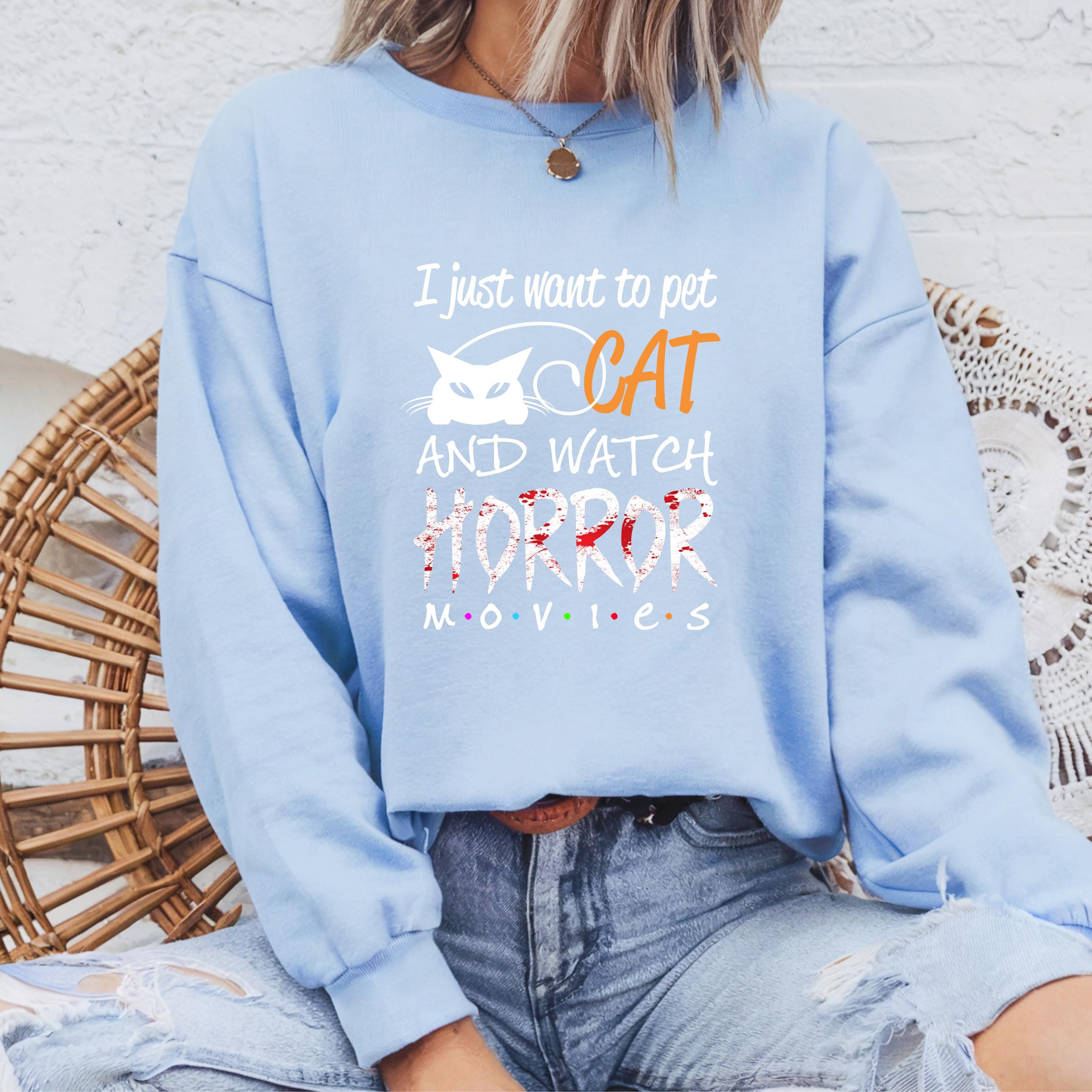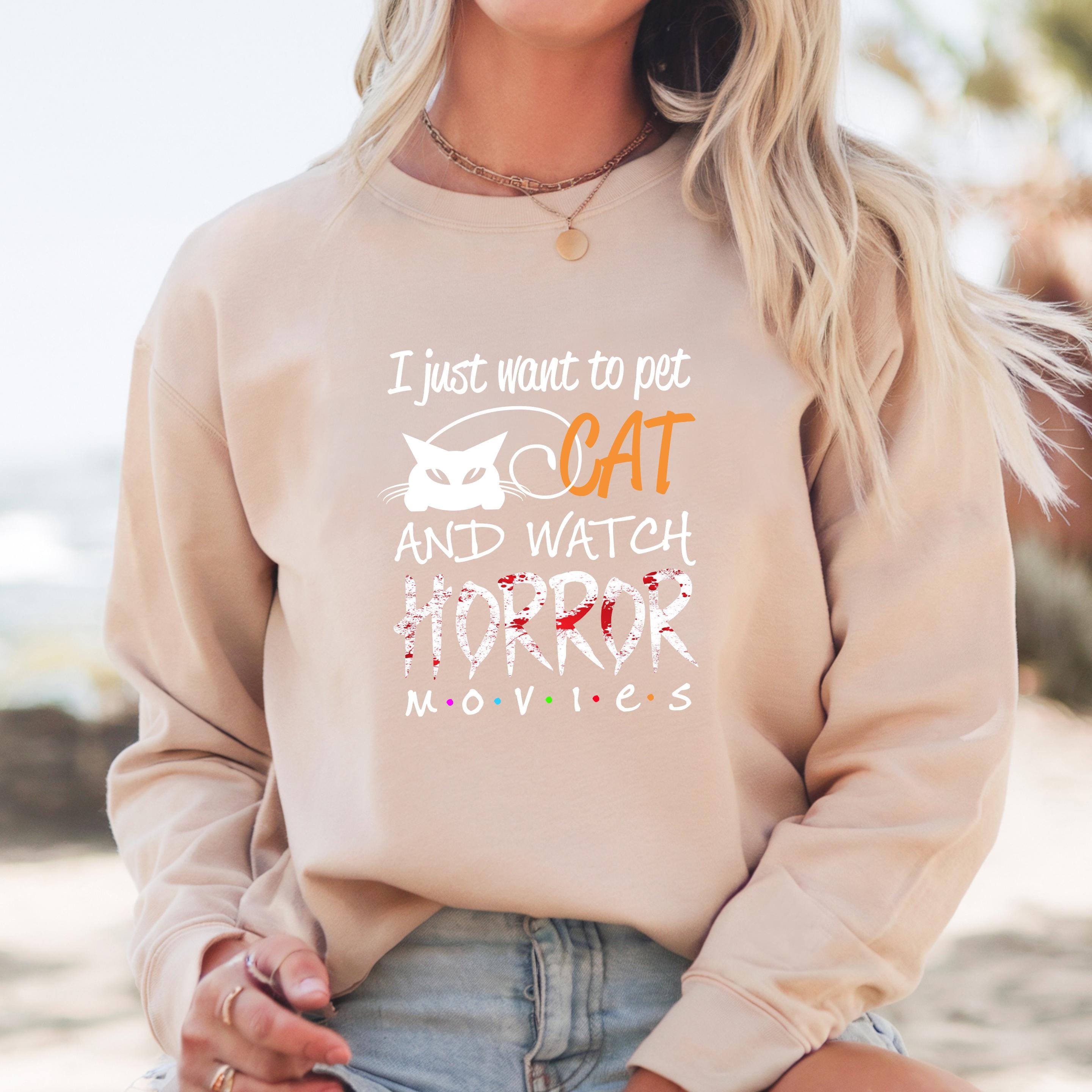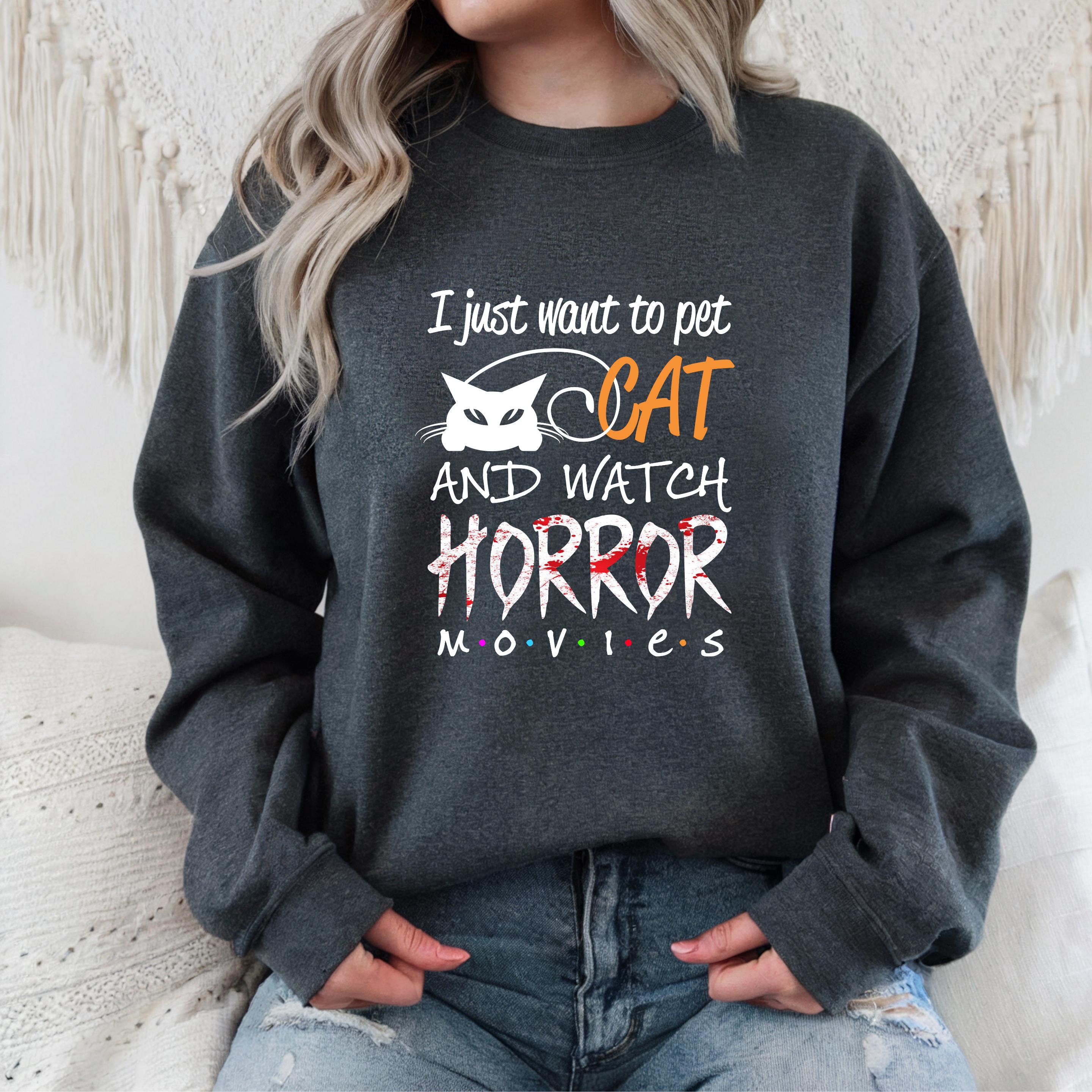 Pet Cats & Horror Movies Sweatshirt: Unisex Cotton Tee 🧵 Product Features Comfort Colors 1717 : -The Comfort Colors 1717 tee is made with medium fabric (6.1 oz/yd² (206.8 g/m²)) consisting of high quality, 100% ring-spun US cotton for long-lasting comfort. - The relaxed fit keeps the wearer comfy in both casual and semi-formal settings while the crew neckline delivers that classic, neat style which makes it perfect for accessorizing. -All Comfort Colors 1717 shirts feature pre-shrunk cotton for size retention and a signature sewn-in twill label. -Made using 100% US cotton that is ethically grown and harvested.