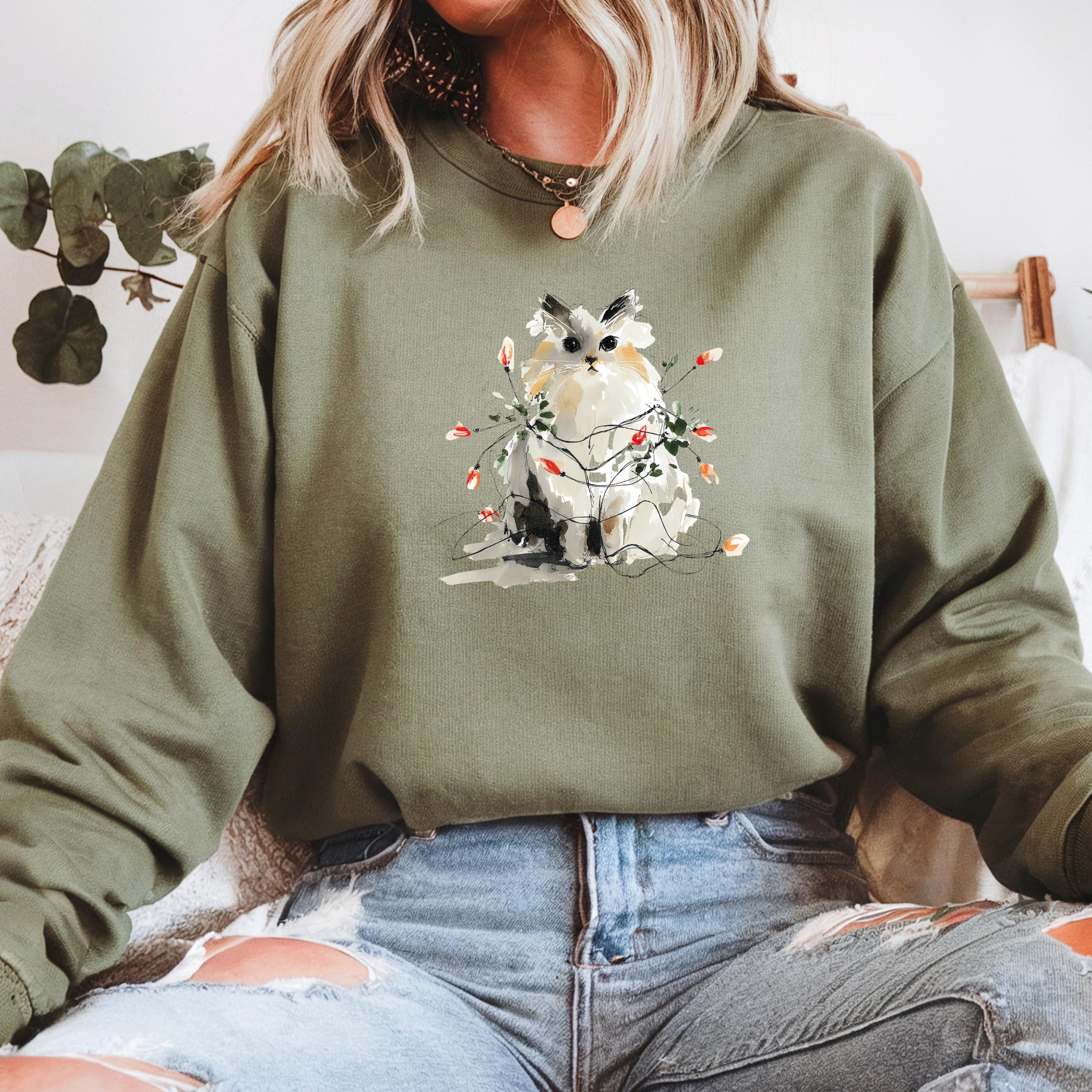 Meowy Christmas Boho Cats Sweatshirt: Christmas Winter Motif Tshirt 🧵 Product Features Comfort Colors 1717 : -The Comfort Colors 1717 tee is made with medium fabric (6.1 oz/yd² (206.8 g/m²)) consisting of high quality, 100% ring-spun US cotton for long-lasting comfort. - The relaxed fit keeps the wearer comfy in both casual and semi-formal settings while the crew neckline delivers that classic, neat style which makes it perfect for accessorizing. -All Comfort Colors 1717 shirts feature pre-shrunk cotton for size retention and a signature sewn-in twill label. -Made using 100% US cotton that is ethically grown and harvested.