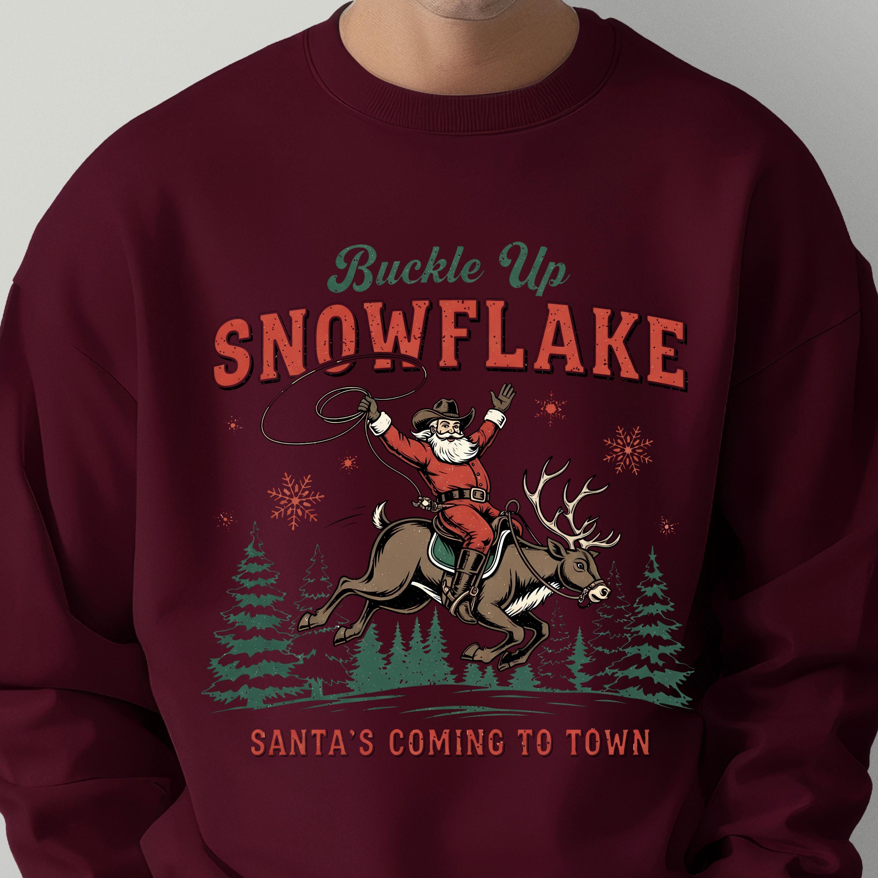 Cowboy Santa Christmas Sweatshirt: Santa's Coming To Town T-shirt, Buckle Up Hoodie 🧵 Product Features Comfort Colors 1717 : -The Comfort Colors 1717 tee is made with medium fabric (6.1 oz/yd² (206.8 g/m²)) consisting of high quality, 100% ring-spun US cotton for long-lasting comfort. - The relaxed fit keeps the wearer comfy in both casual and semi-formal settings while the crew neckline delivers that classic, neat style which makes it perfect for accessorizing. -All Comfort Colors 1717 shirts feature pre-shrunk cotton for size retention and a signature sewn-in twill label. -Made using 100% US cotton that is ethically grown and harvested.