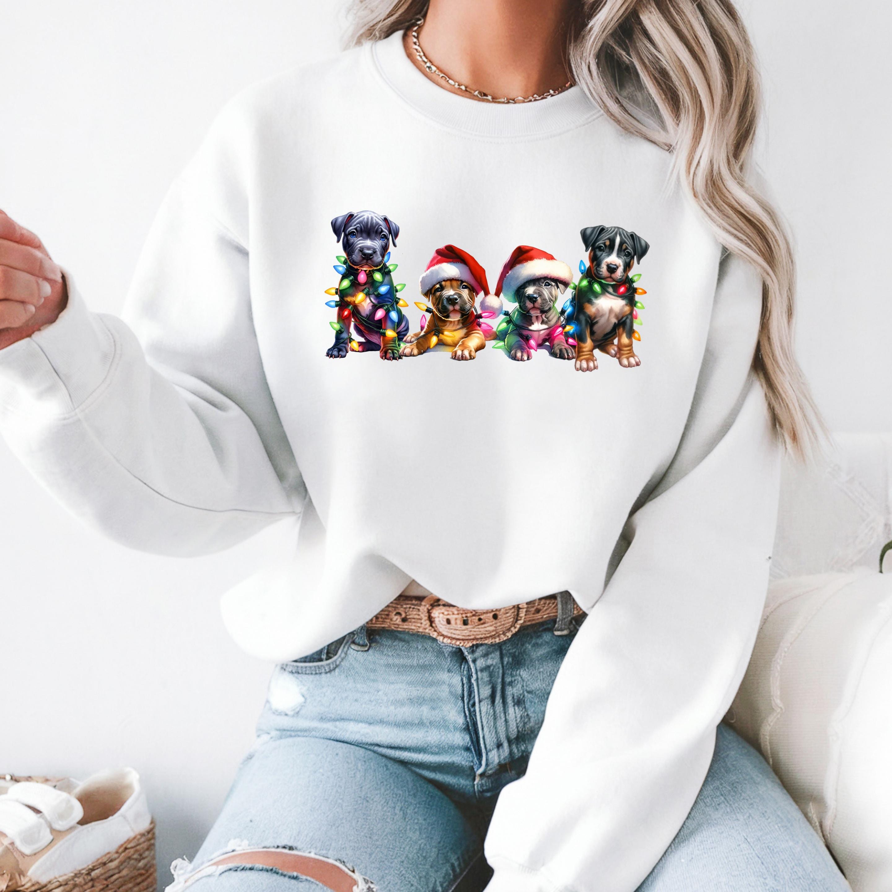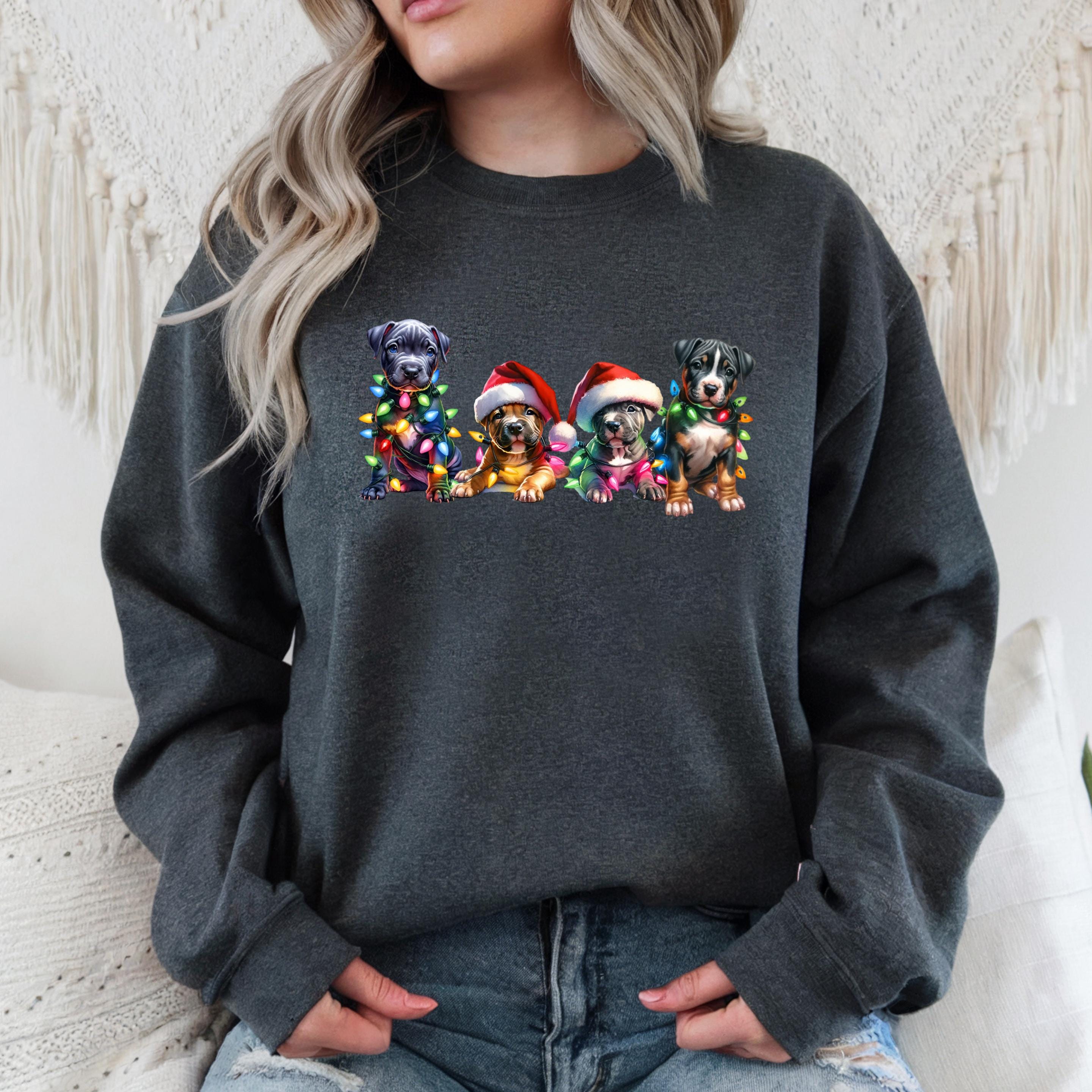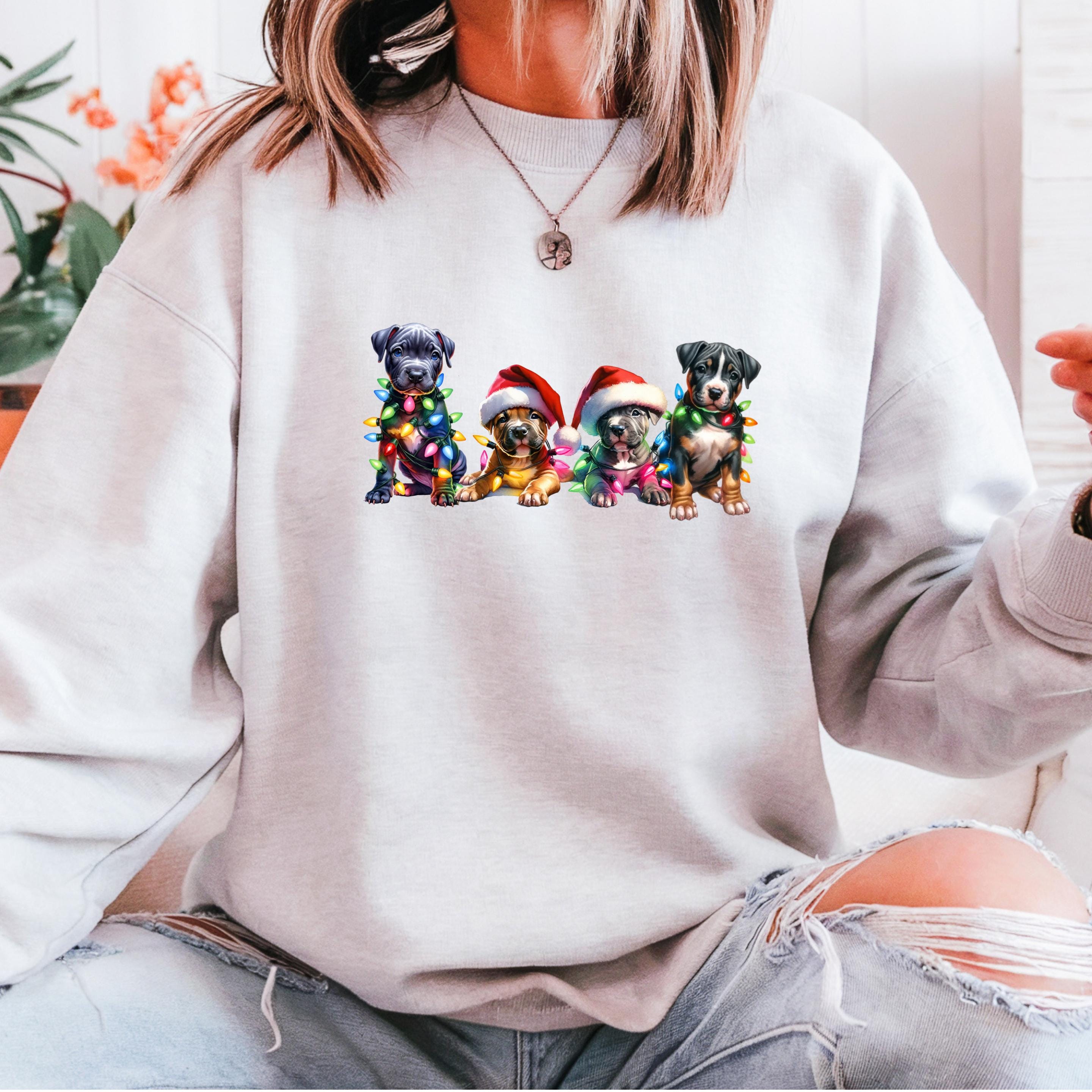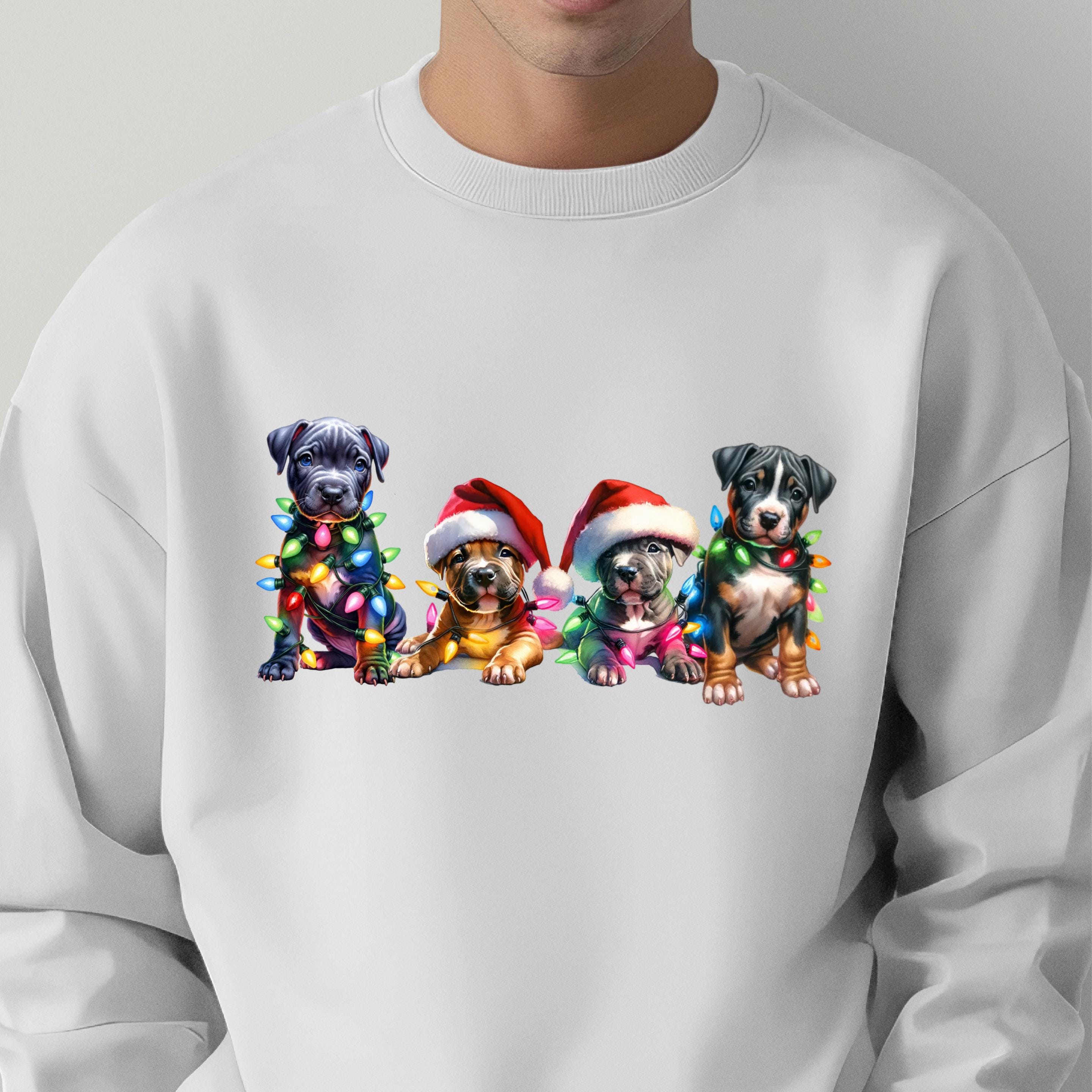 Christmas Pitbull Puppy Sweatshirt: Funny Pitbull Hoodie and Shirts 🧵 Product Features Comfort Colors 1717 : -The Comfort Colors 1717 tee is made with medium fabric (6.1 oz/yd² (206.8 g/m²)) consisting of high quality, 100% ring-spun US cotton for long-lasting comfort. - The relaxed fit keeps the wearer comfy in both casual and semi-formal settings while the crew neckline delivers that classic, neat style which makes it perfect for accessorizing. -All Comfort Colors 1717 shirts feature pre-shrunk cotton for size retention and a signature sewn-in twill label. -Made using 100% US cotton that is ethically grown and harvested.