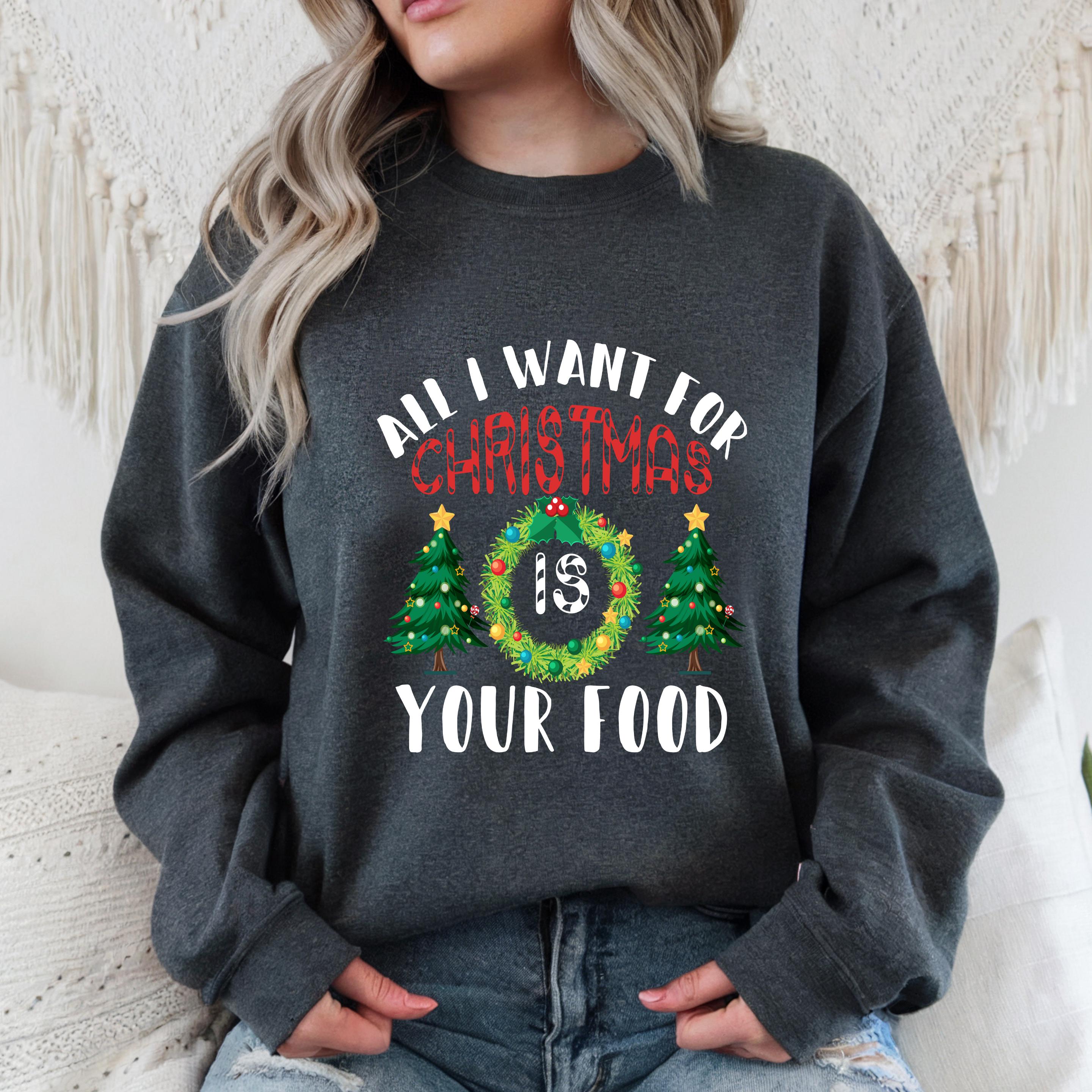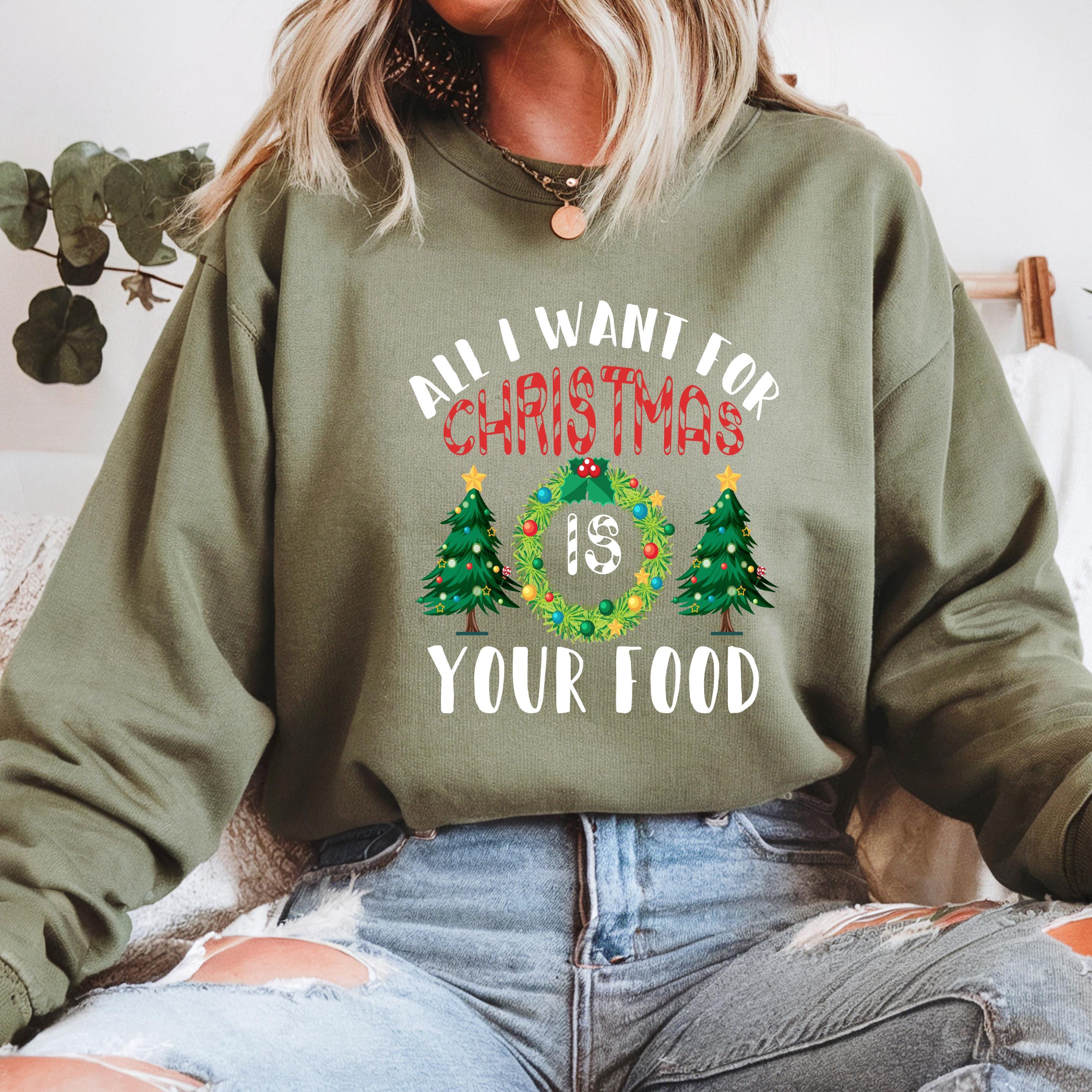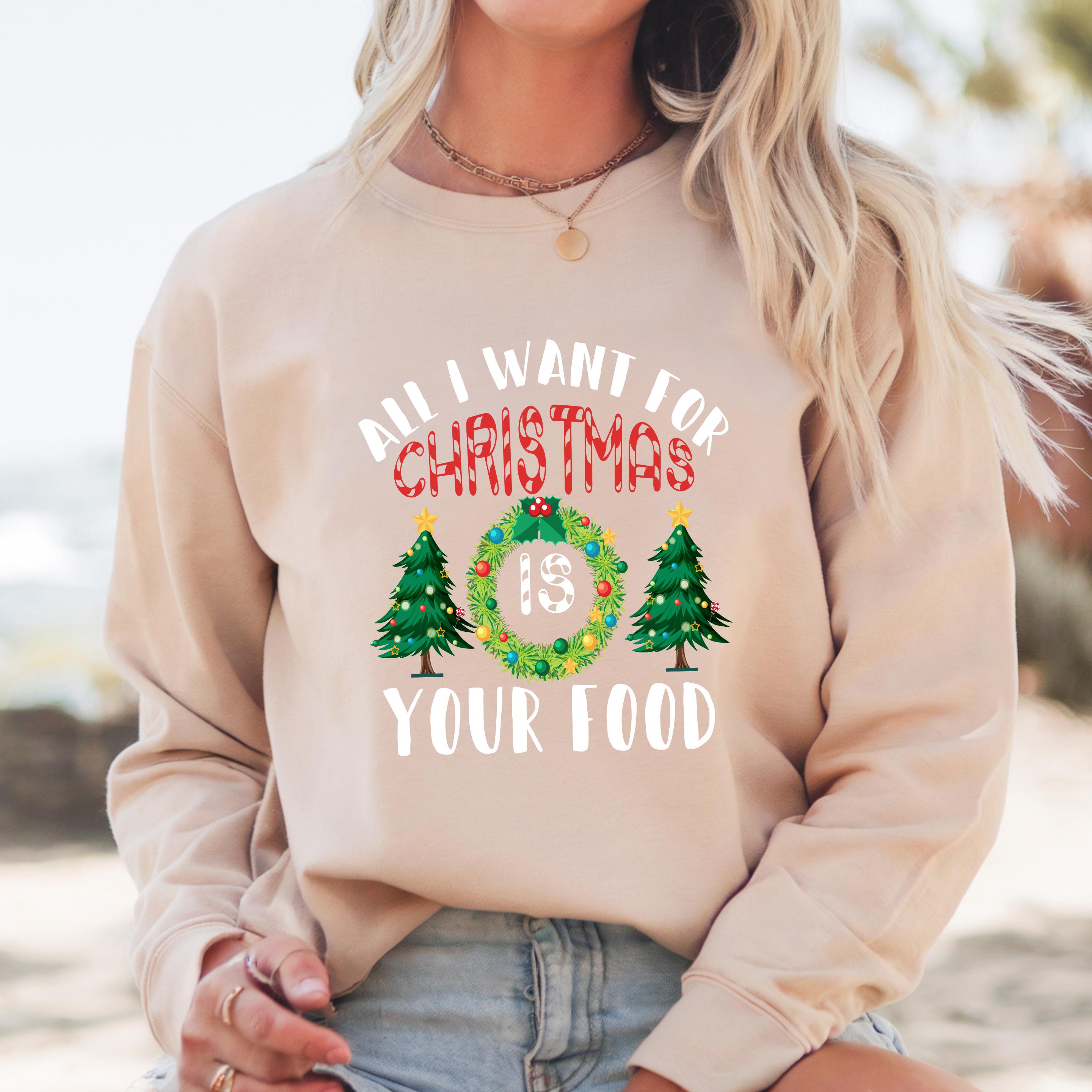 All l Want for Christmas is Your Food Sweatshirt: Christmas Dinner Hoodie & Comfort Colors Shirt 🧵 Product Features Comfort Colors 1717 : -The Comfort Colors 1717 tee is made with medium fabric (6.1 oz/yd² (206.8 g/m²)) consisting of high quality, 100% ring-spun US cotton for long-lasting comfort. - The relaxed fit keeps the wearer comfy in both casual and semi-formal settings while the crew neckline delivers that classic, neat style which makes it perfect for accessorizing. -All Comfort Colors 1717 shirts feature pre-shrunk cotton for size retention and a signature sewn-in twill label. -Made using 100% US cotton that is ethically grown and harvested.