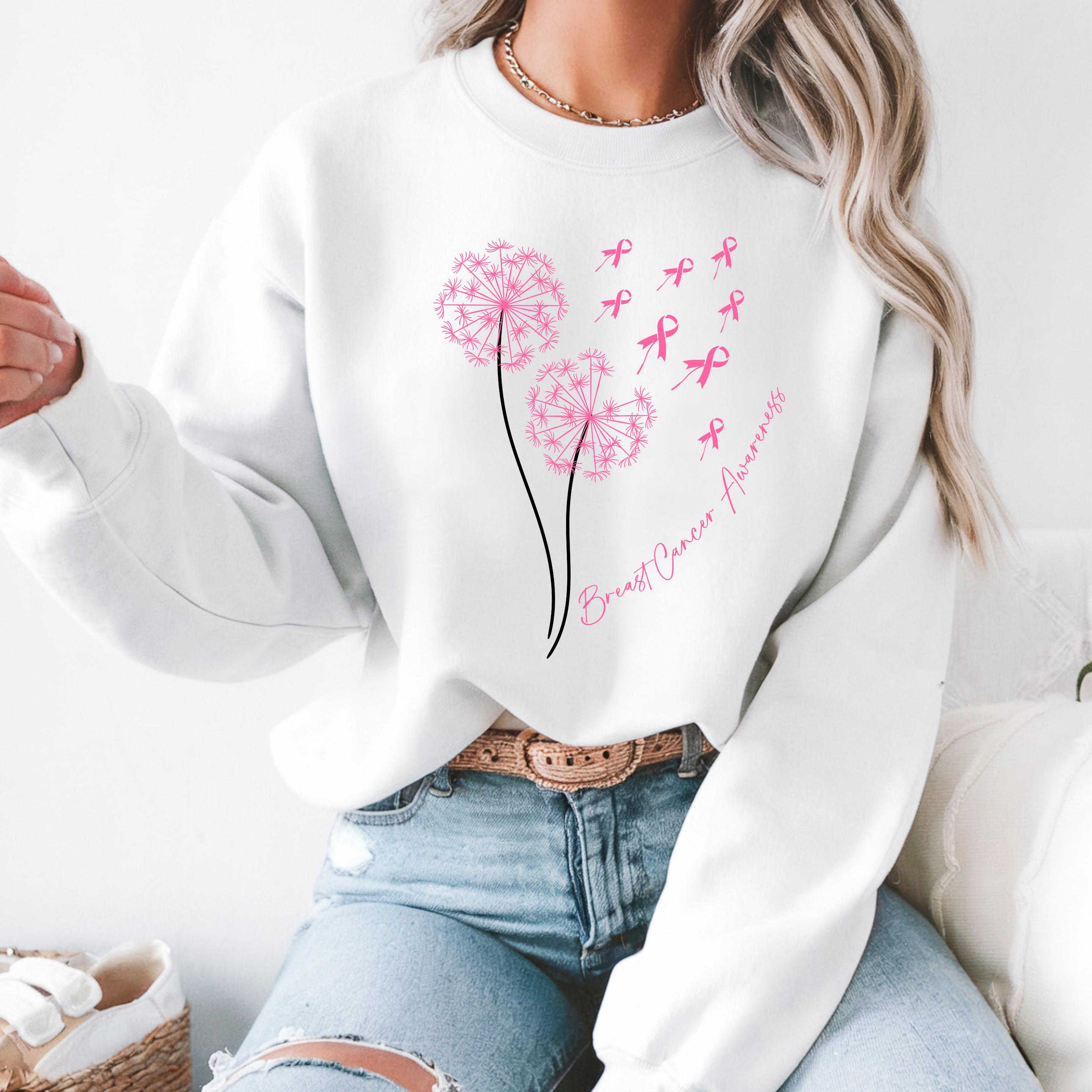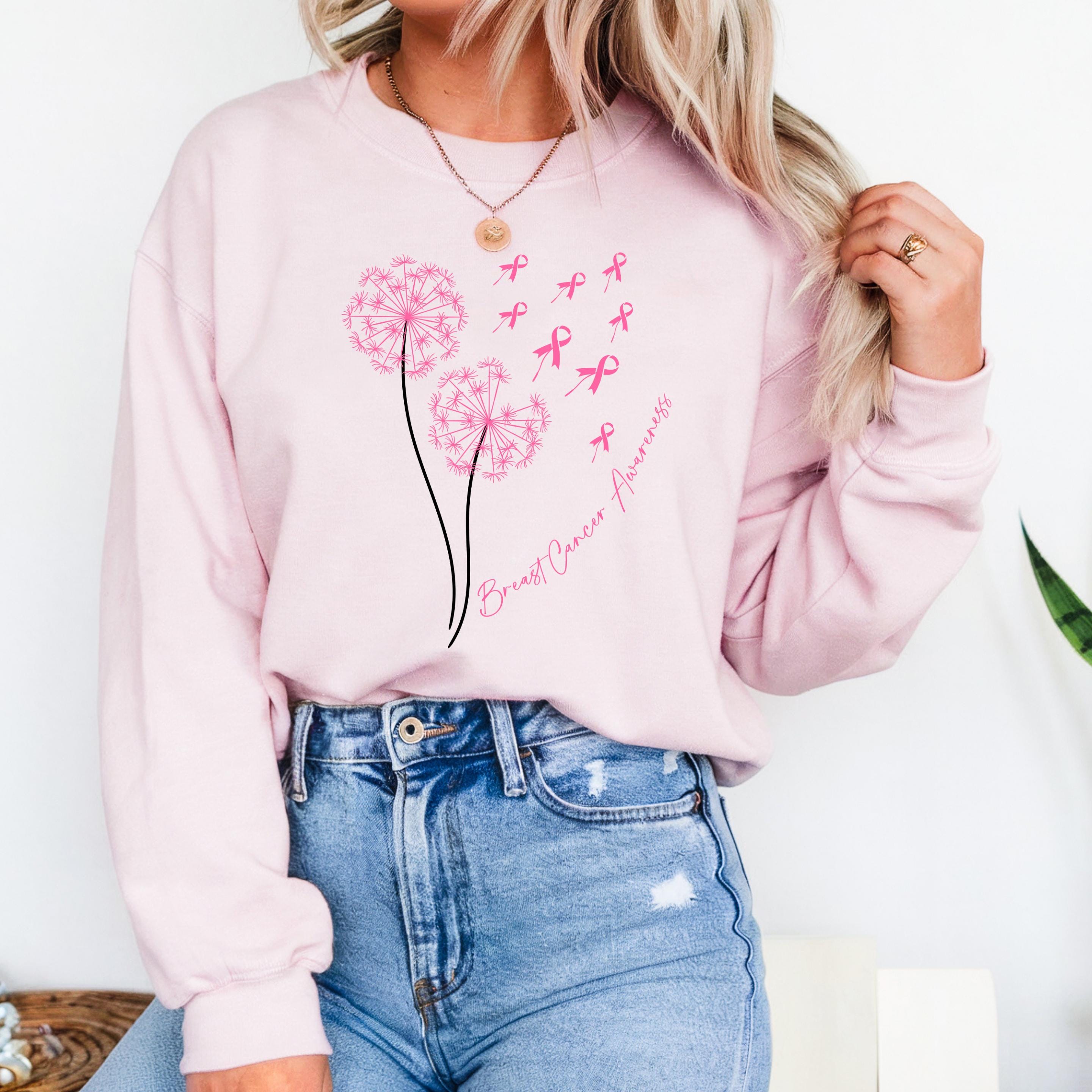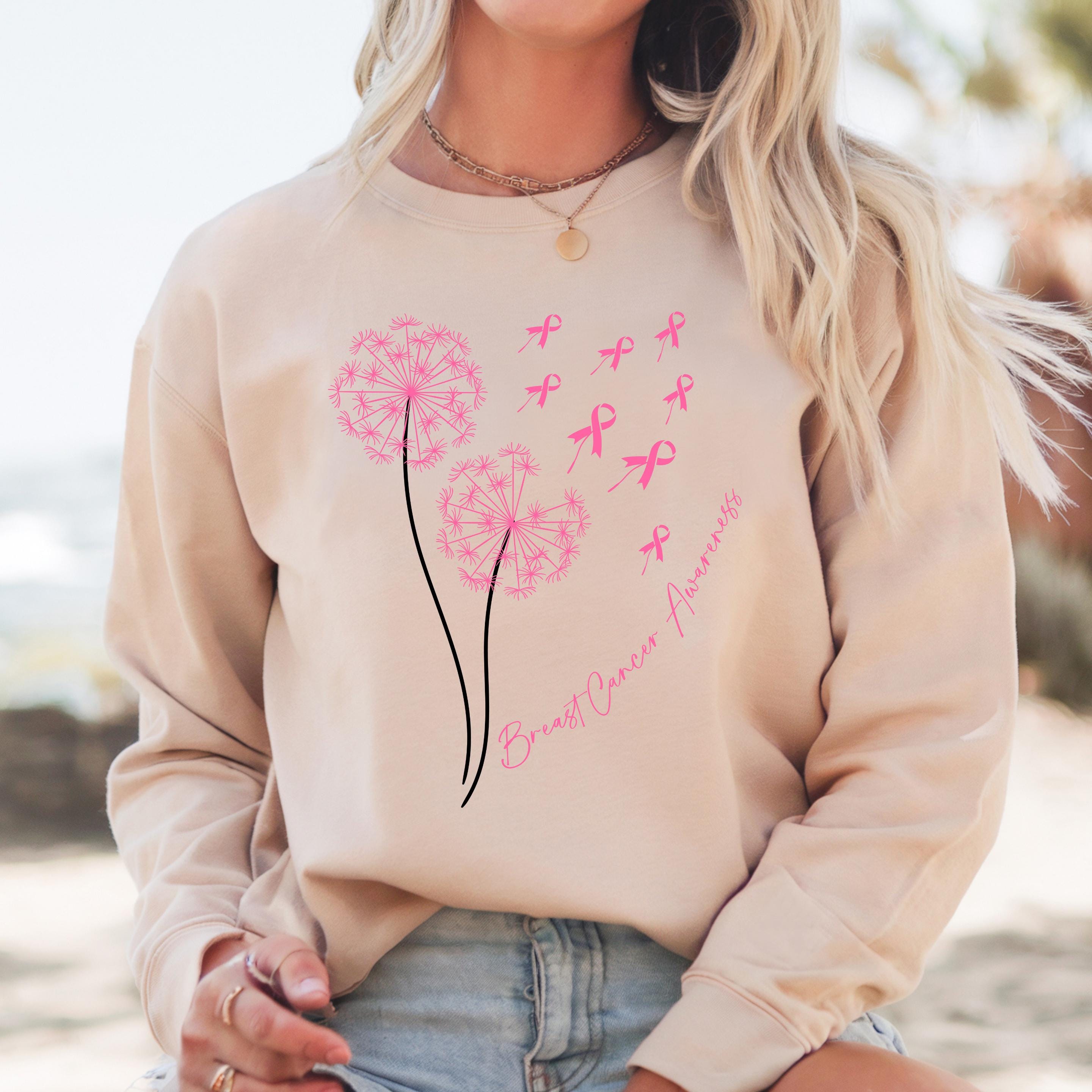 Breast Cancer Awareness Sweatshirt: Pink Dandelion Hoodie and Shirt 🧵 Product Features Comfort Colors 1717 : -The Comfort Colors 1717 tee is made with medium fabric (6.1 oz/yd² (206.8 g/m²)) consisting of high quality, 100% ring-spun US cotton for long-lasting comfort. - The relaxed fit keeps the wearer comfy in both casual and semi-formal settings while the crew neckline delivers that classic, neat style which makes it perfect for accessorizing. -All Comfort Colors 1717 shirts feature pre-shrunk cotton for size retention and a signature sewn-in twill label. -Made using 100% US cotton that is ethically grown and harvested.