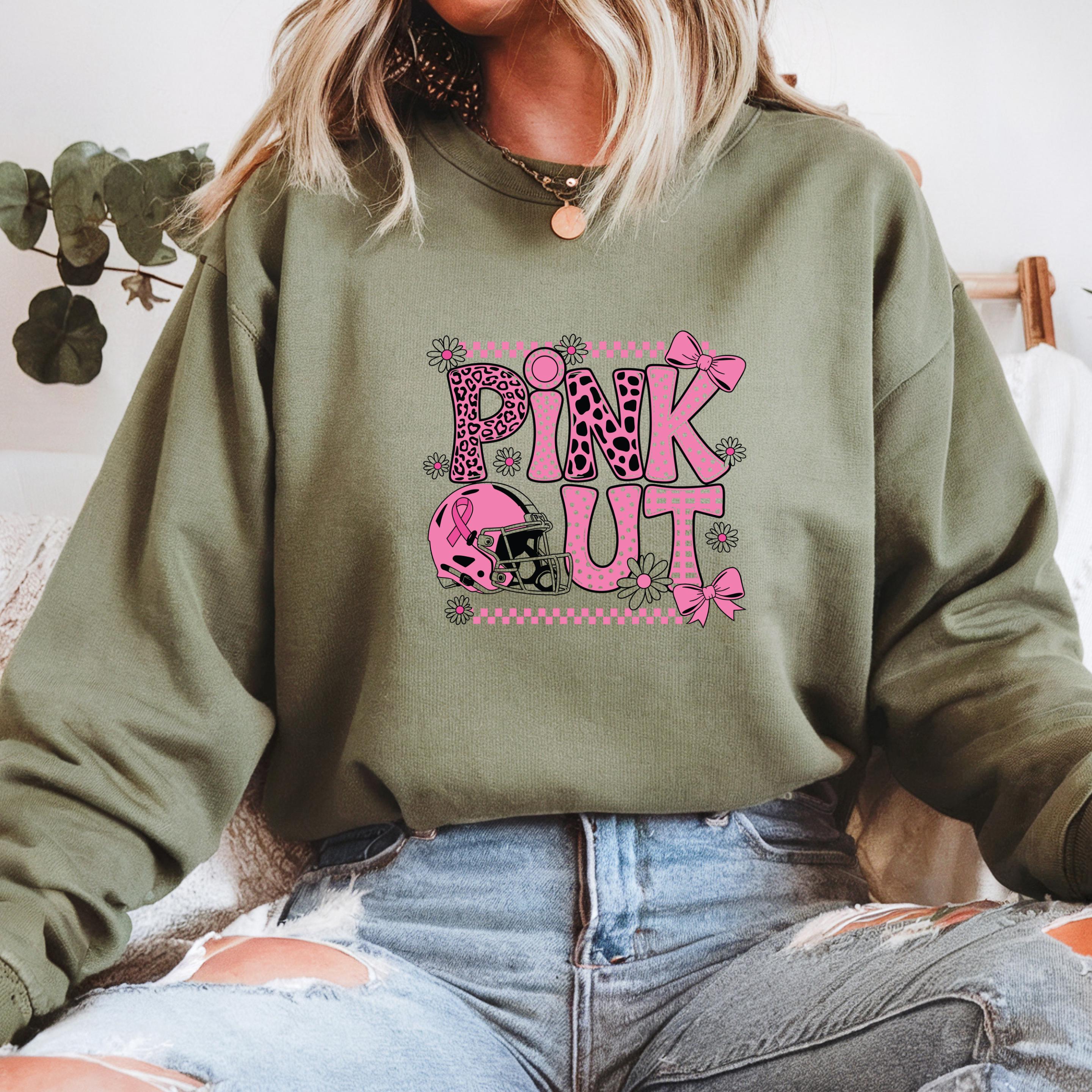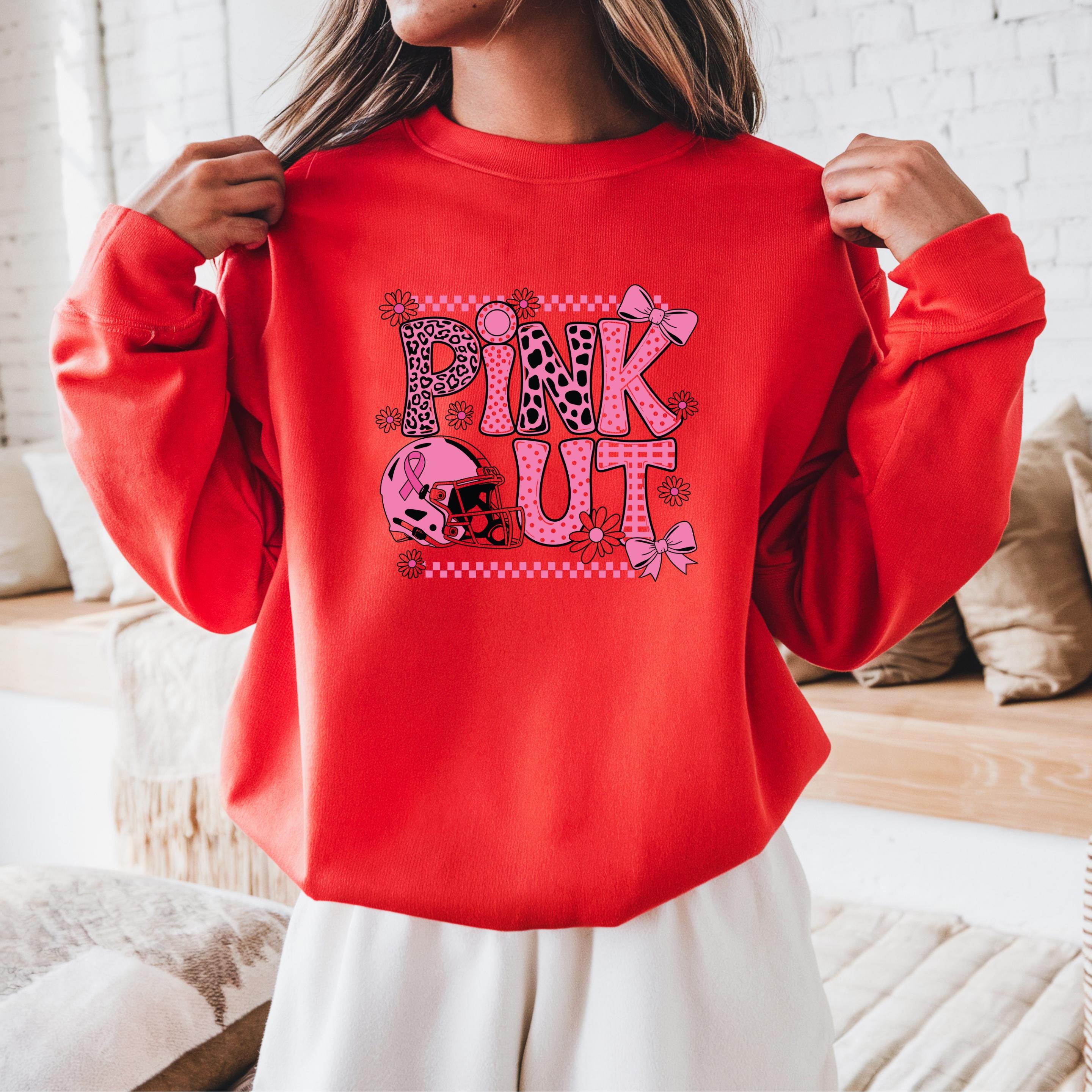 Pink Out Breast Cancer Sweatshirt: Breast Cancer Survivor Gift Hoodie and T-shirt 🧵 Product Features Comfort Colors 1717 : -The Comfort Colors 1717 tee is made with medium fabric (6.1 oz/yd² (206.8 g/m²)) consisting of high quality, 100% ring-spun US cotton for long-lasting comfort. - The relaxed fit keeps the wearer comfy in both casual and semi-formal settings while the crew neckline delivers that classic, neat style which makes it perfect for accessorizing. -All Comfort Colors 1717 shirts feature pre-shrunk cotton for size retention and a signature sewn-in twill label. -Made using 100% US cotton that is ethically grown and harvested.
