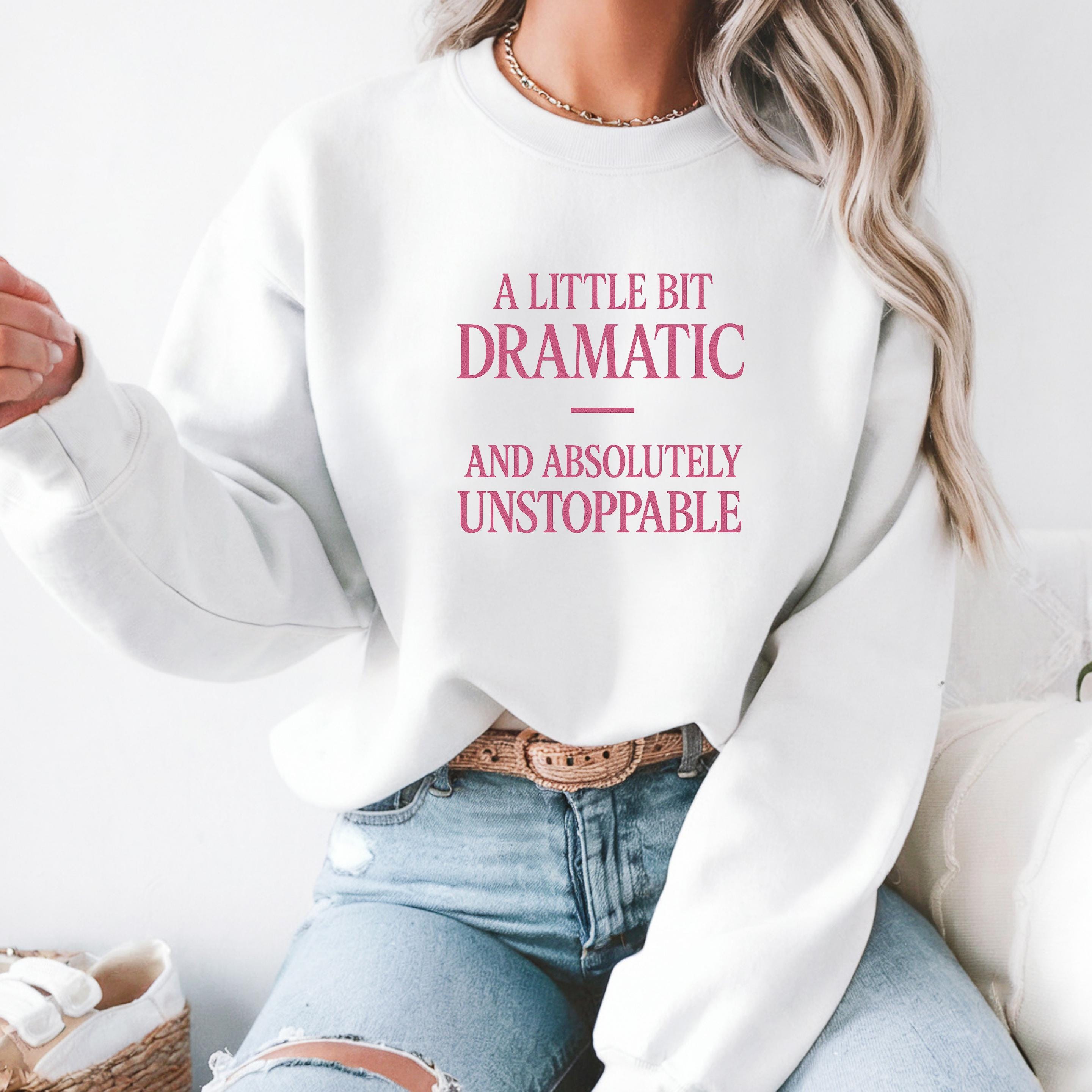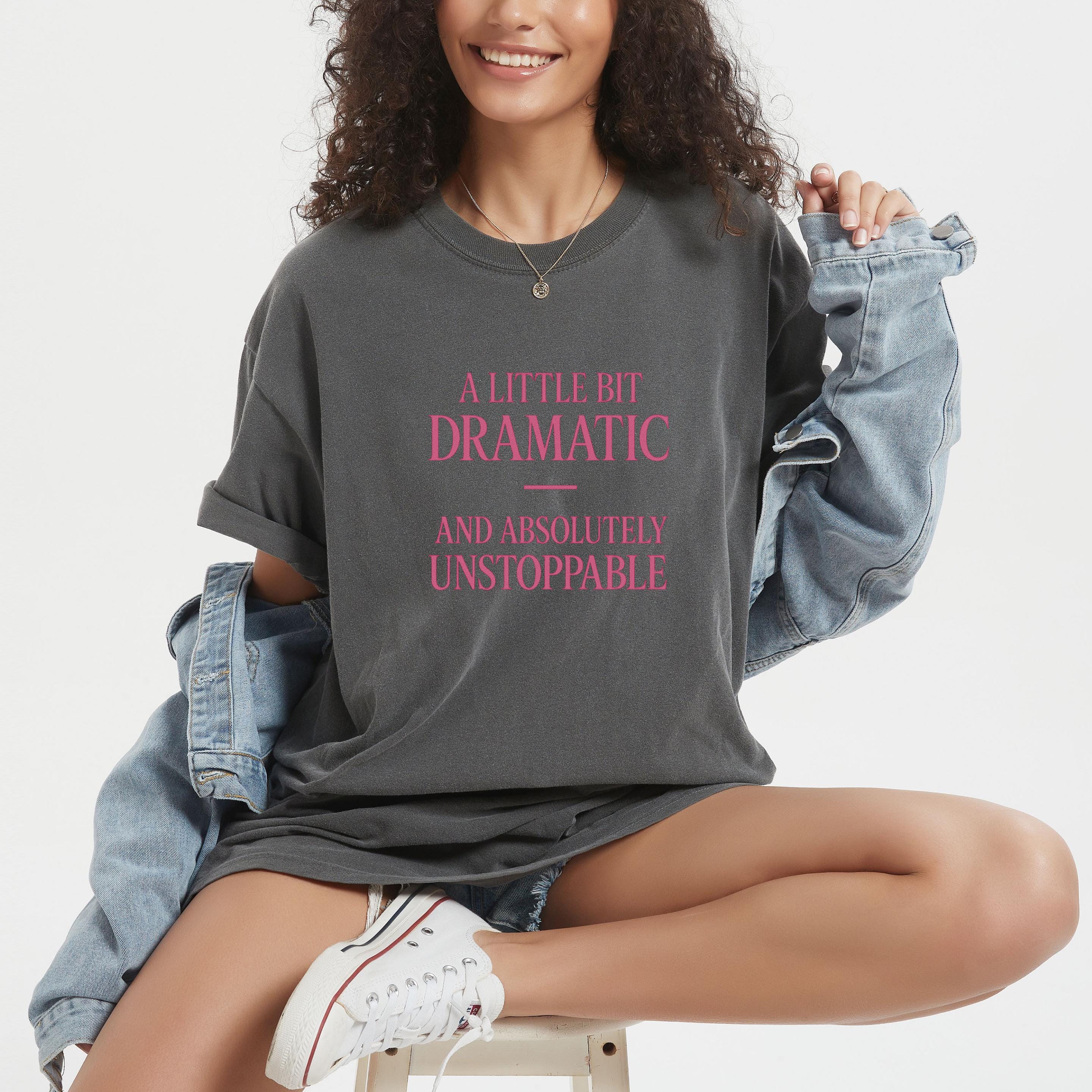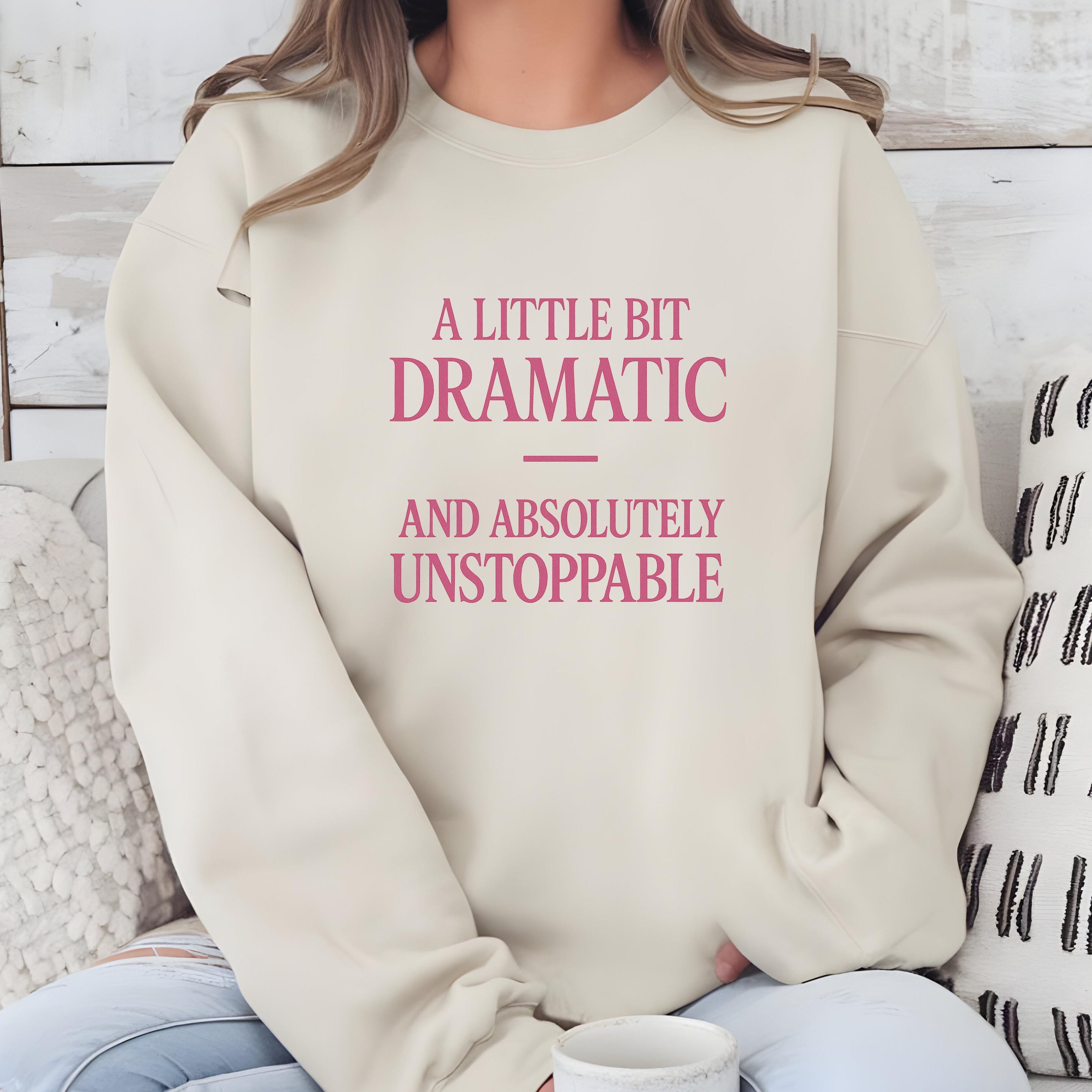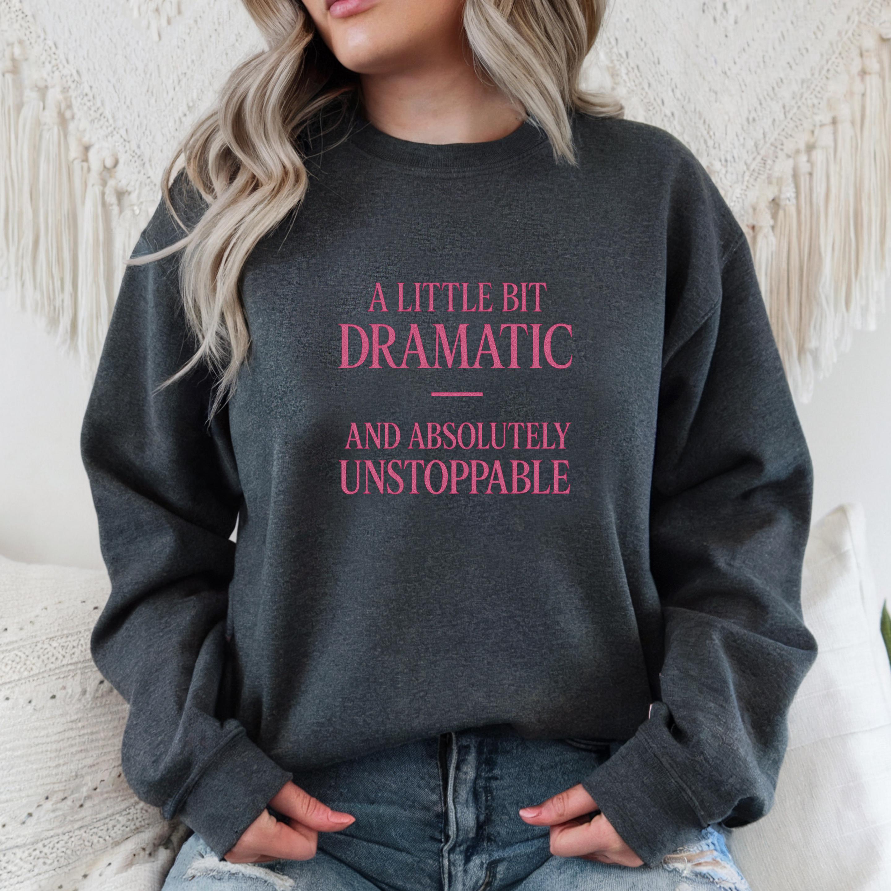 A little bit Dramatic, and absolutely Unstoppable Sweatshirt: Woman Inspirational Quote Hoodie and T-shirt 🧵 Product Features Comfort Colors 1717 : -The Comfort Colors 1717 tee is made with medium fabric (6.1 oz/yd² (206.8 g/m²)) consisting of high quality, 100% ring-spun US cotton for long-lasting comfort. - The relaxed fit keeps the wearer comfy in both casual and semi-formal settings while the crew neckline delivers that classic, neat style which makes it perfect for accessorizing. -All Comfort Colors 1717 shirts feature pre-shrunk cotton for size retention and a signature sewn-in twill label. -Made using 100% US cotton that is ethically grown and harvested.