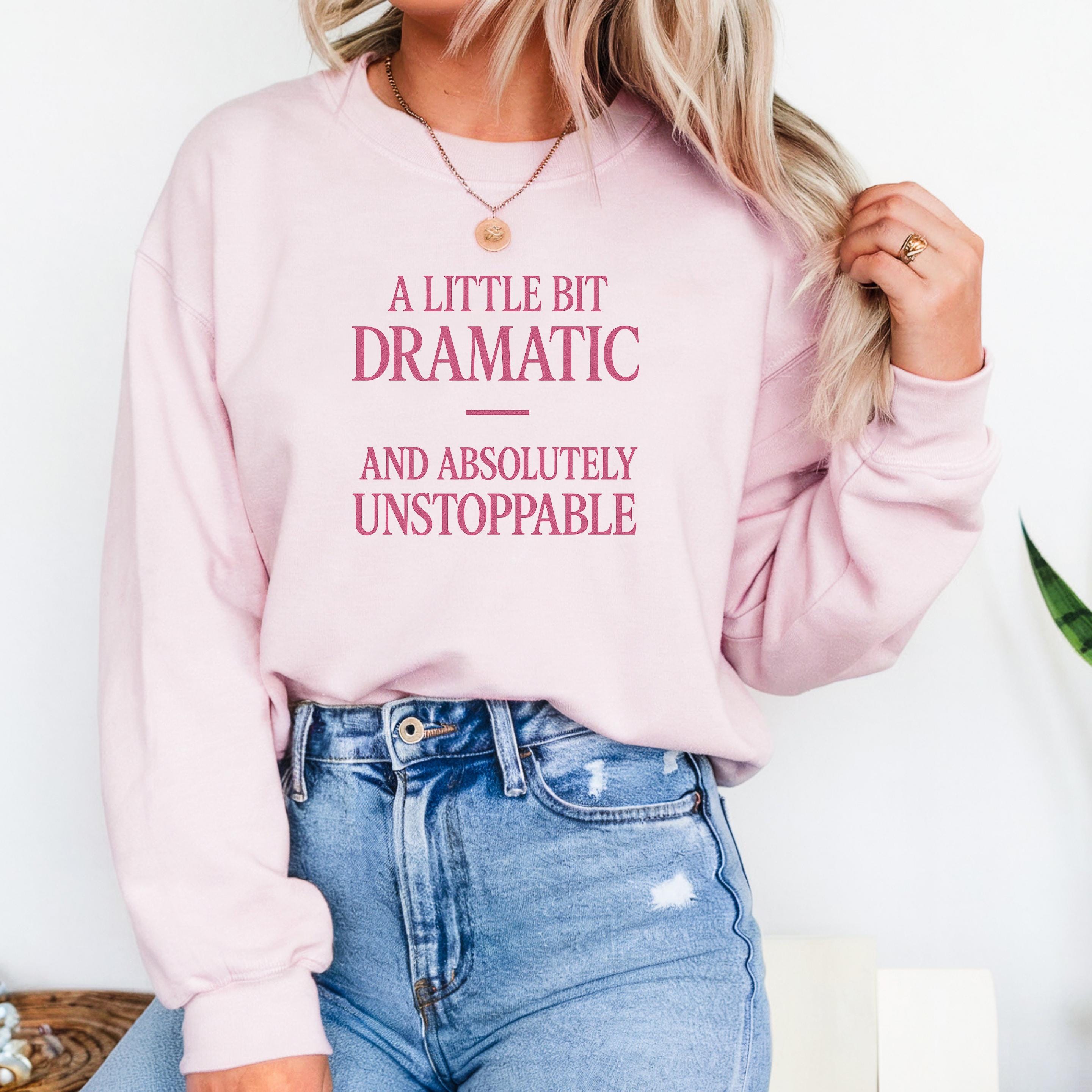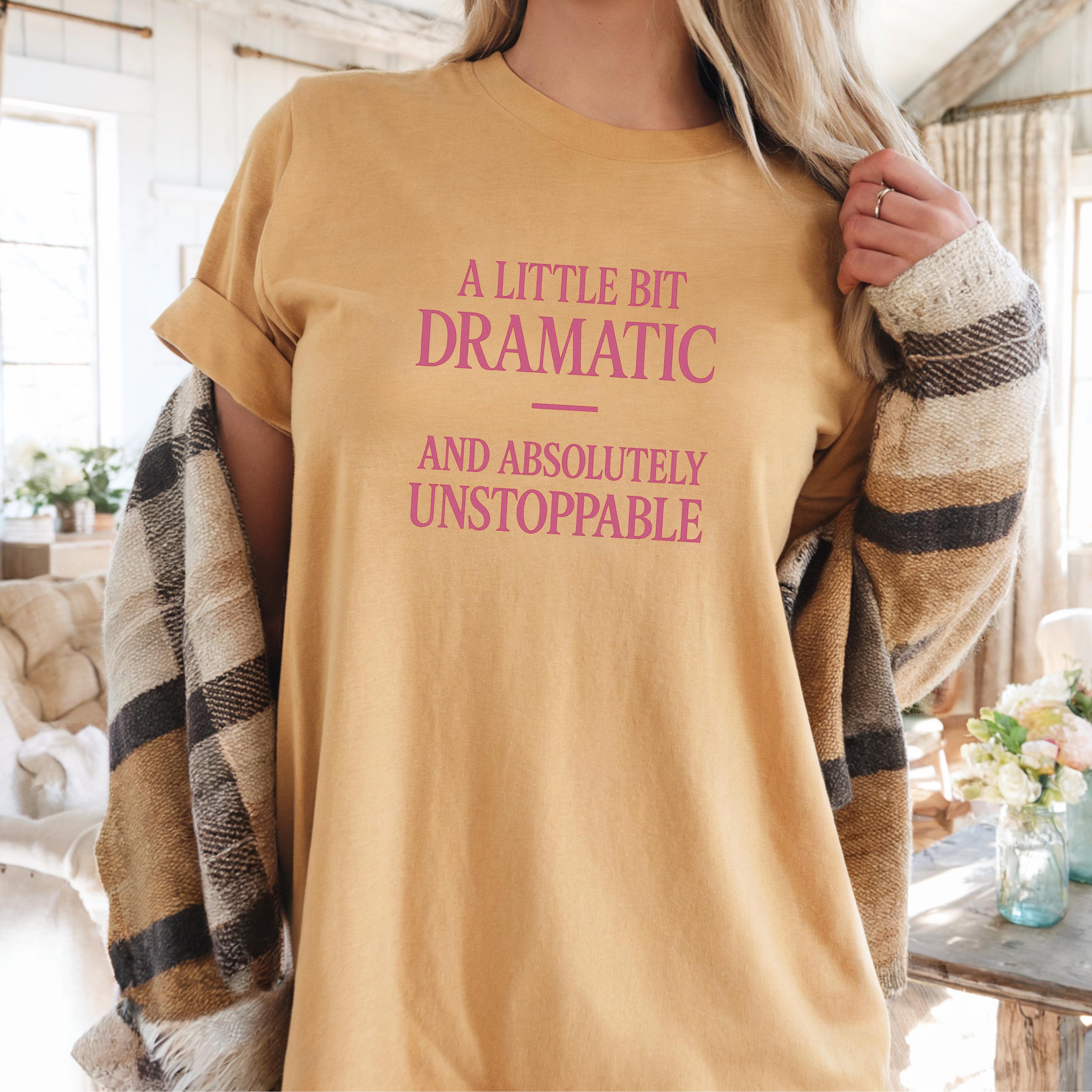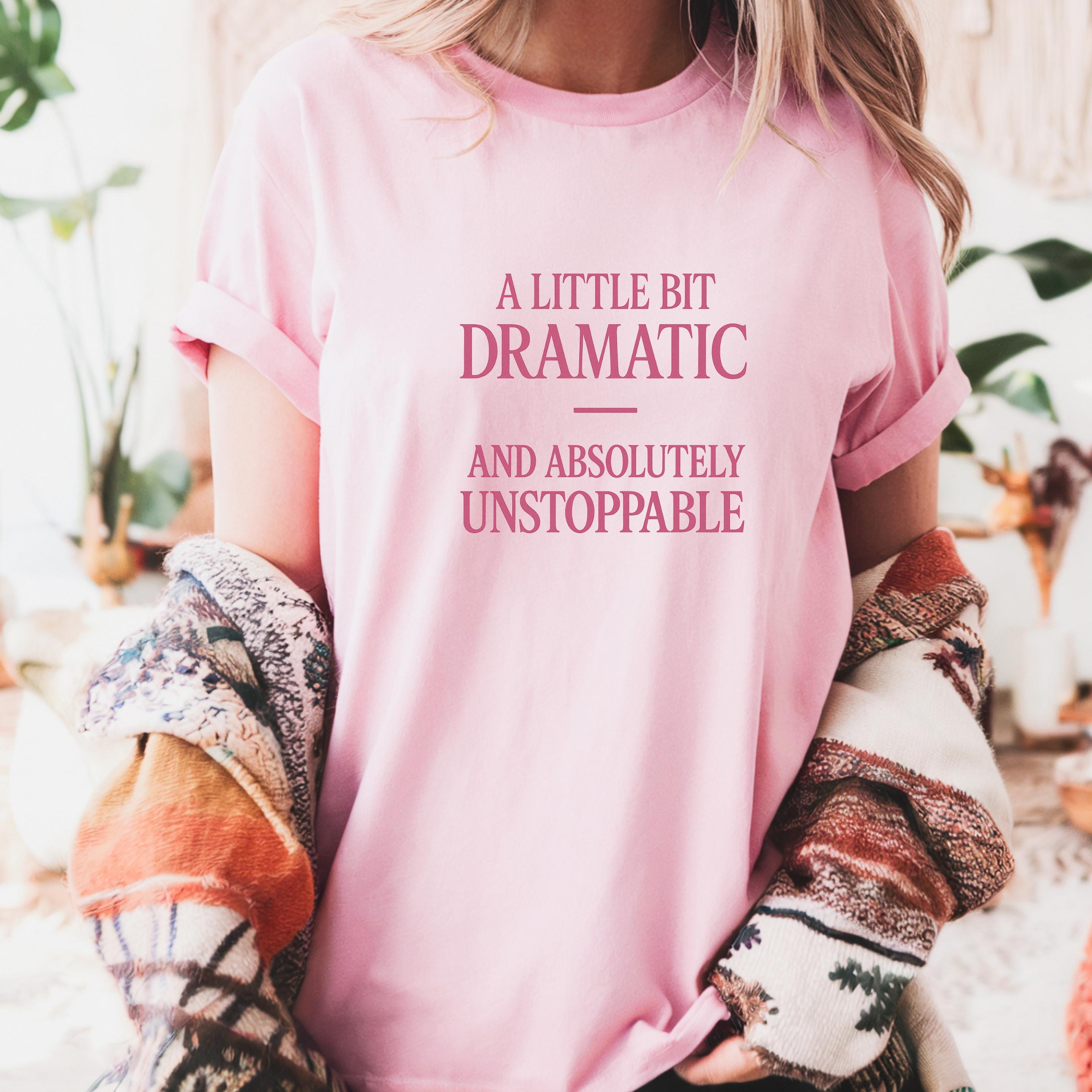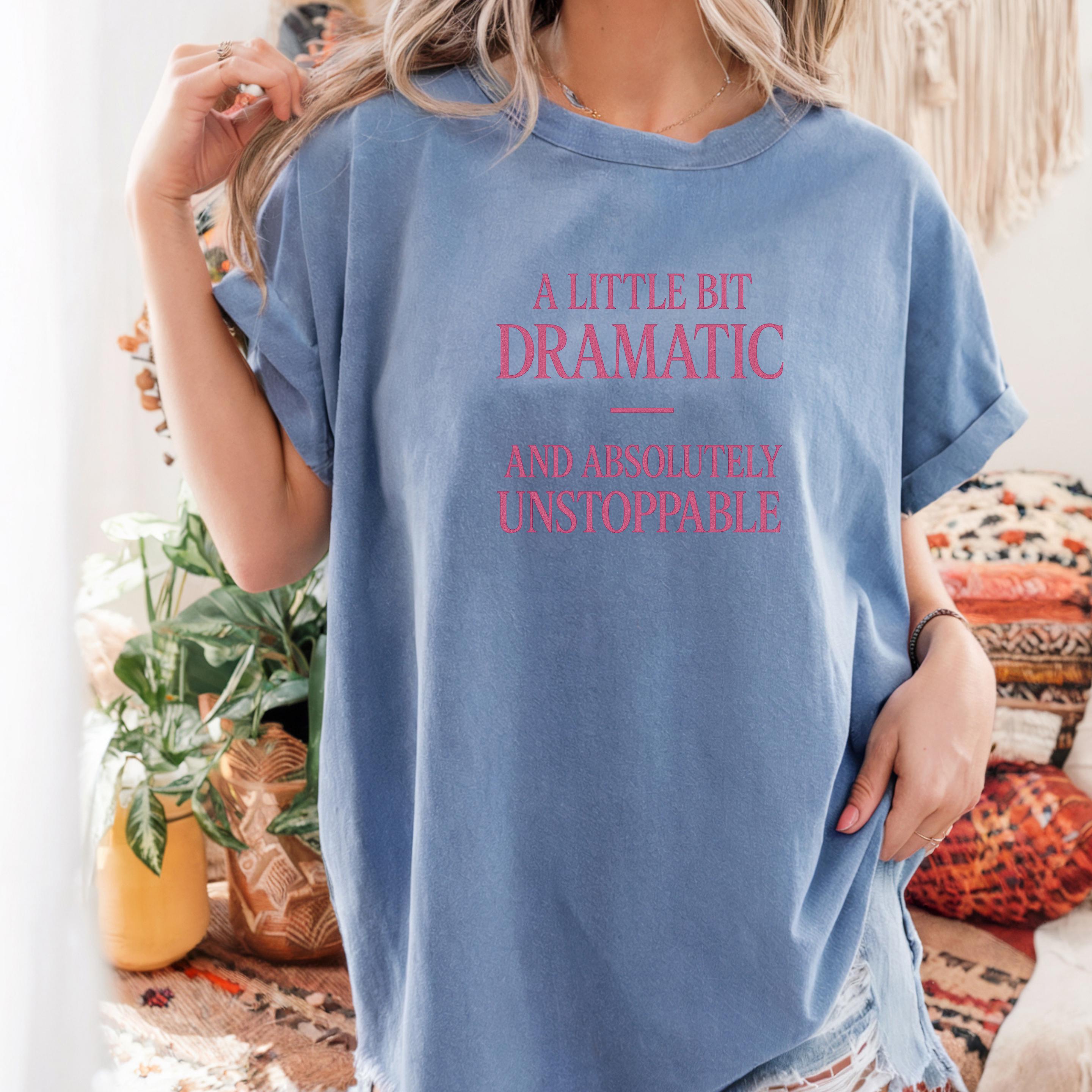 A little bit Dramatic, and absolutely Unstoppable Sweatshirt: Woman Inspirational Quote Hoodie and T-shirt 🧵 Product Features Comfort Colors 1717 : -The Comfort Colors 1717 tee is made with medium fabric (6.1 oz/yd² (206.8 g/m²)) consisting of high quality, 100% ring-spun US cotton for long-lasting comfort. - The relaxed fit keeps the wearer comfy in both casual and semi-formal settings while the crew neckline delivers that classic, neat style which makes it perfect for accessorizing. -All Comfort Colors 1717 shirts feature pre-shrunk cotton for size retention and a signature sewn-in twill label. -Made using 100% US cotton that is ethically grown and harvested.
