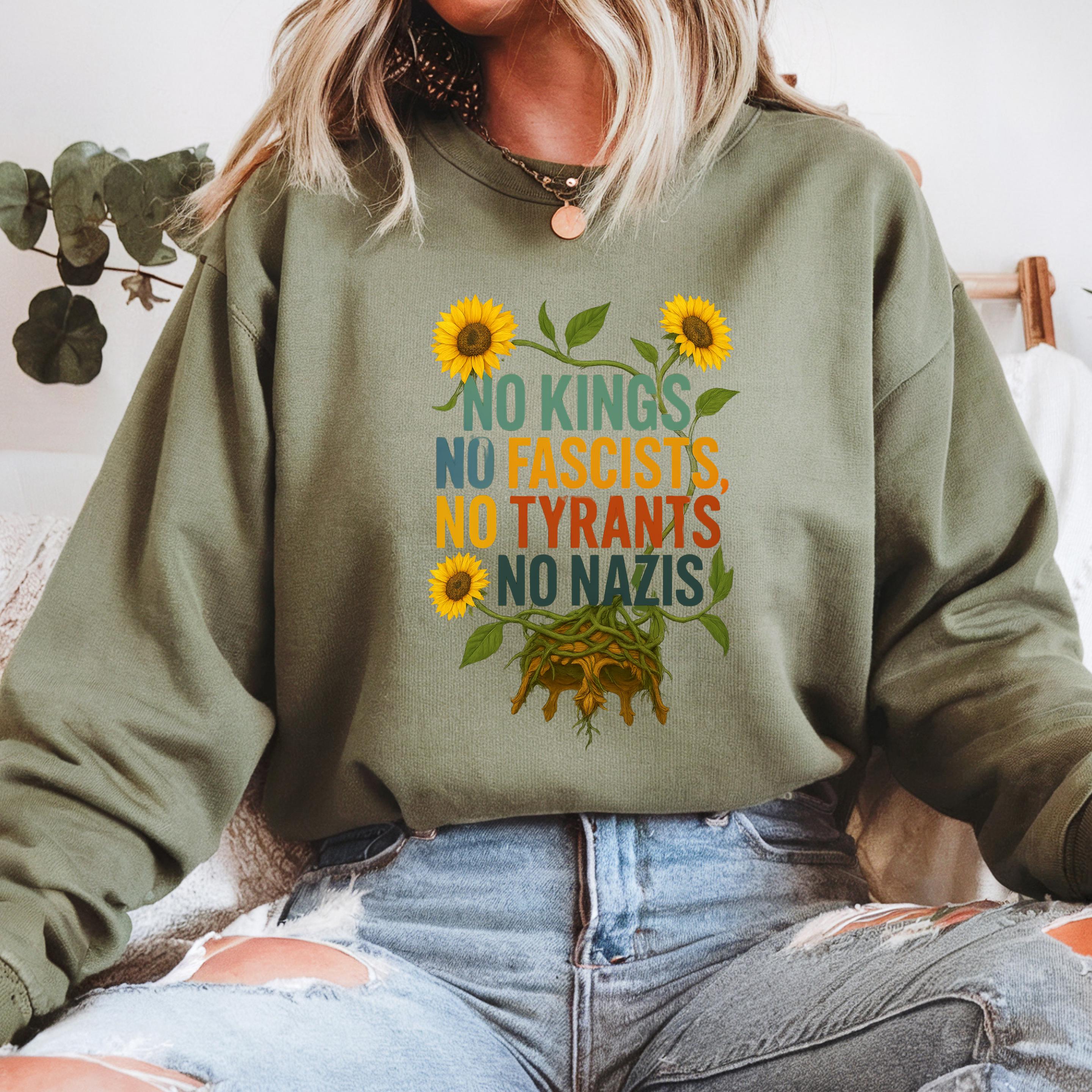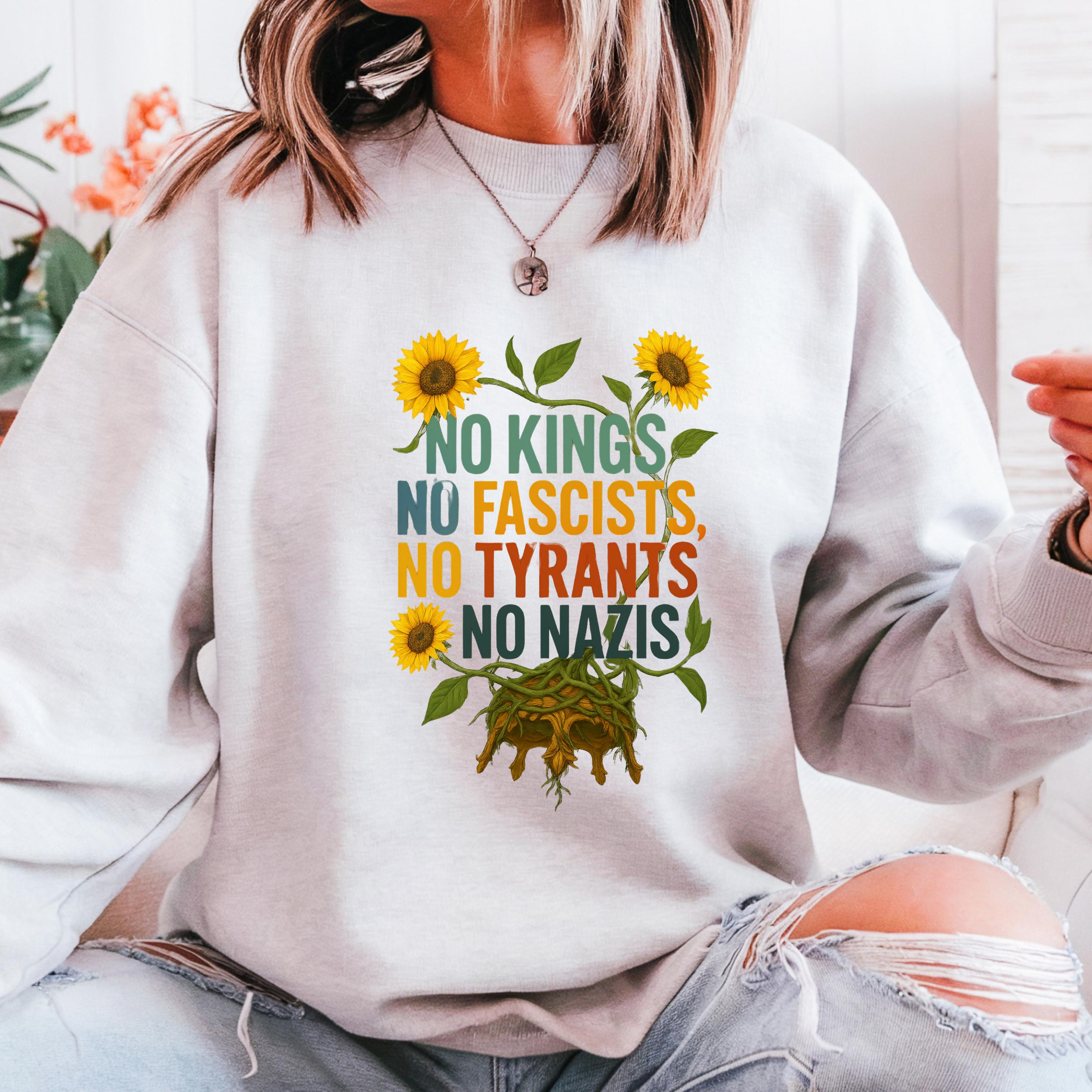 No Kings in America Sweatshirt: Floral Political Meme Hoodie, Social Justice T-shirt