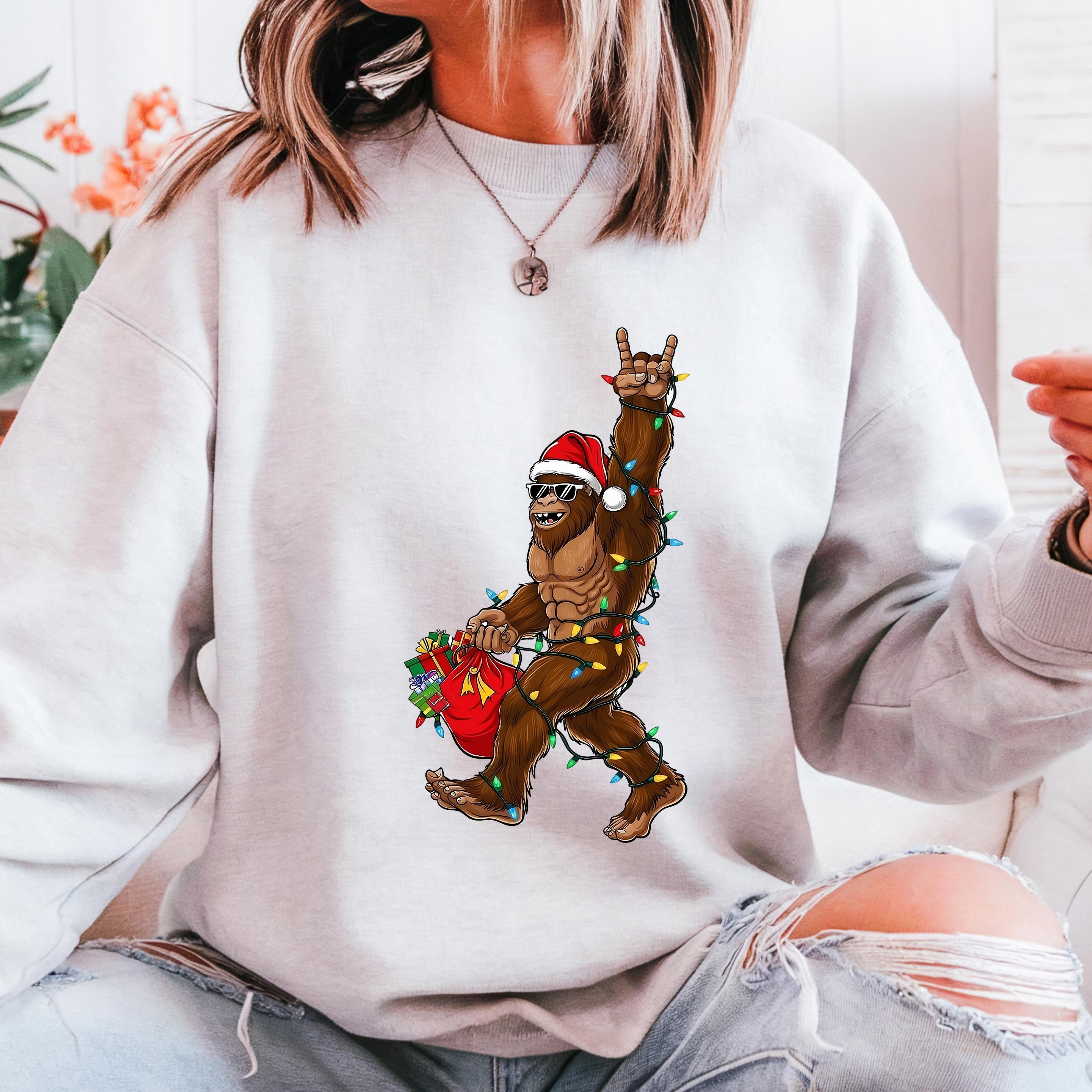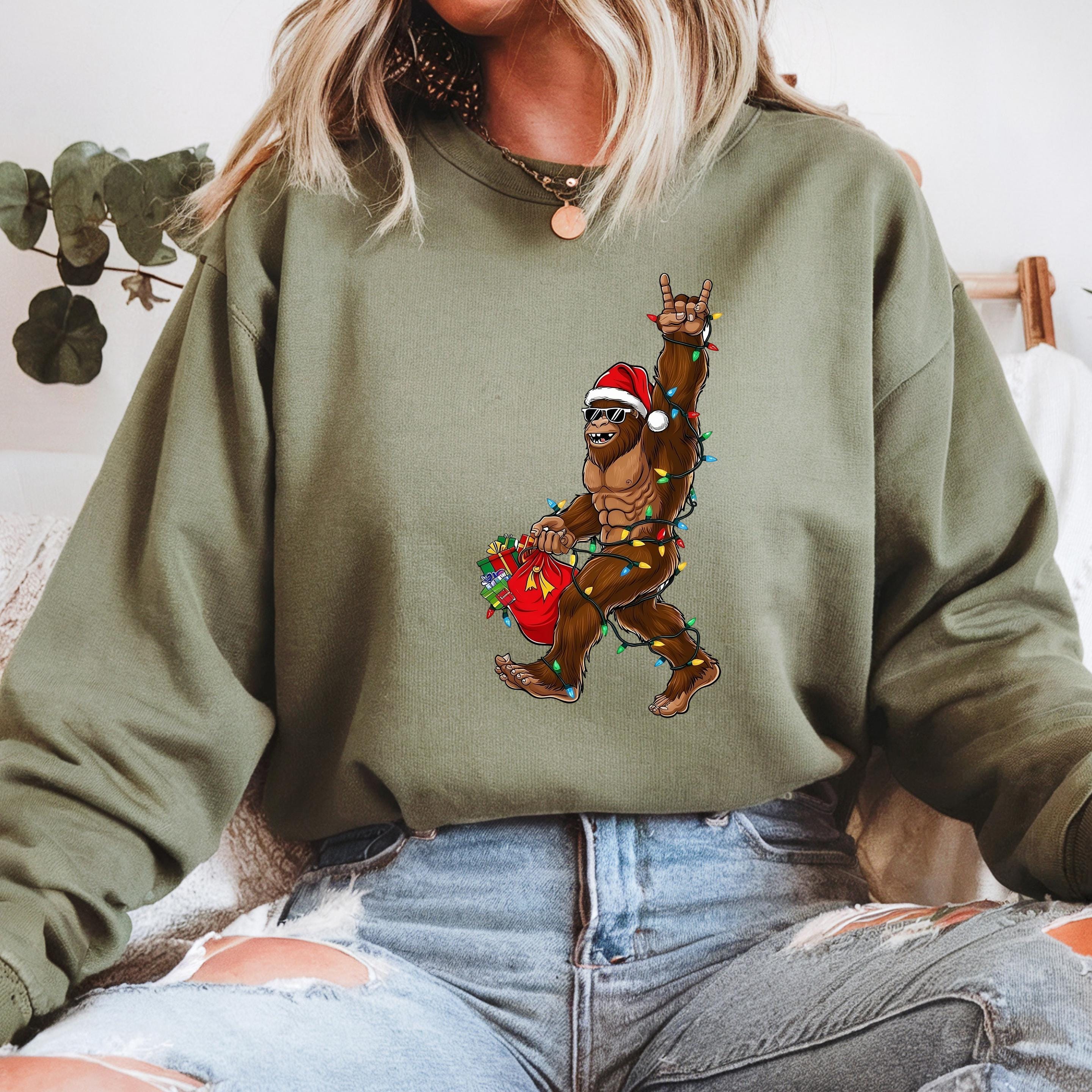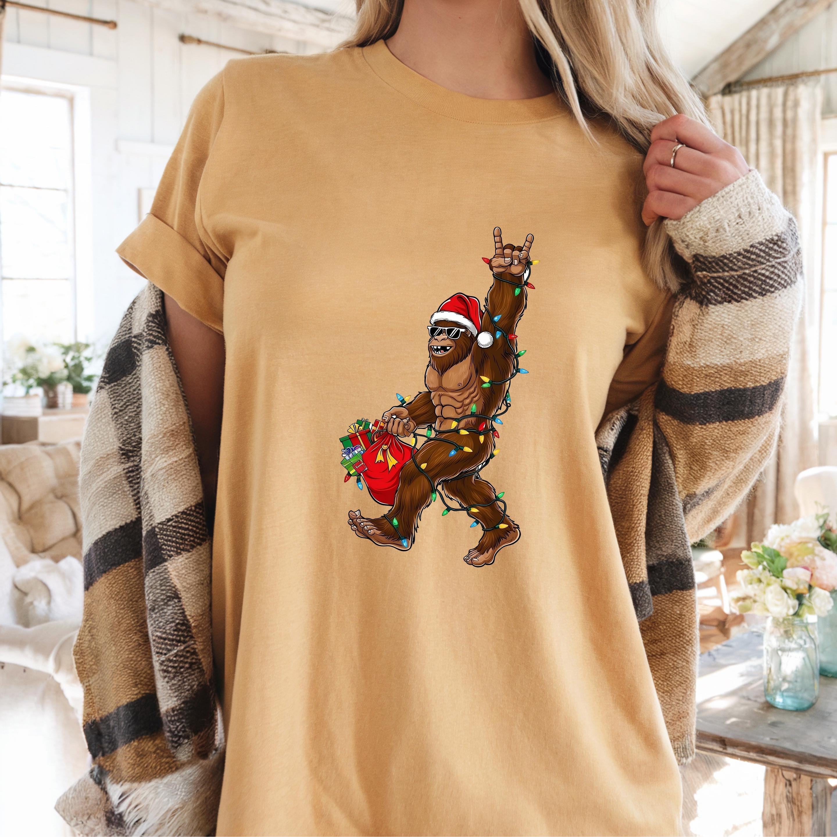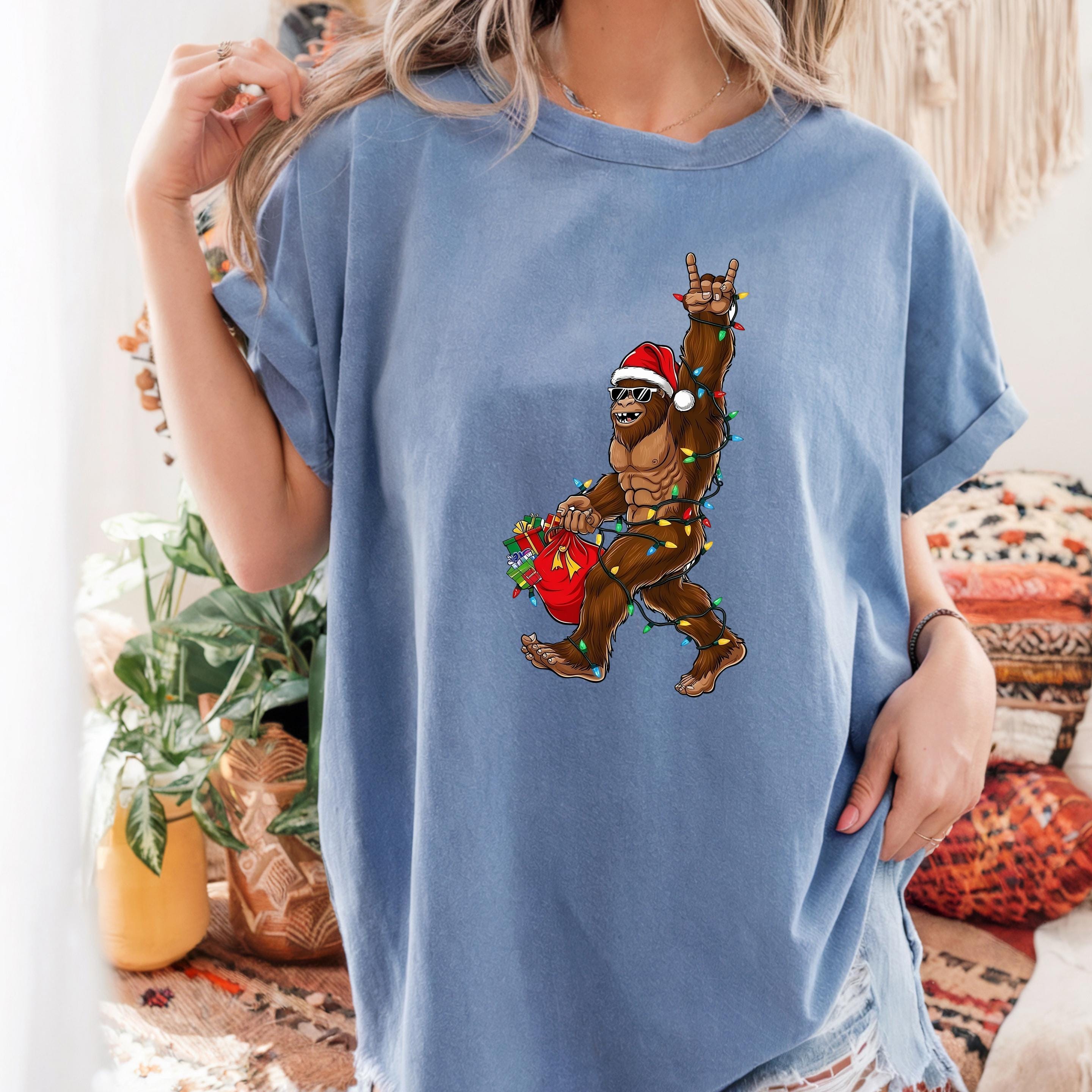 Bigfoot with Christmas Bag Sweatshirt: Christmas Soul Unisex Hoodie and T-shirt 🧵 Product Features Comfort Colors 1717 : -The Comfort Colors 1717 tee is made with medium fabric (6.1 oz/yd² (206.8 g/m²)) consisting of high quality, 100% ring-spun US cotton for long-lasting comfort. - The relaxed fit keeps the wearer comfy in both casual and semi-formal settings while the crew neckline delivers that classic, neat style which makes it perfect for accessorizing. -All Comfort Colors 1717 shirts feature pre-shrunk cotton for size retention and a signature sewn-in twill label. -Made using 100% US cotton that is ethically grown and harvested.