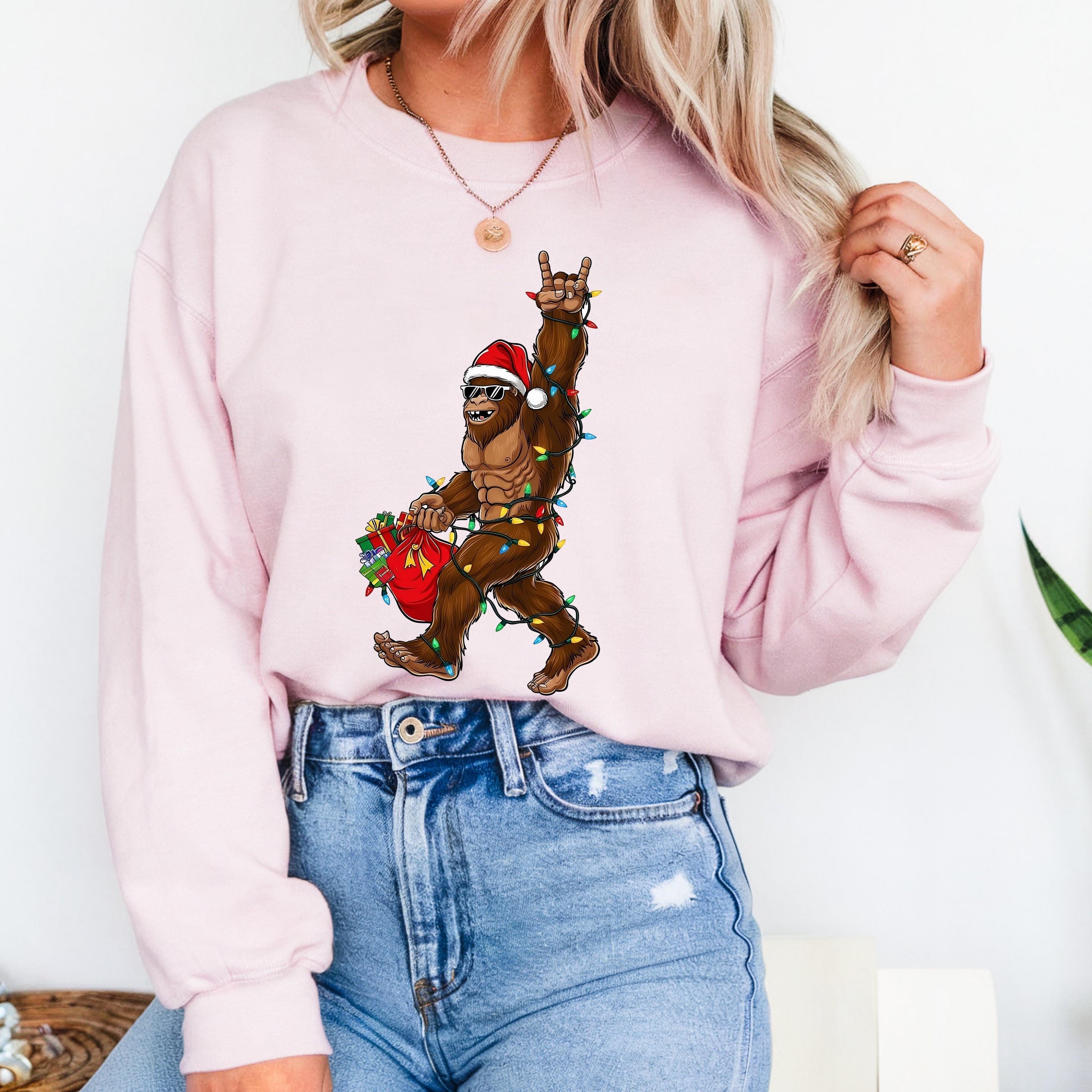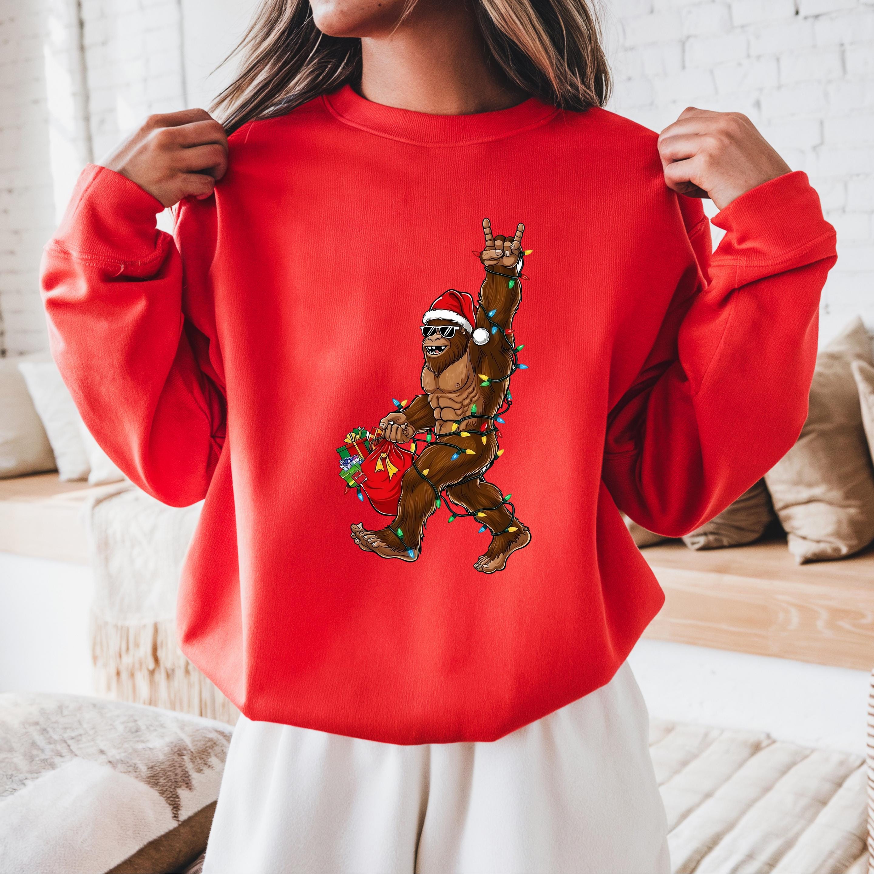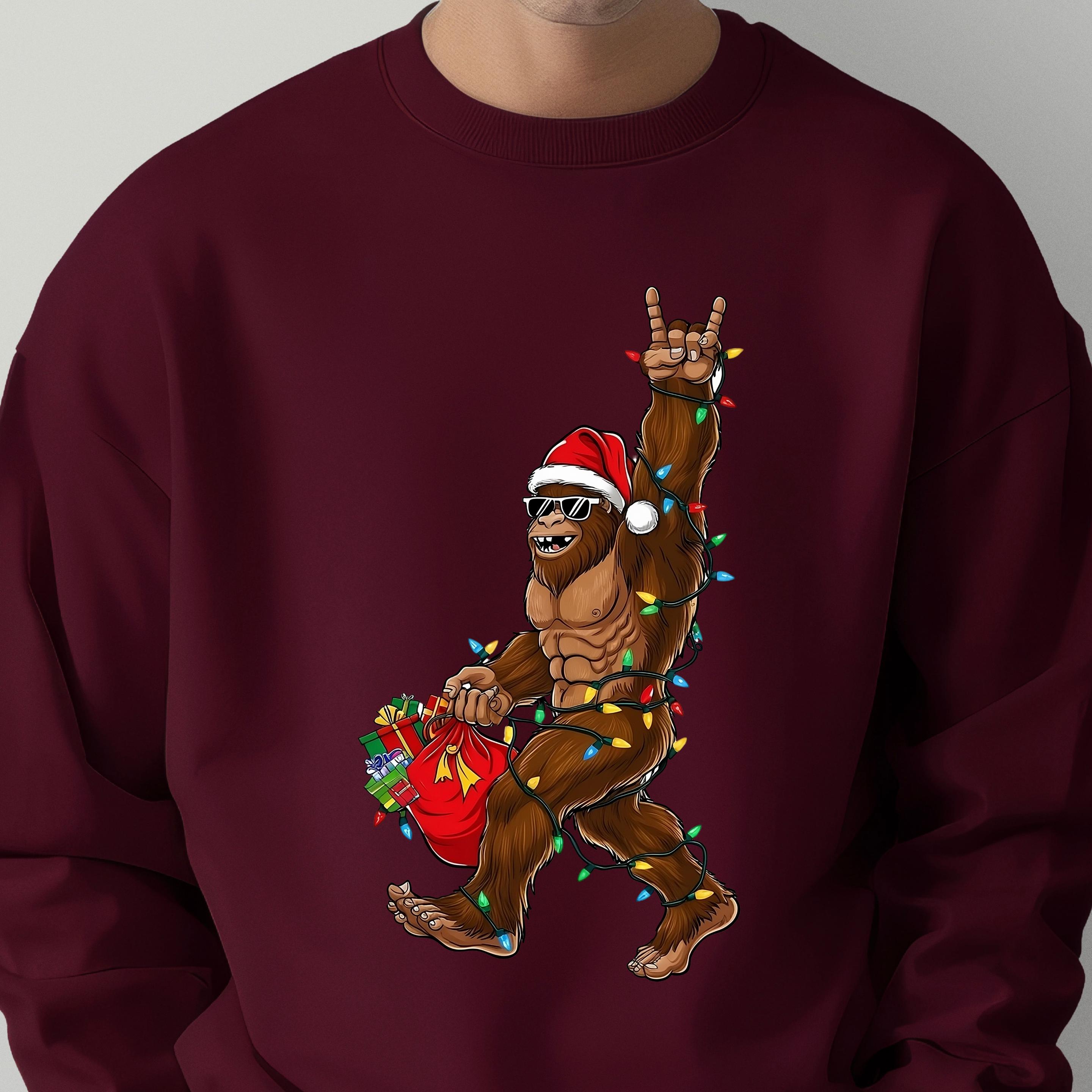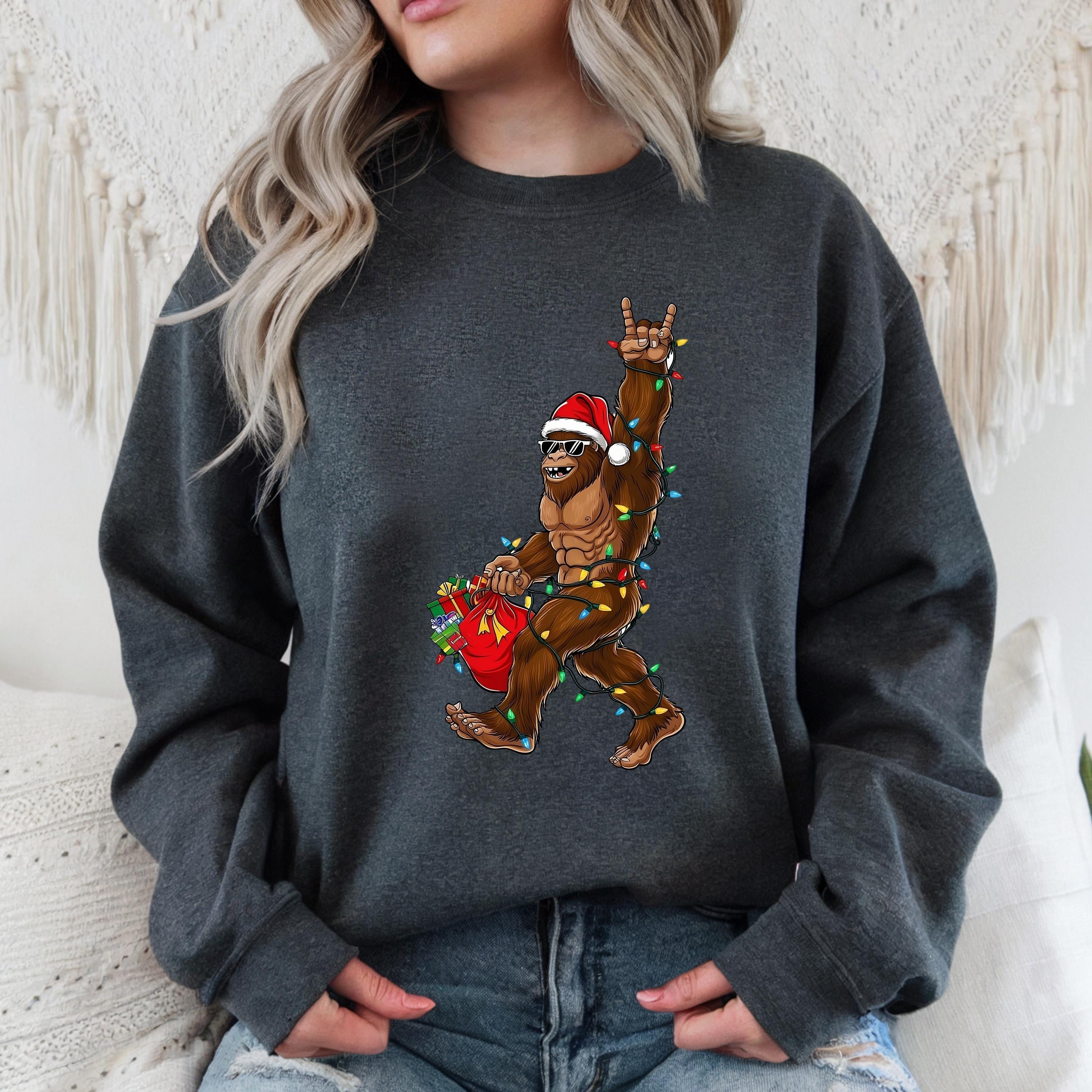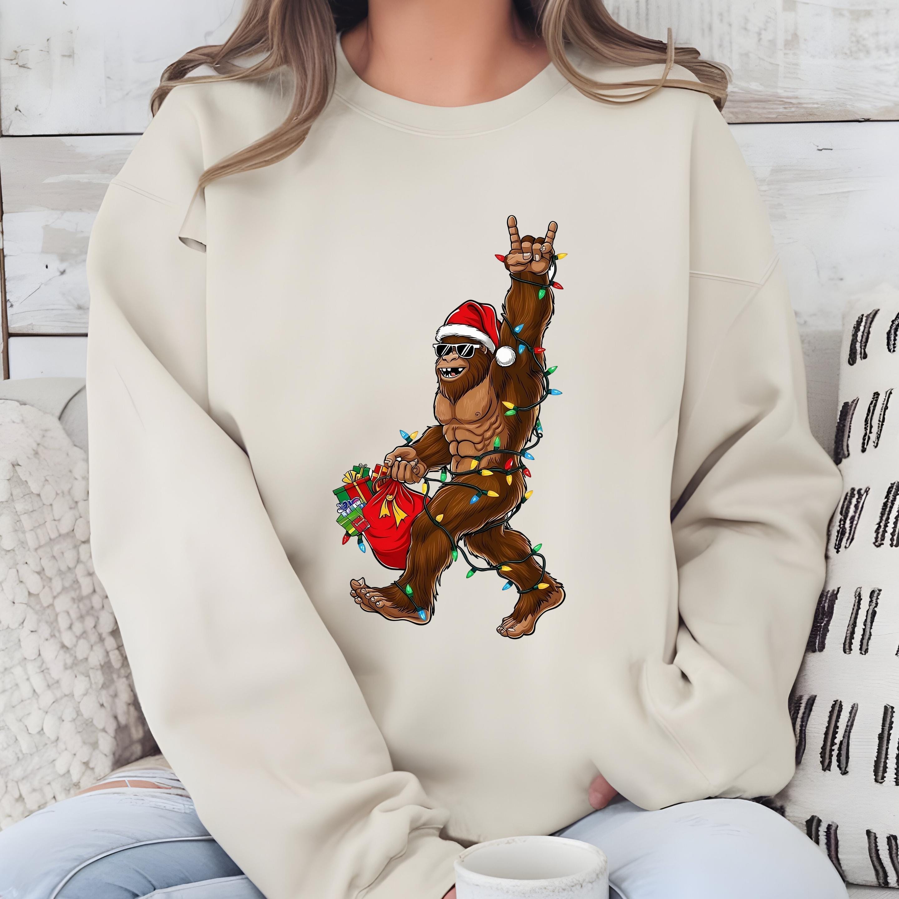 Bigfoot with Christmas Bag Sweatshirt: Christmas Soul Unisex Hoodie and T-shirt 🧵 Product Features Comfort Colors 1717 : -The Comfort Colors 1717 tee is made with medium fabric (6.1 oz/yd² (206.8 g/m²)) consisting of high quality, 100% ring-spun US cotton for long-lasting comfort. - The relaxed fit keeps the wearer comfy in both casual and semi-formal settings while the crew neckline delivers that classic, neat style which makes it perfect for accessorizing. -All Comfort Colors 1717 shirts feature pre-shrunk cotton for size retention and a signature sewn-in twill label. -Made using 100% US cotton that is ethically grown and harvested.