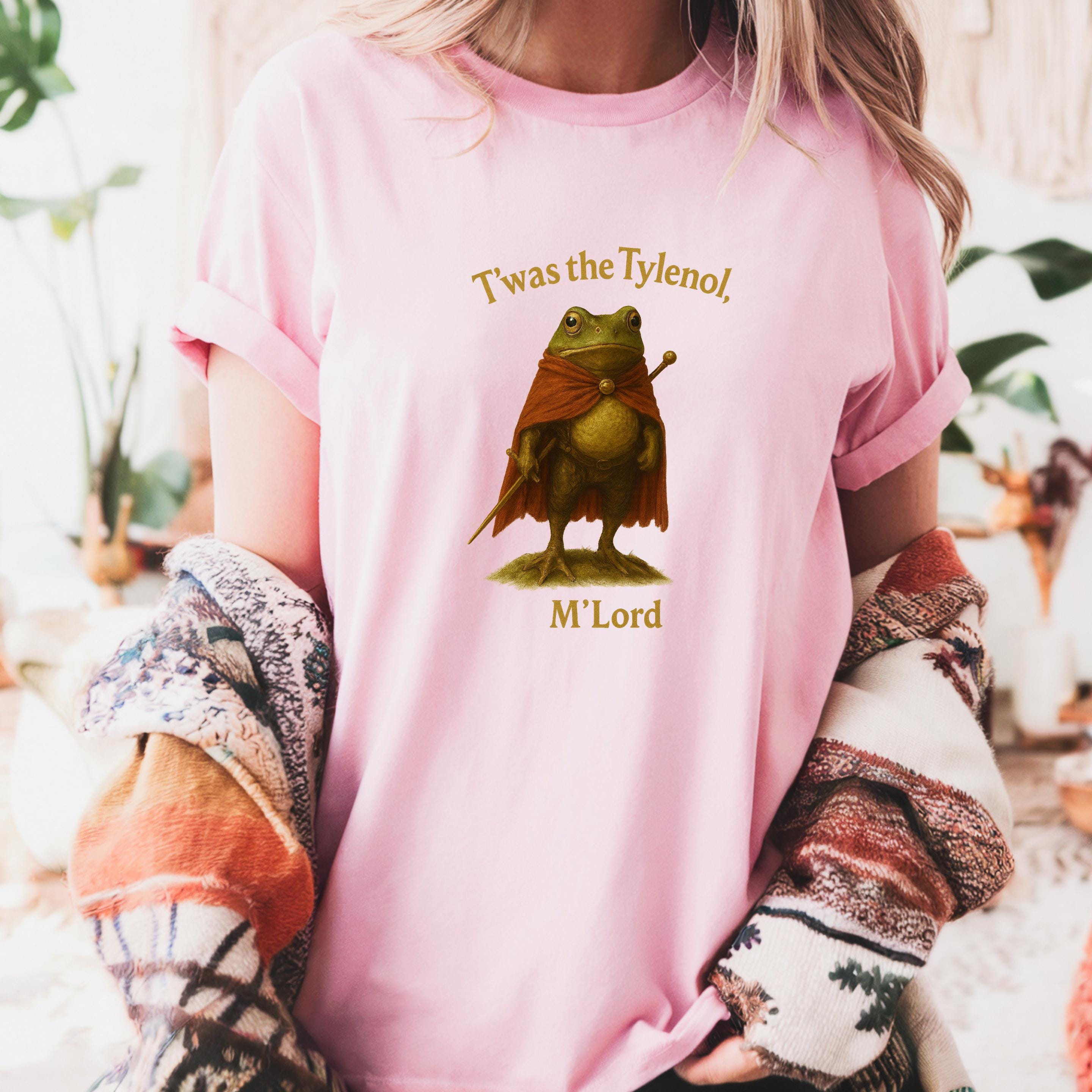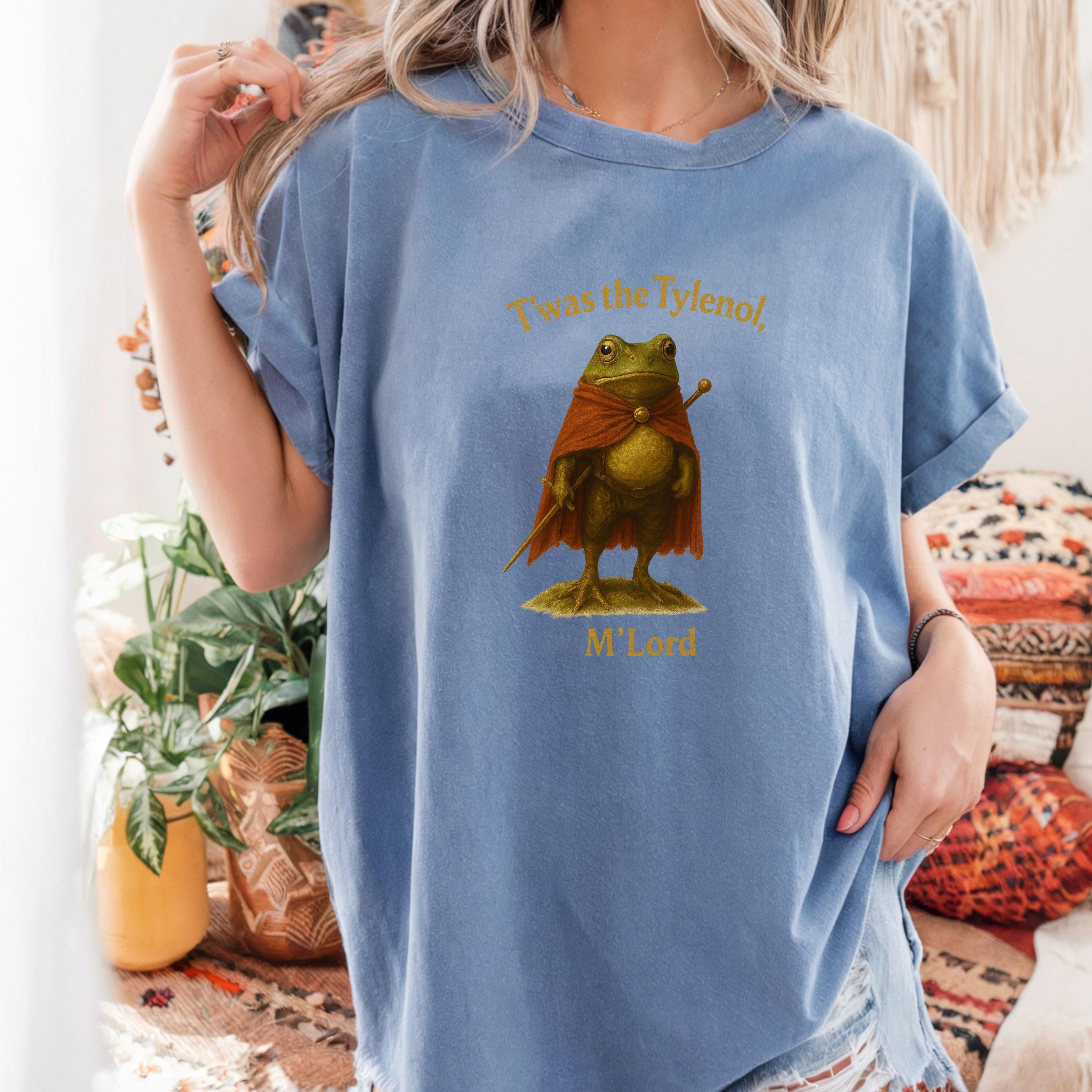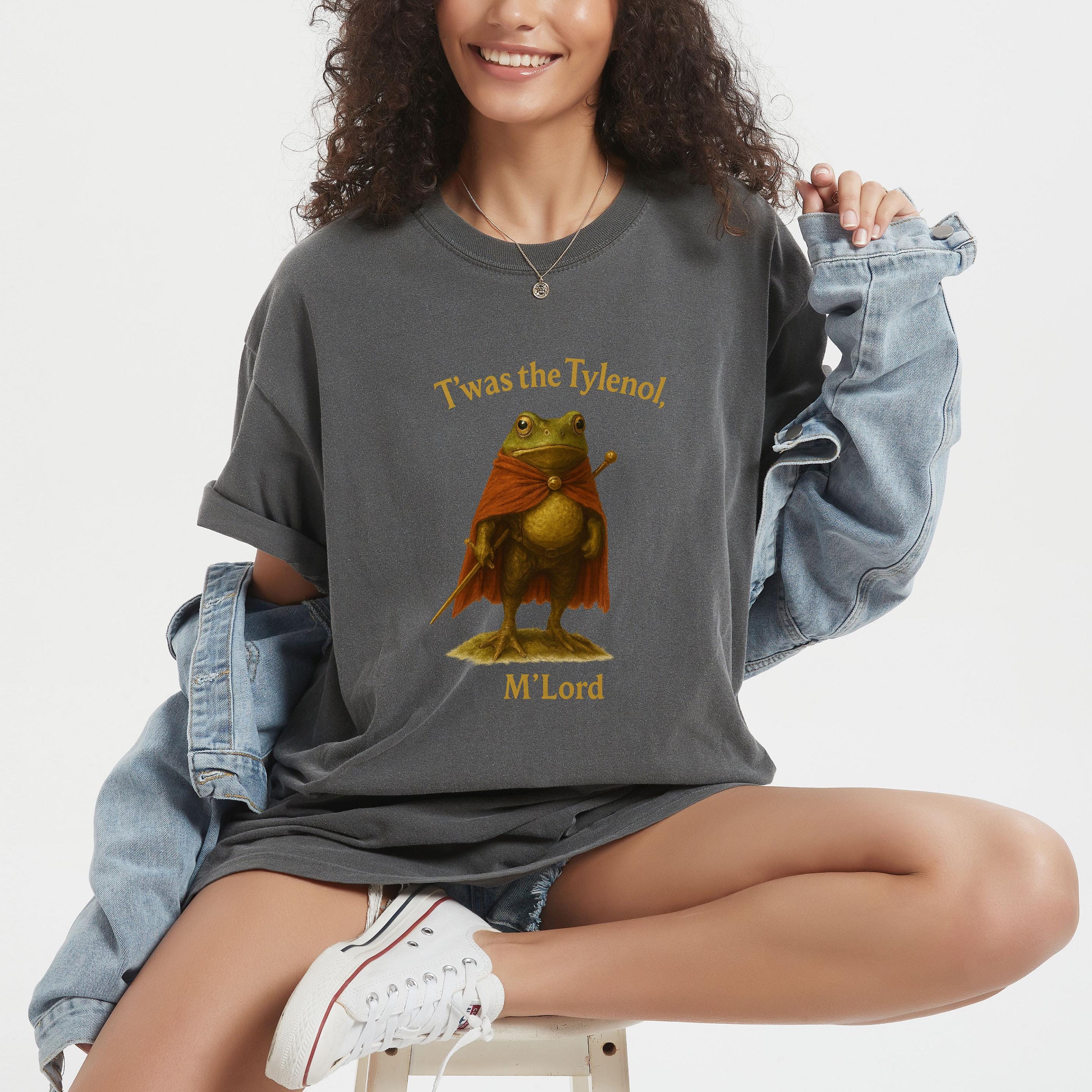 Twas the Tylenol M'lord Comfort Colors® T-Shirt: Tylenol Hoodie, Anti RFK Jr Frog Liberal Sweatshirt 🧵 Product Features Comfort Colors 1717 : -The Comfort Colors 1717 tee is made with medium fabric (6.1 oz/yd² (206.8 g/m²)) consisting of high quality, 100% ring-spun US cotton for long-lasting comfort. - The relaxed fit keeps the wearer comfy in both casual and semi-formal settings while the crew neckline delivers that classic, neat style which makes it perfect for accessorizing. -All Comfort Colors 1717 shirts feature pre-shrunk cotton for size retention and a signature sewn-in twill label. -Made using 100% US cotton that is ethically grown and harvested.