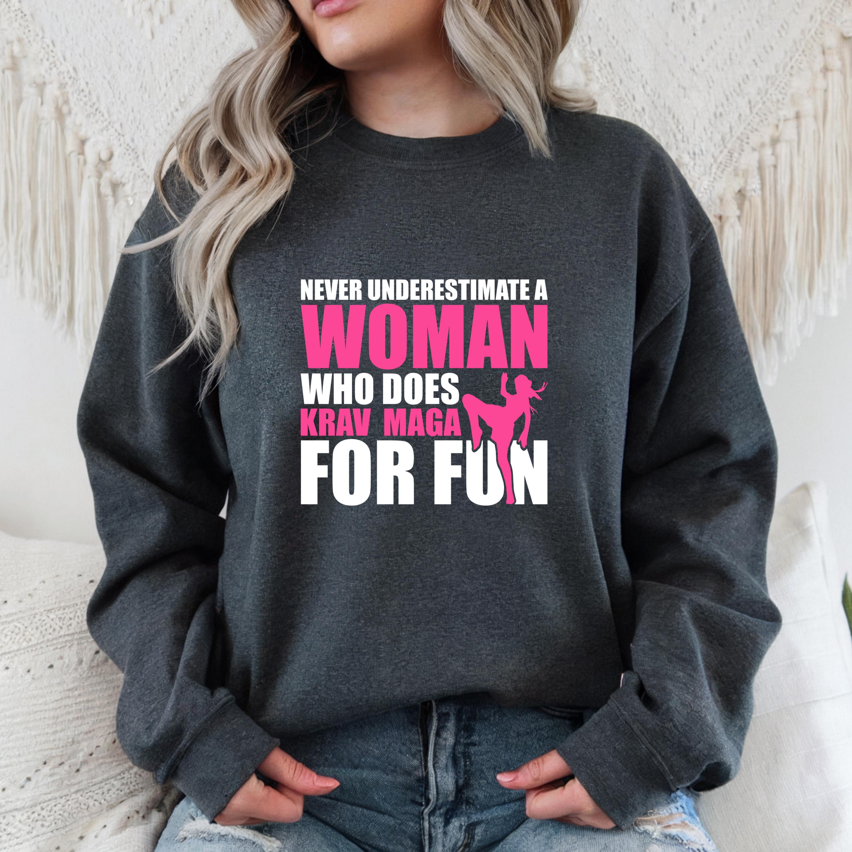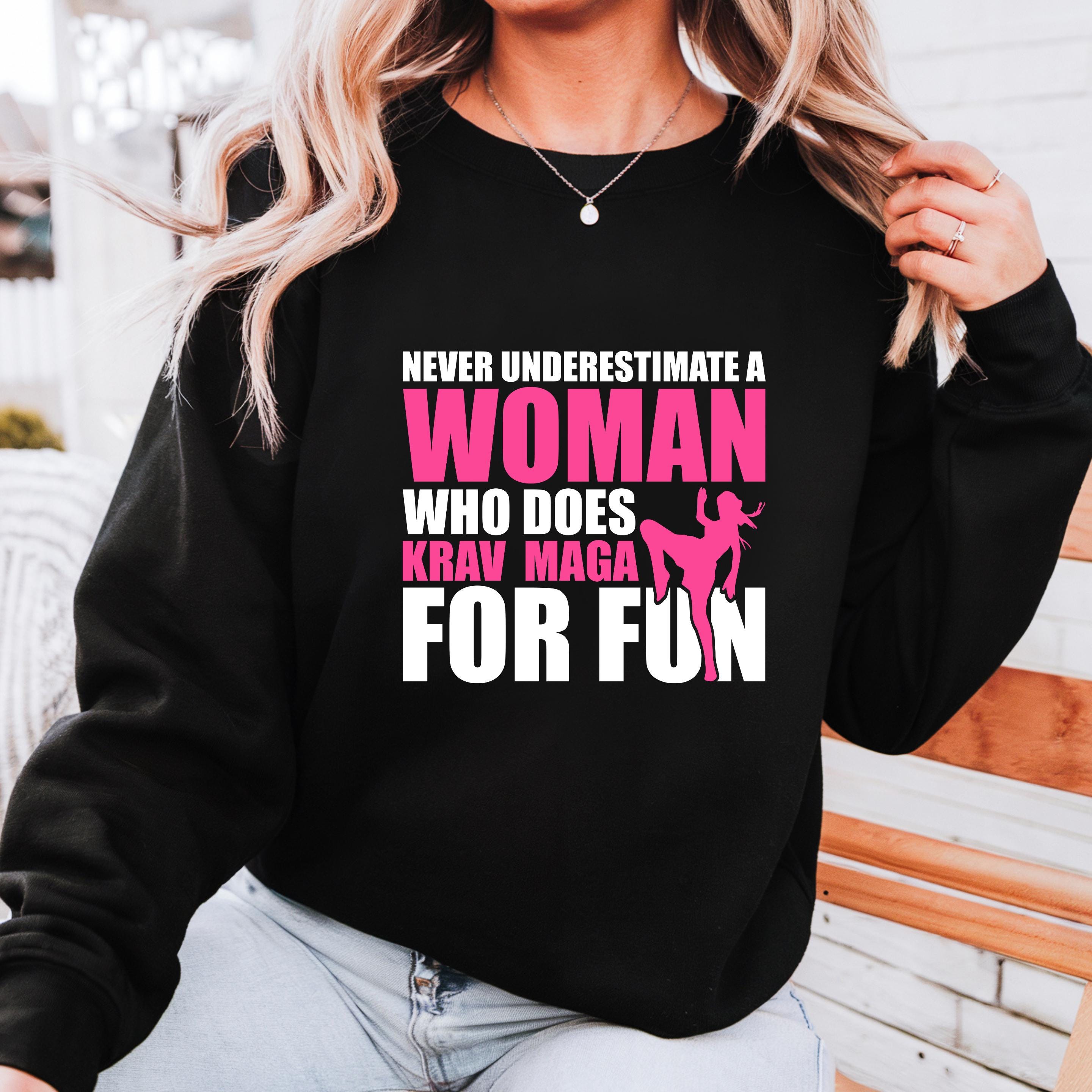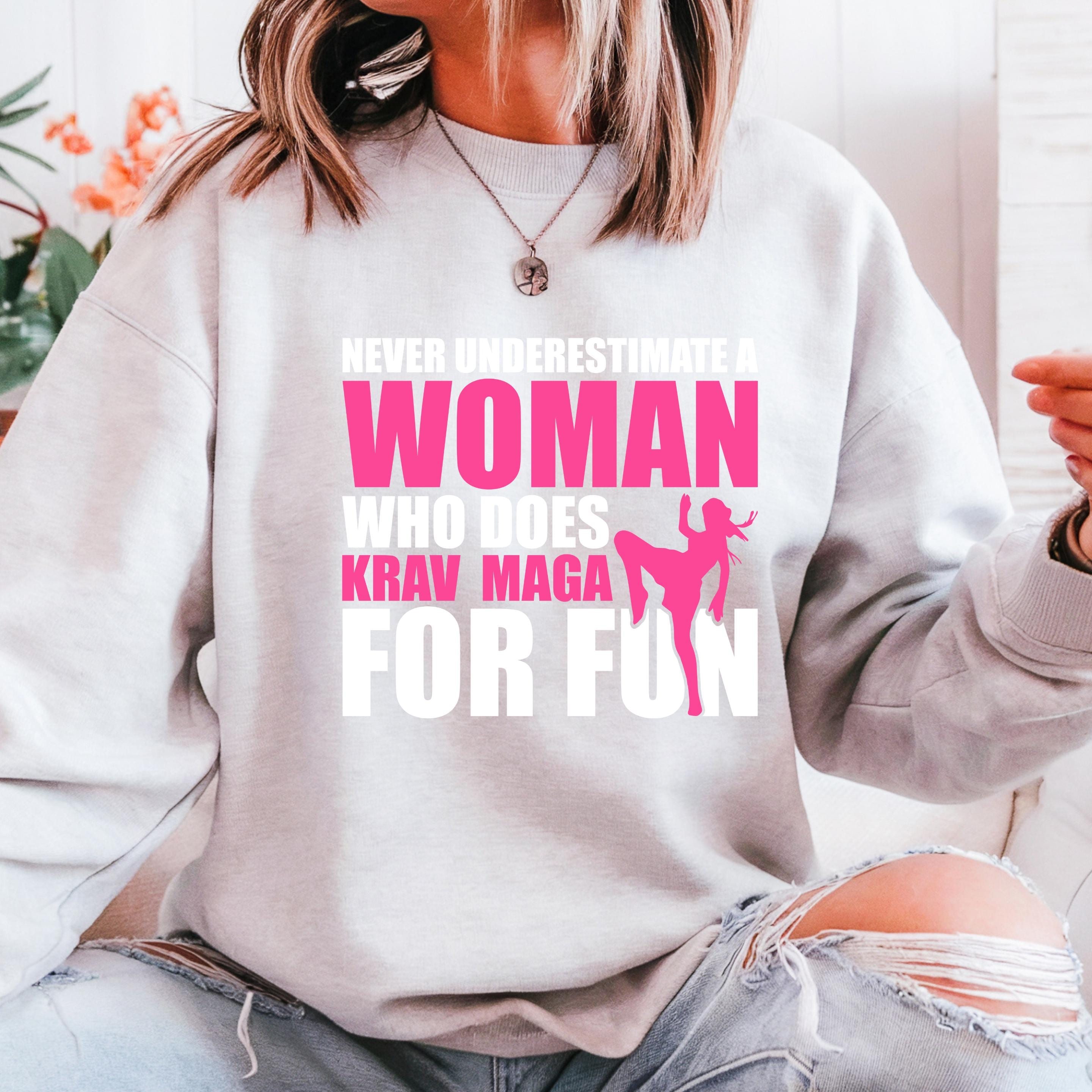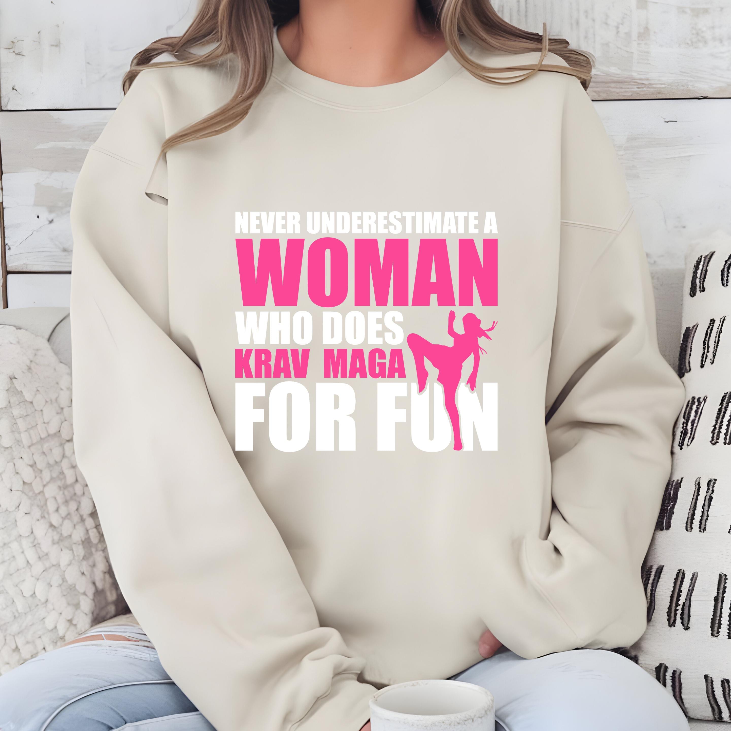 Never Underestimate a Woman Who Does Krav Maga for Fun Gildan Sweatshirt, Martial Arts Mom Comfort Colors Shirt, Gift for Krav Maga Girl