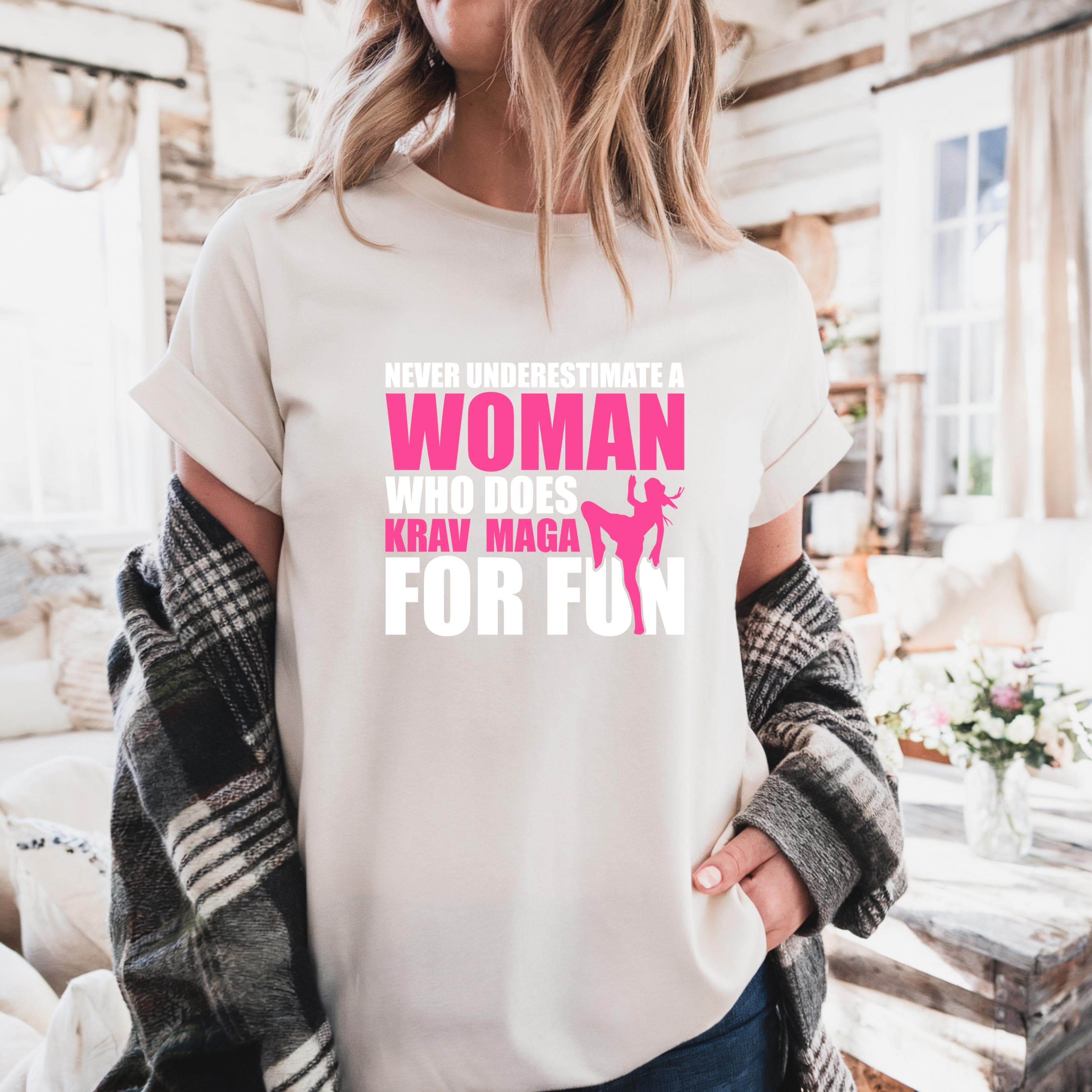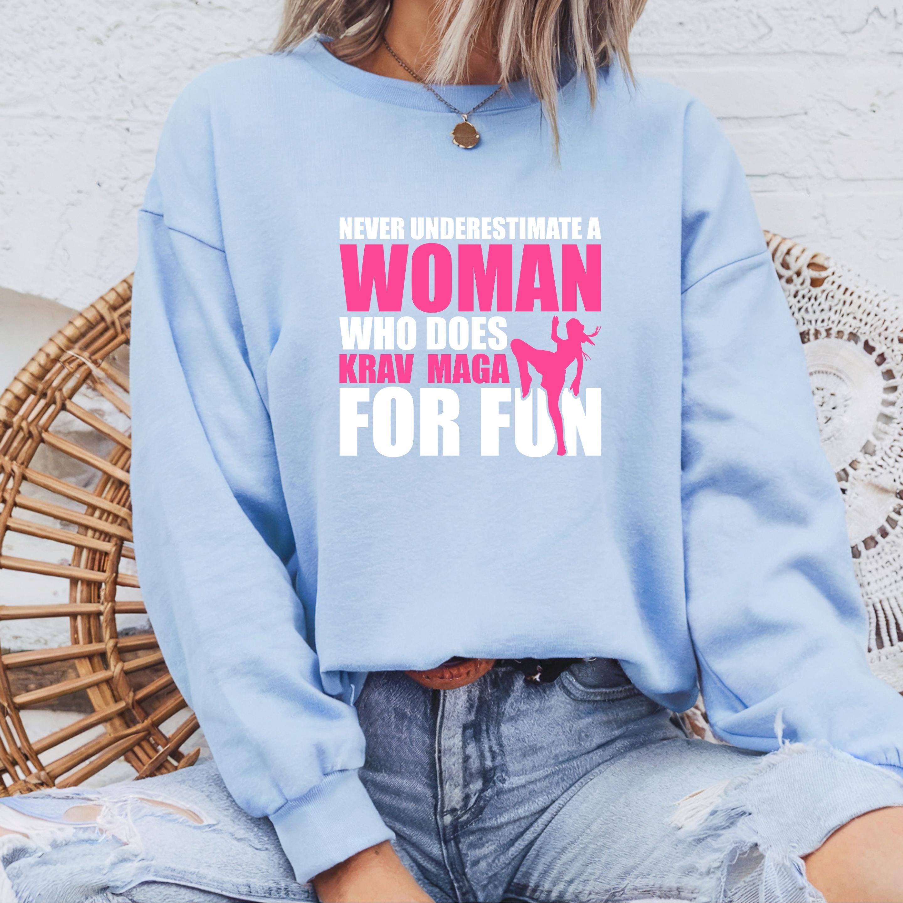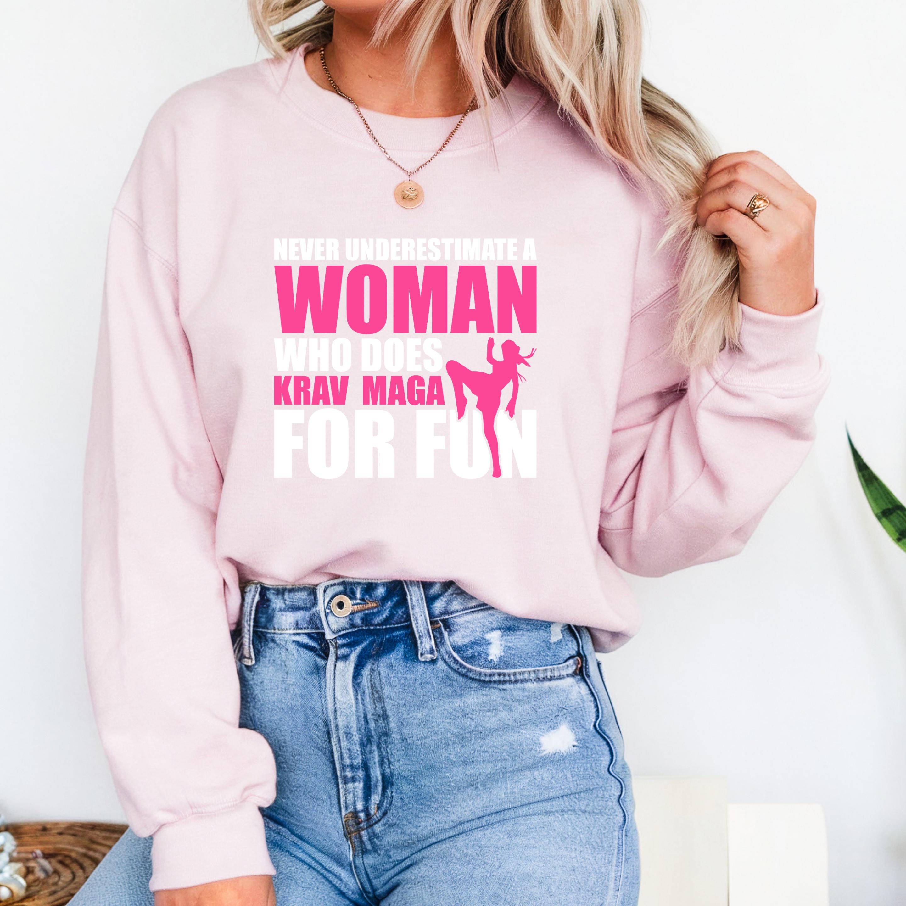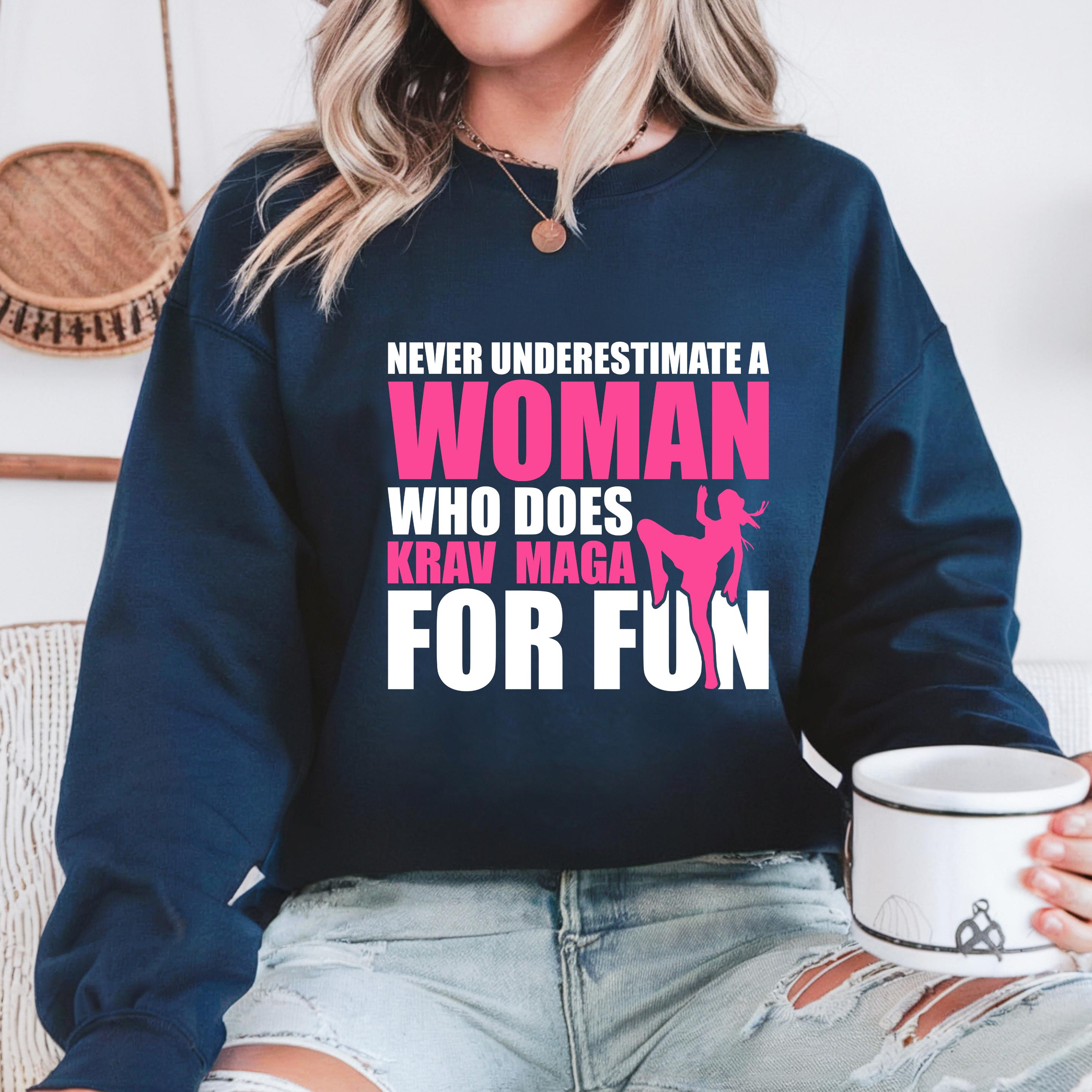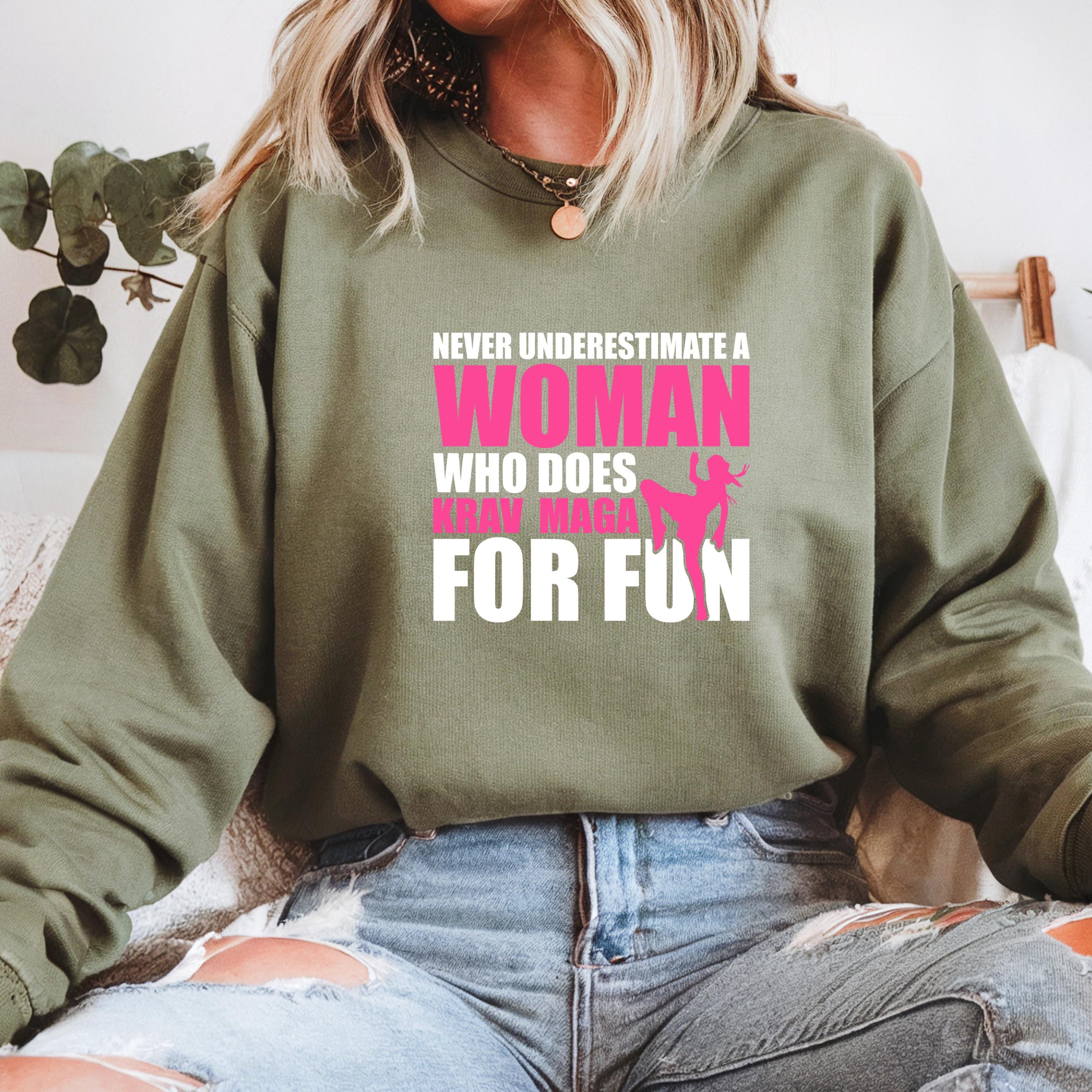 Never Underestimate a Woman Who Does Krav Maga for Fun Gildan Sweatshirt, Martial Arts Mom Comfort Colors Shirt, Gift for Krav Maga Girl