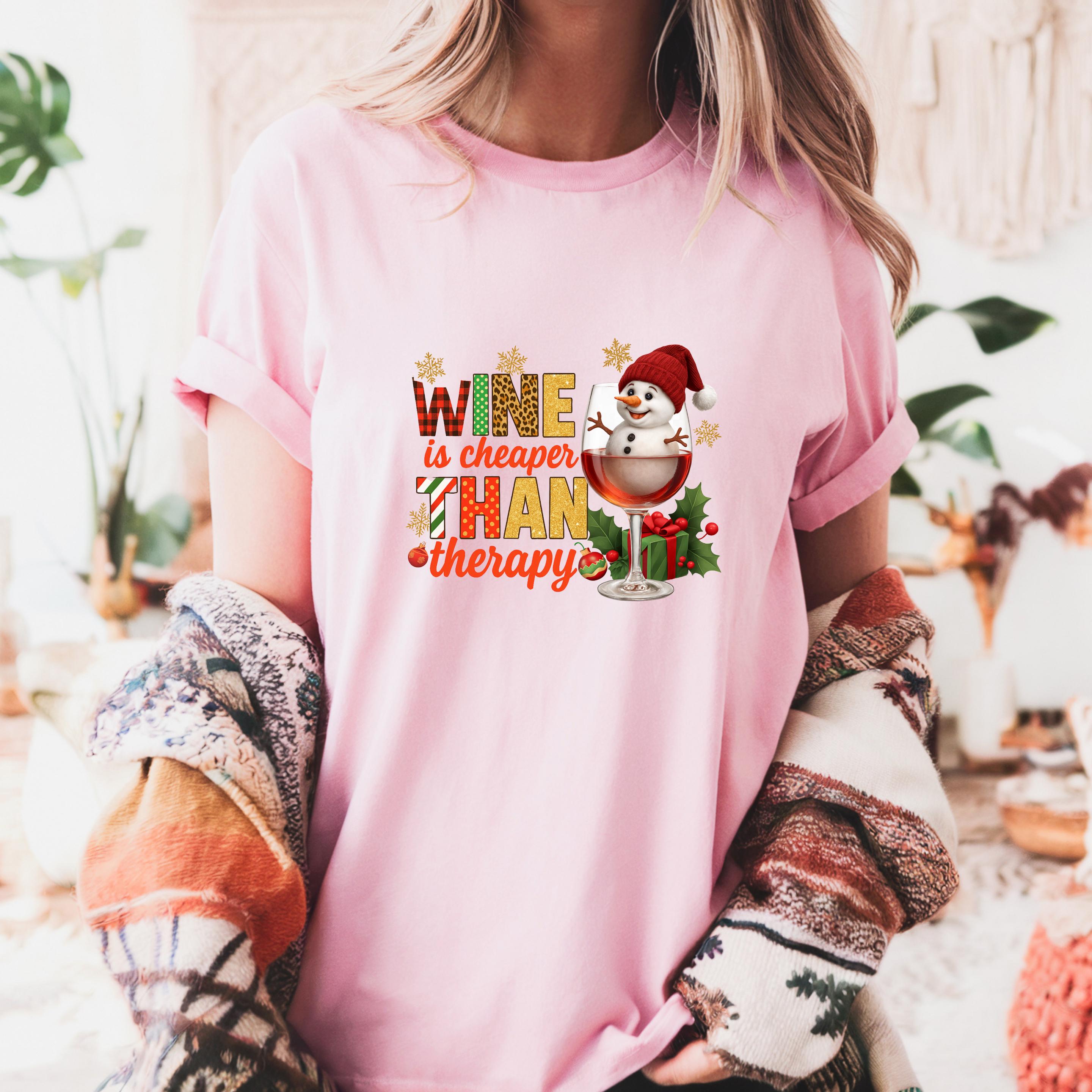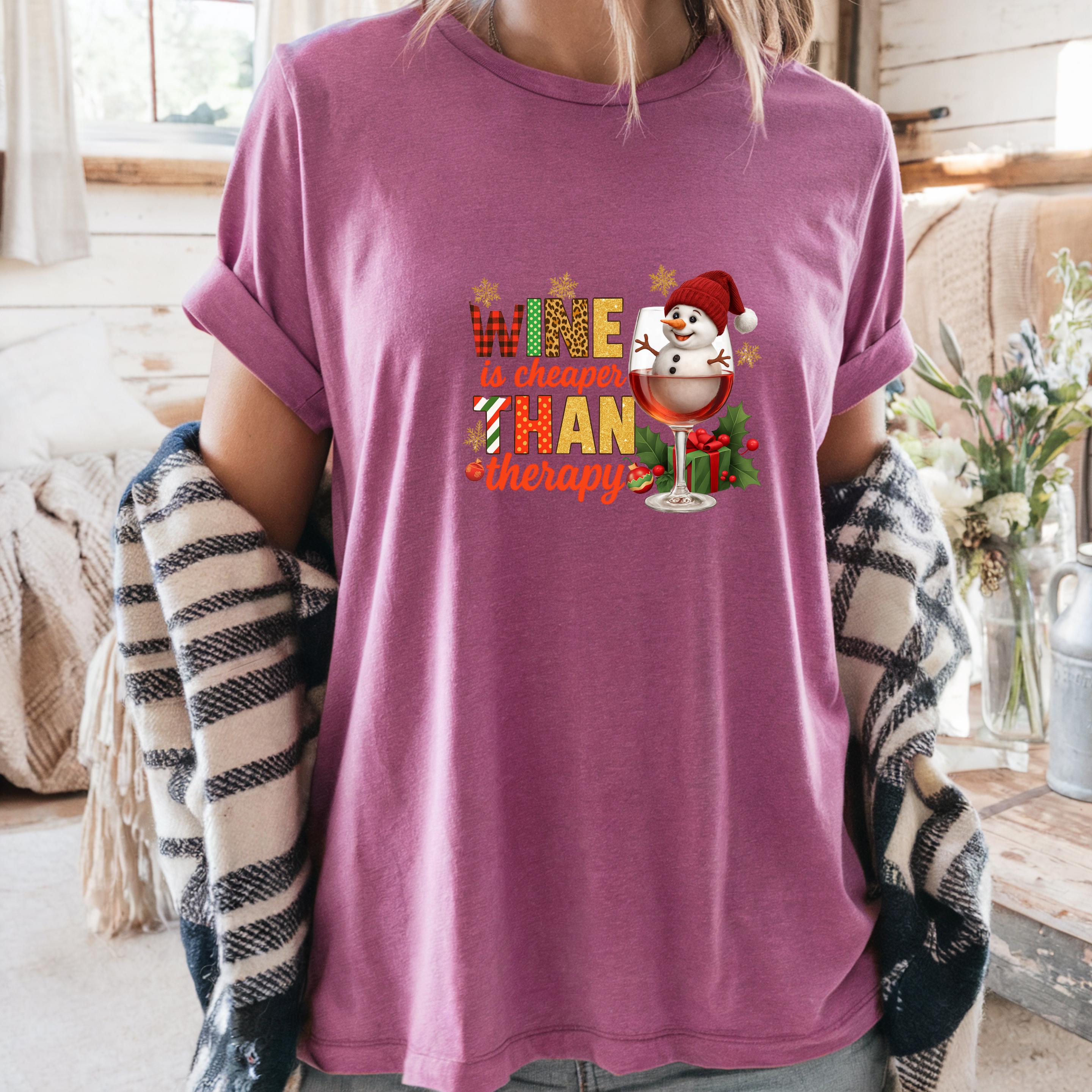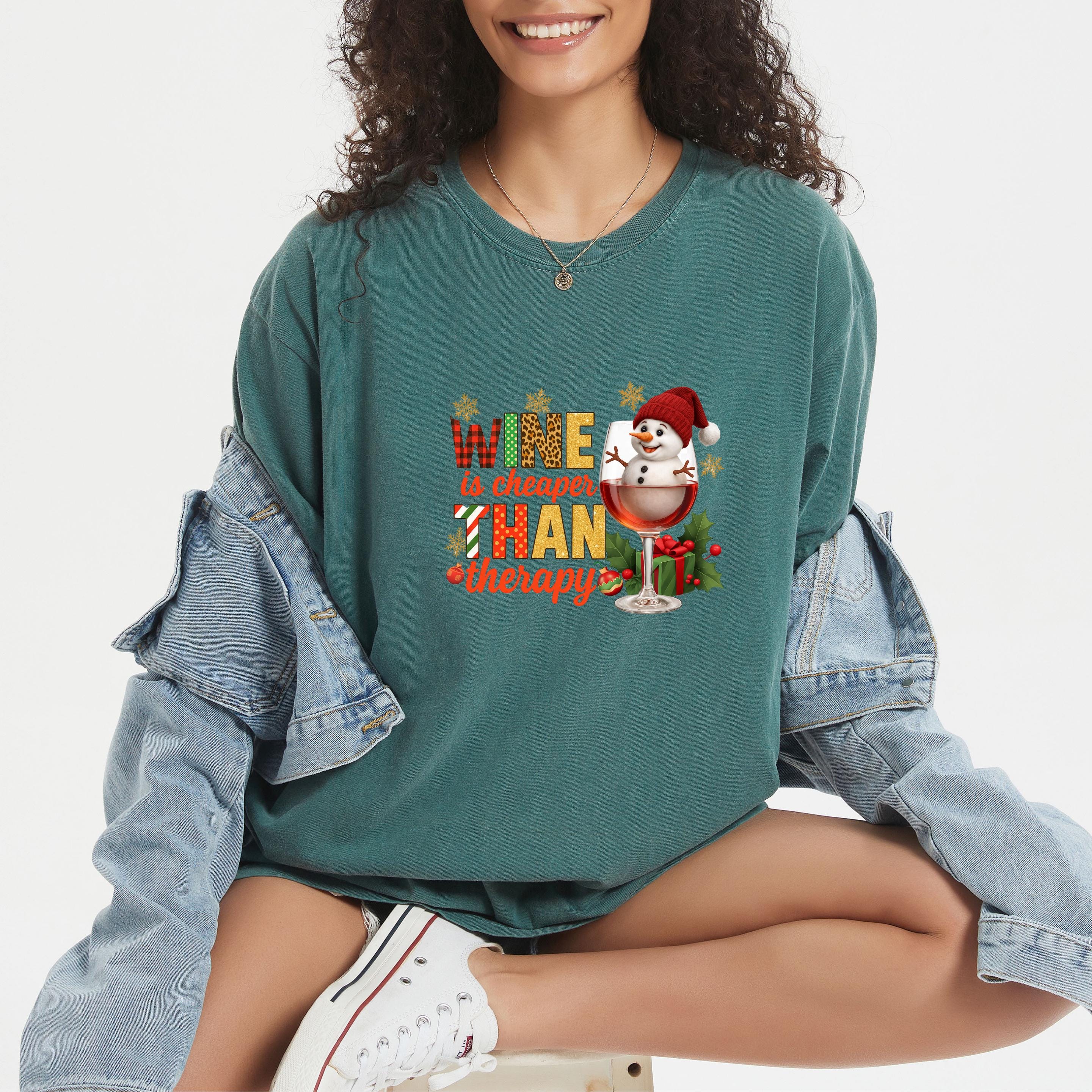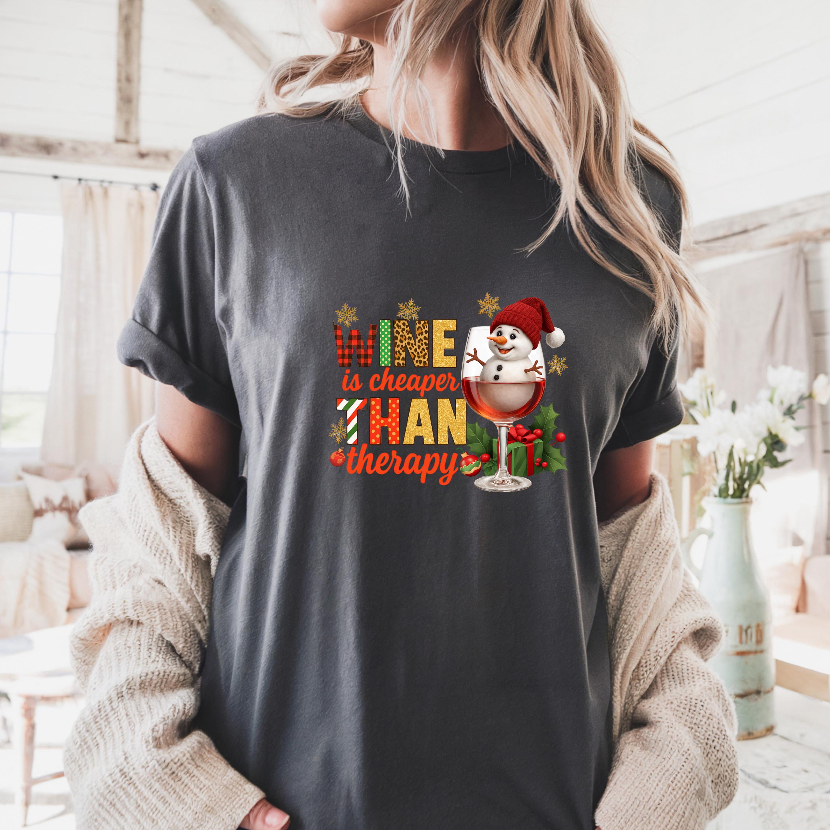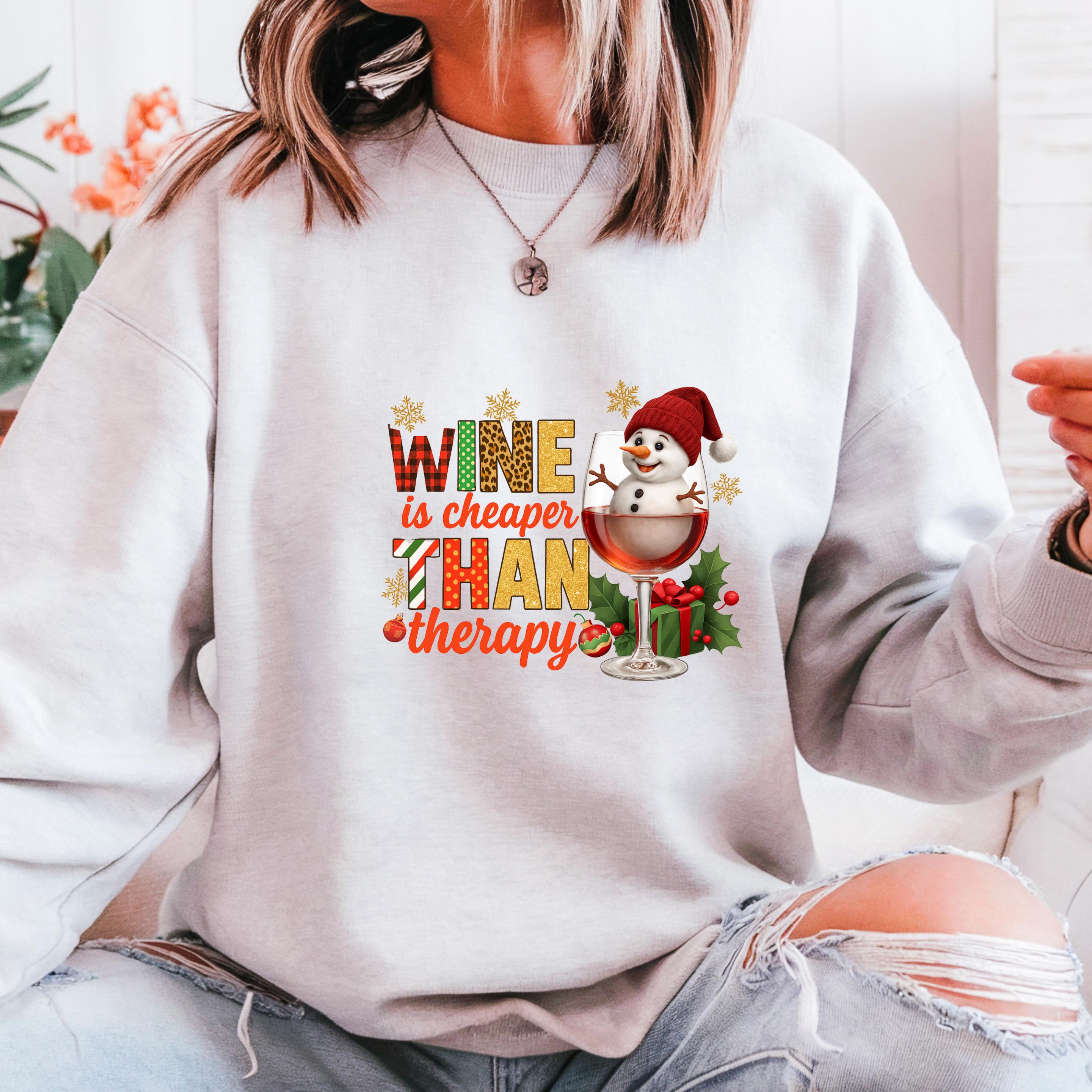 Christmas Wine Gildan Sweatshirt, Wine is Cheaper Than Therapy Comfort Colors T-shirt, Funny Wine Hoodie With Snowman
