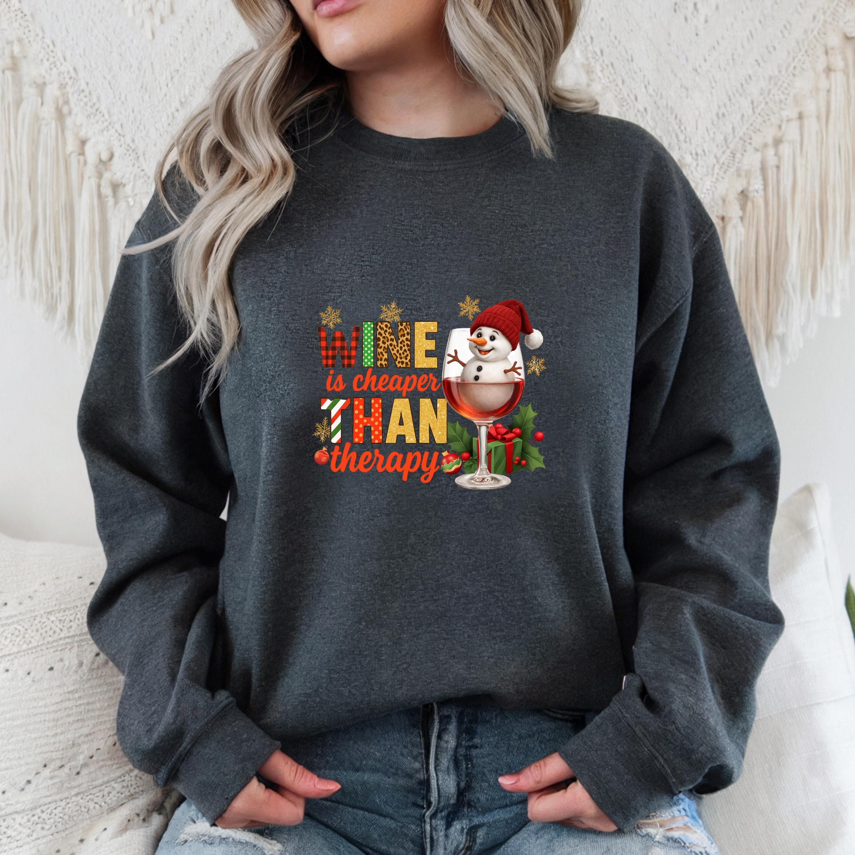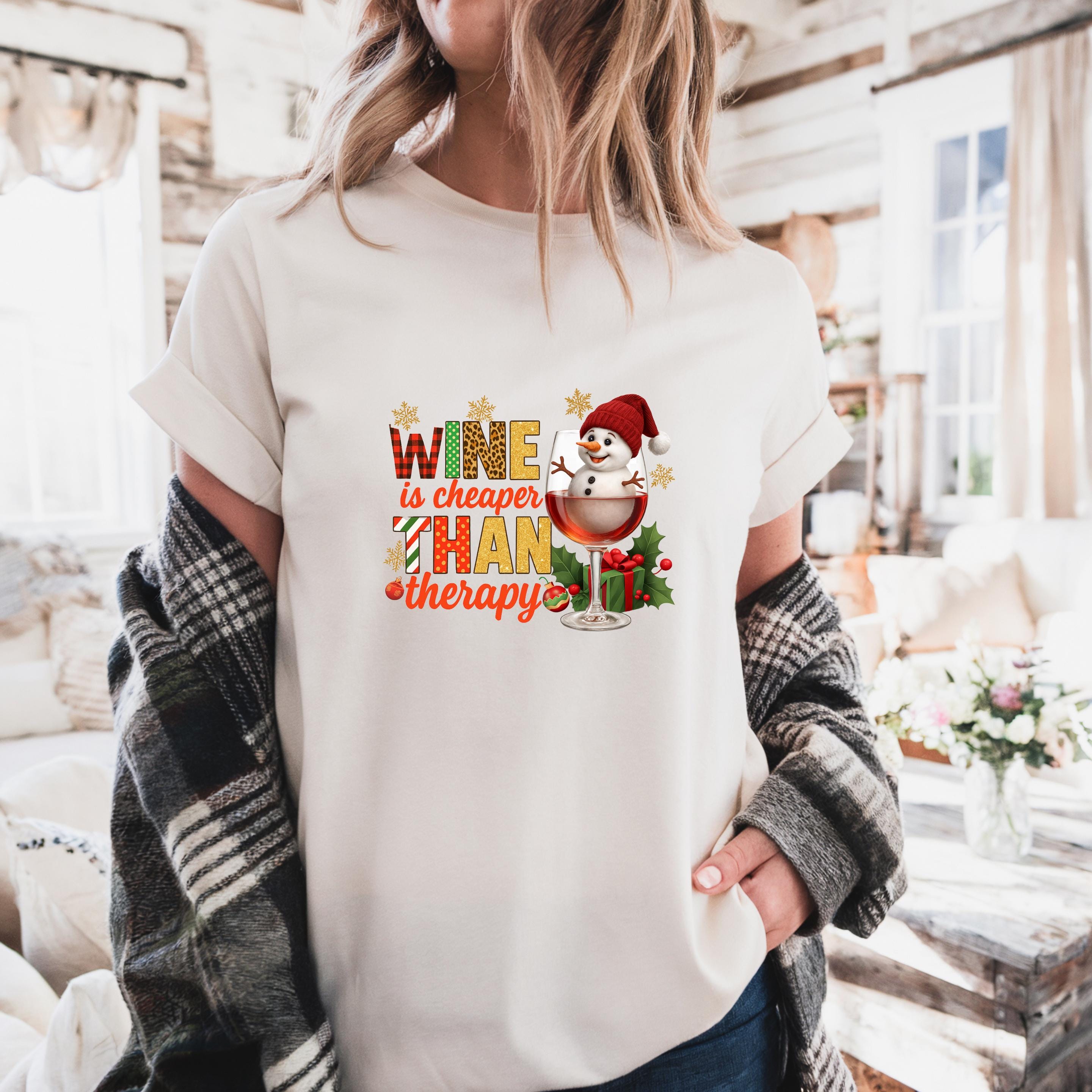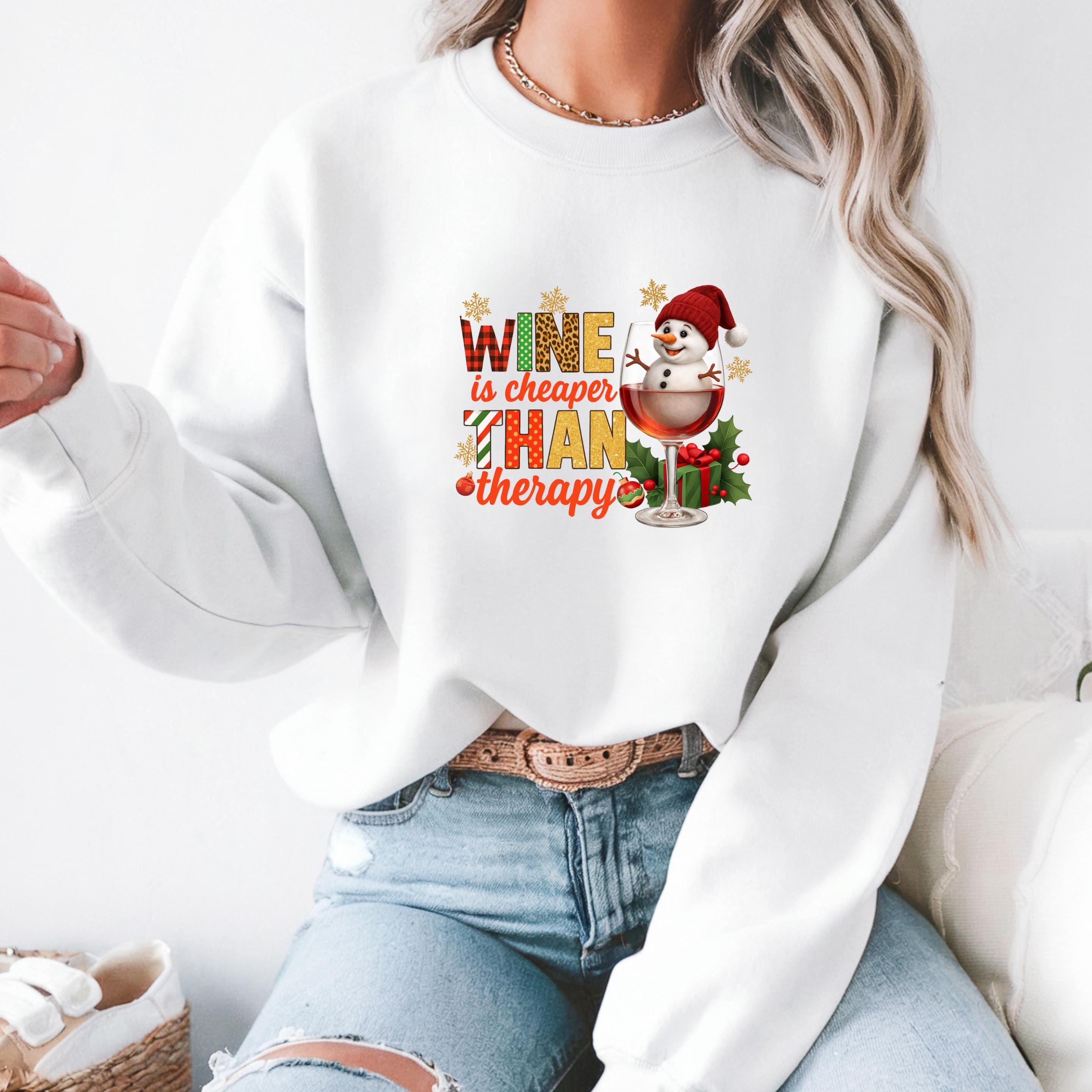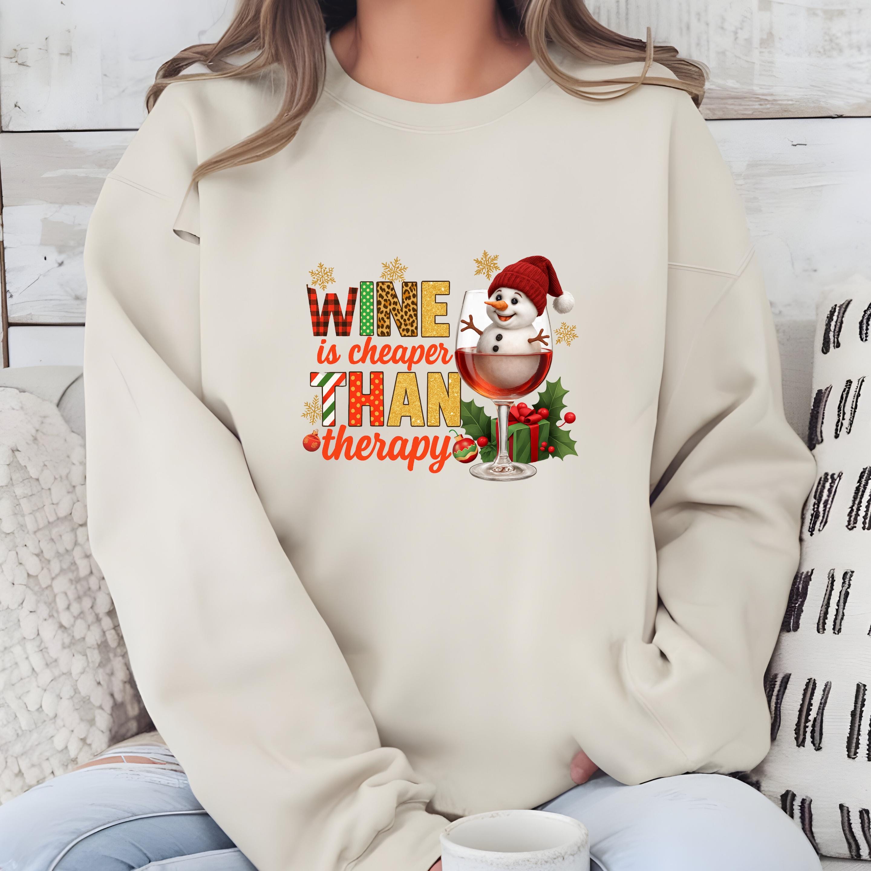 Christmas Wine Gildan Sweatshirt, Wine is Cheaper Than Therapy Comfort Colors T-shirt, Funny Wine Hoodie With Snowman