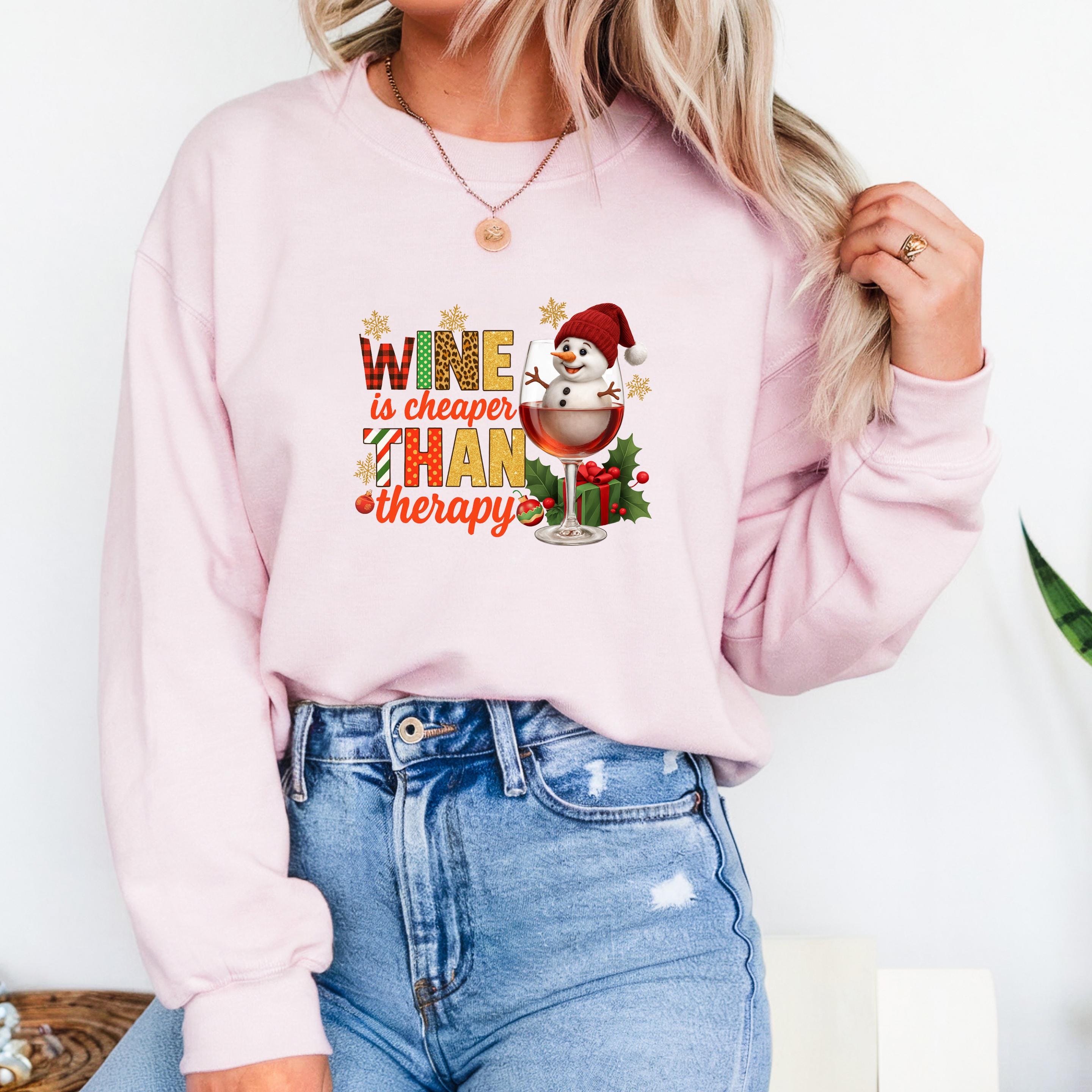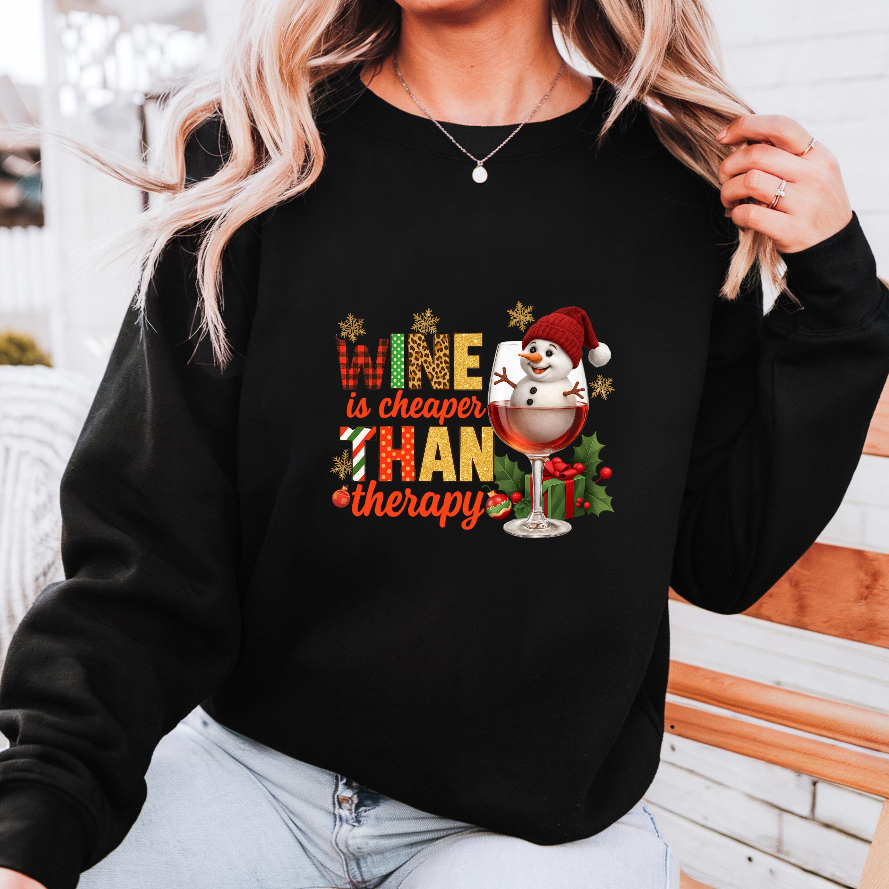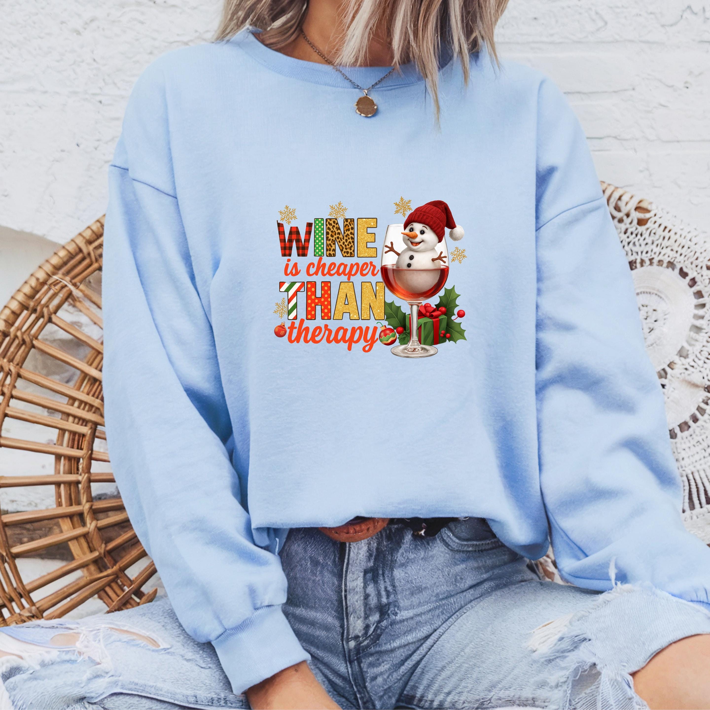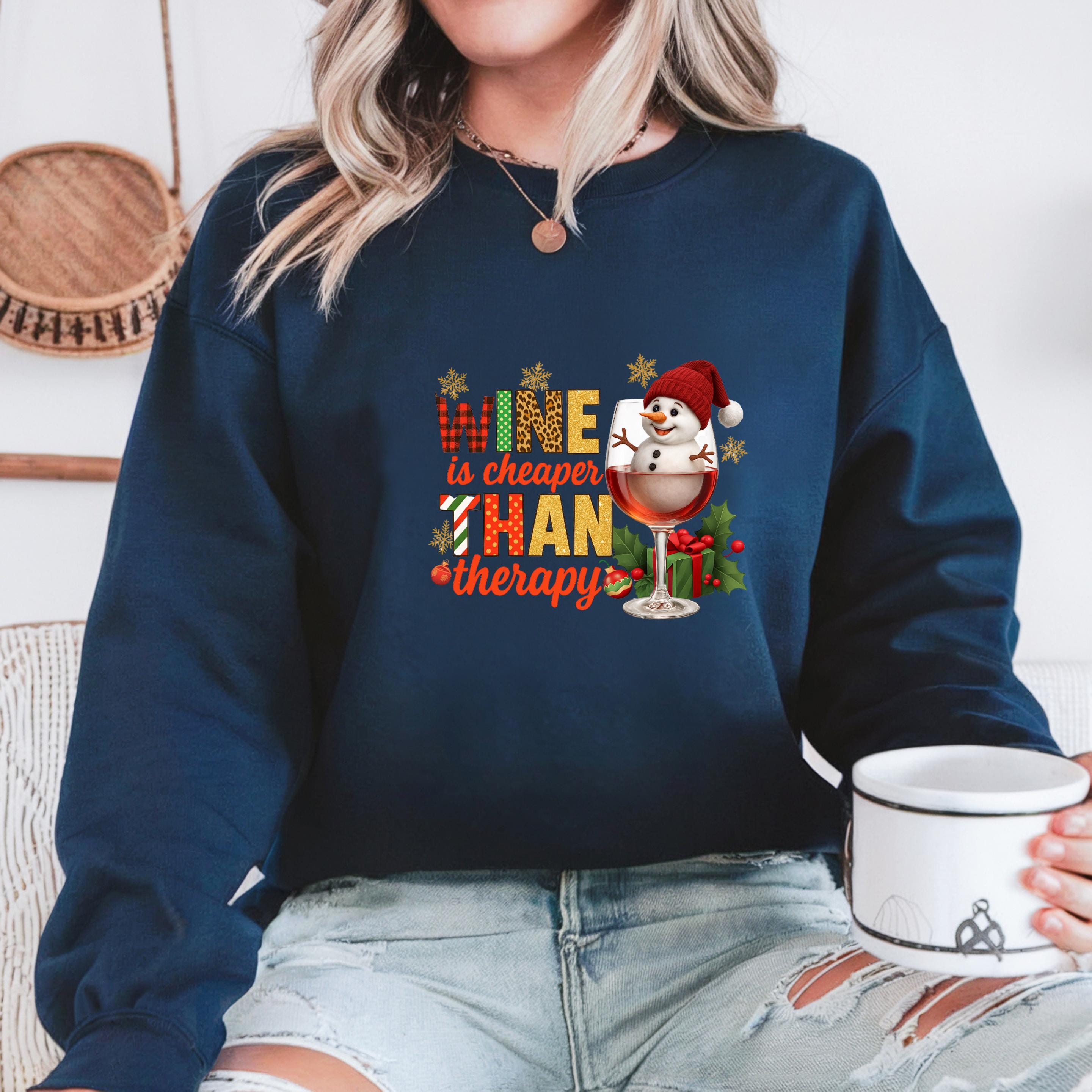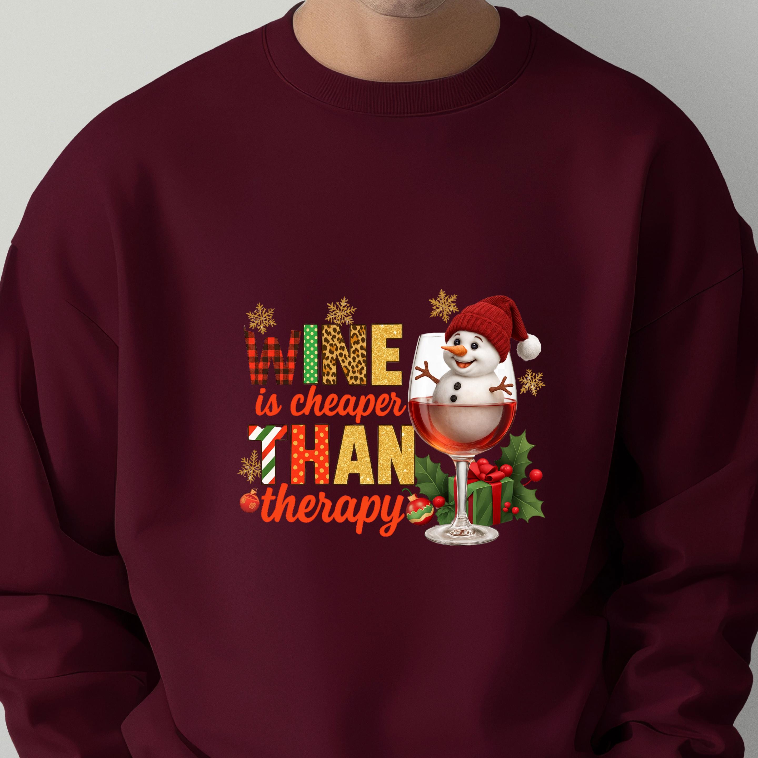 Christmas Wine Gildan Sweatshirt, Wine is Cheaper Than Therapy Comfort Colors T-shirt, Funny Wine Hoodie With Snowman