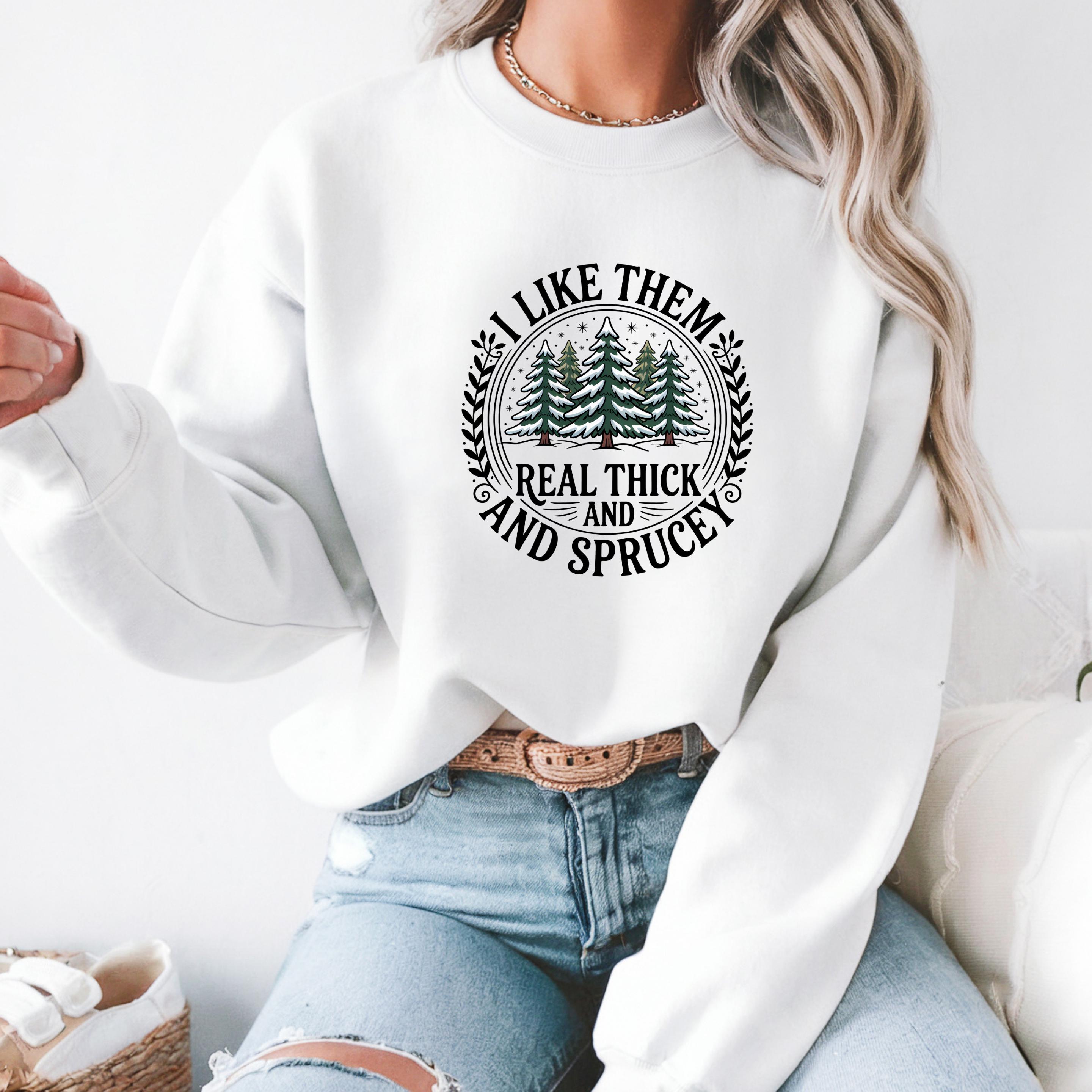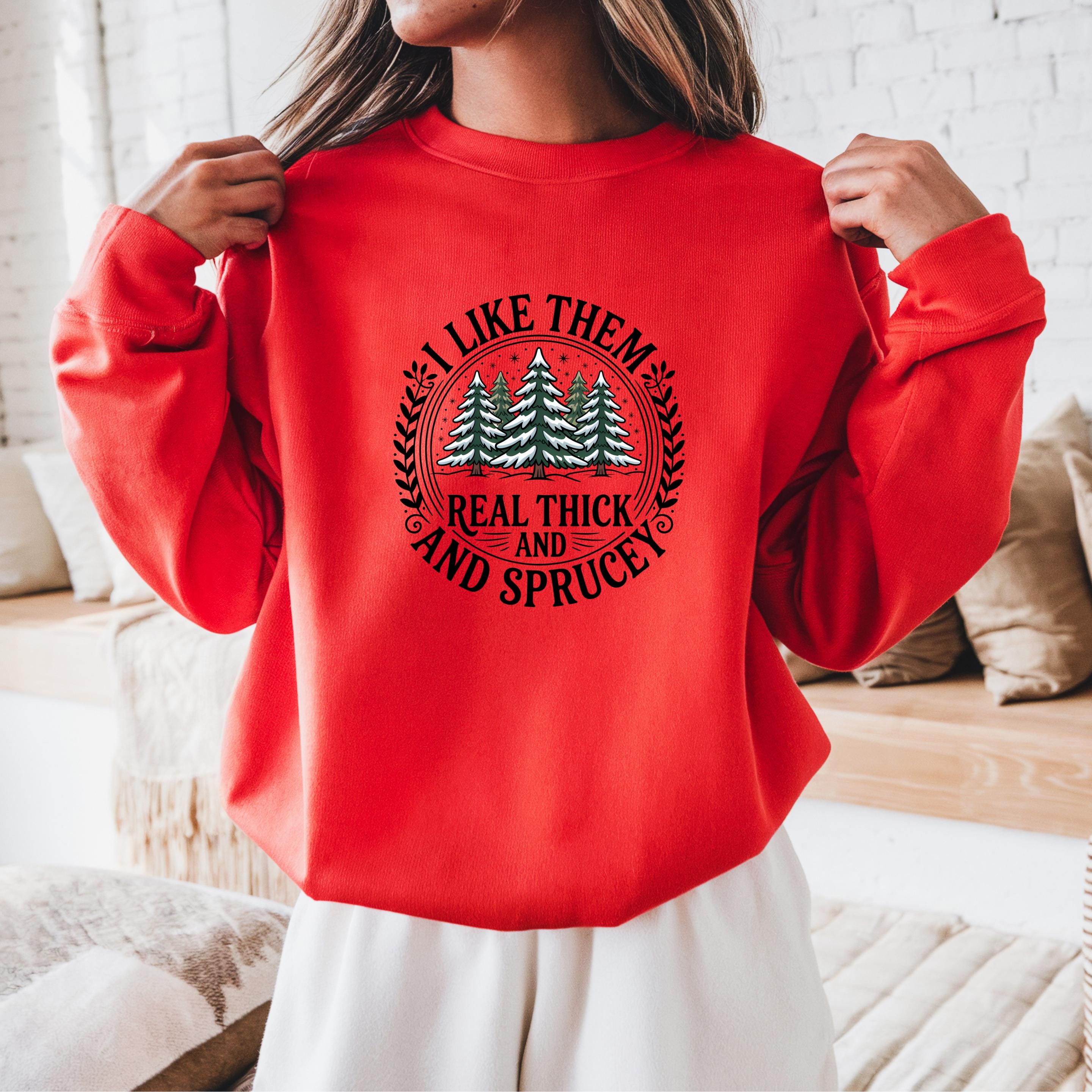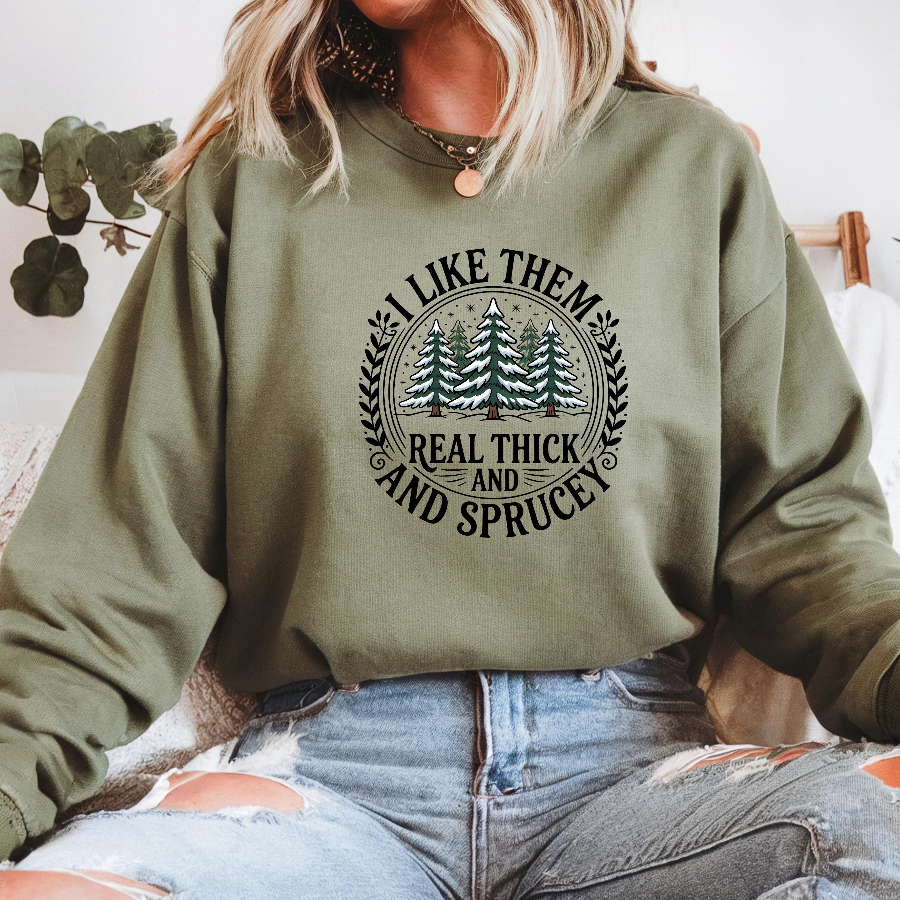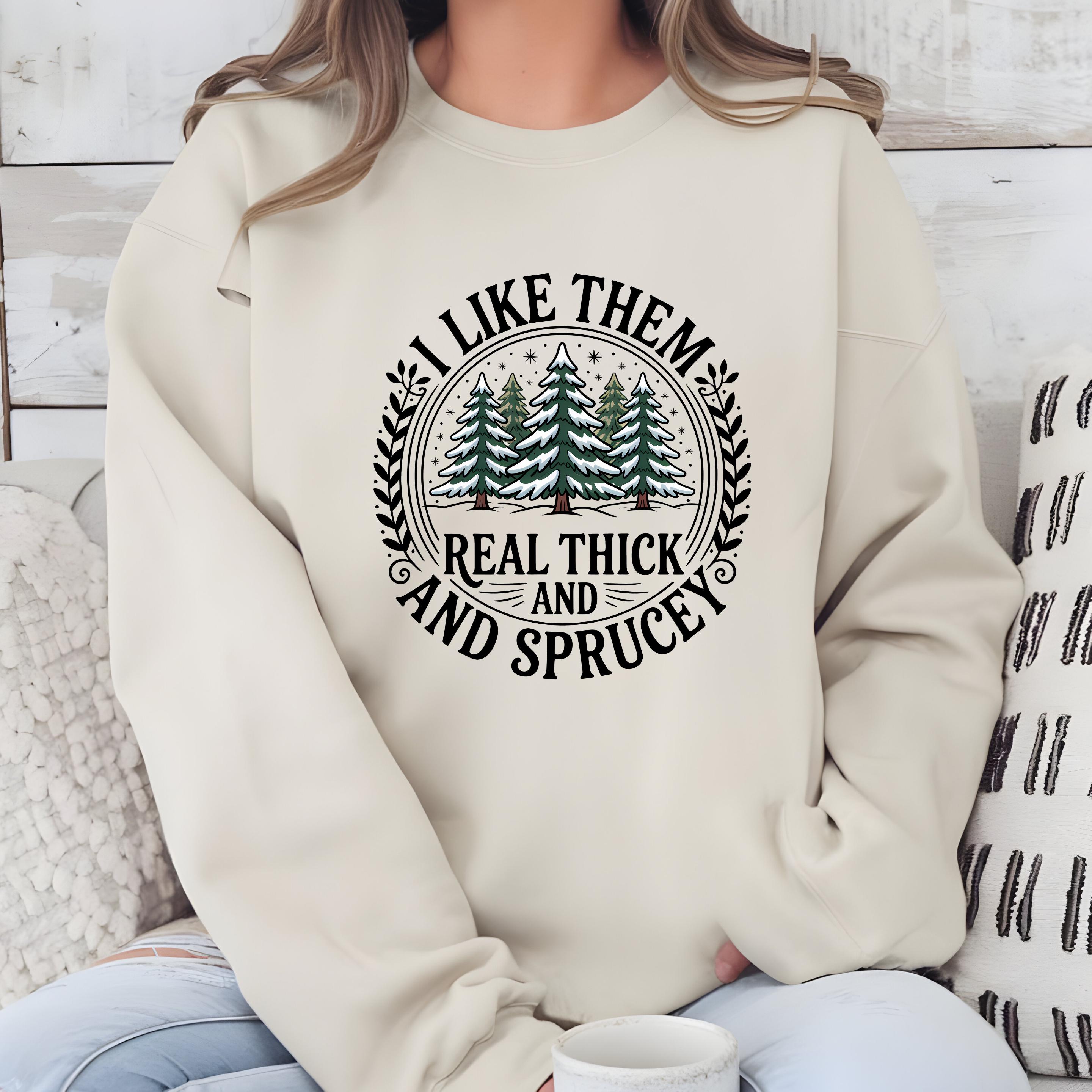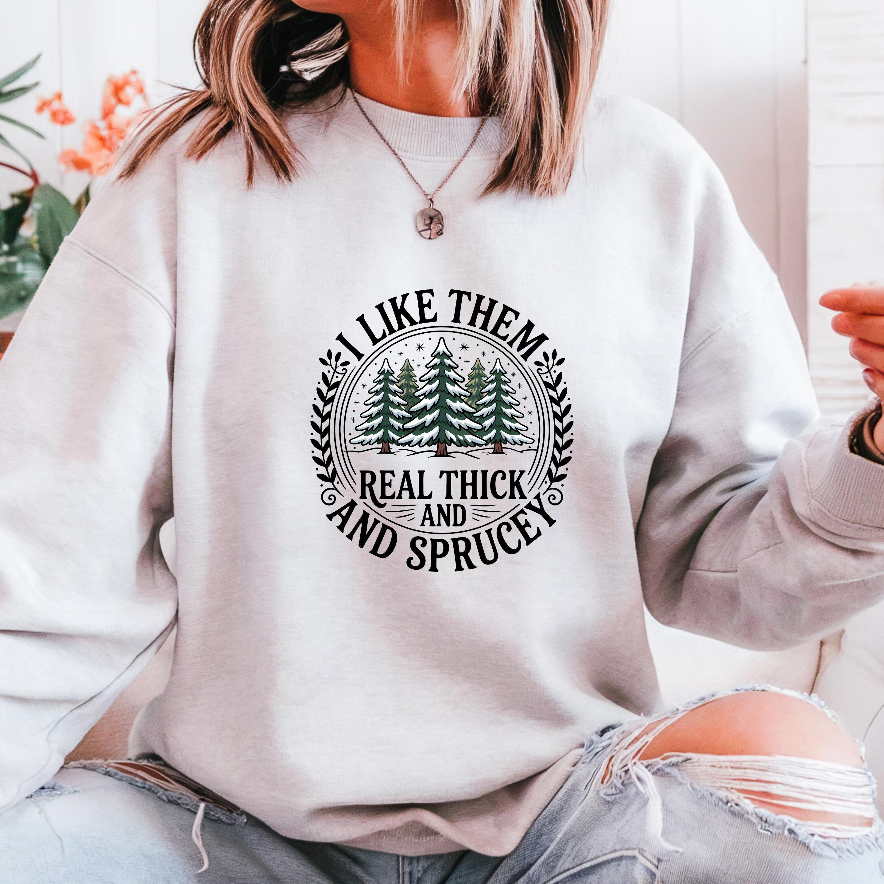 I Like Them Real Thick And Sprucey, Sweatshirt, Funny Christmas Shirt, Funny Christmas Sweatshirt, Cute Christmas Shirt, Retro Christmas