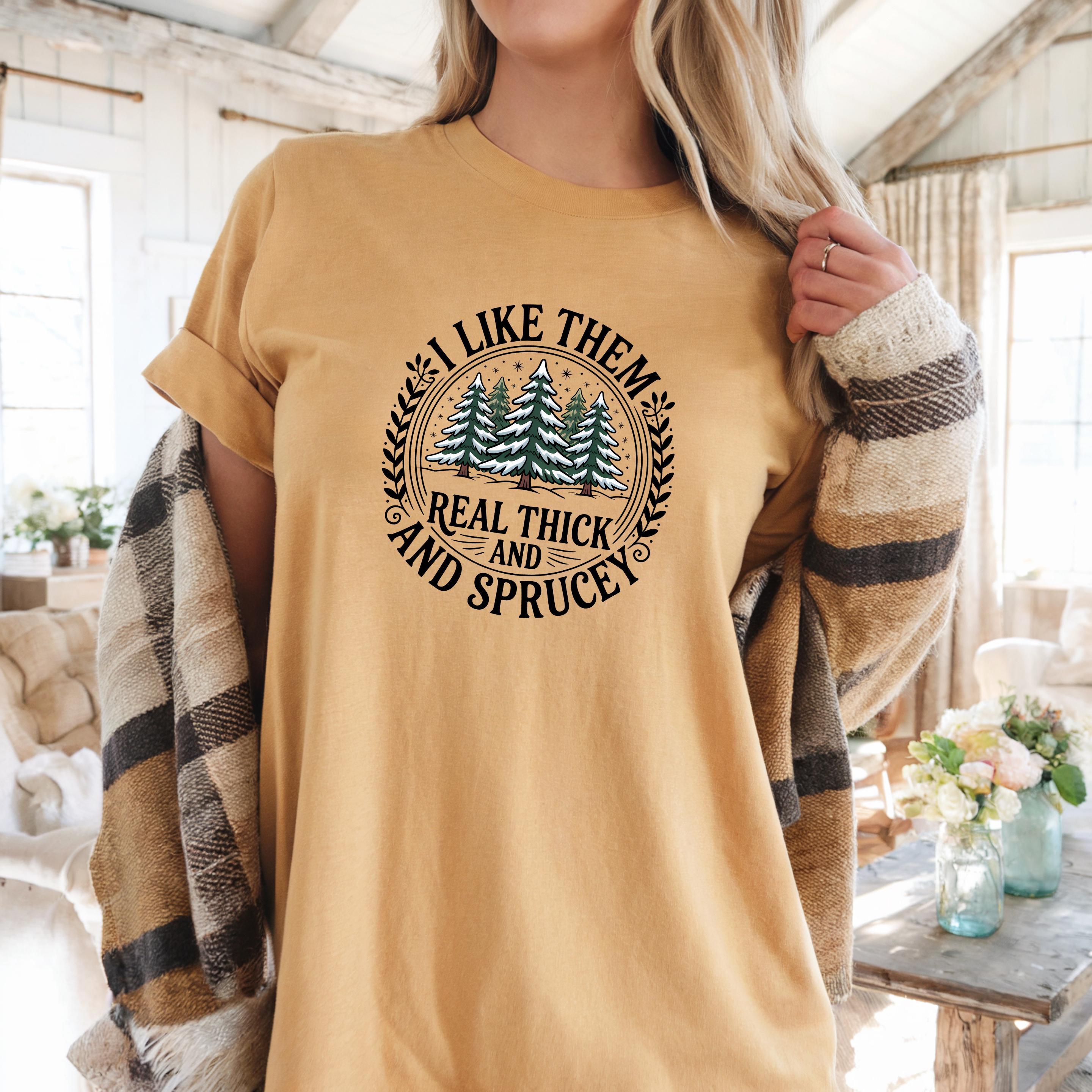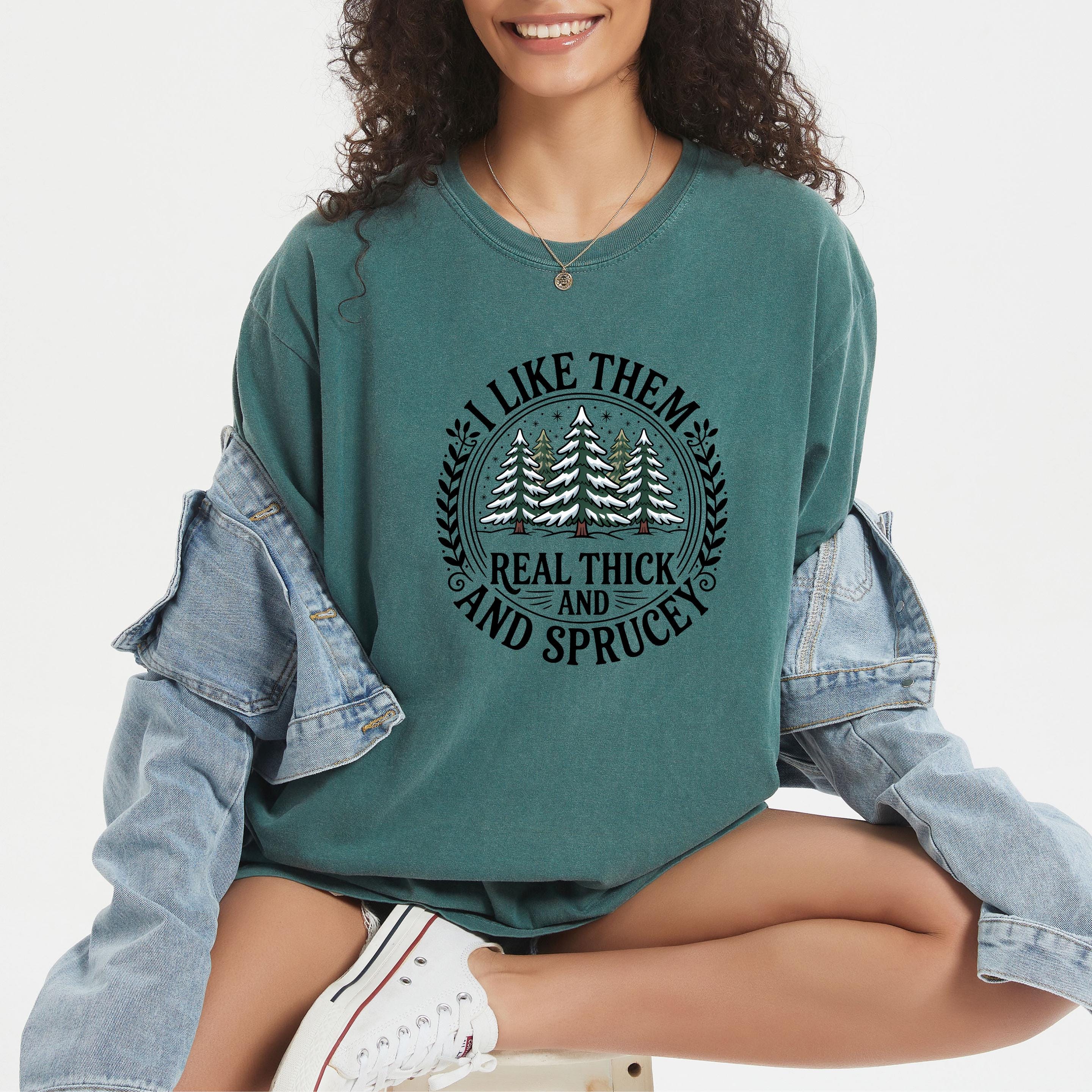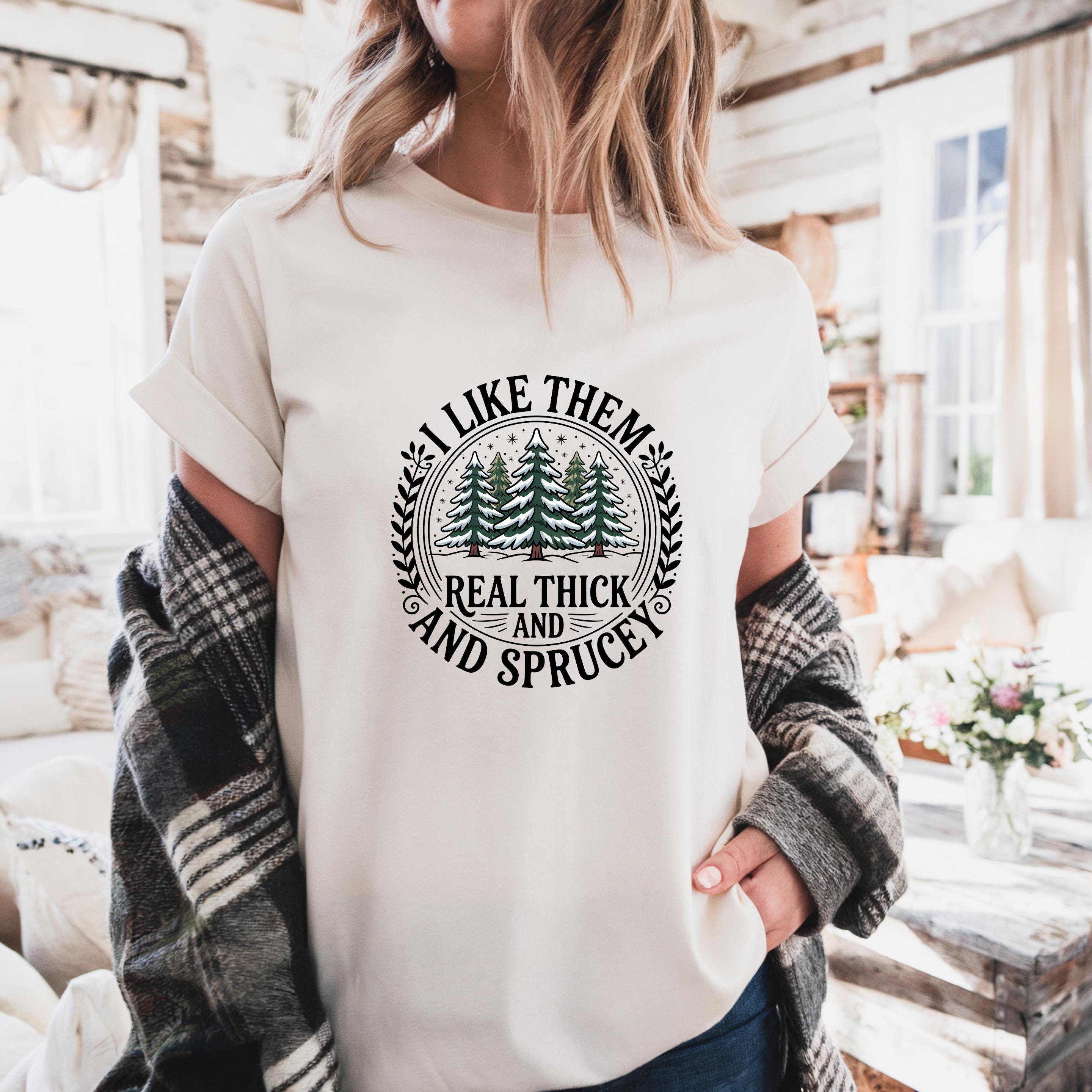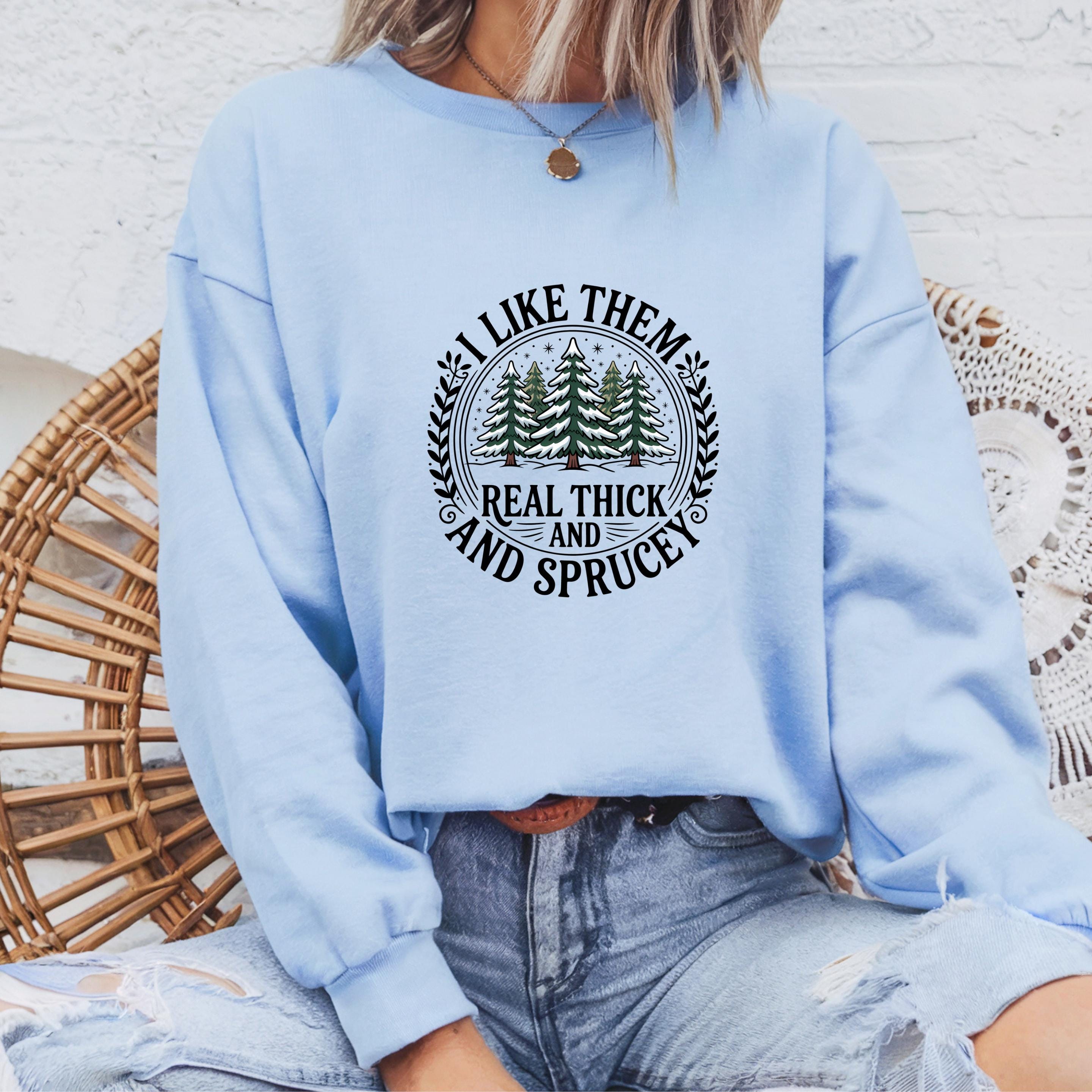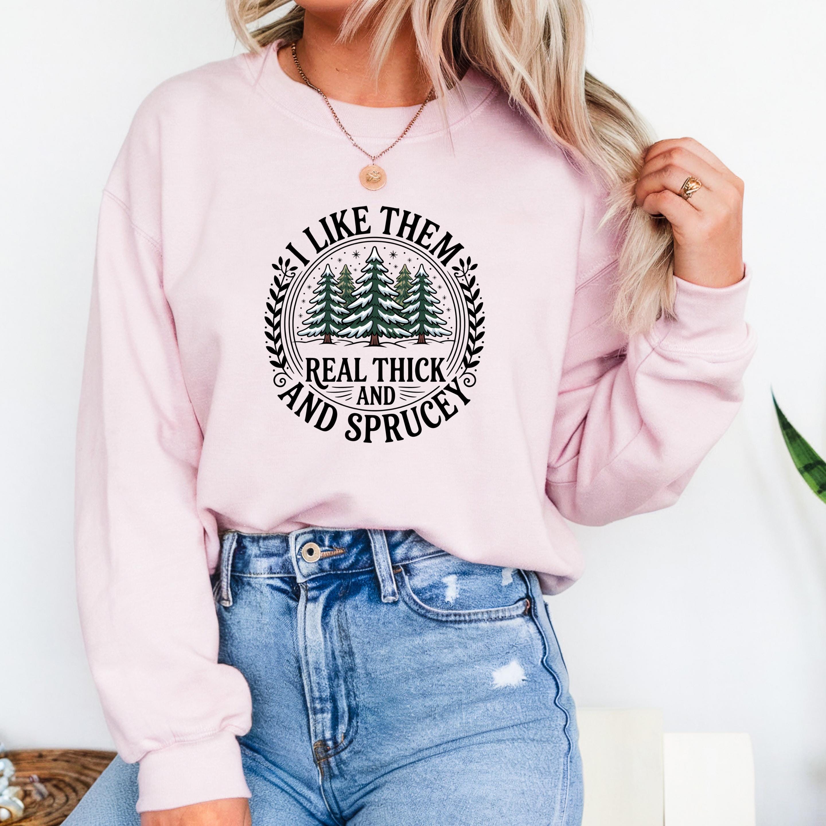 I Like Them Real Thick And Sprucey, Sweatshirt, Funny Christmas Shirt, Funny Christmas Sweatshirt, Cute Christmas Shirt, Retro Christmas
