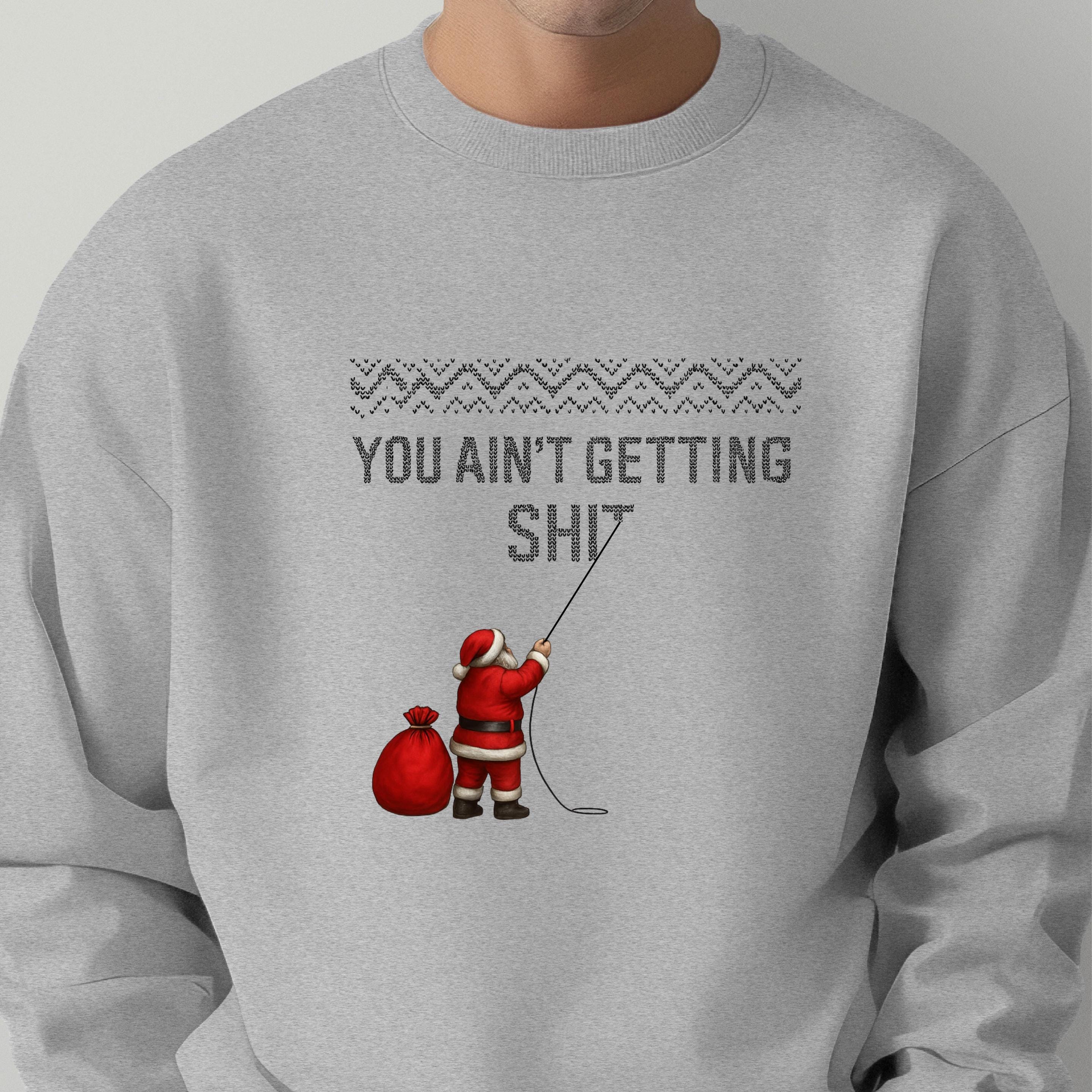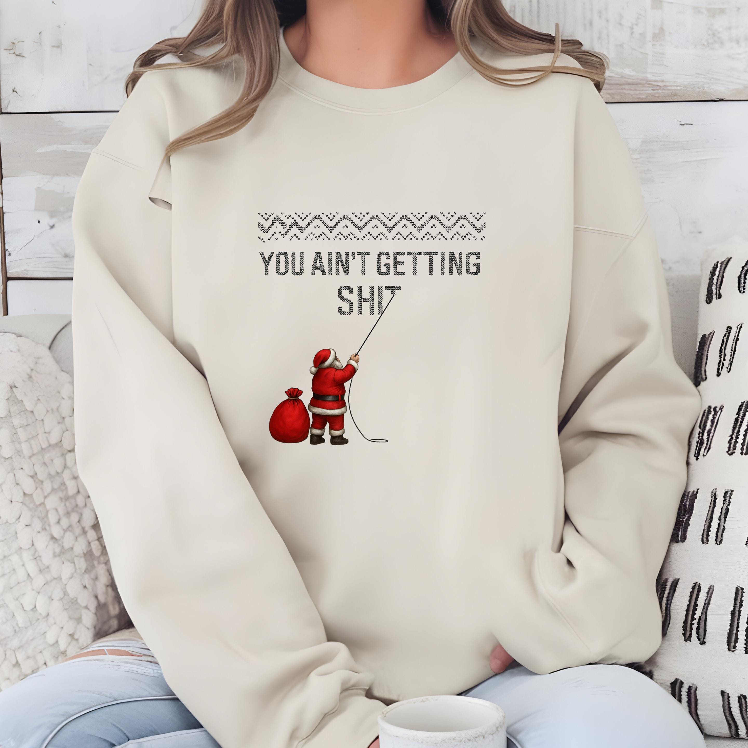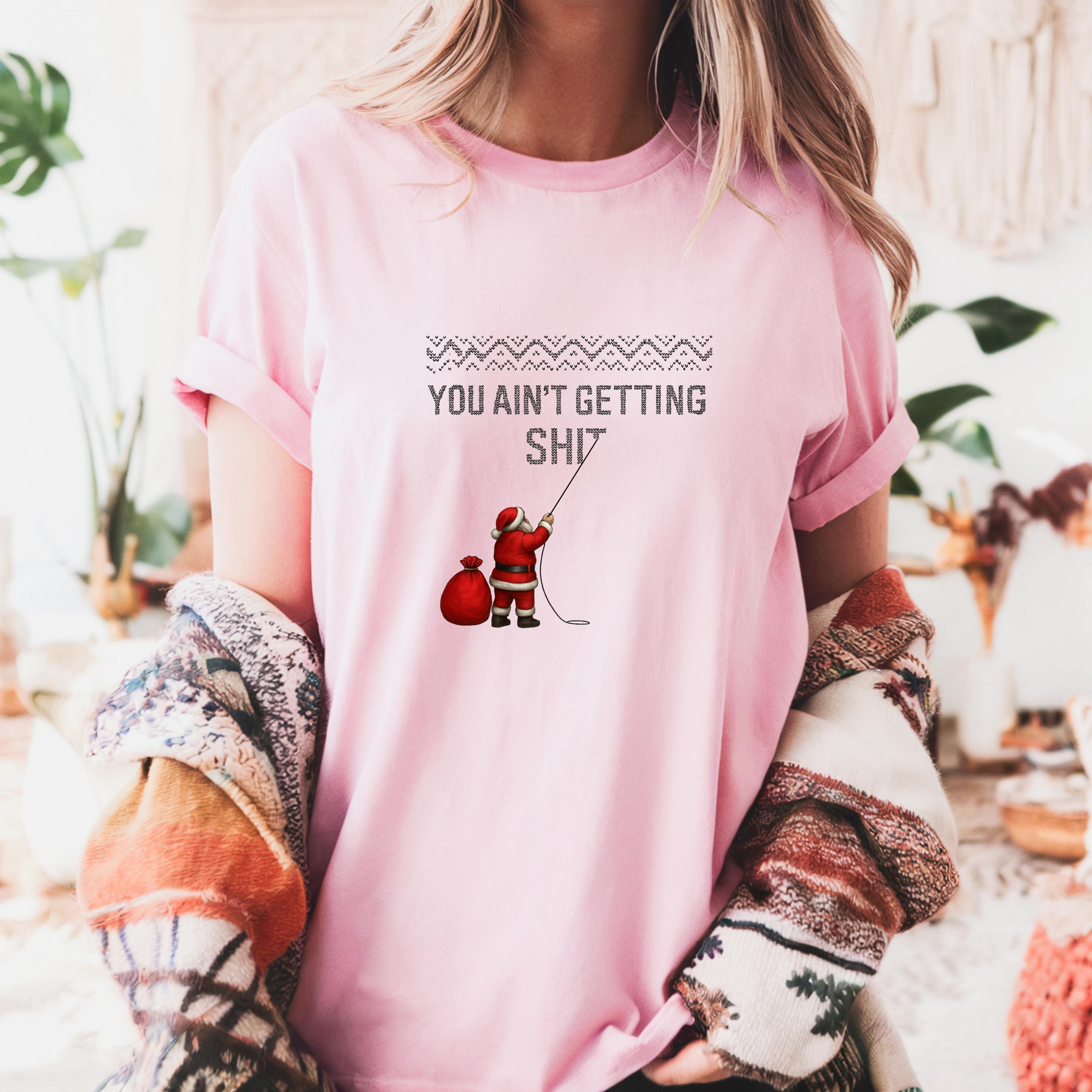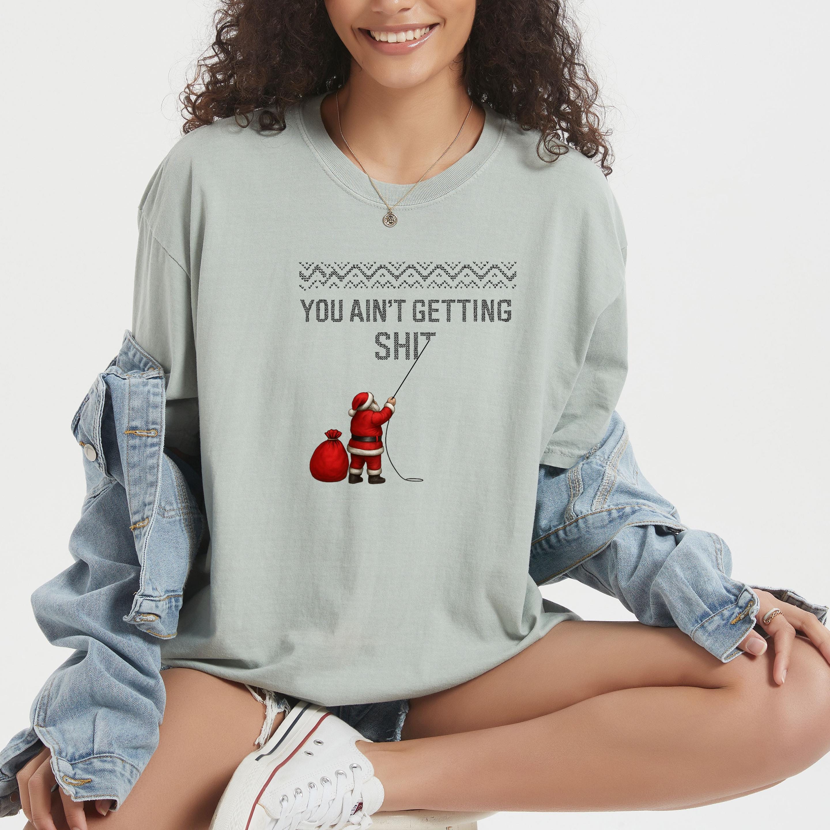 Funny Christmas Gildan Sweatshirt – Santa Pulling the T, “You Ain’t Getting Shit” Funny Holiday Comfort Colors T-shirt