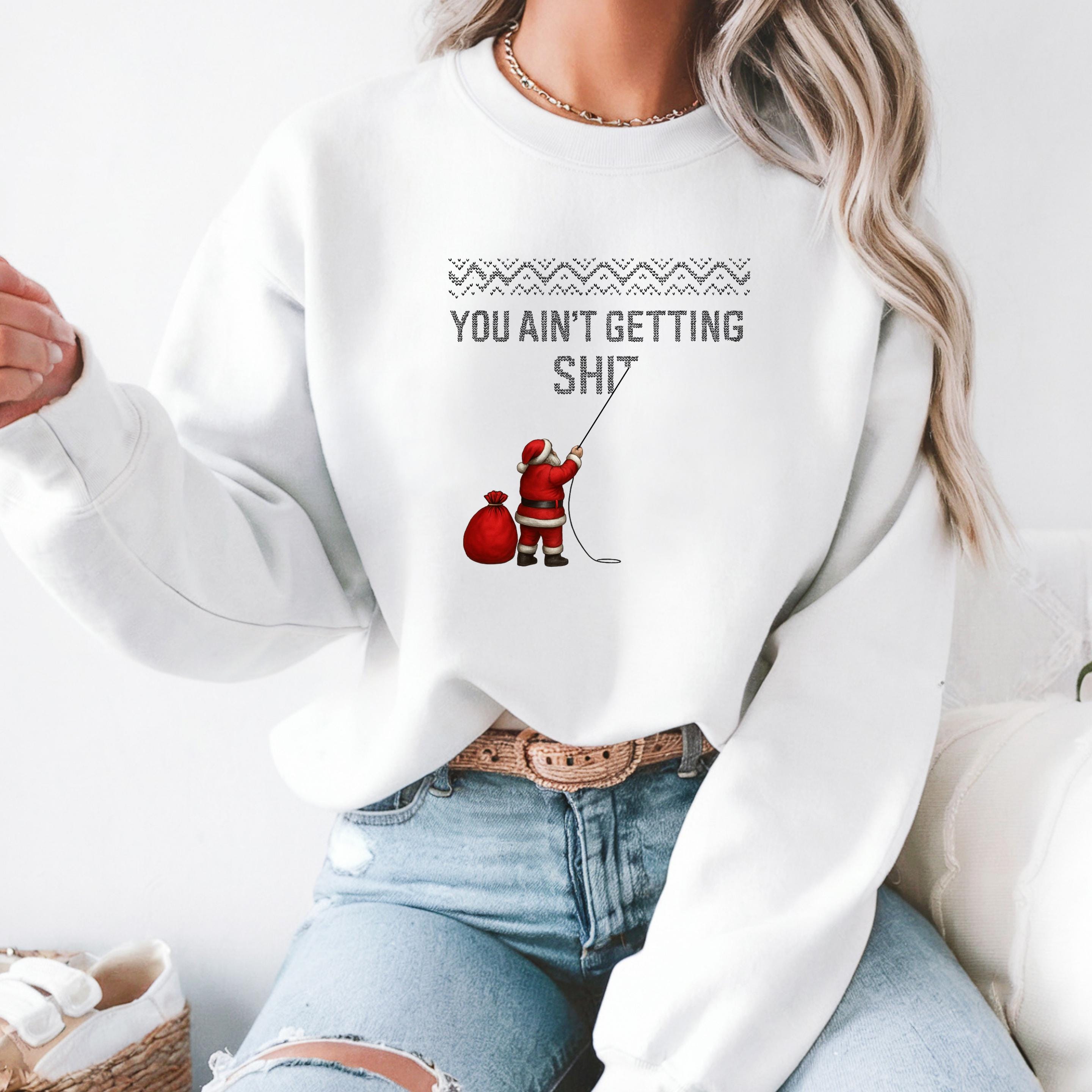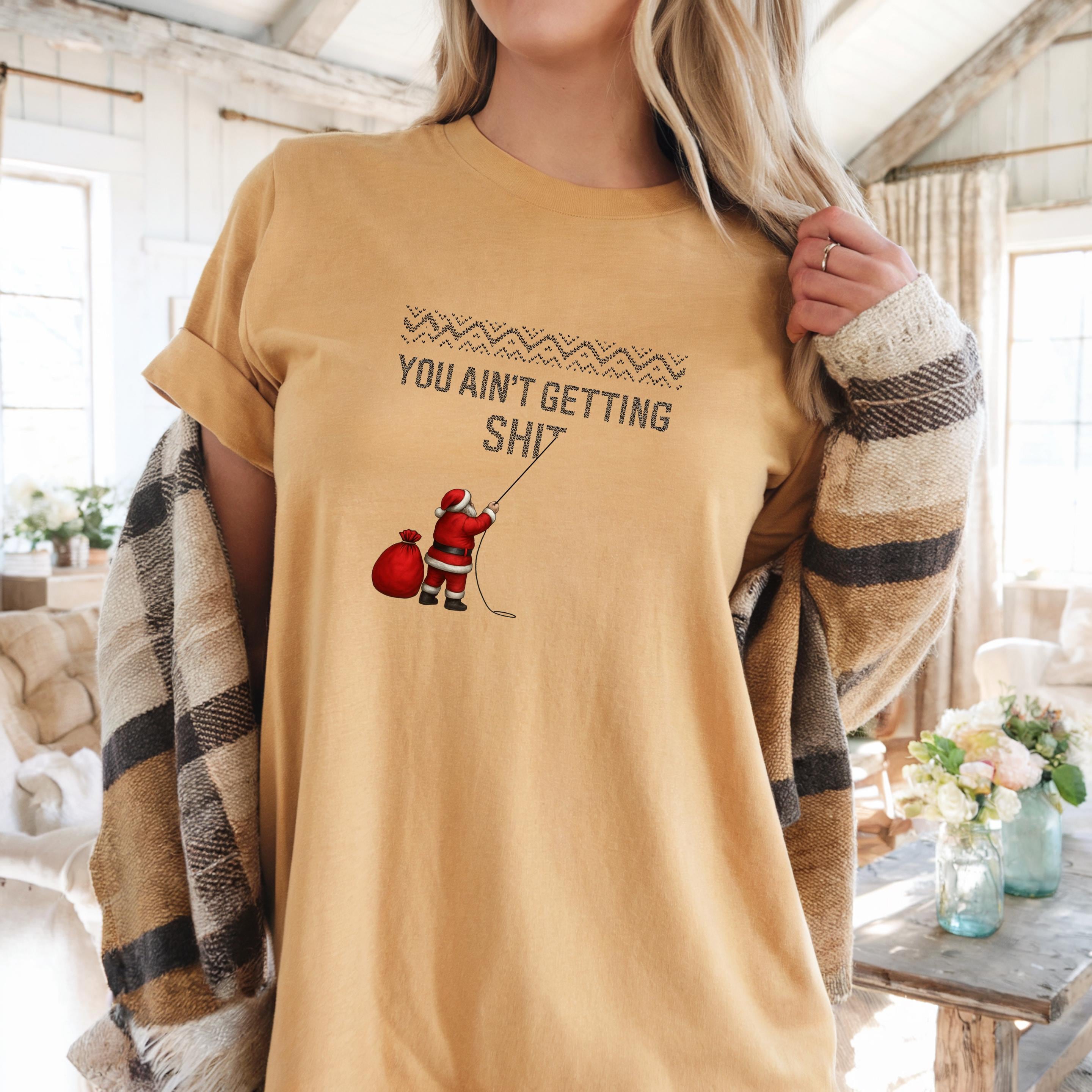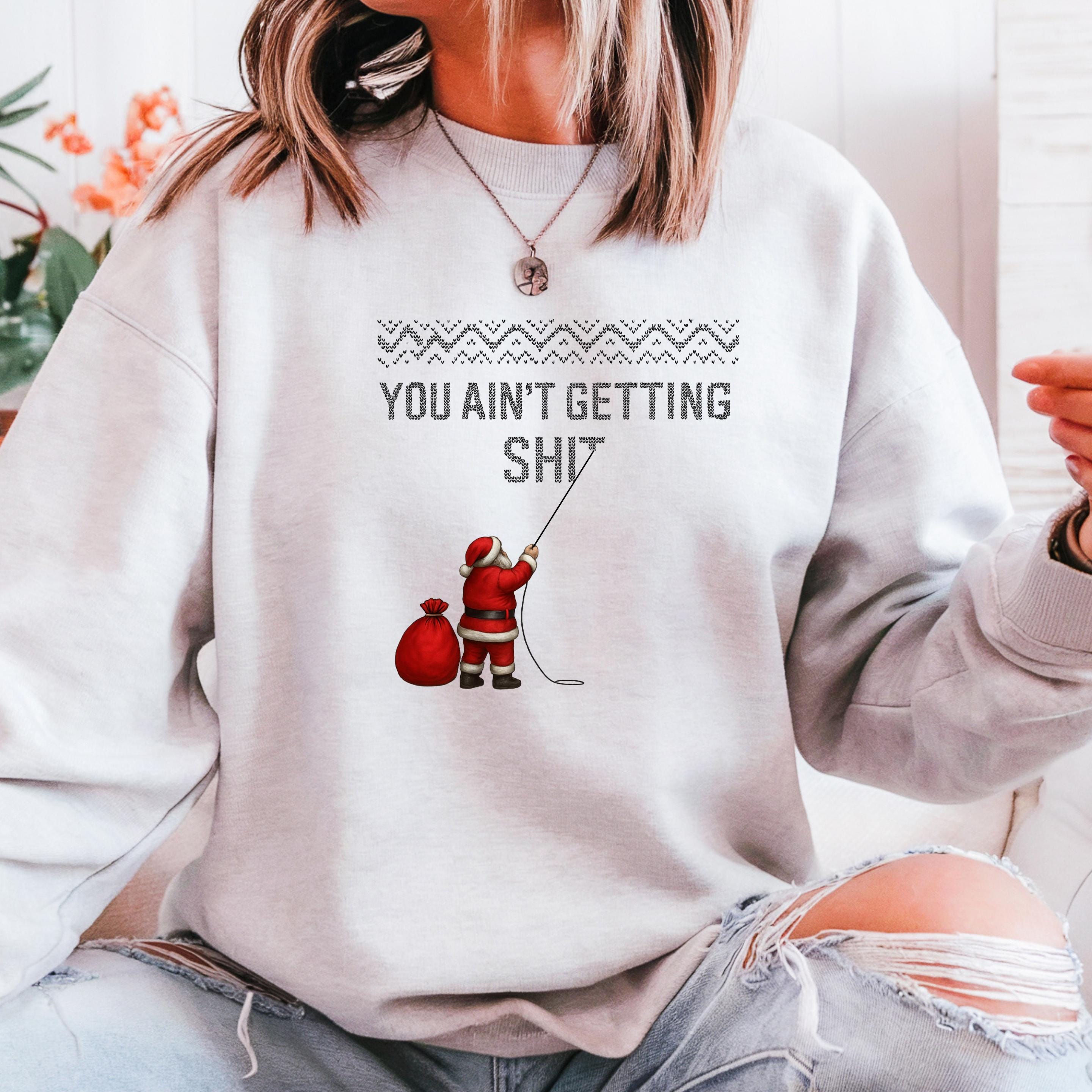 Funny Christmas Gildan Sweatshirt – Santa Pulling the T, “You Ain’t Getting Shit” Funny Holiday Comfort Colors T-shirt
