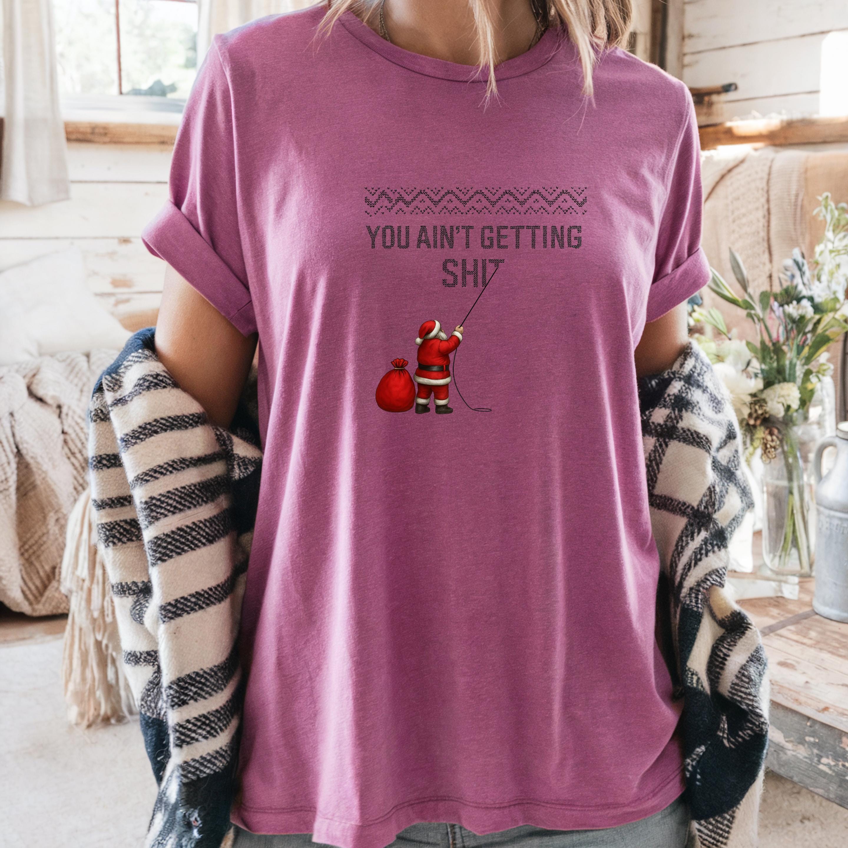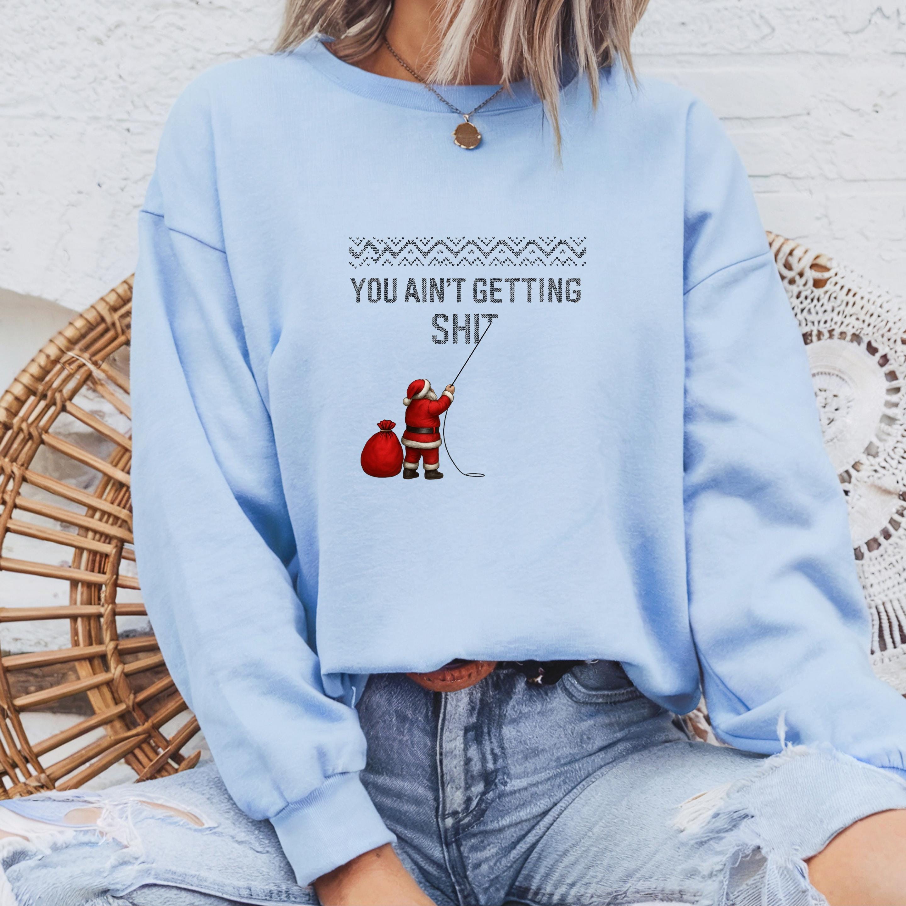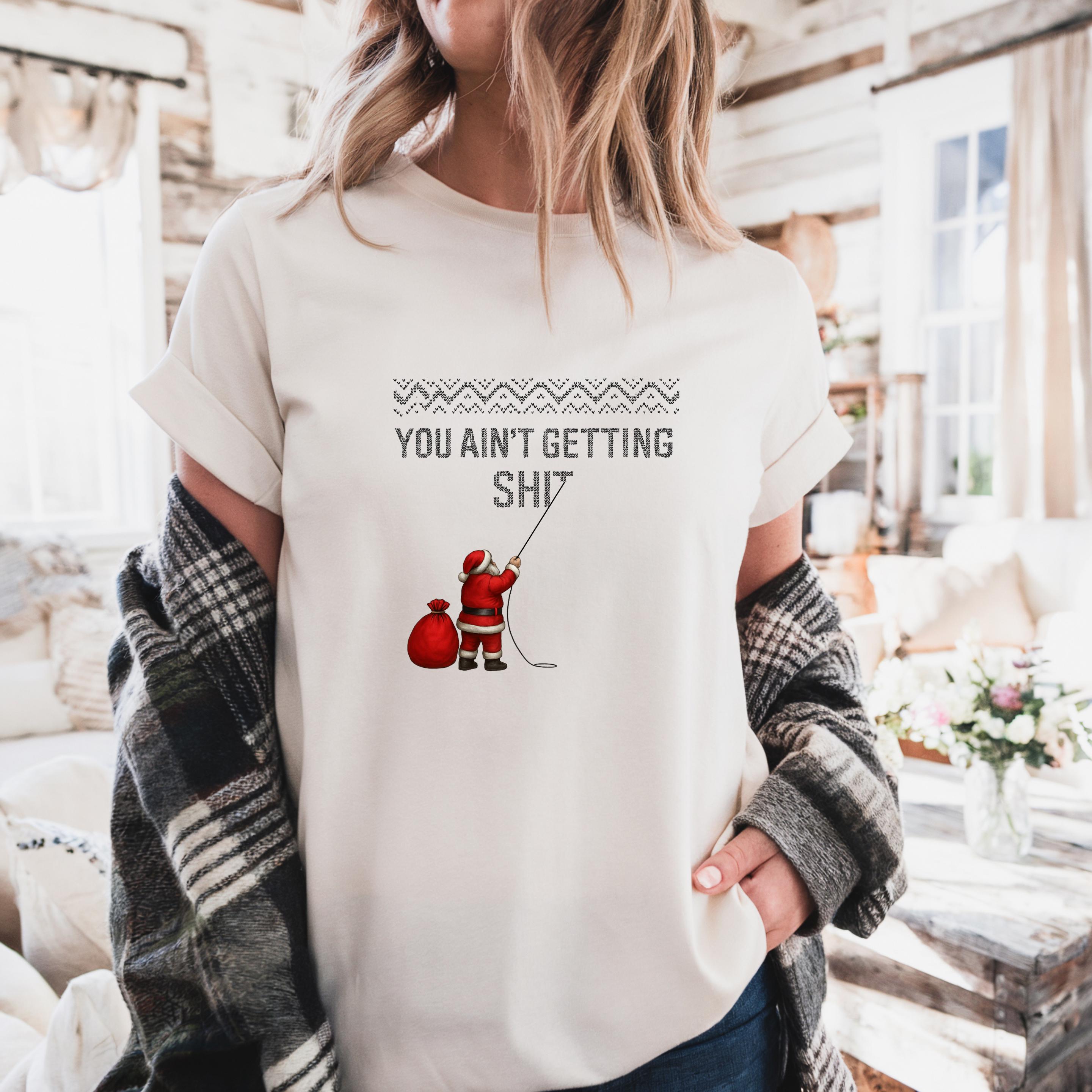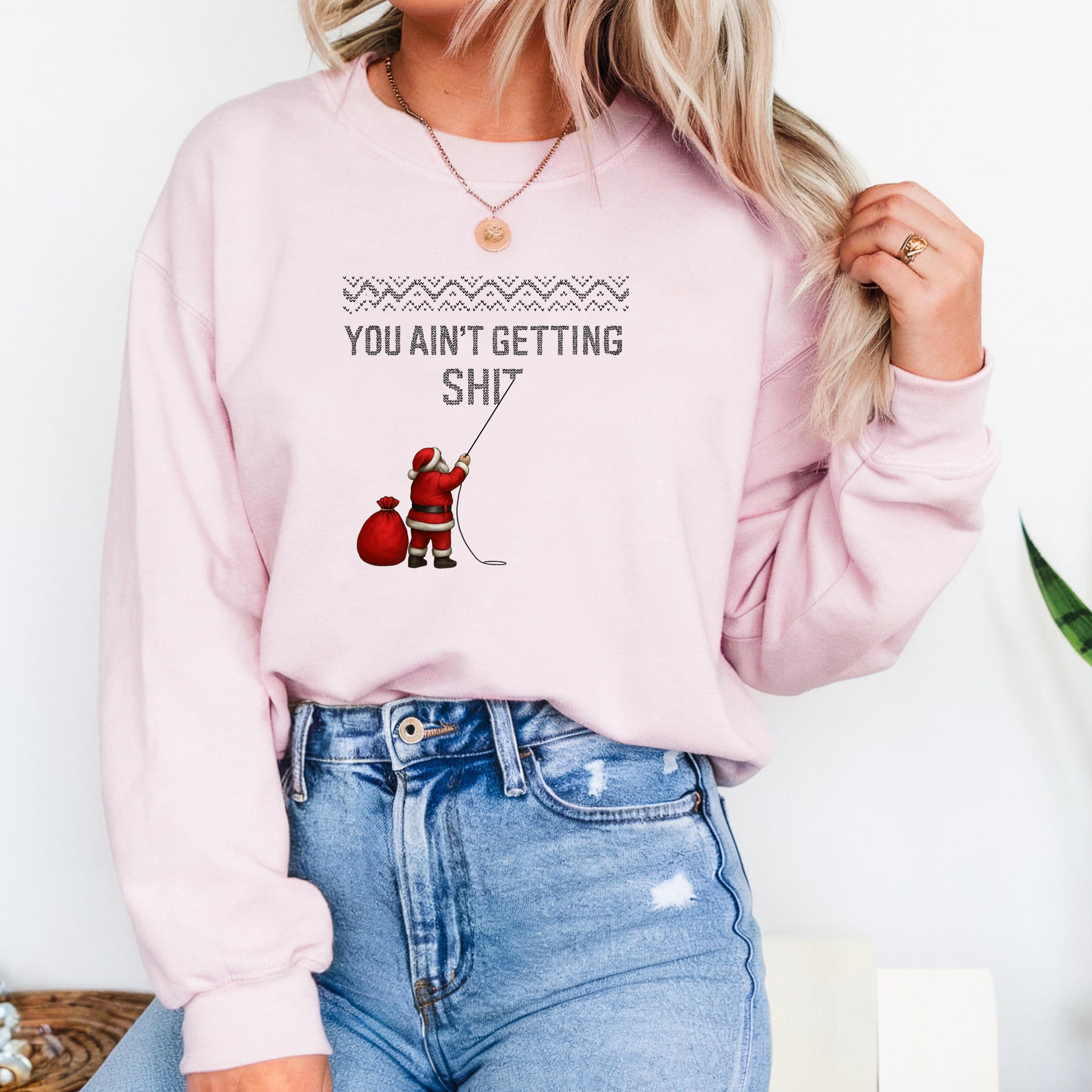 Funny Christmas Gildan Sweatshirt – Santa Pulling the T, “You Ain’t Getting Shit” Funny Holiday Comfort Colors T-shirt