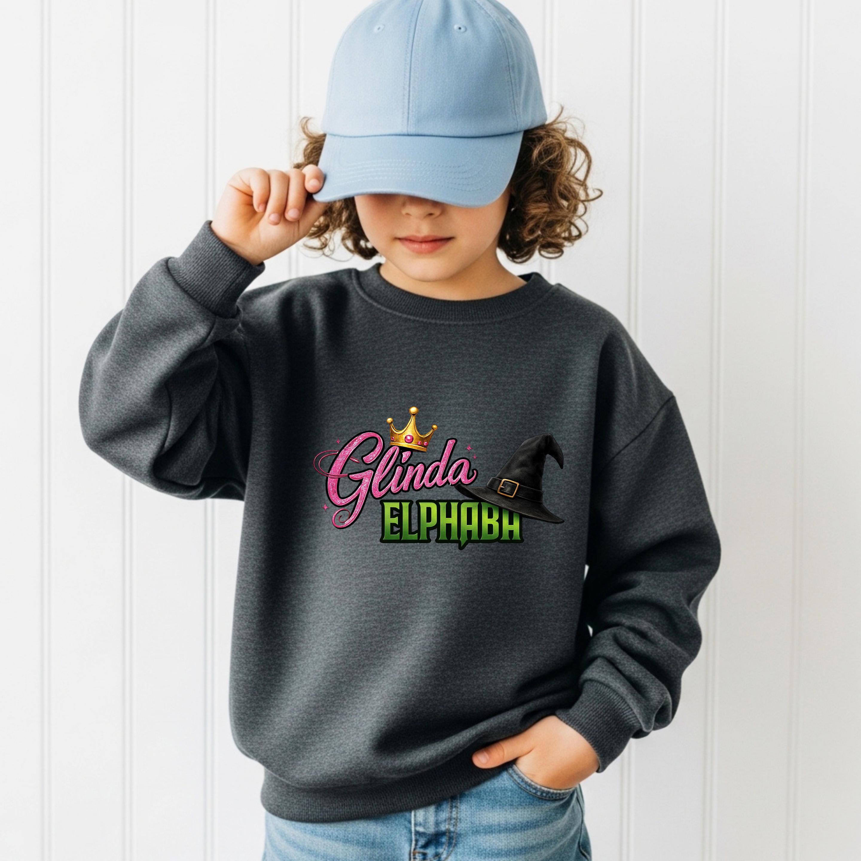 Gilda and Elphaba Gildan Sweatshirt, Gilda and Elphaba With Their Hats Youth Sweatshirt