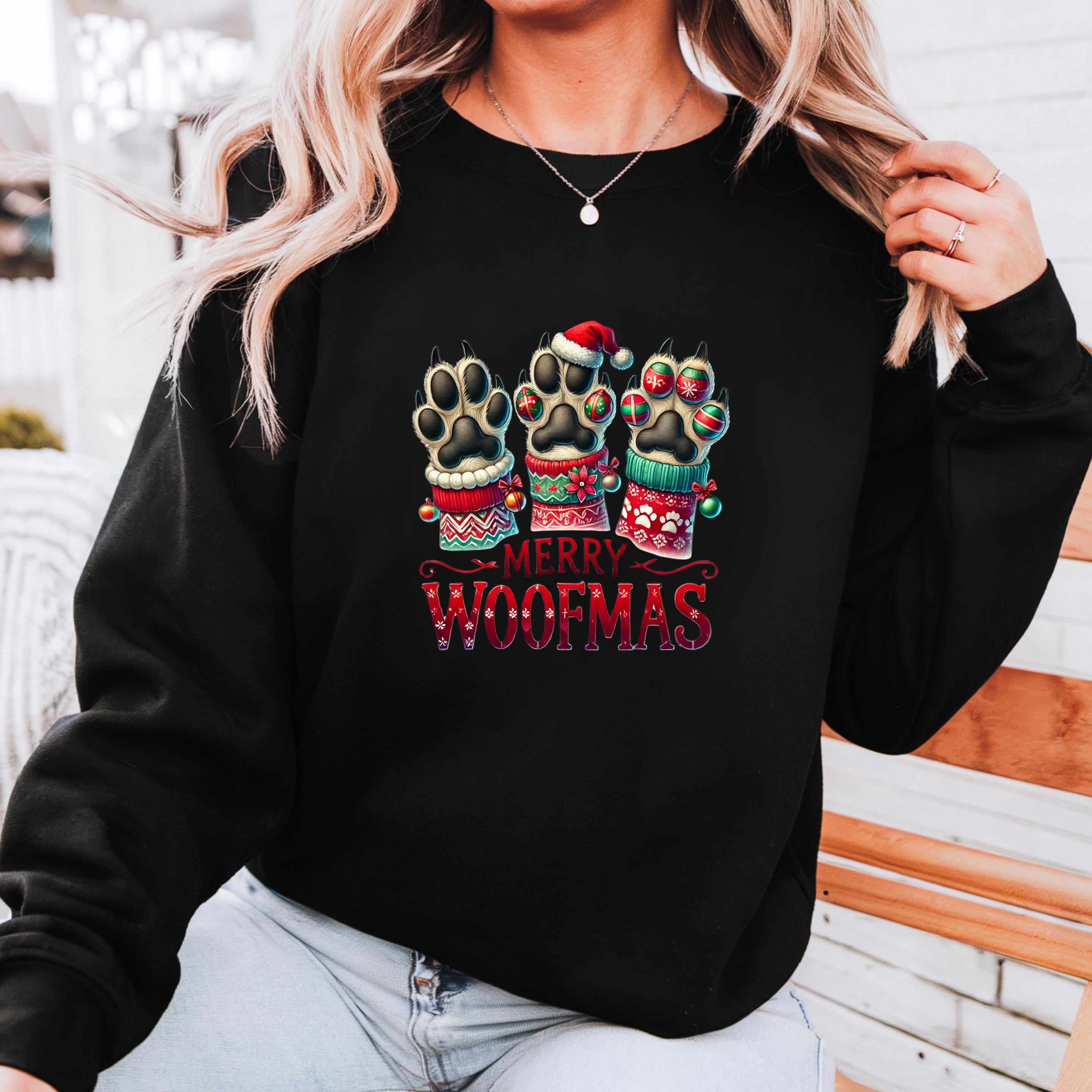 Merry Woofmas Dogs Gildan Sweatshirt : Dog Lover Holiday Hoodie, Cute Xmas Gift, Festive Holiday Outfit