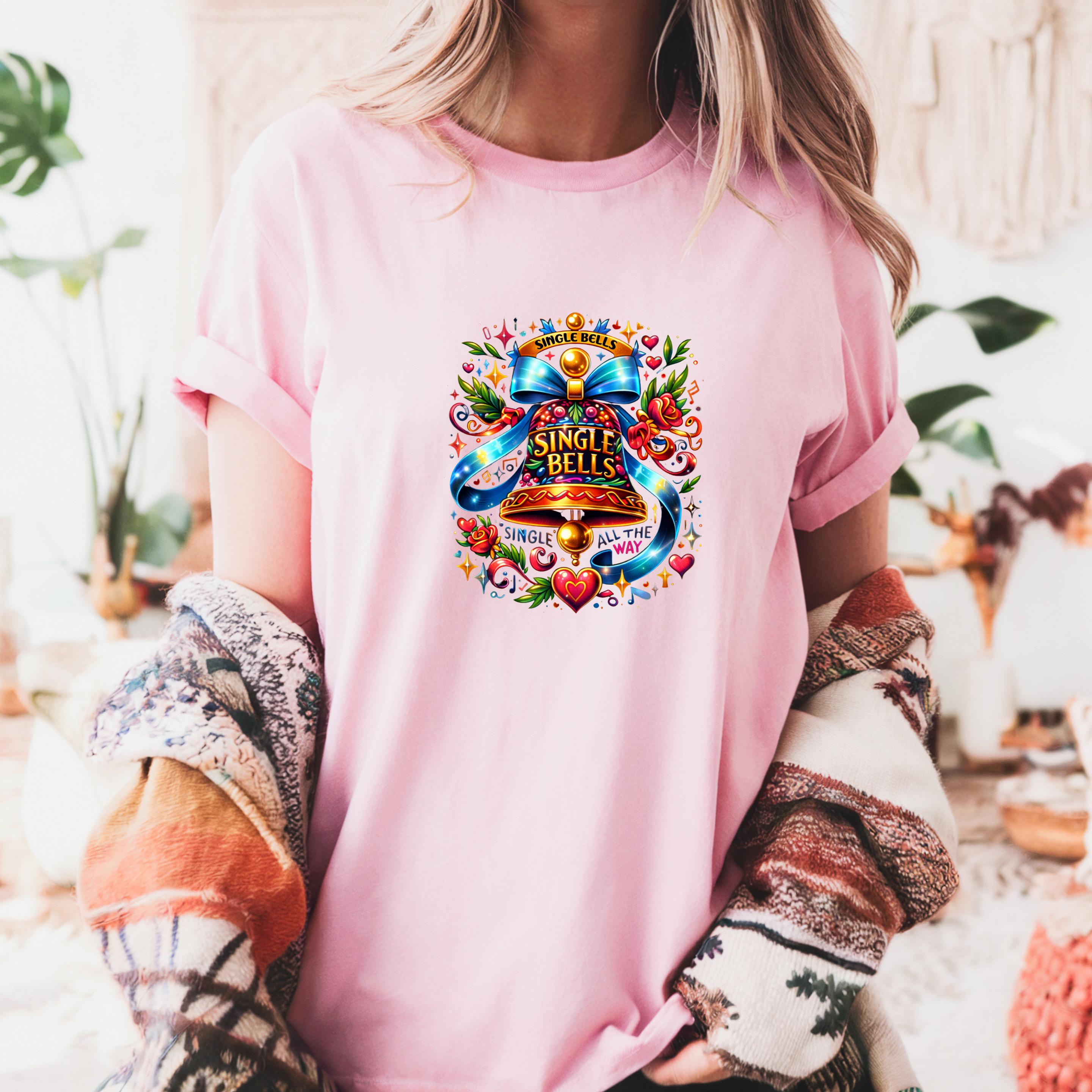 This vibrant “Single Bells” design features a beautifully detailed festive bell wrapped in bold ribbons, florals, hearts, and sparkling holiday elements. It’s playful, eye-catching, and perfect for anyone proudly rocking the single life this season.
