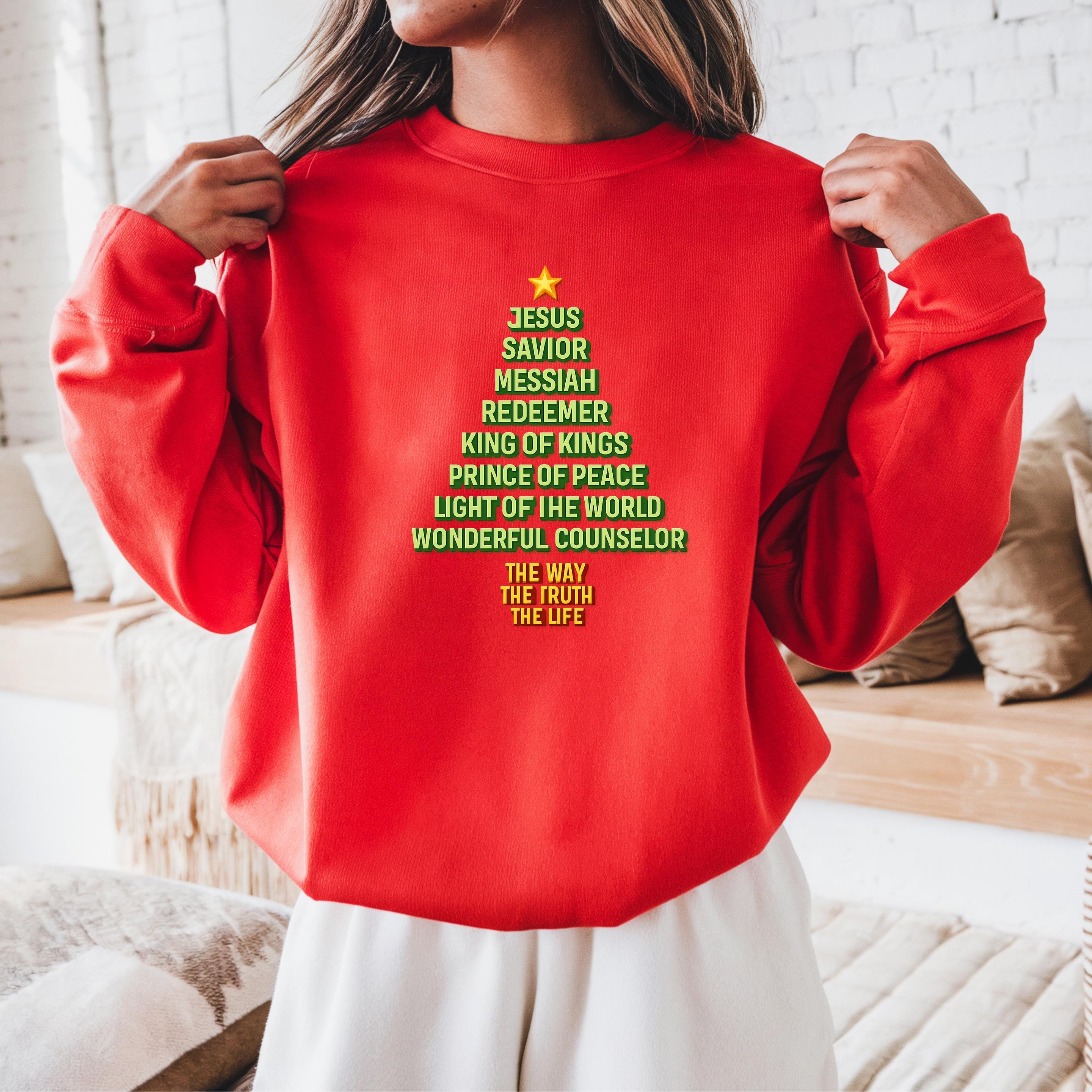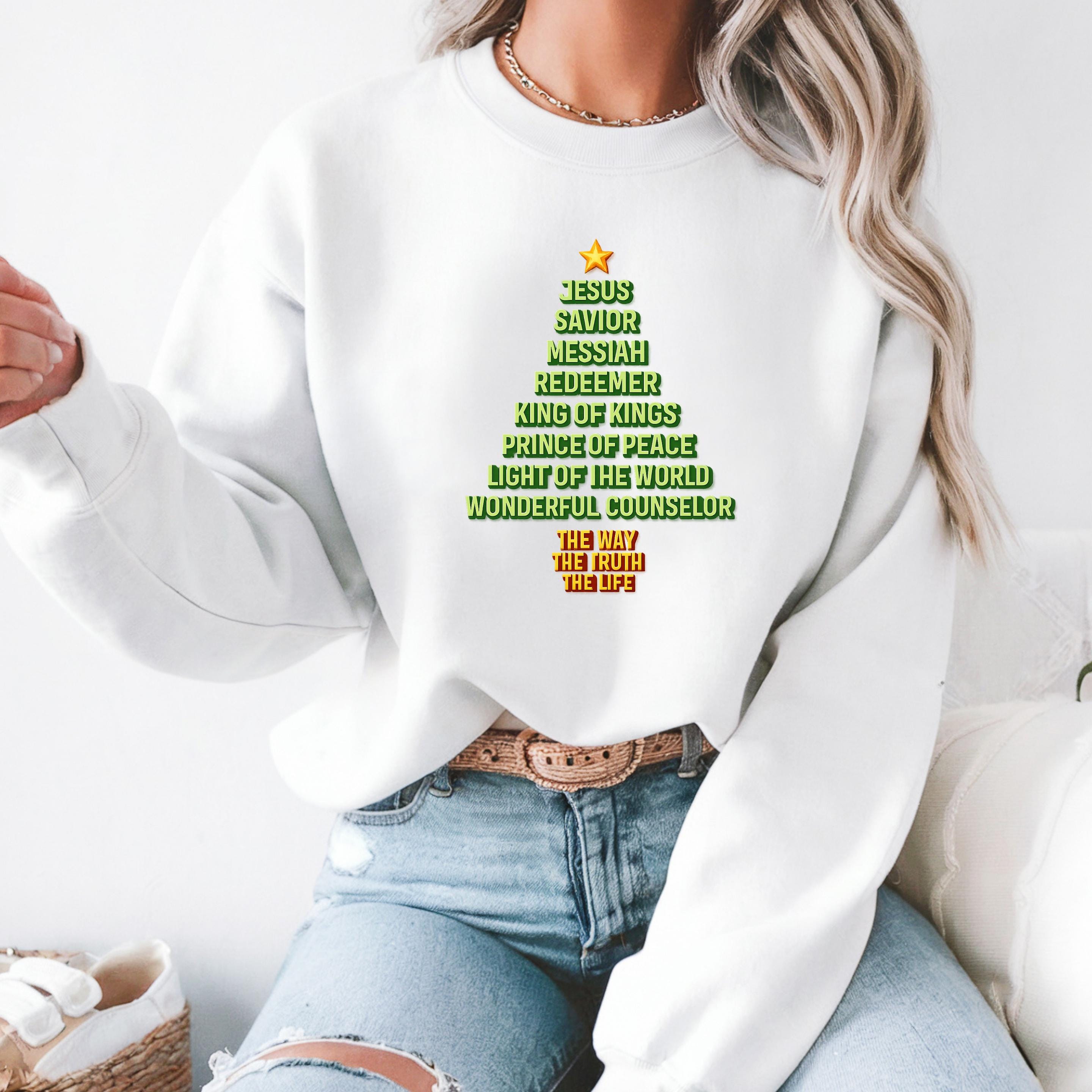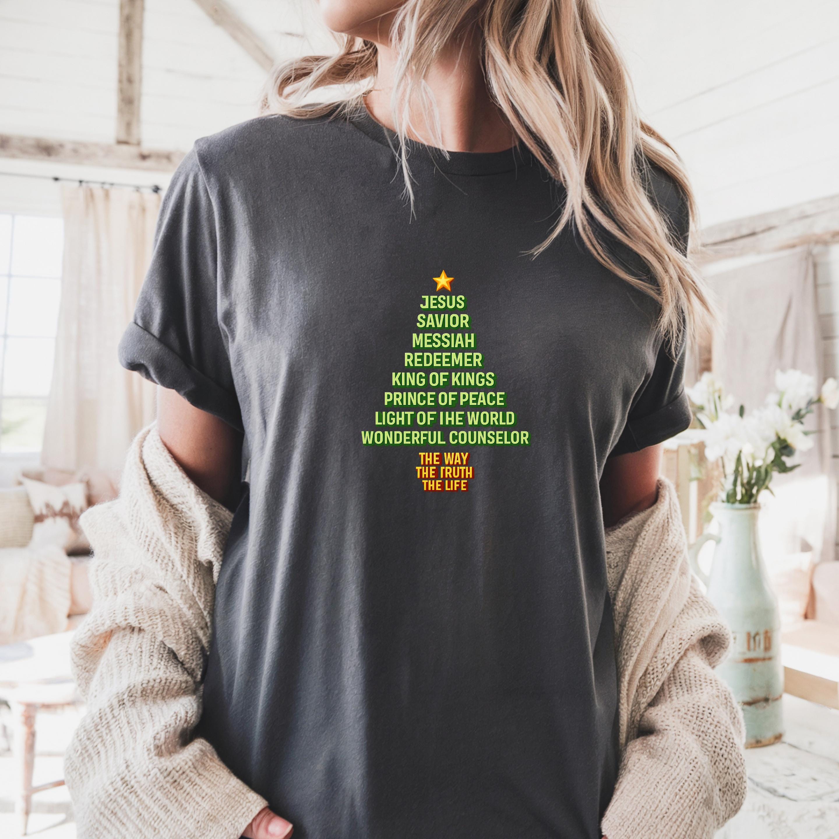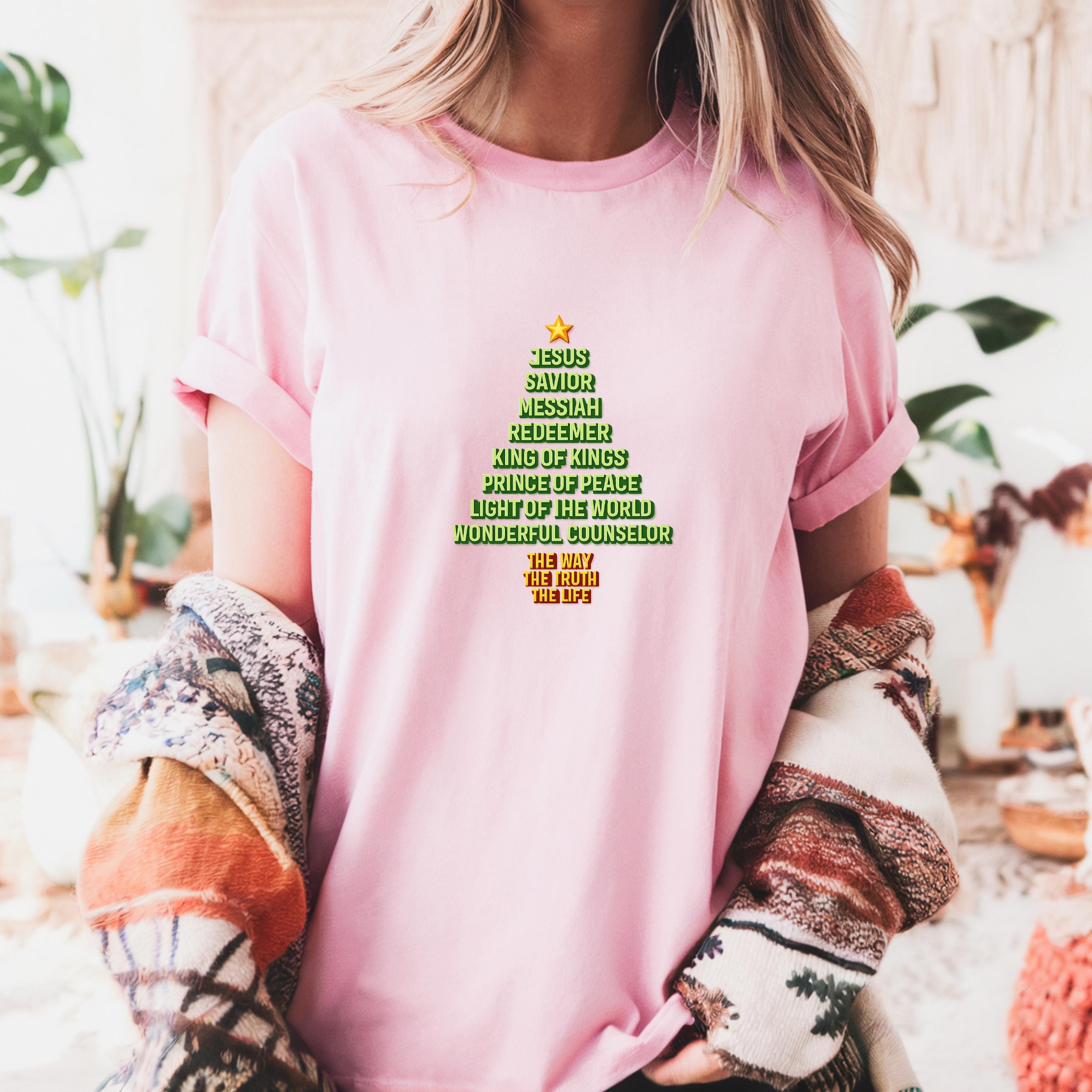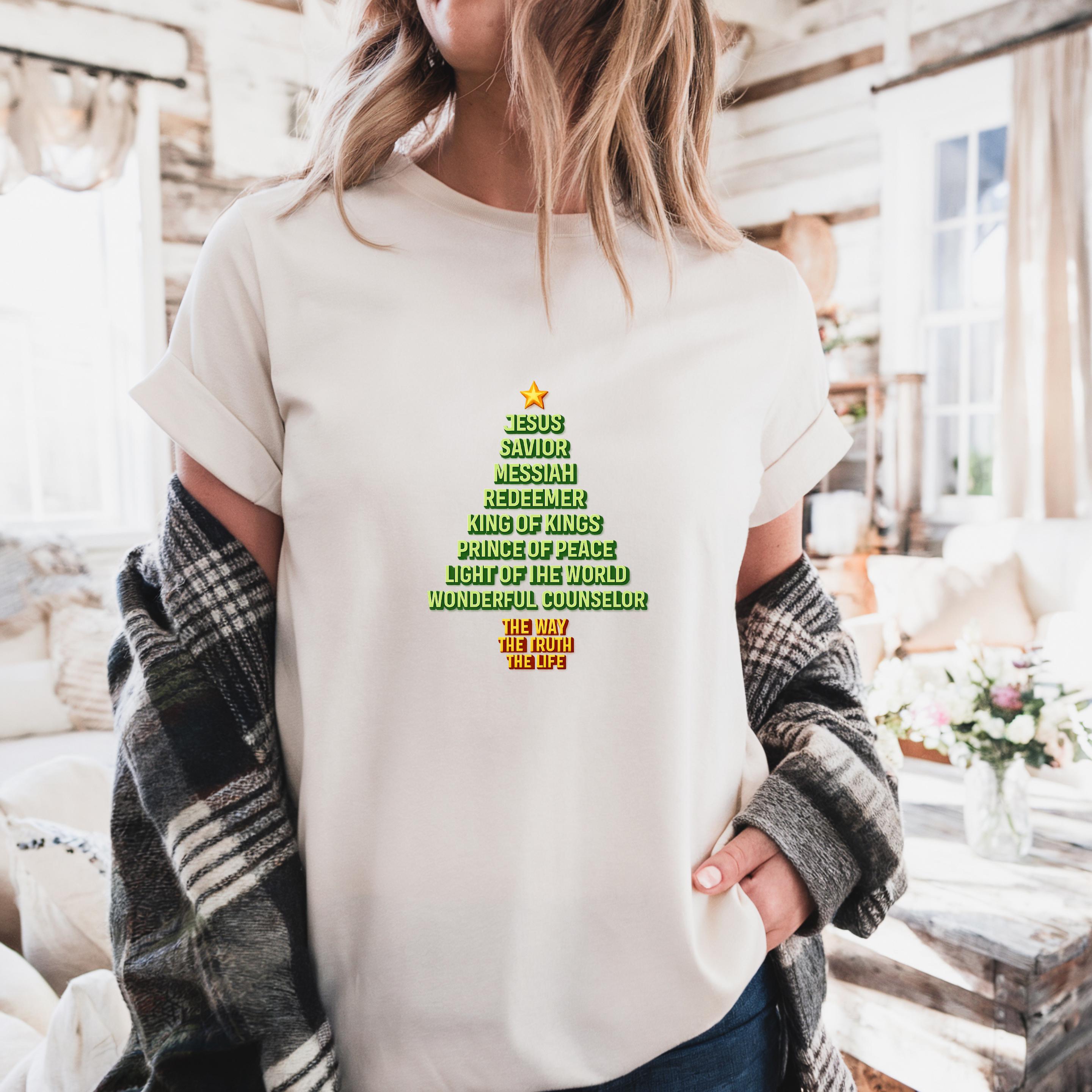 Celebrate the true meaning of Christmas with this powerful and faith-filled design, beautifully shaped like a Christmas tree using the names and titles of Jesus. Featuring bold 3D typography and a radiant star at the top, this design is a meaningful expression of belief, hope, and peace.