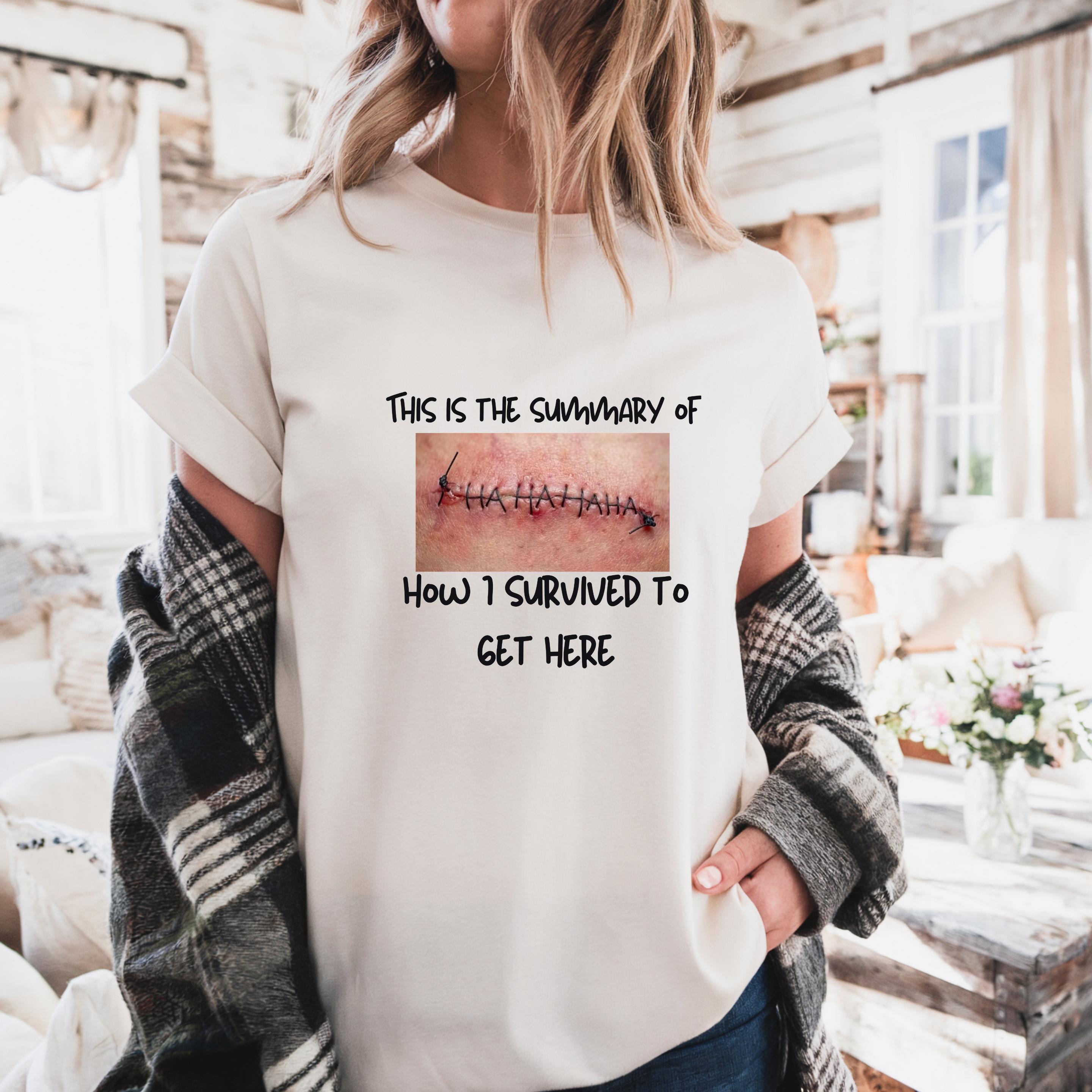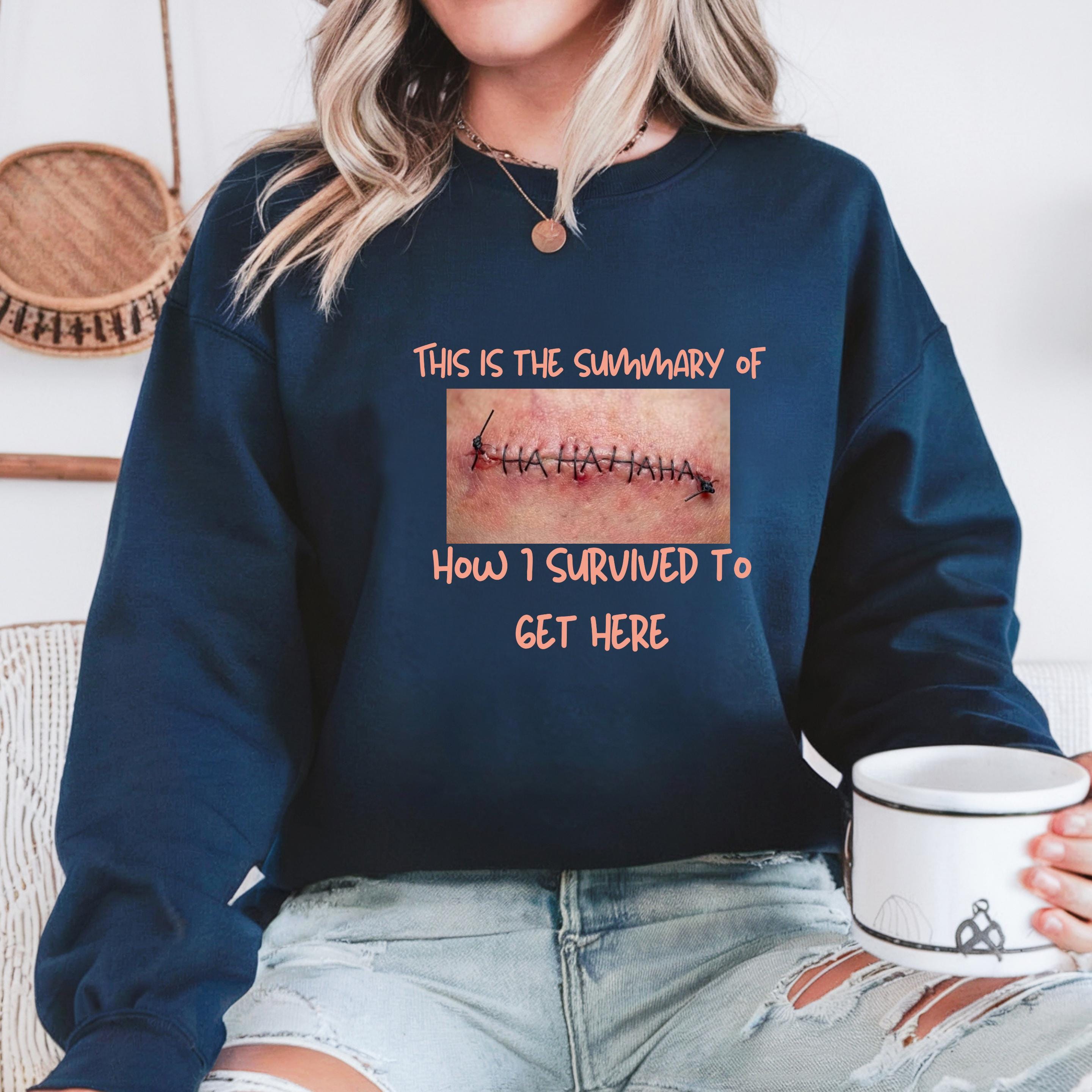 Featuring a bold graphic with stitched âHAHAHAHA,â this design represents the scars, strength, and dark humor it took to make it this far. Itâs not about glorifying pain, but owning the story behind survival.