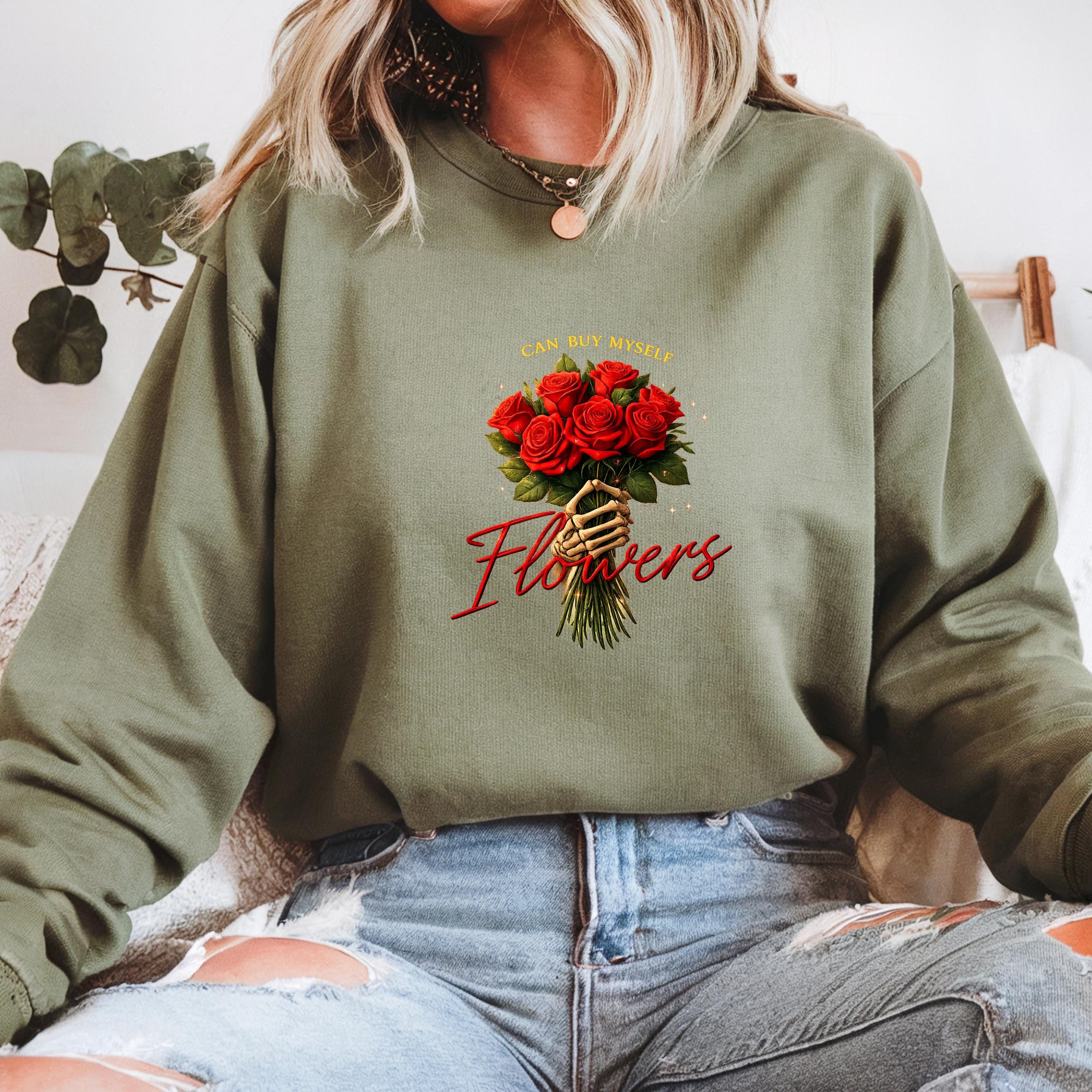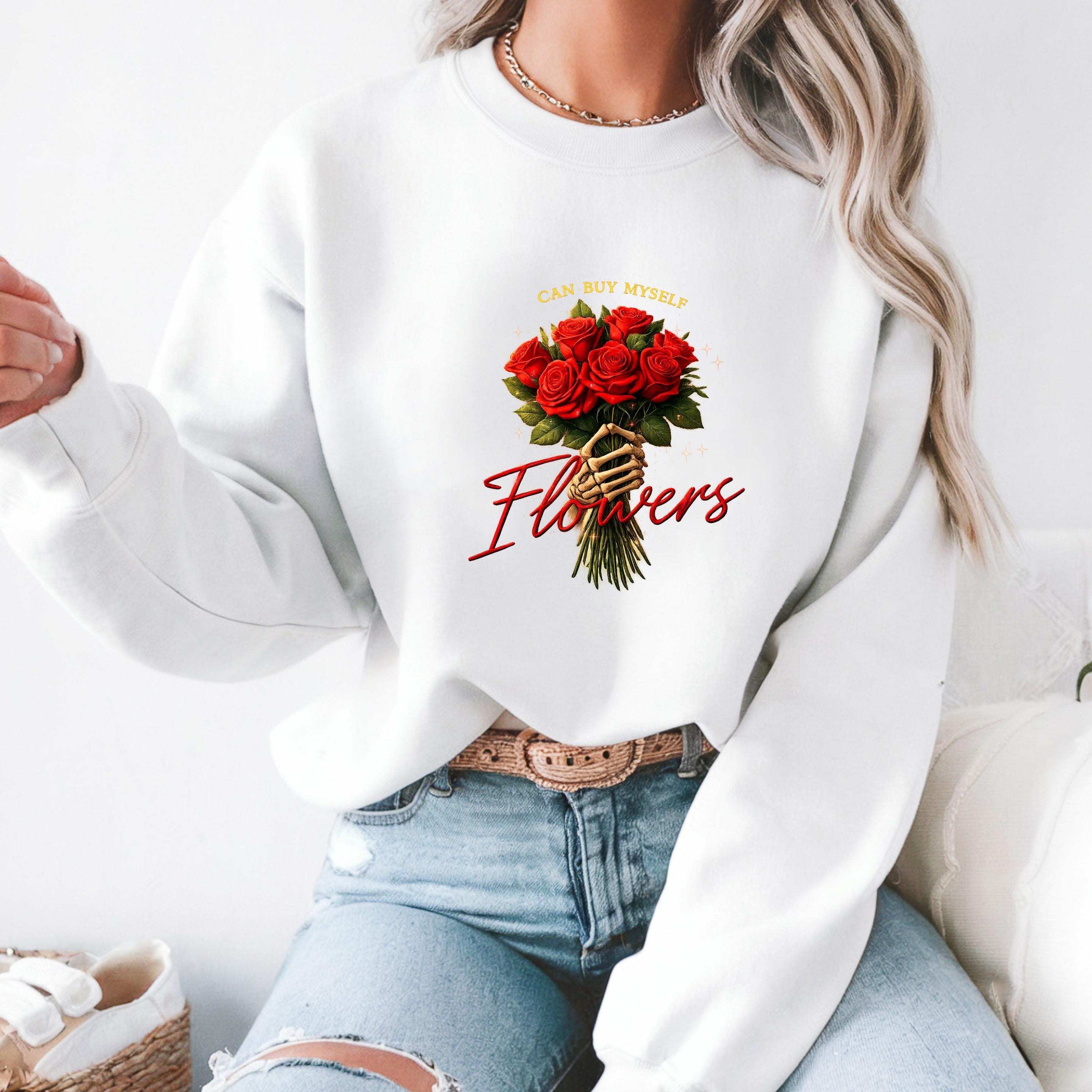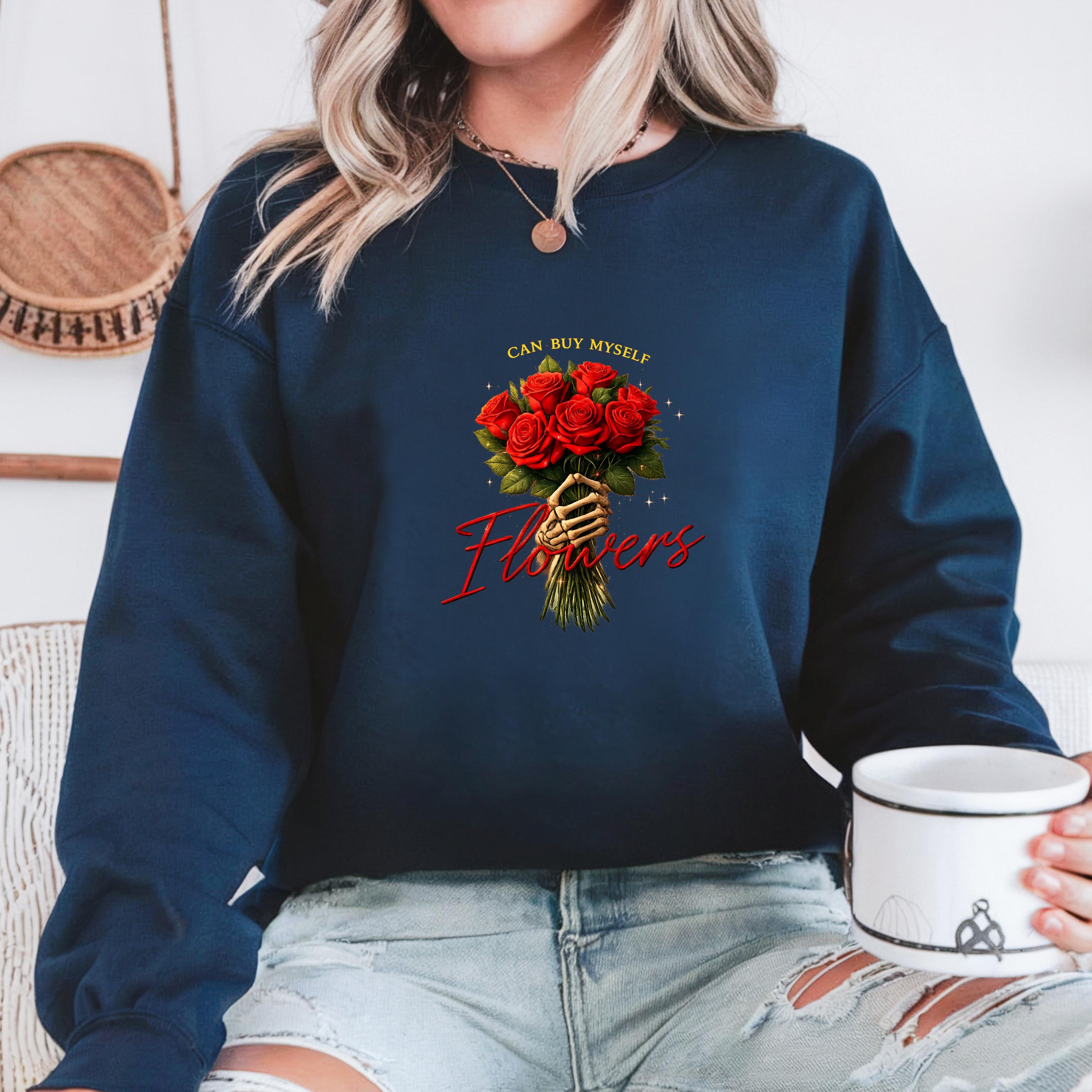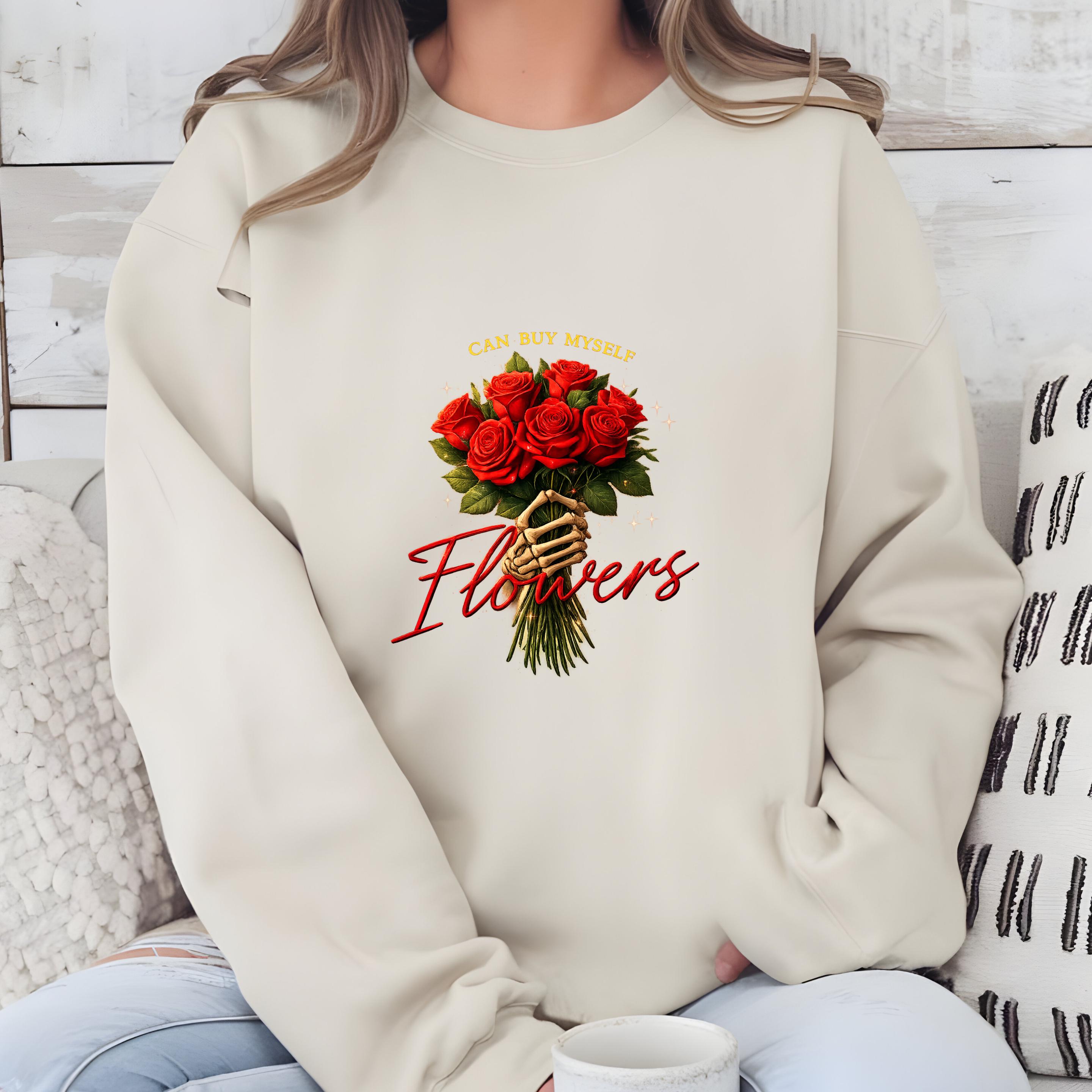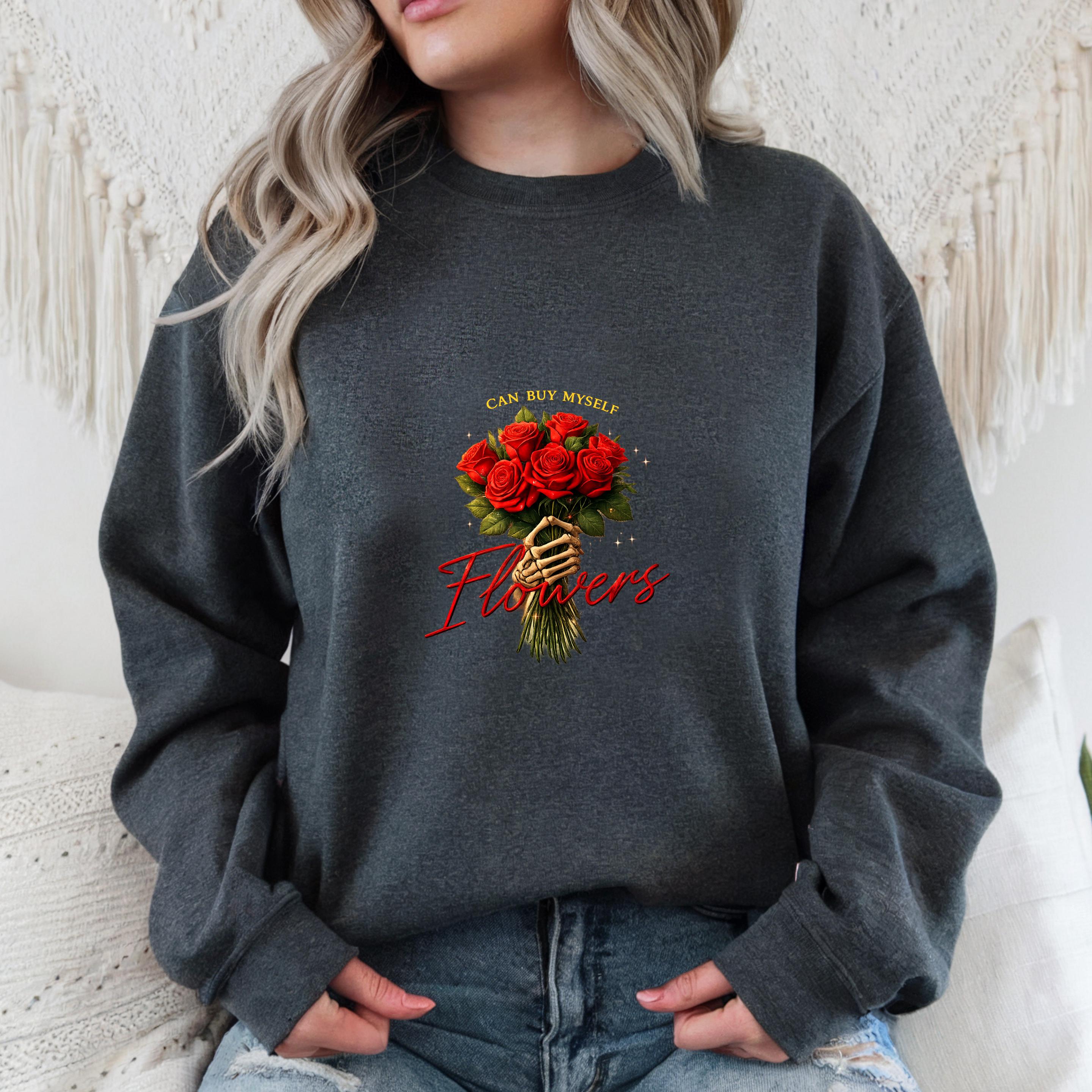 This “Can Buy Myself Flowers” sweatshirt celebrates self-love, confidence, and independence with a bold floral design and a powerful message.