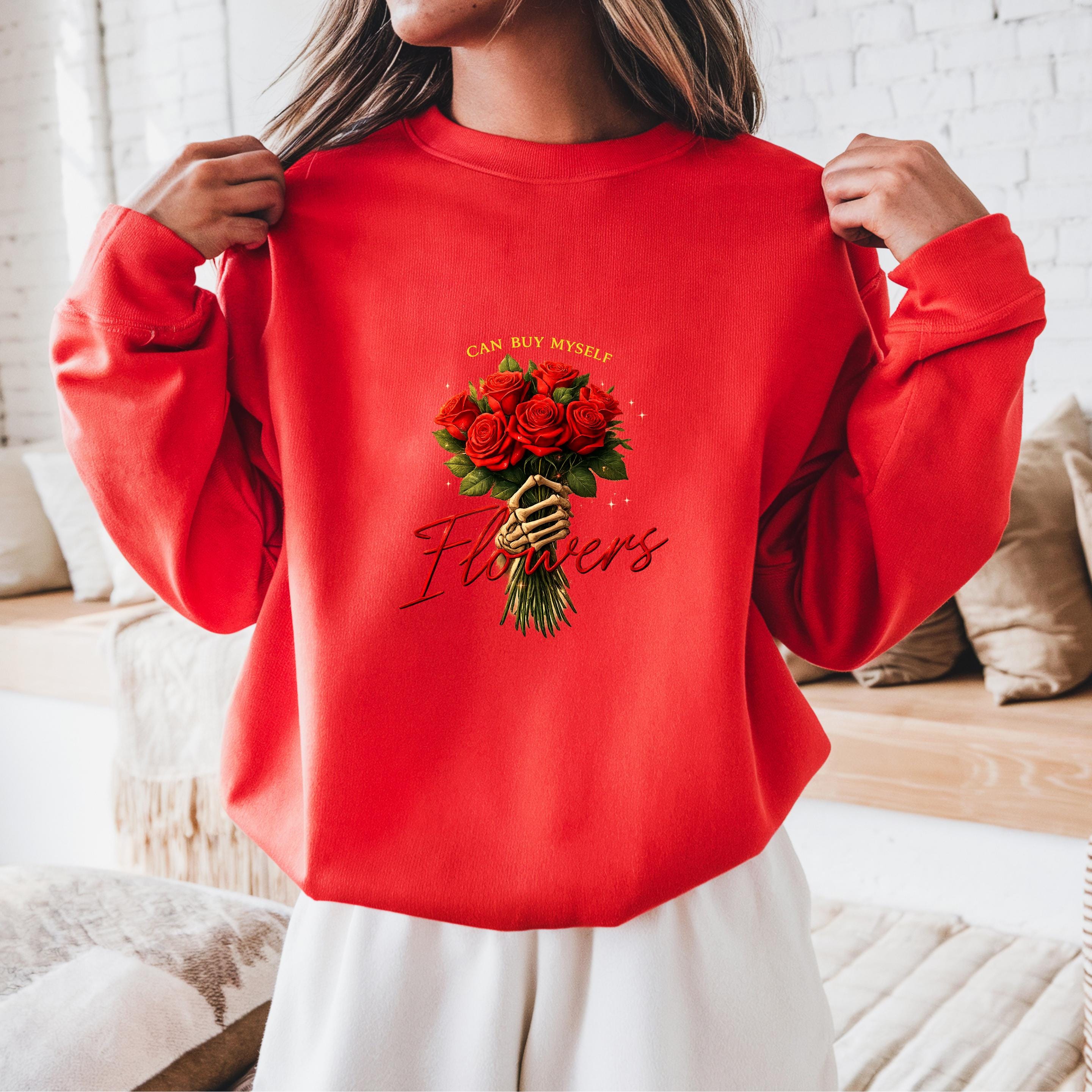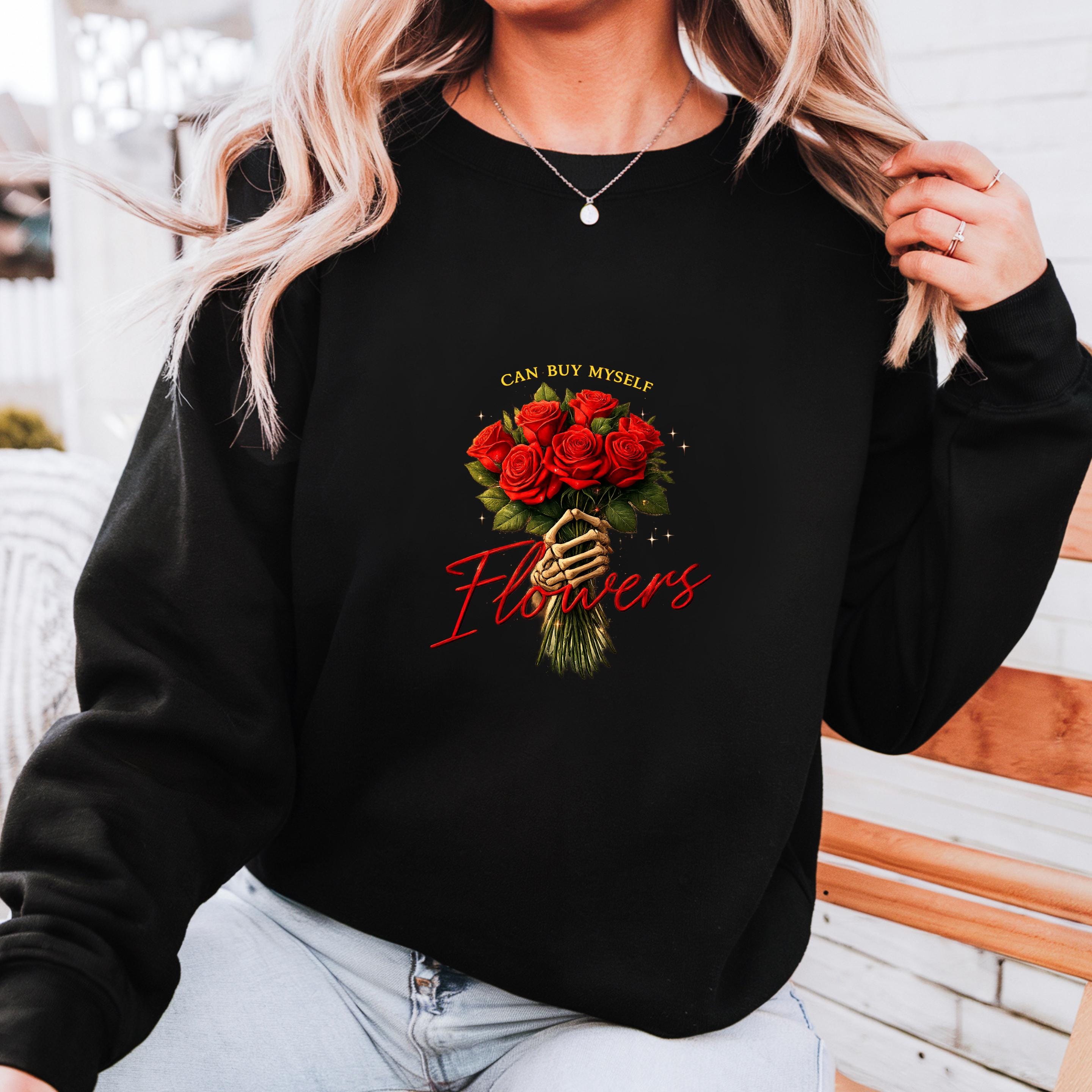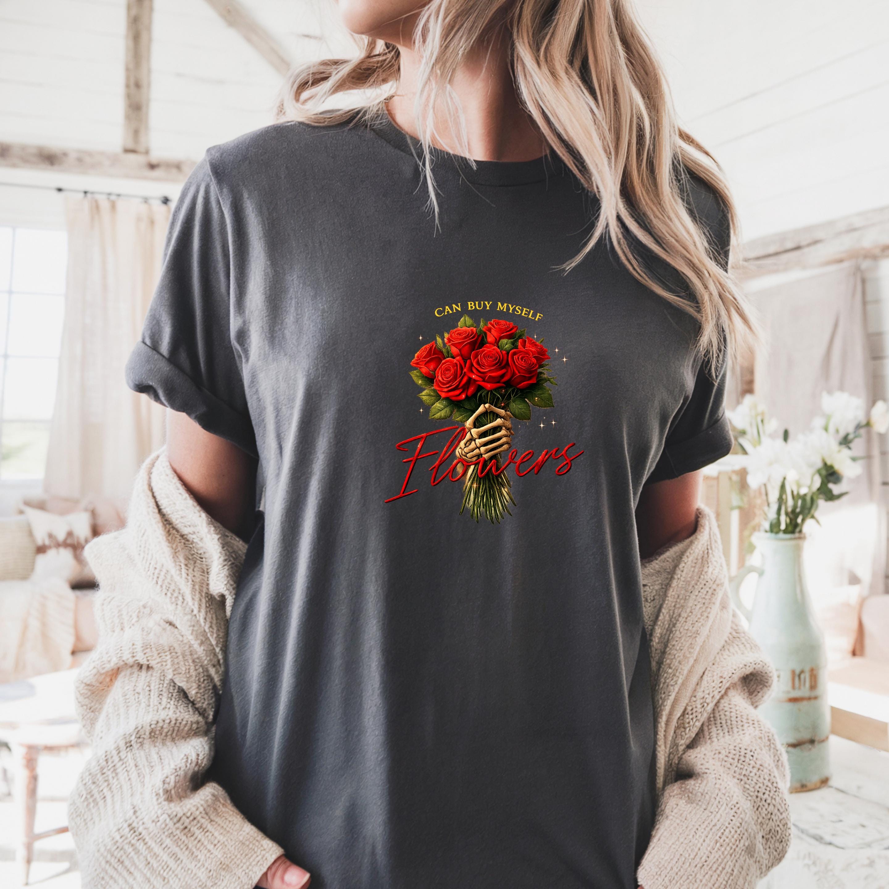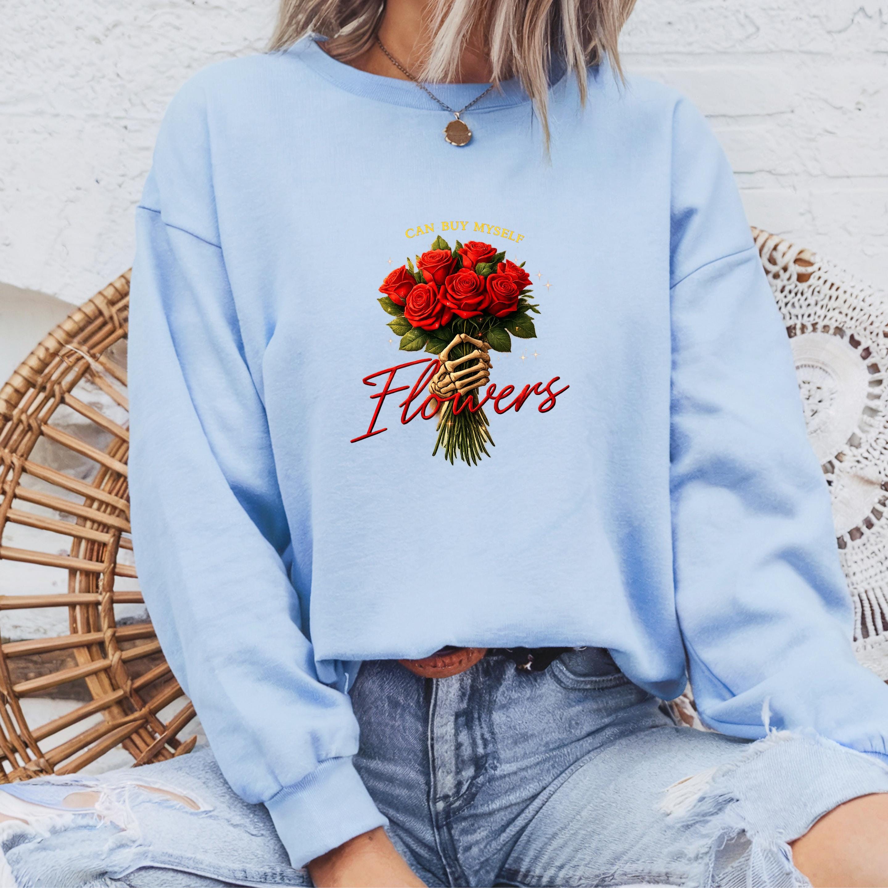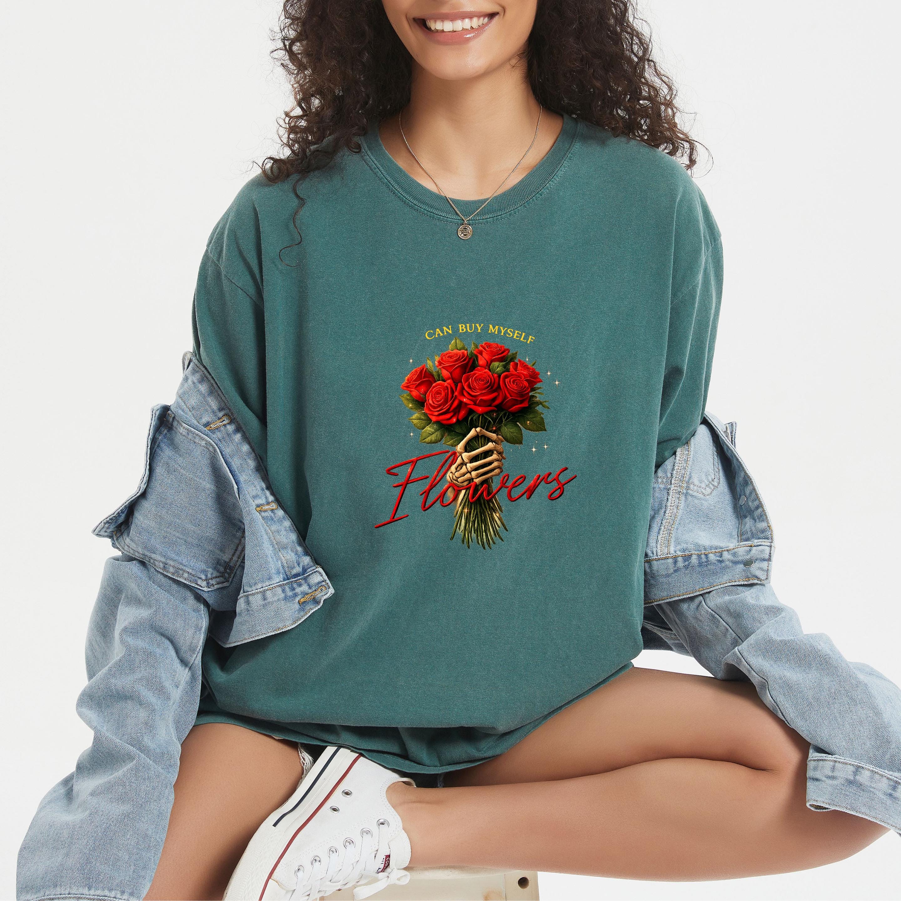 This “Can Buy Myself Flowers” sweatshirt celebrates self-love, confidence, and independence with a bold floral design and a powerful message.