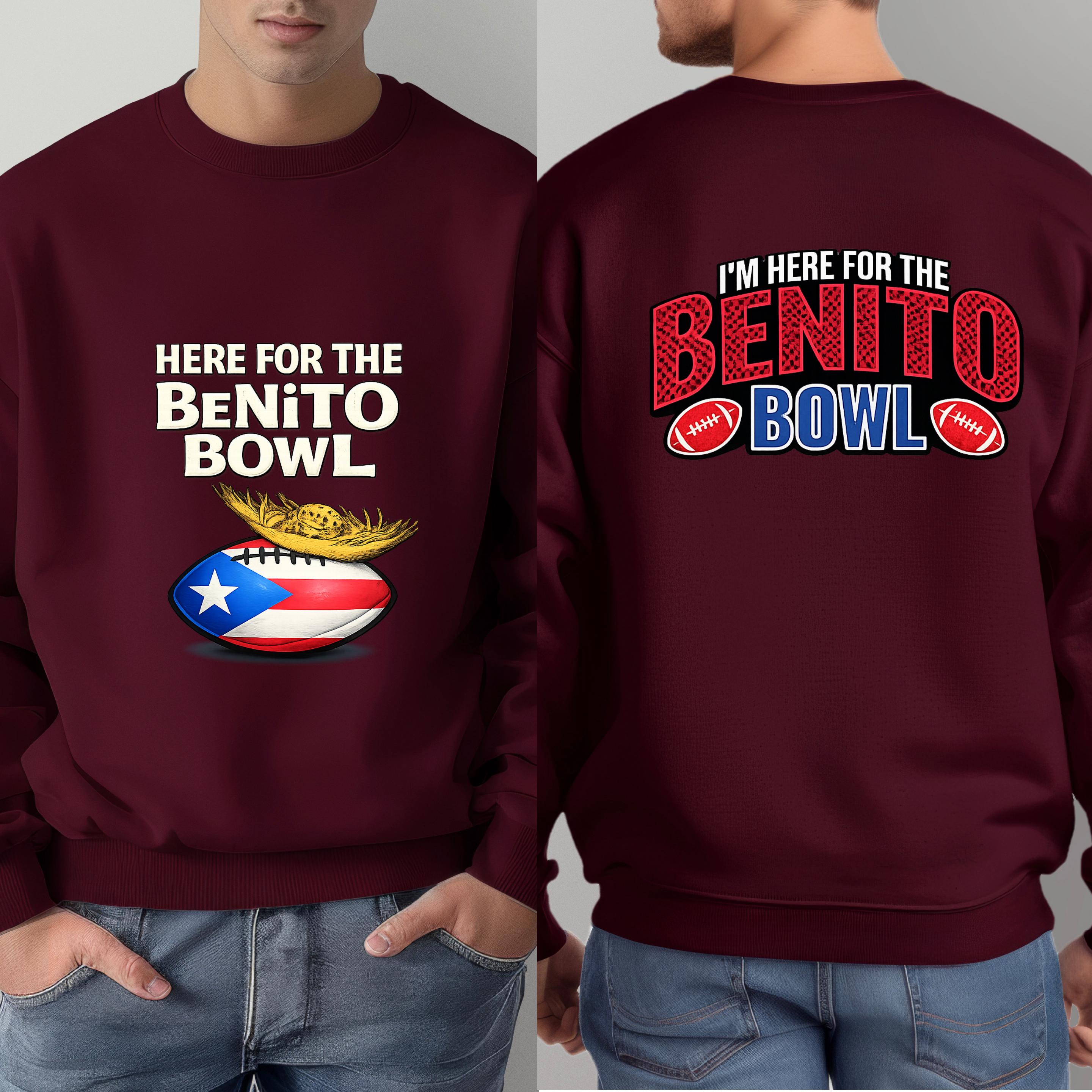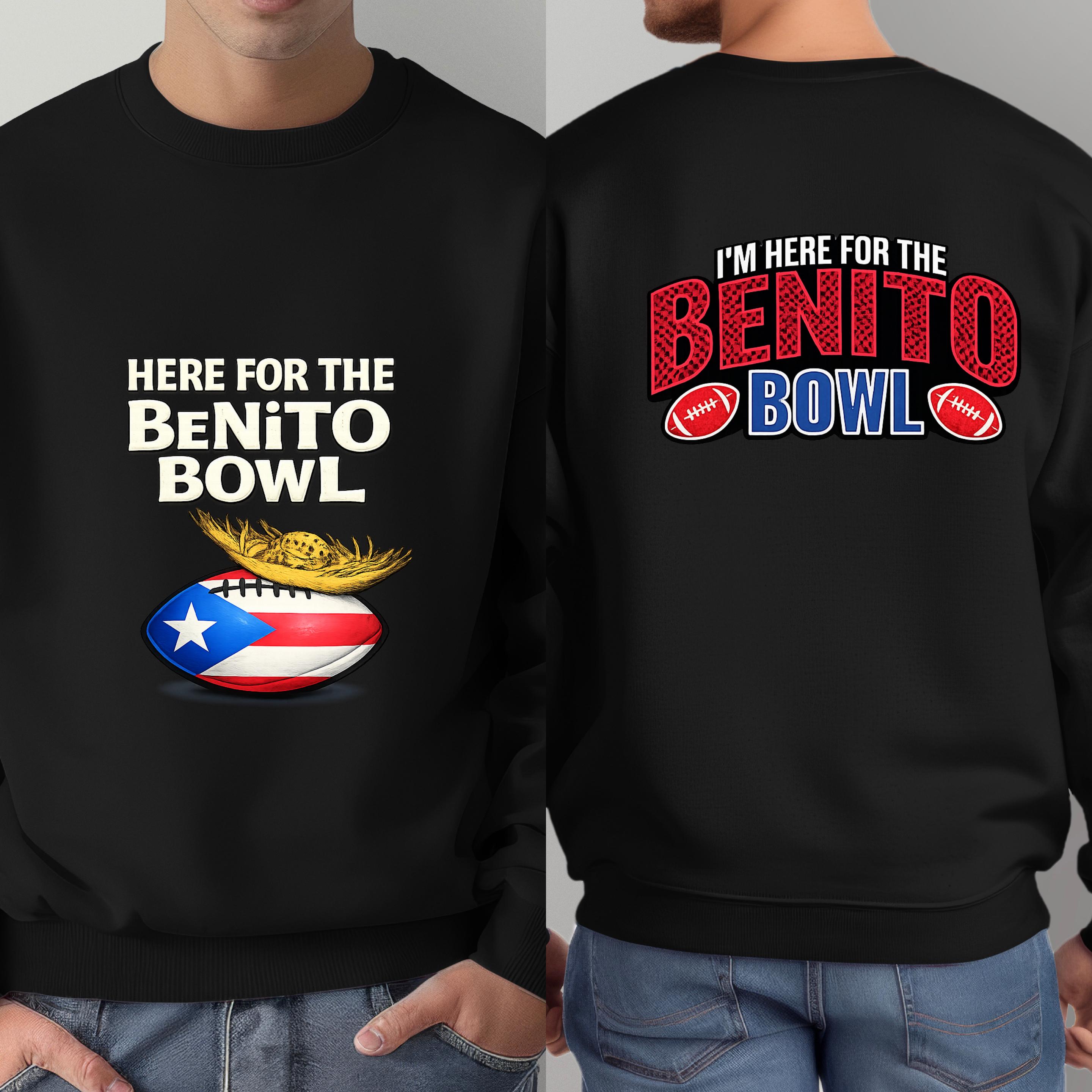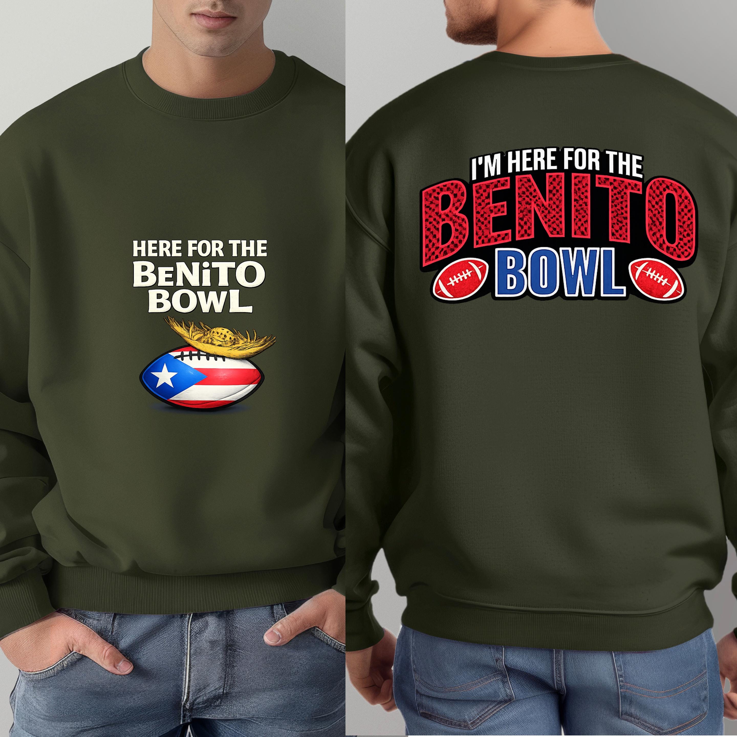Show up loud, proud, and ready for game day with this Here for the Benito Bowl Sweatshirt, created for true football fans with Puerto Rican spirit.