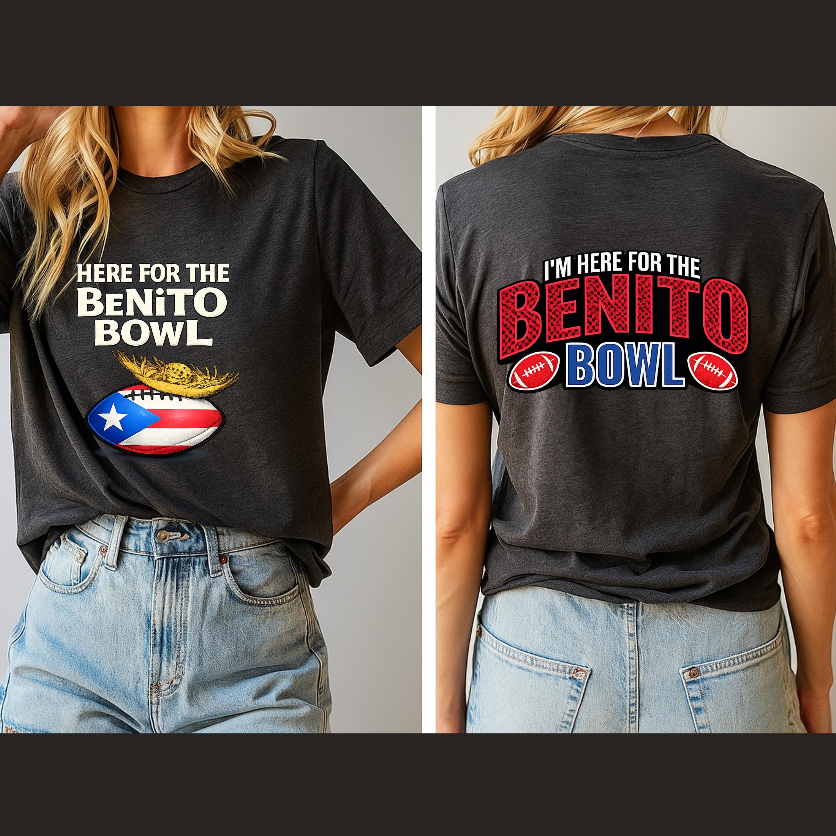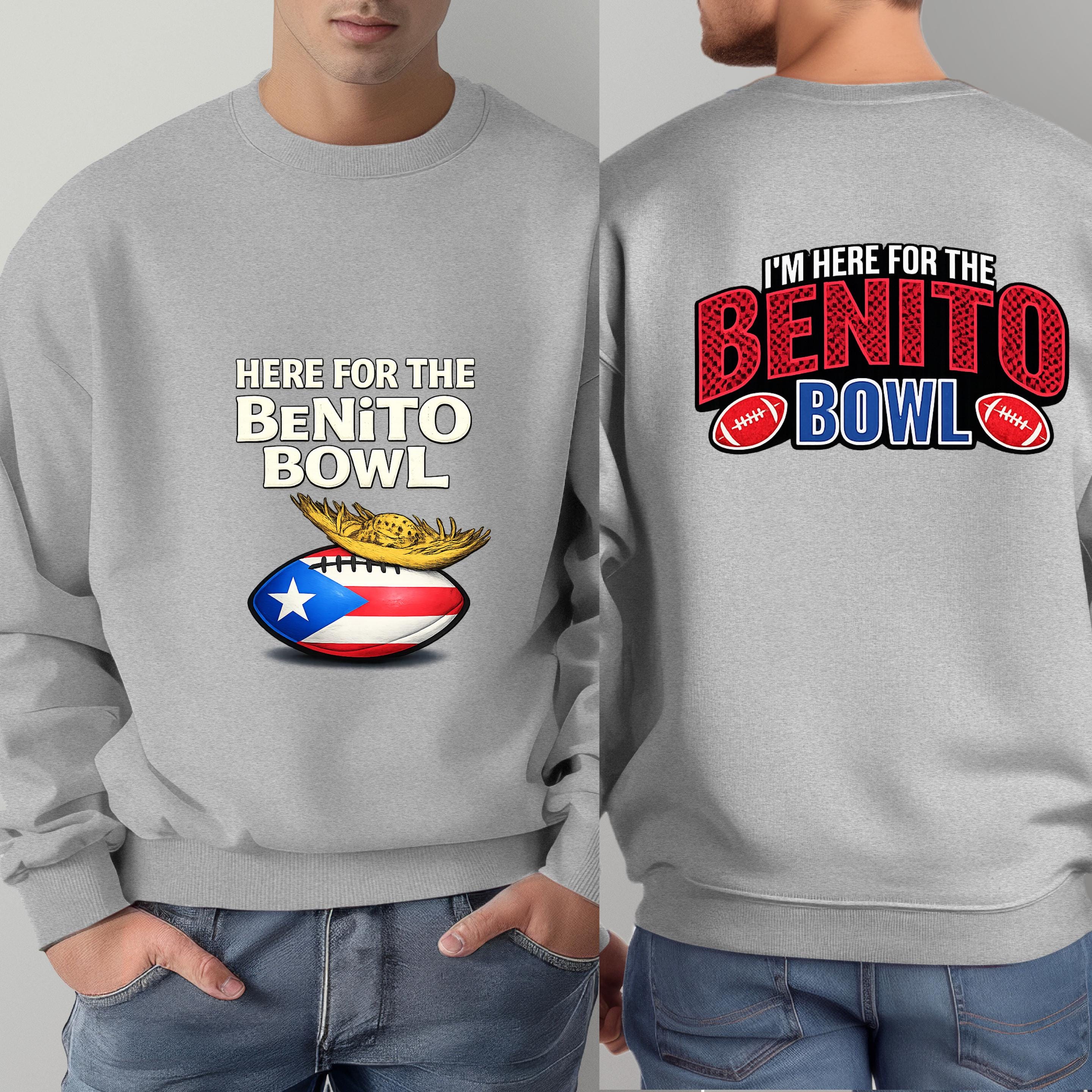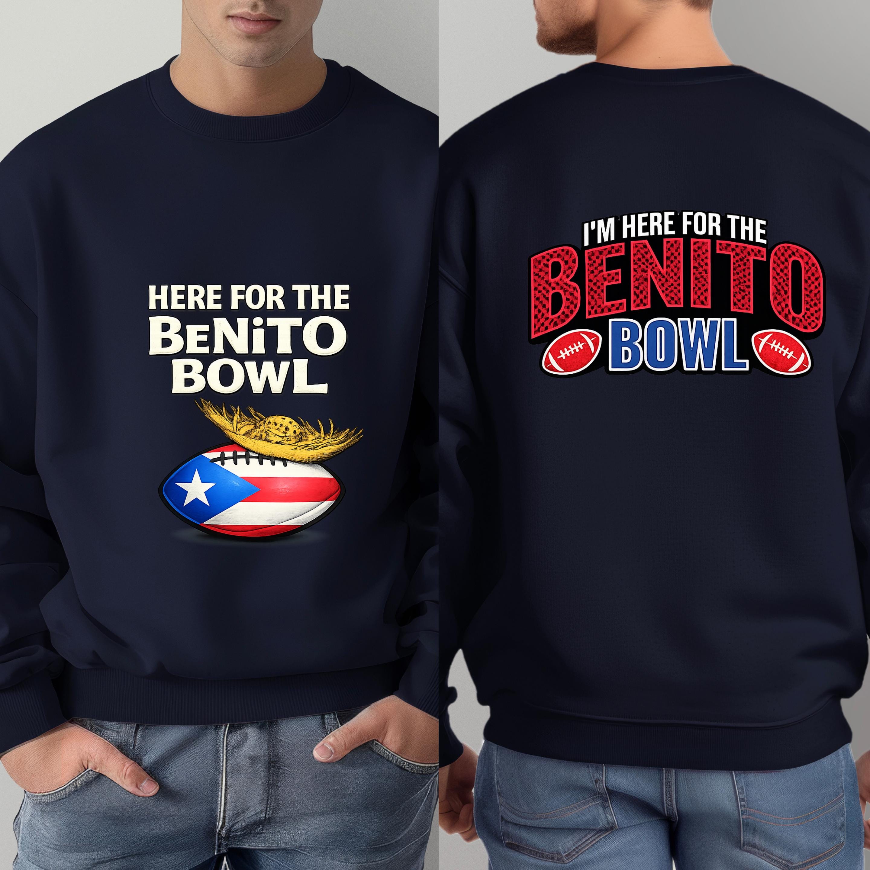 Show up loud, proud, and ready for game day with this Here for the Benito Bowl Sweatshirt, created for true football fans with Puerto Rican spirit.