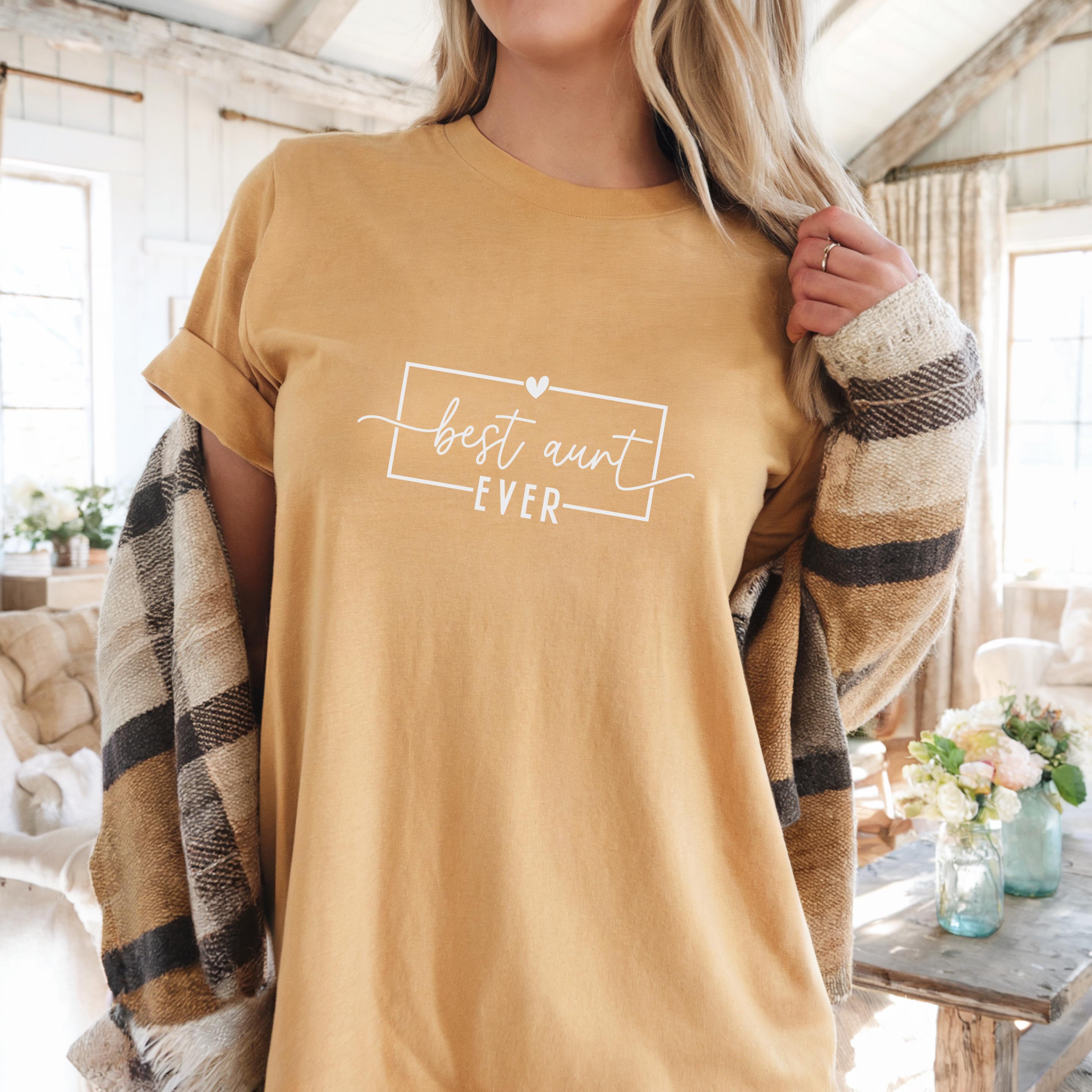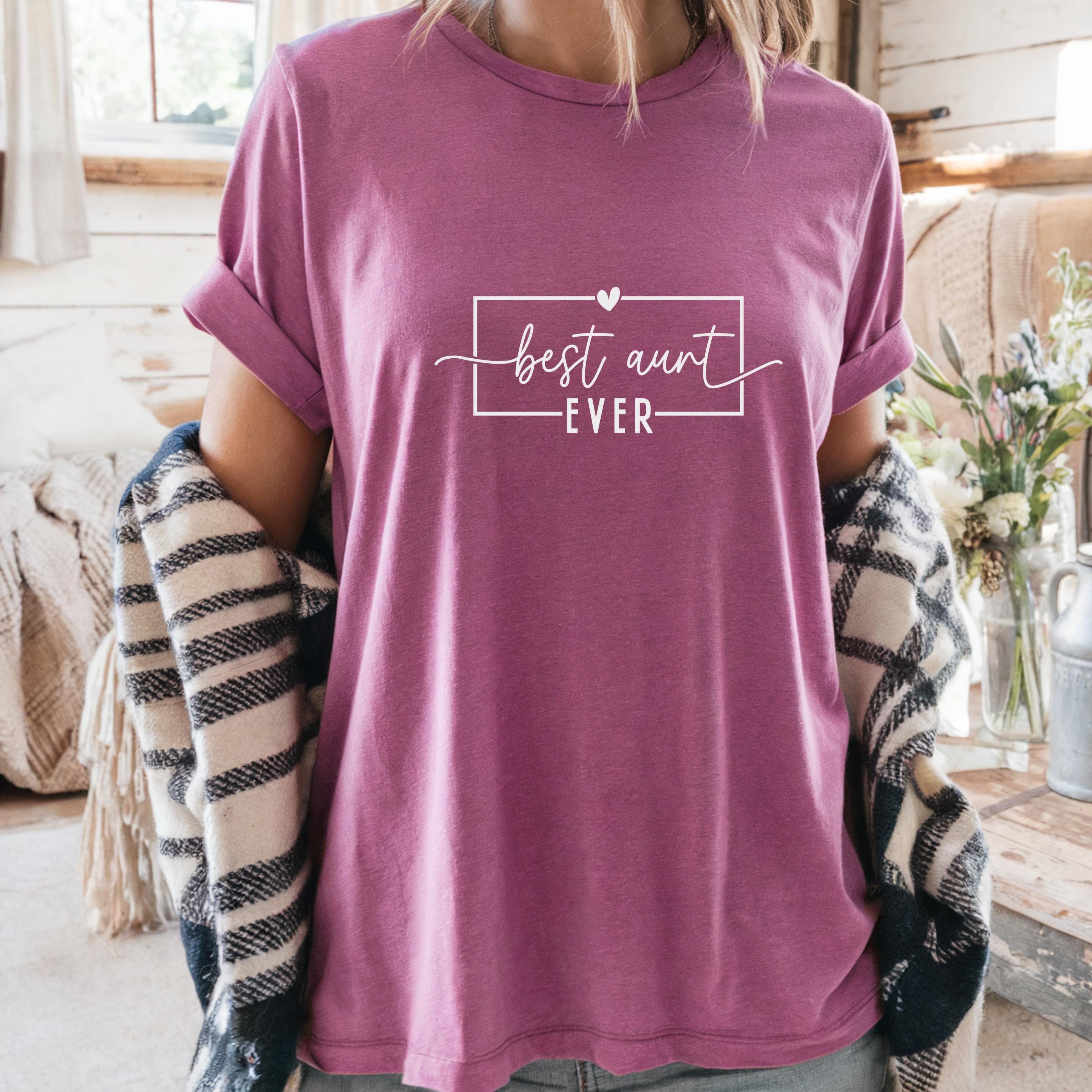 Celebrate the world’s best aunt with this stylish and meaningful Best Aunt Ever design! Perfect for everyday wear or as a heartfelt gift, this shirt is a sweet way to show appreciation for an amazing aunt.