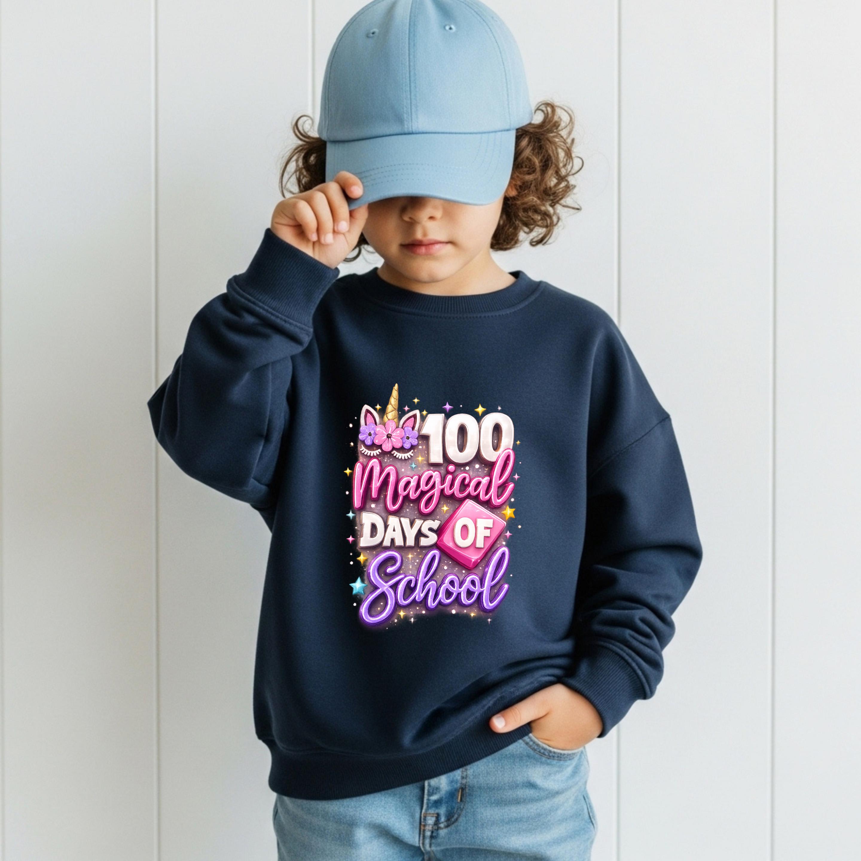 This adorable 100 Magical Days of School design features colorful 3D-style lettering, sparkling stars, and a cute unicorn theme that makes the milestone extra special. Perfect for students, teachers, and classrooms celebrating the big day!