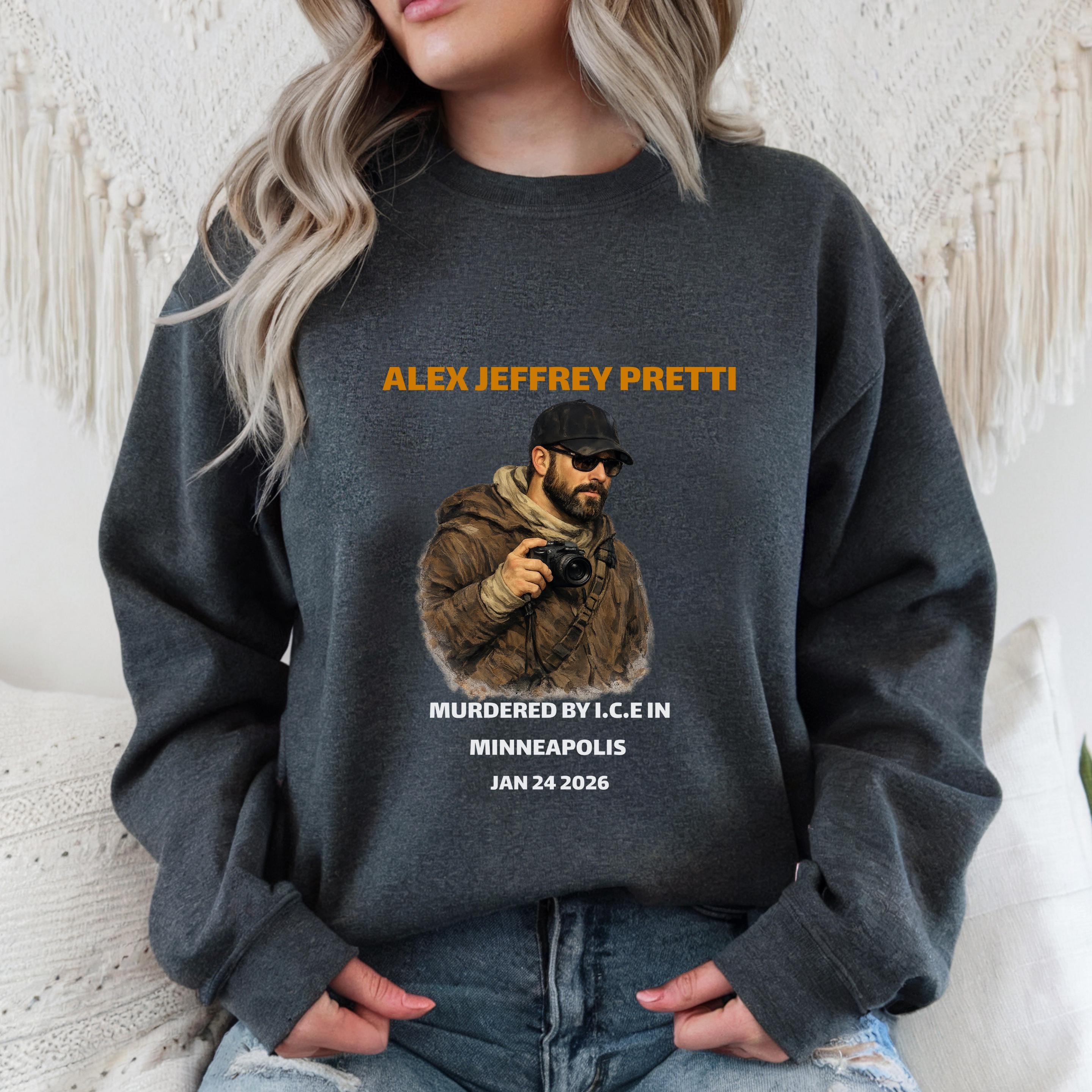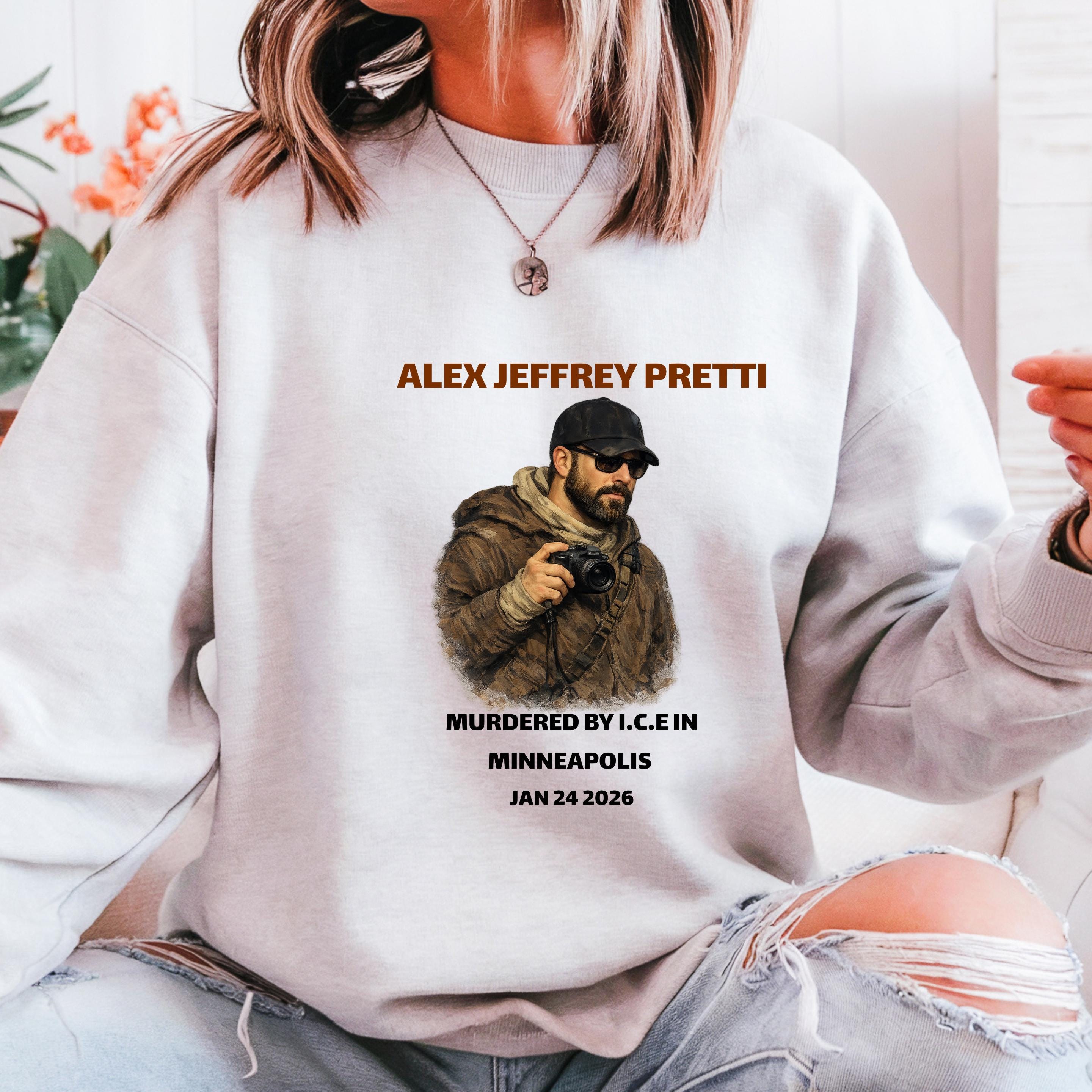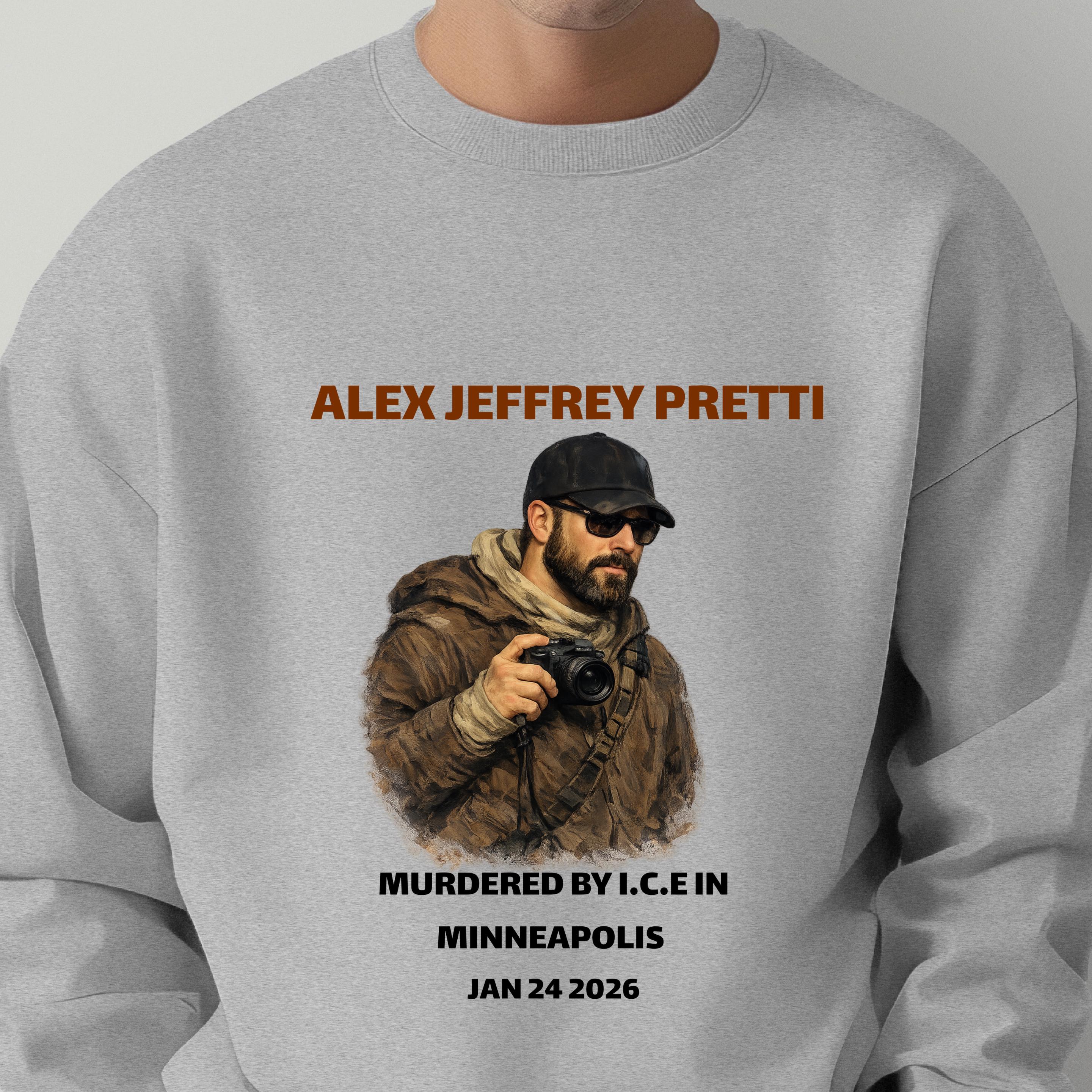 This powerful memorial sweatshirt was created to honor Alex Jeffrey Pretti and to stand against injustice.