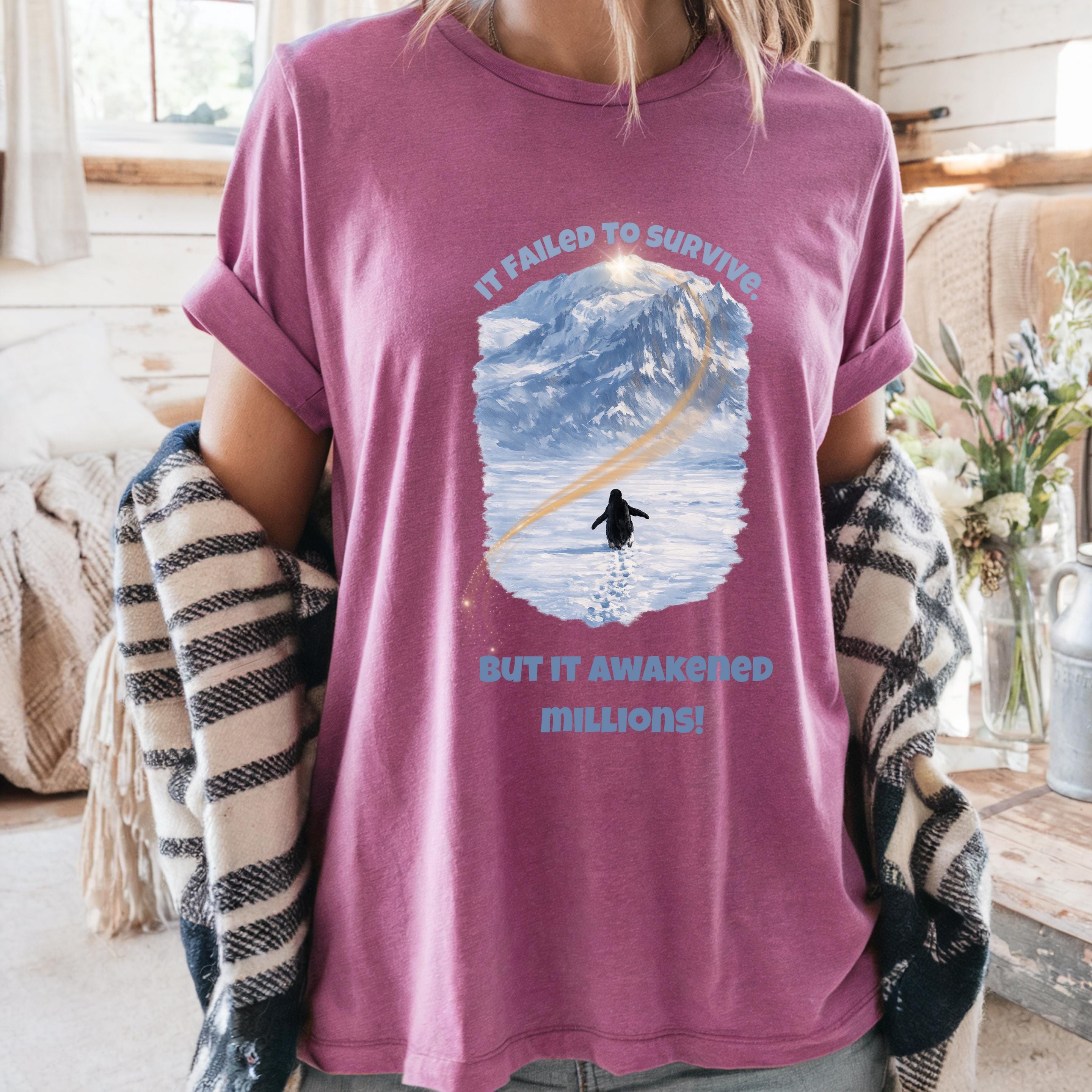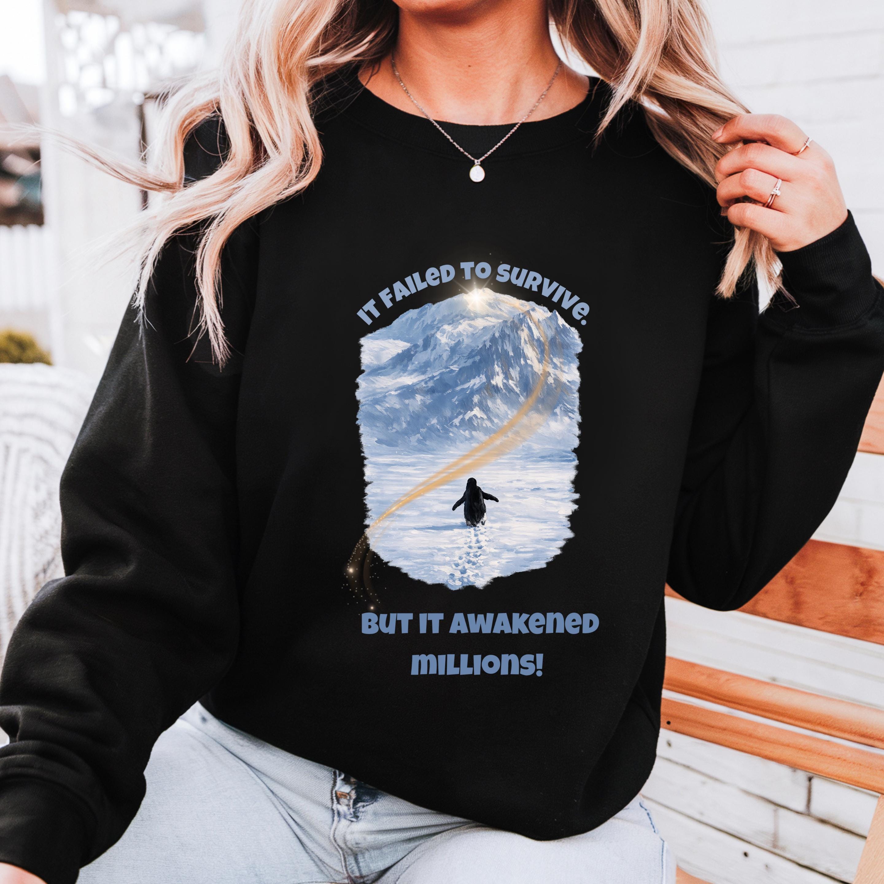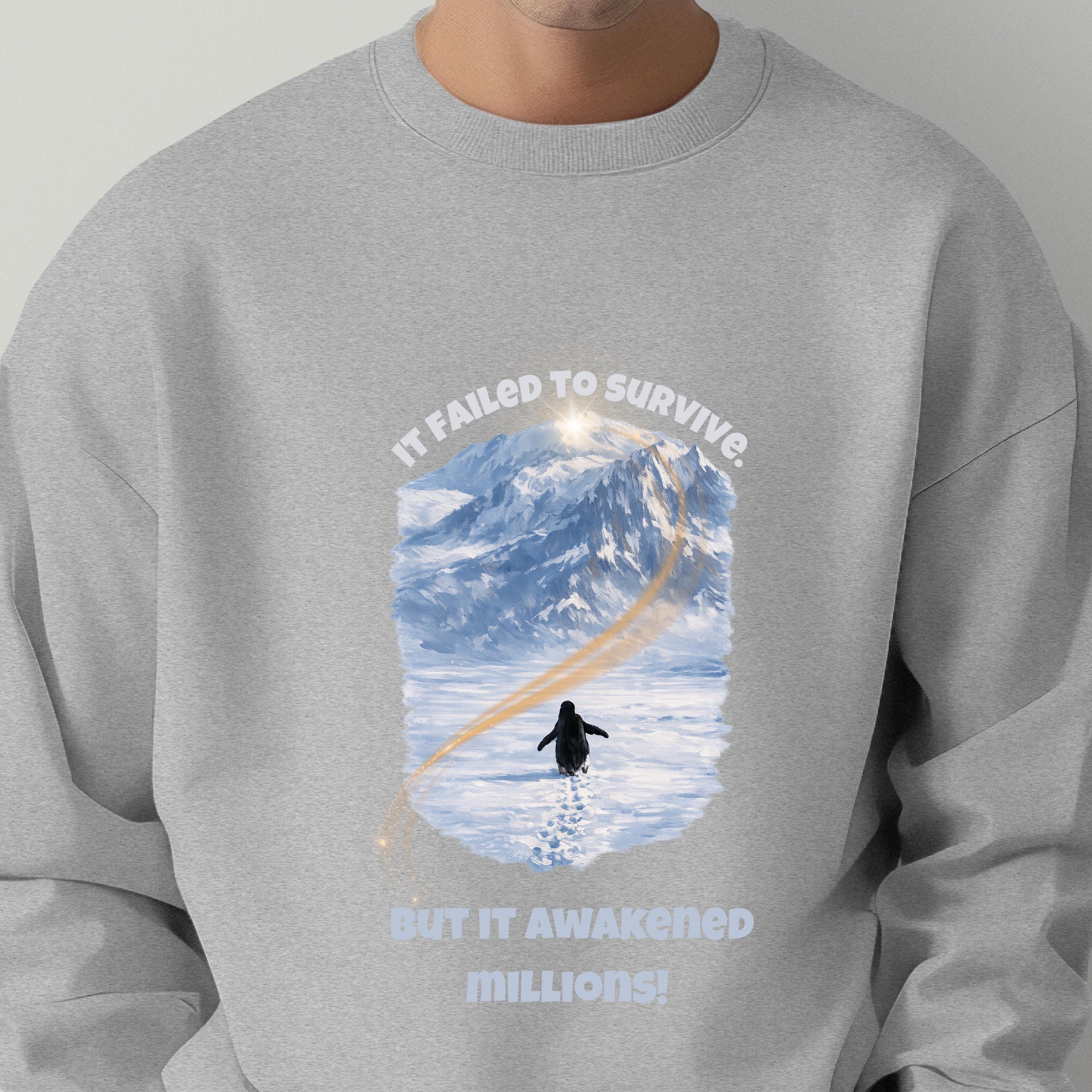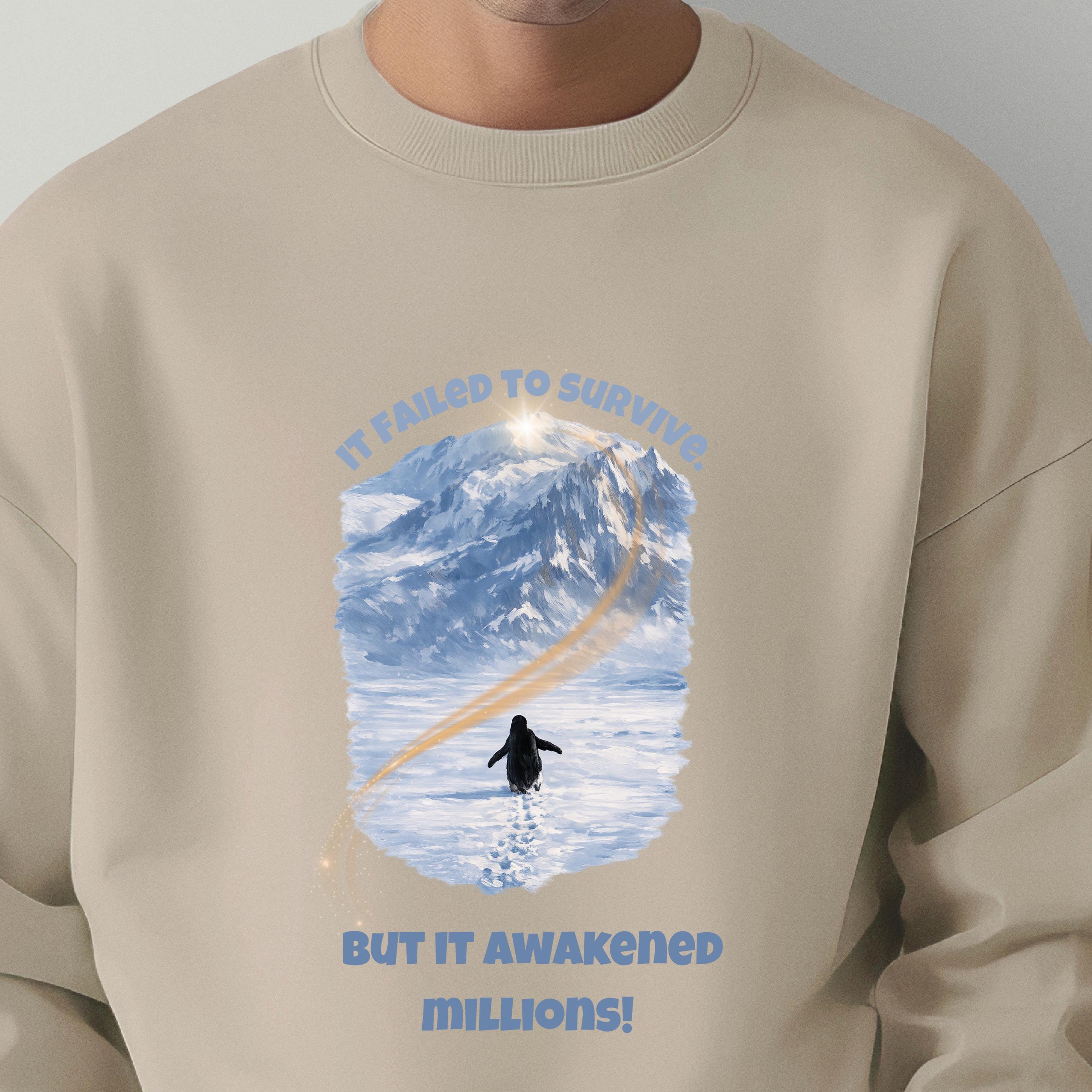 A lone penguin walking toward an impossible mountain. No crowd. No guidance. No guarantee of survival.
