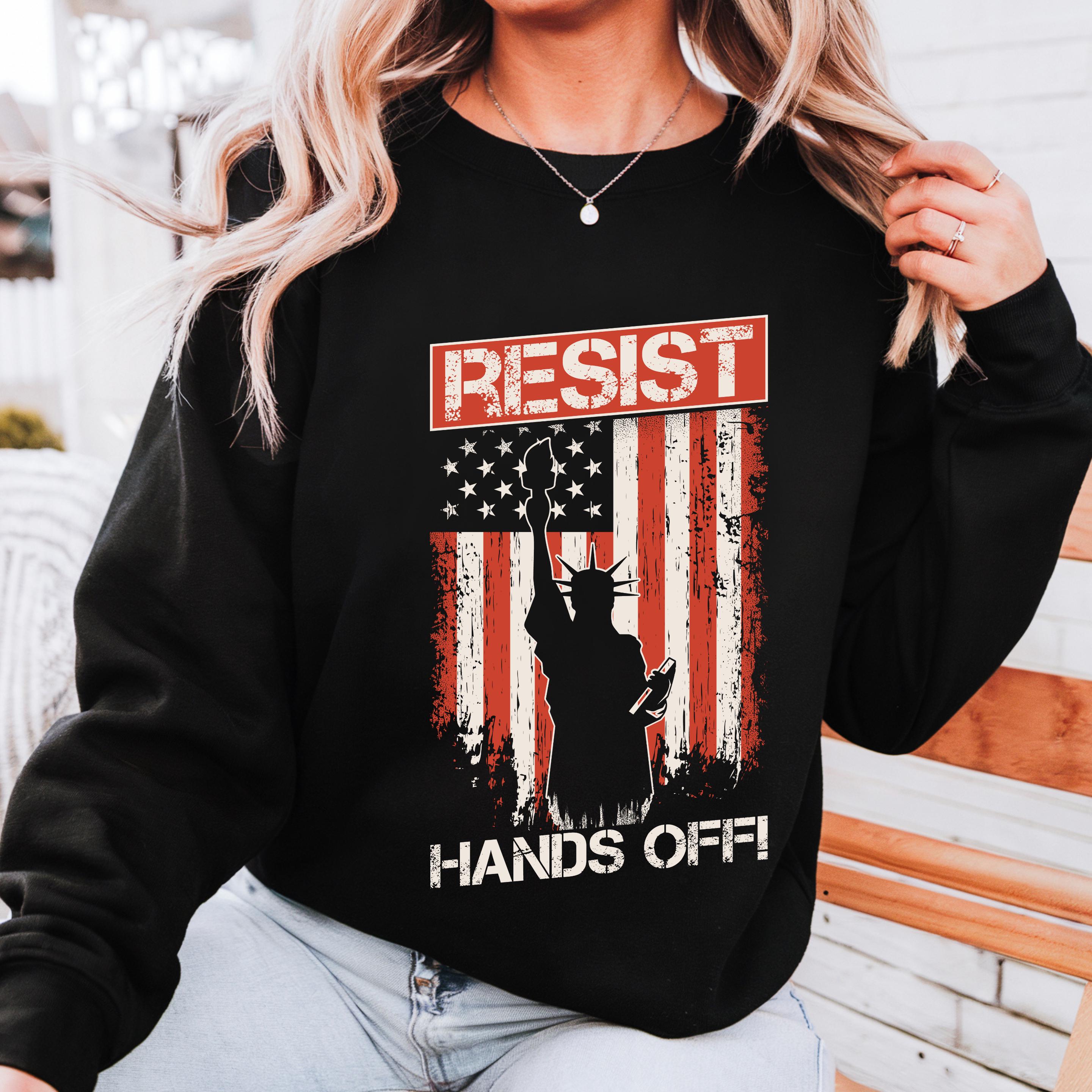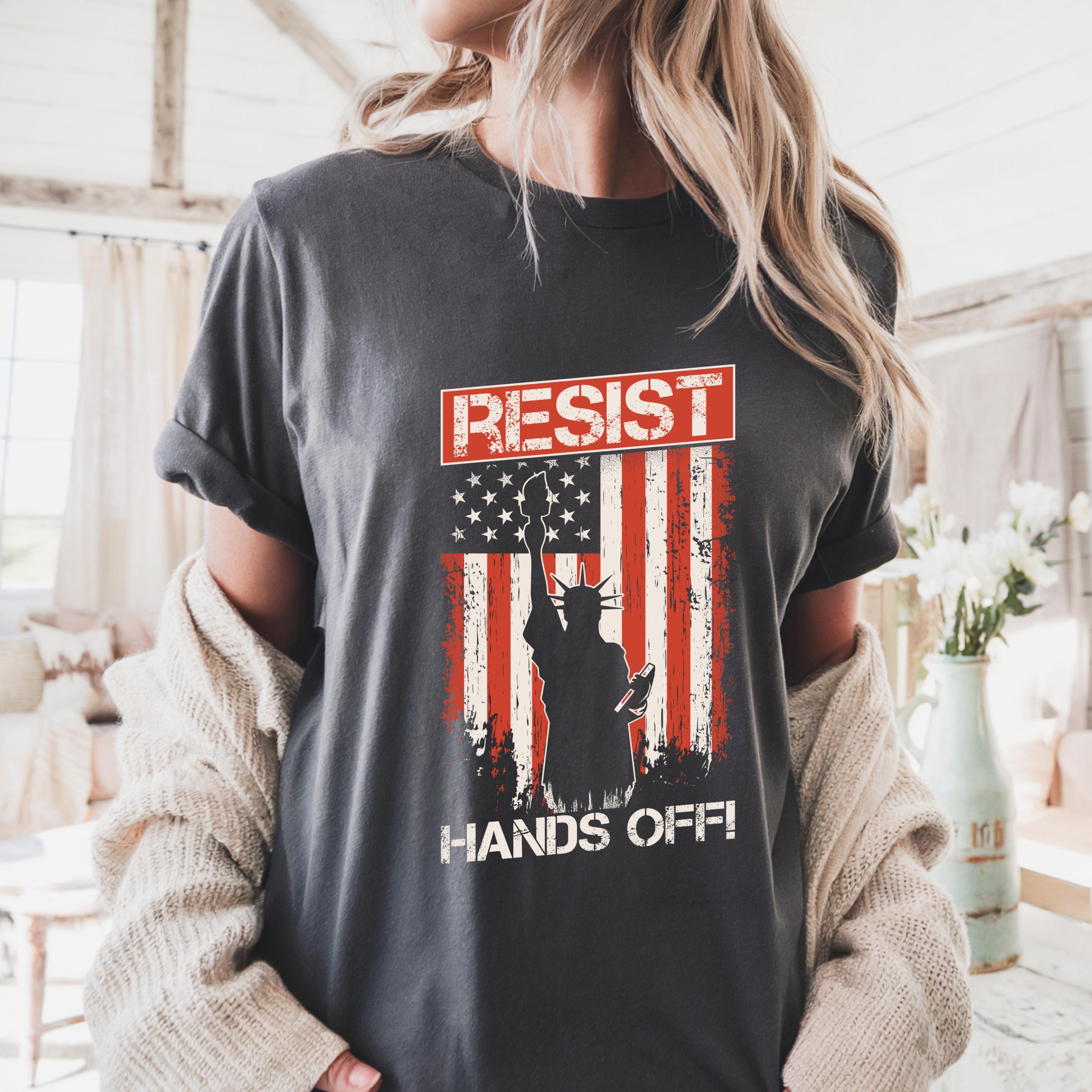 Make your voice visible. This powerful “Resist – Hands Off” design is a bold statement against oppression, control, and silence.