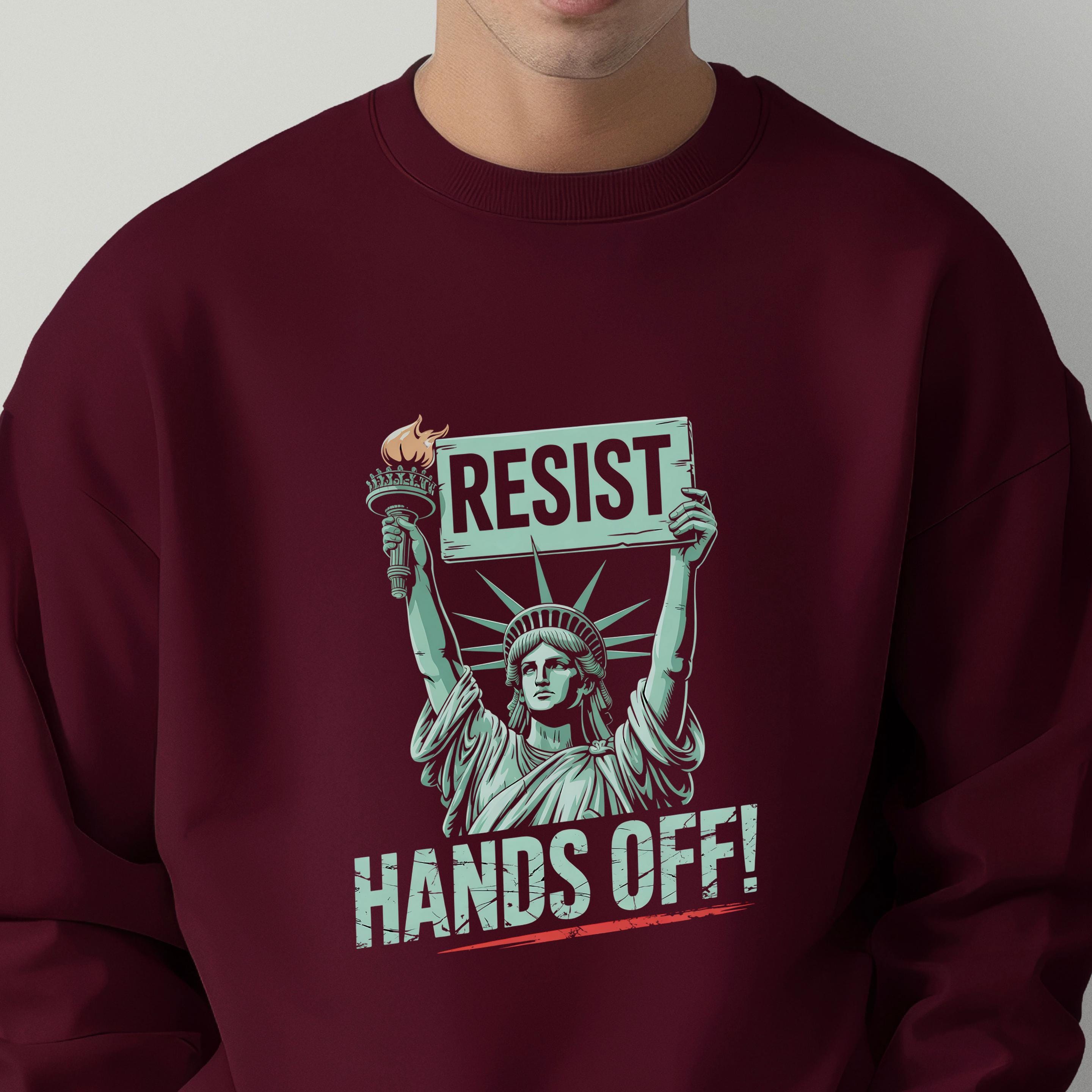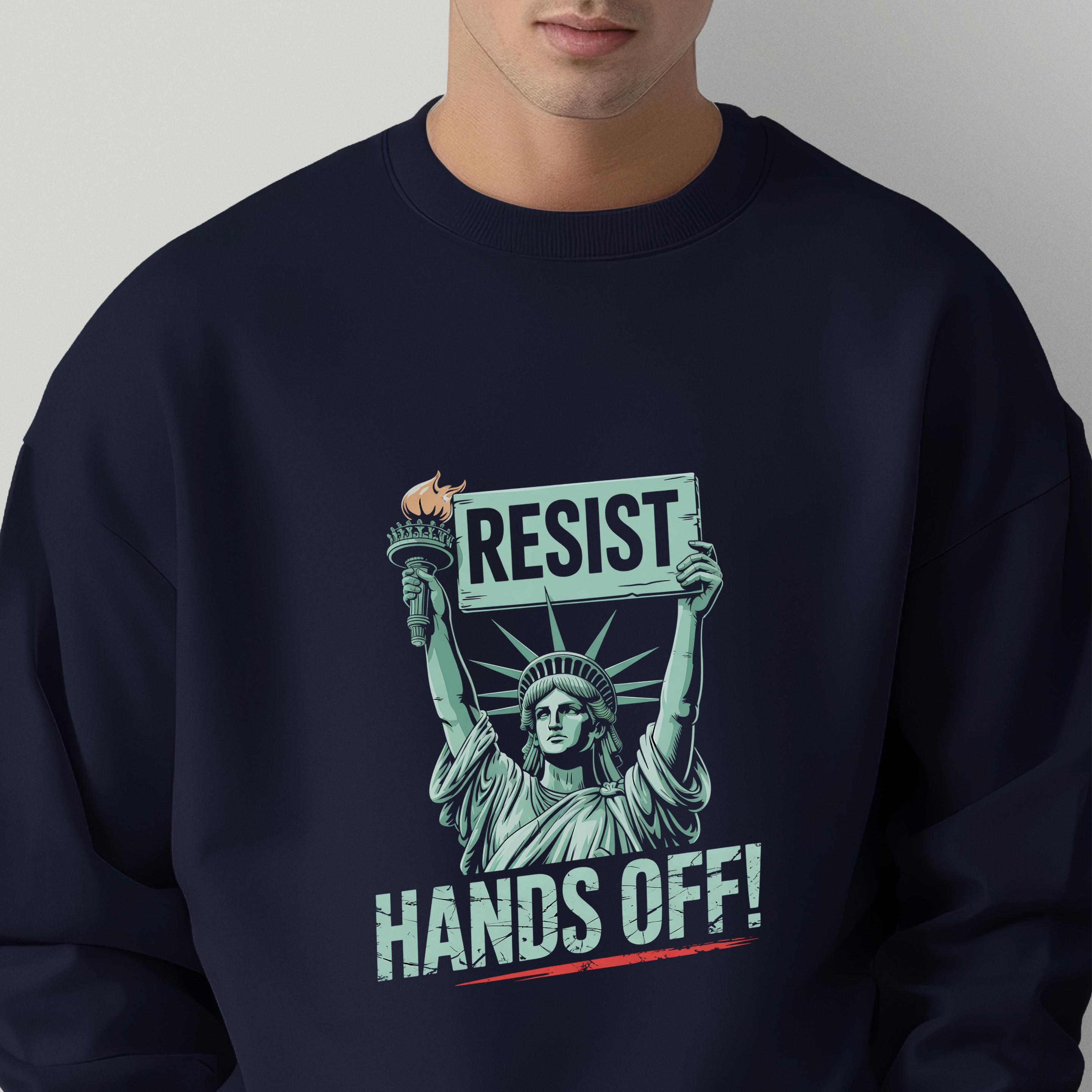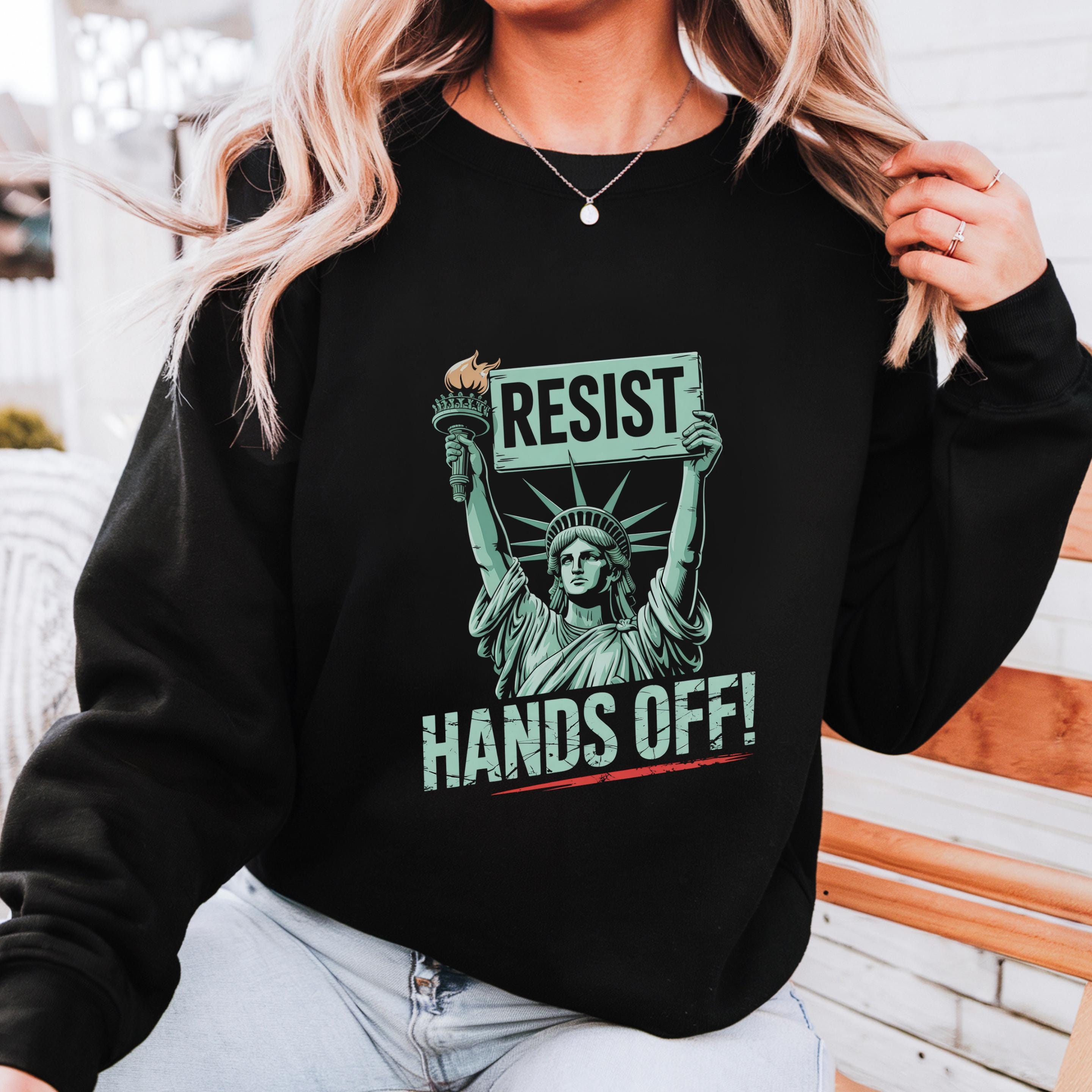 The phrase “Hands Off!” delivers a clear warning against control, oppression, and the erosion of personal freedoms.
