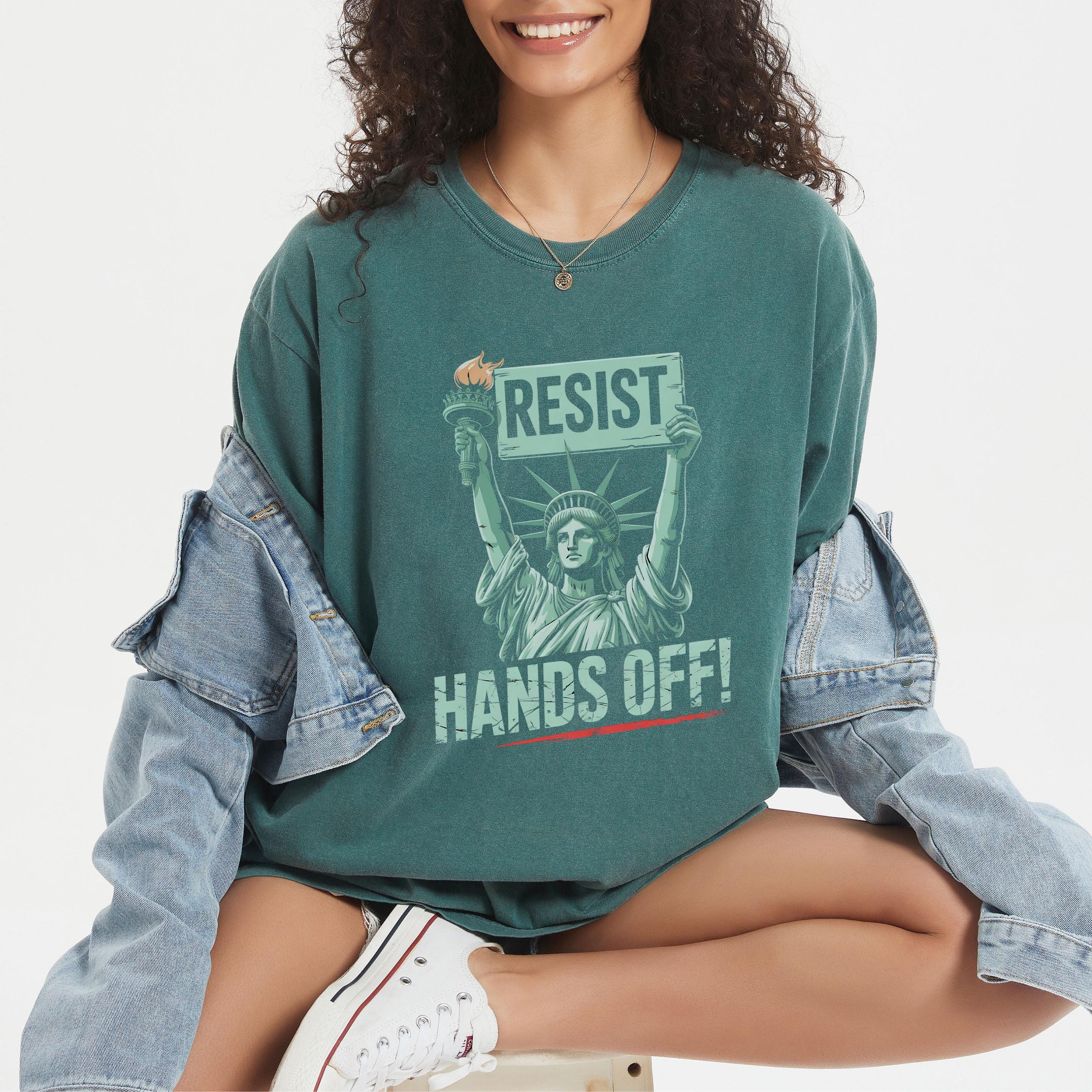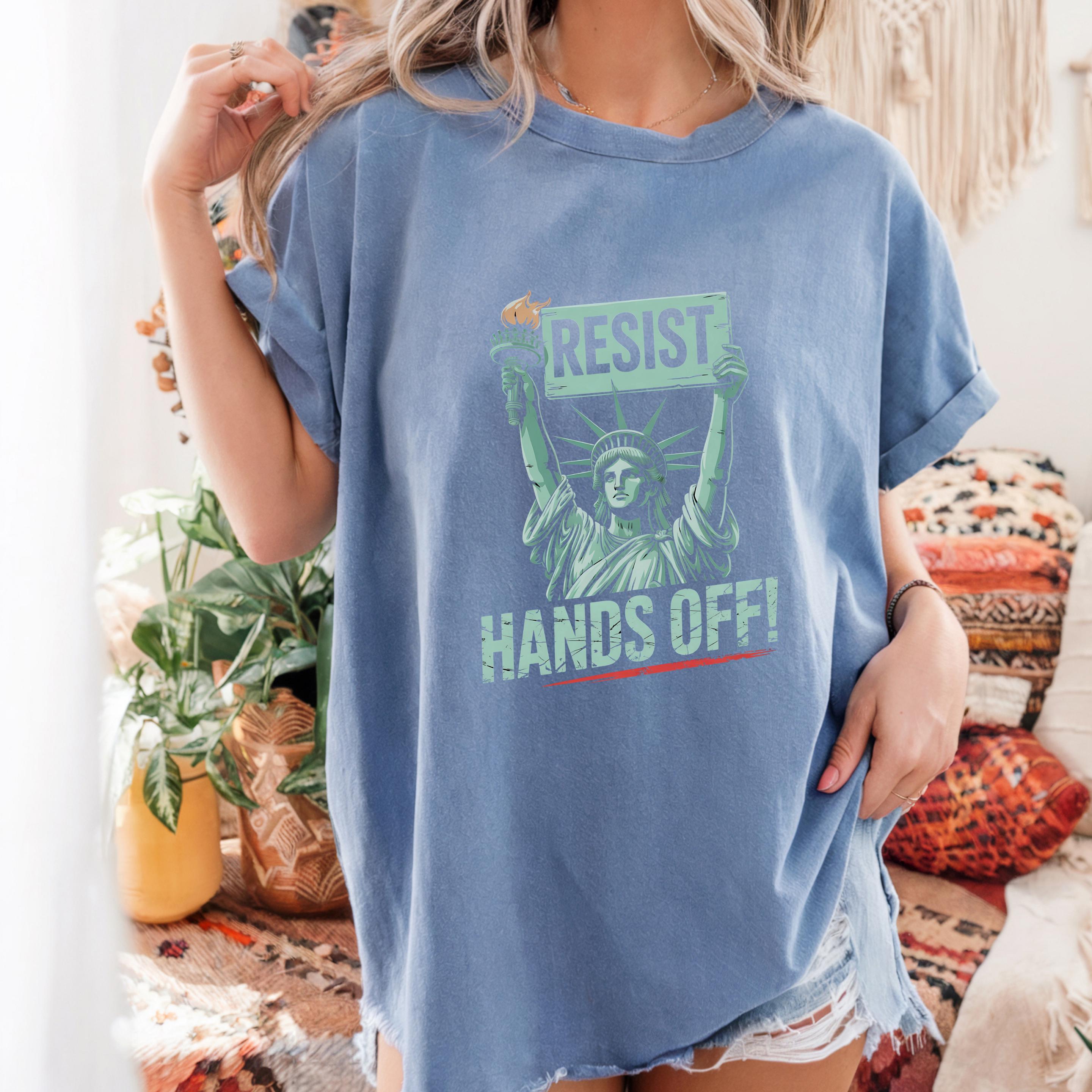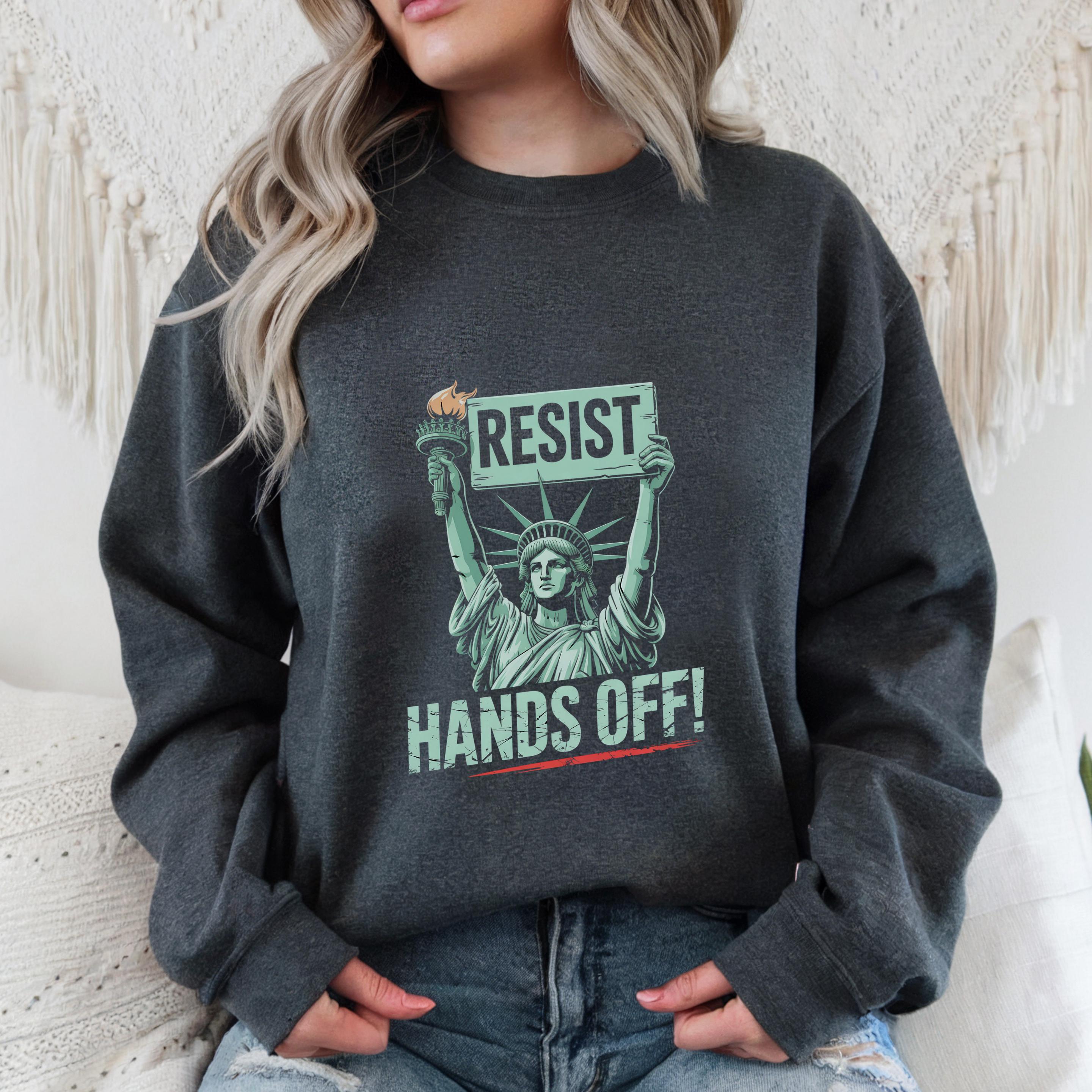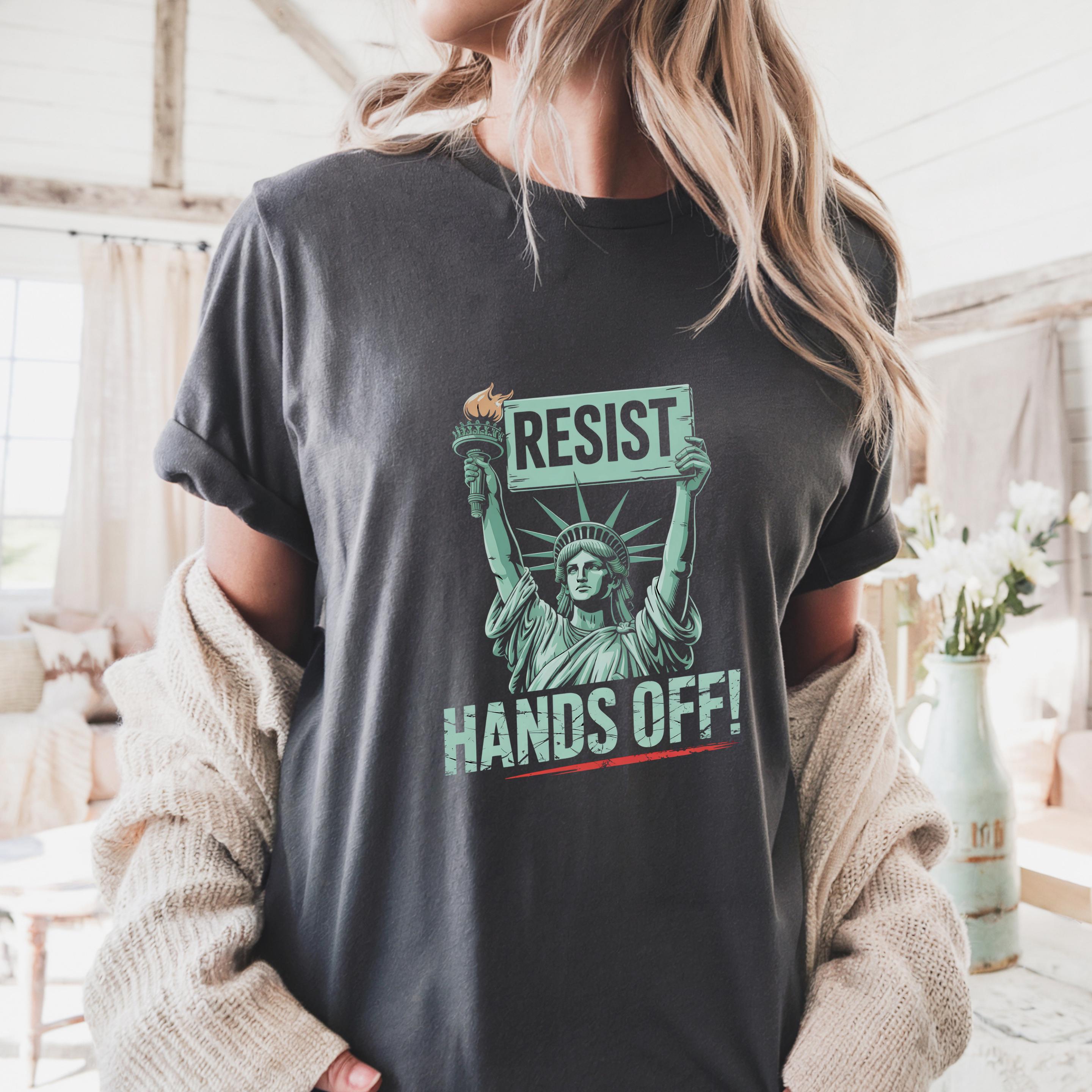 The phrase “Hands Off!” delivers a clear warning against control, oppression, and the erosion of personal freedoms.