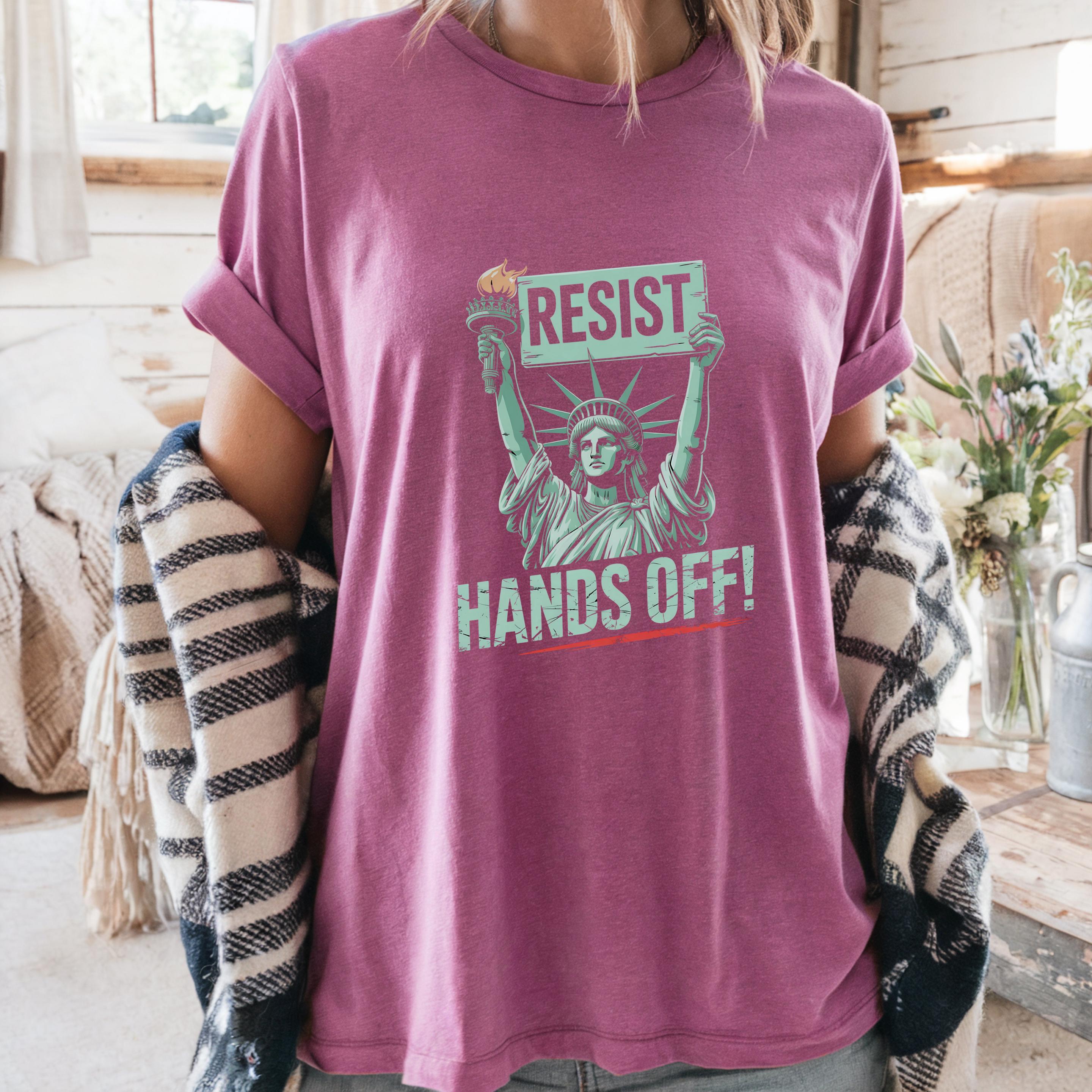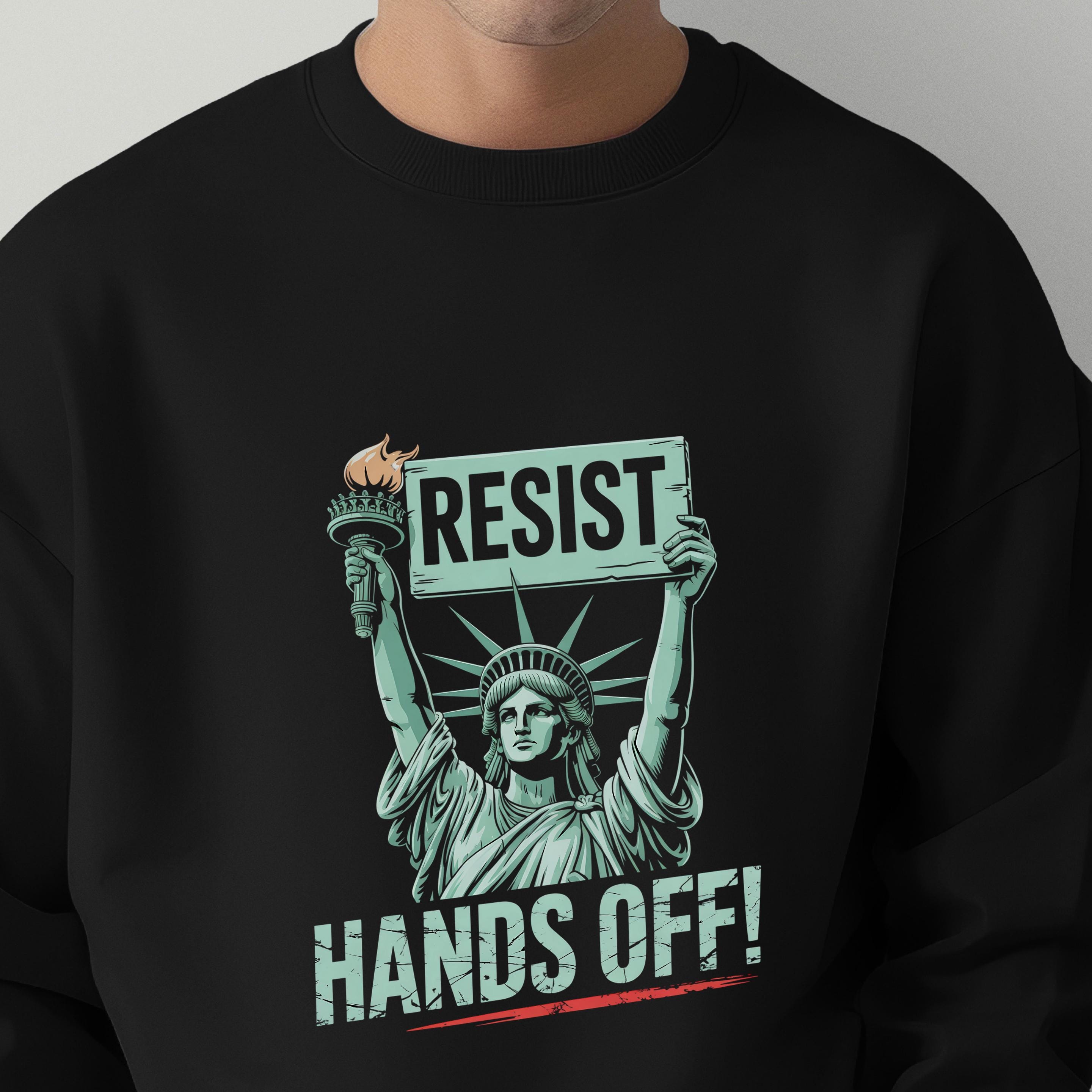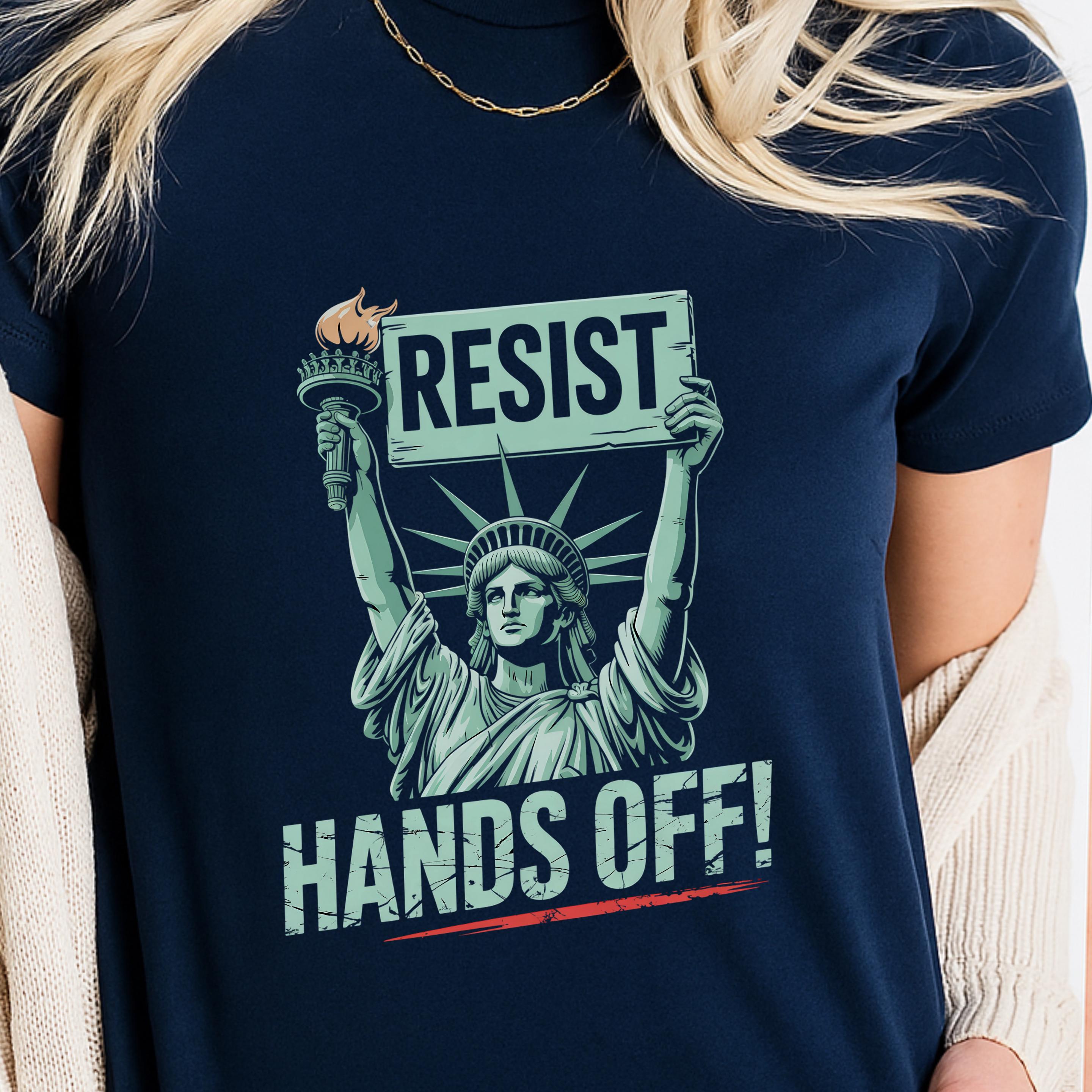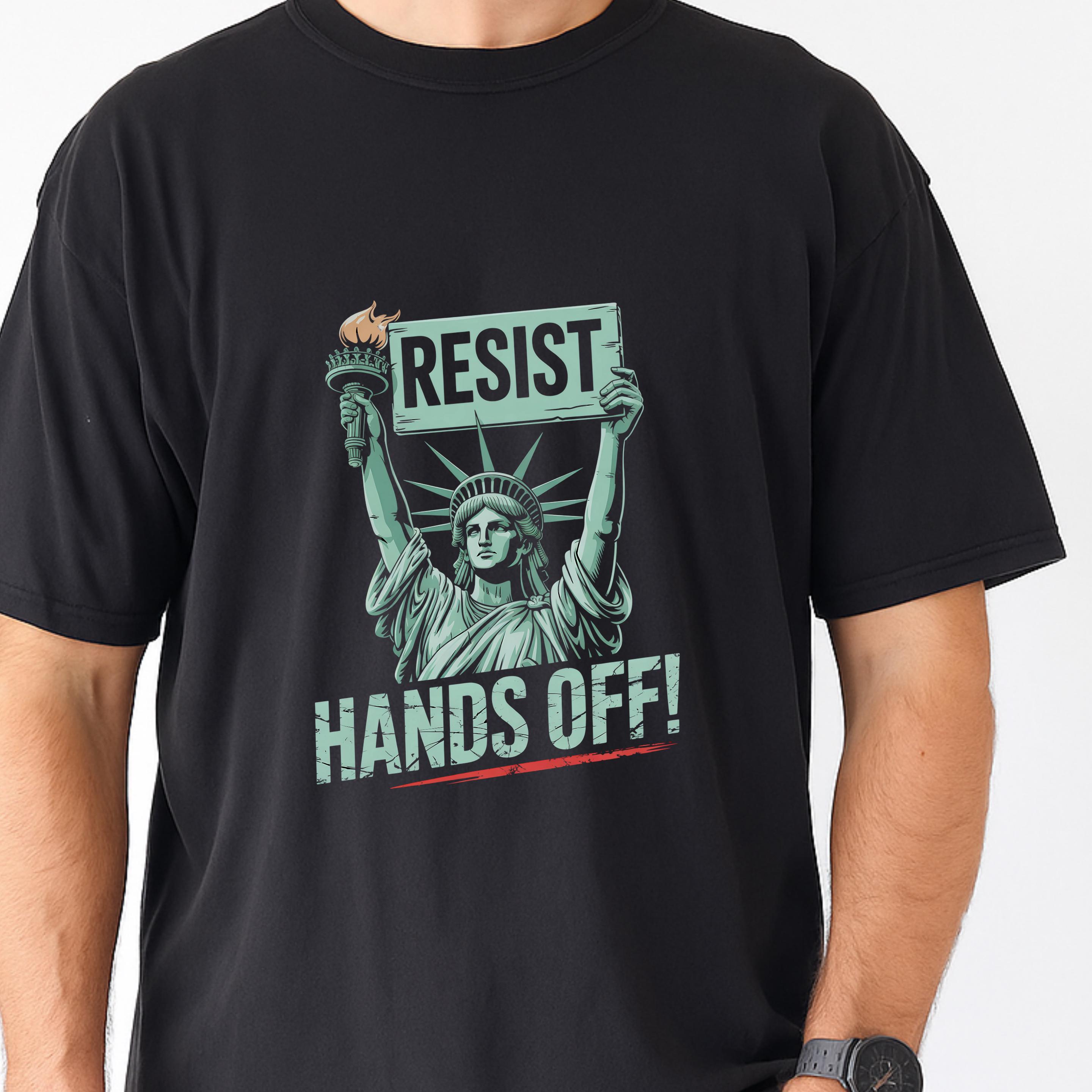 This design reimagines the Statue of Liberty not as a monument, but as a living voice of protest. With her arms raised and the word RESIST held high, this artwork represents the moment when silence ends and action begins.