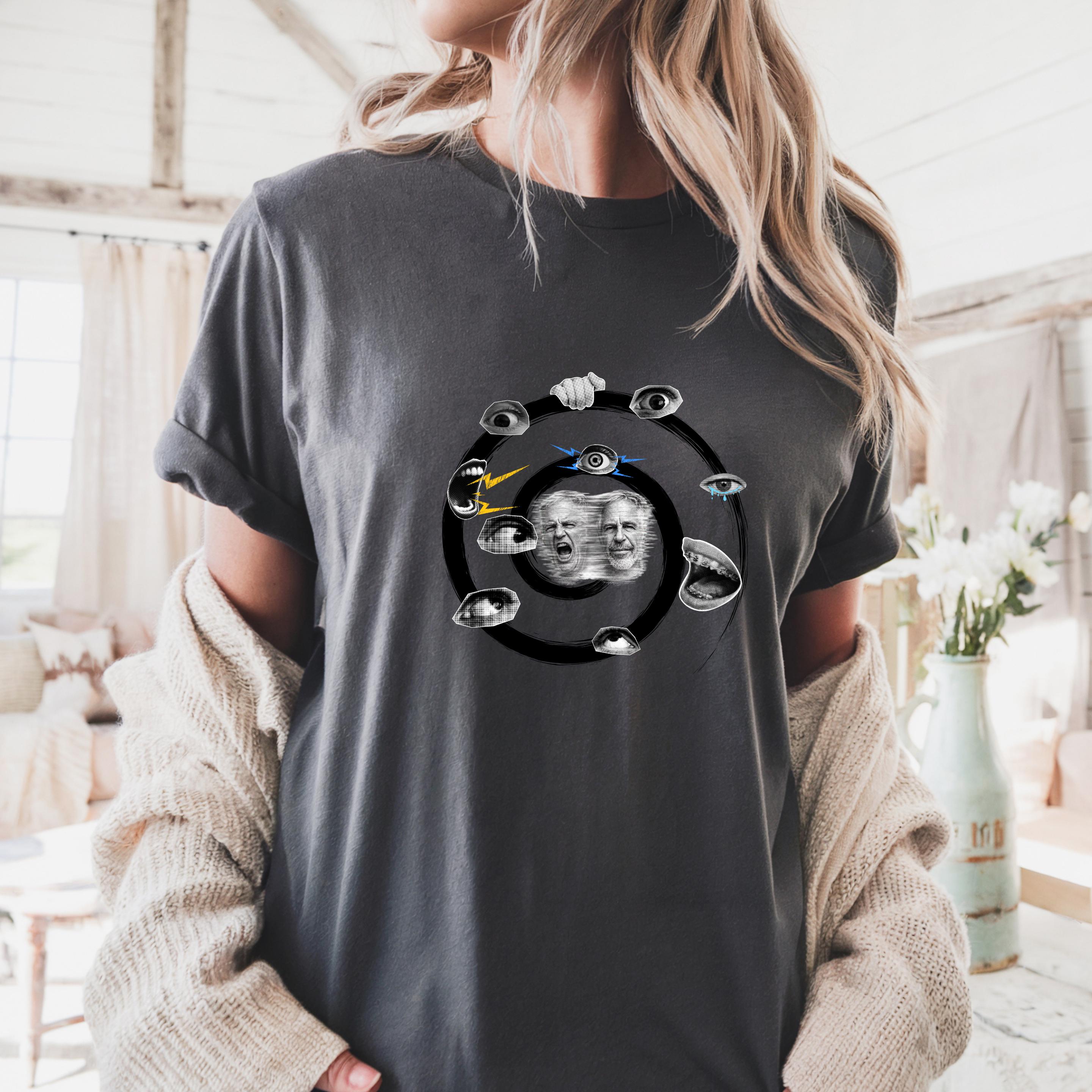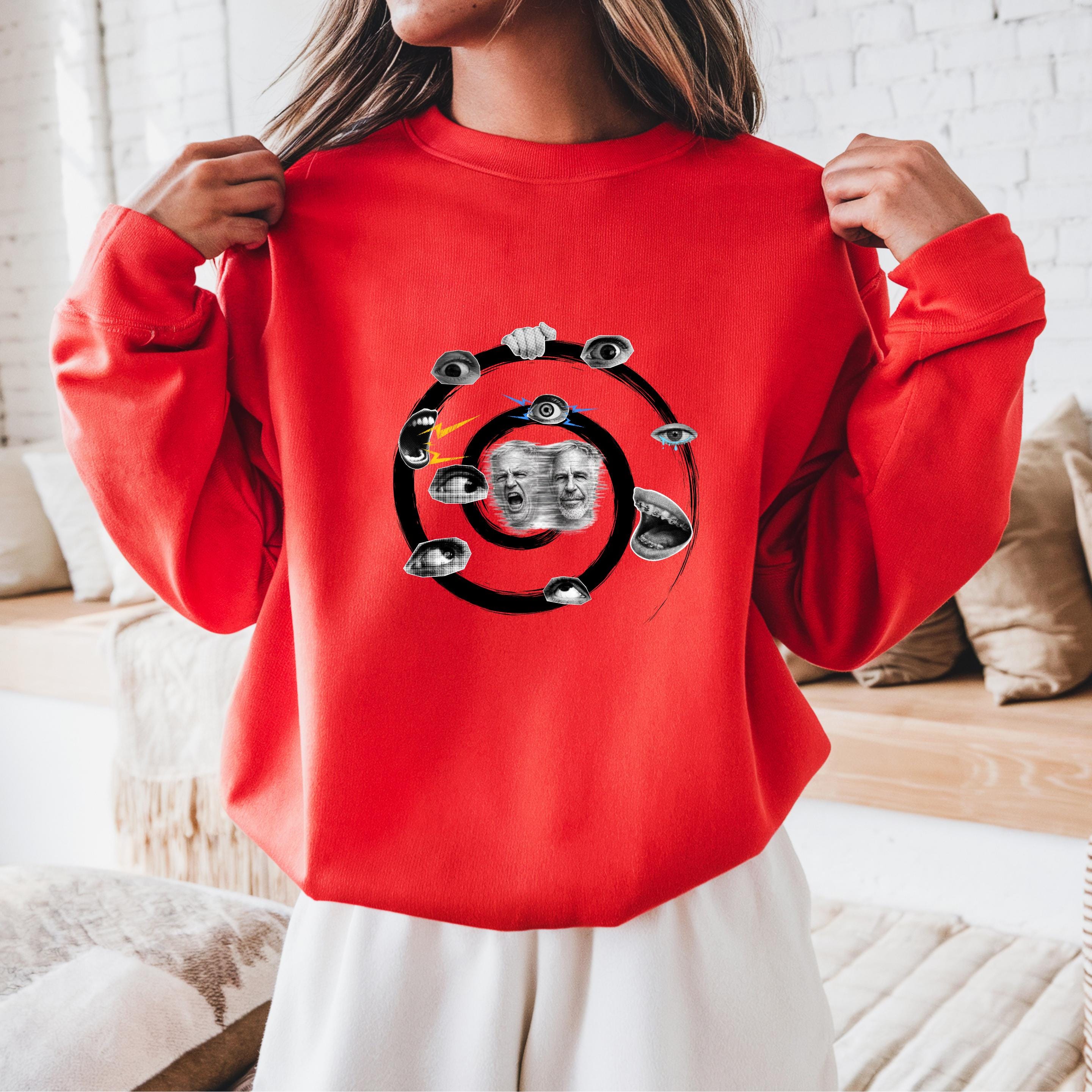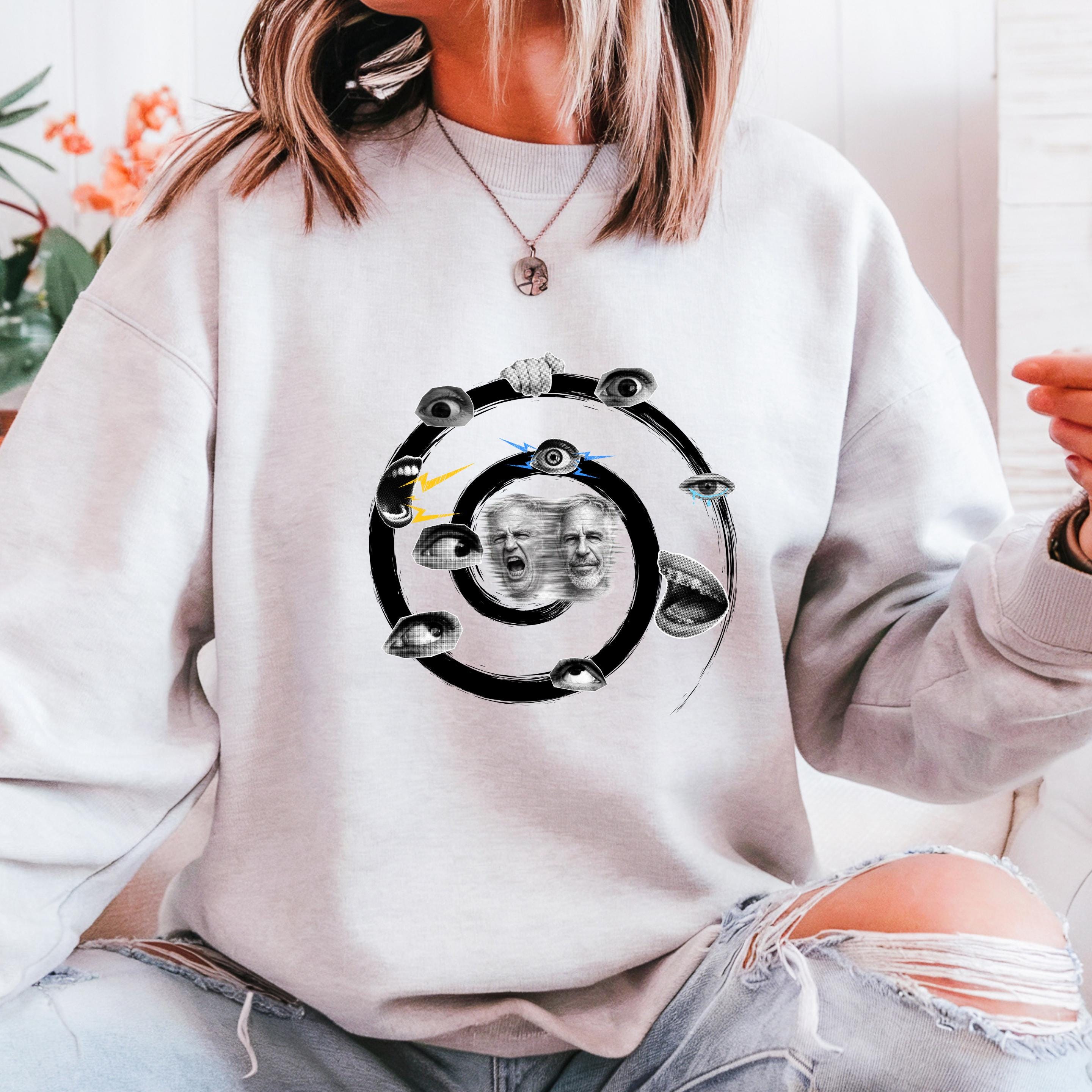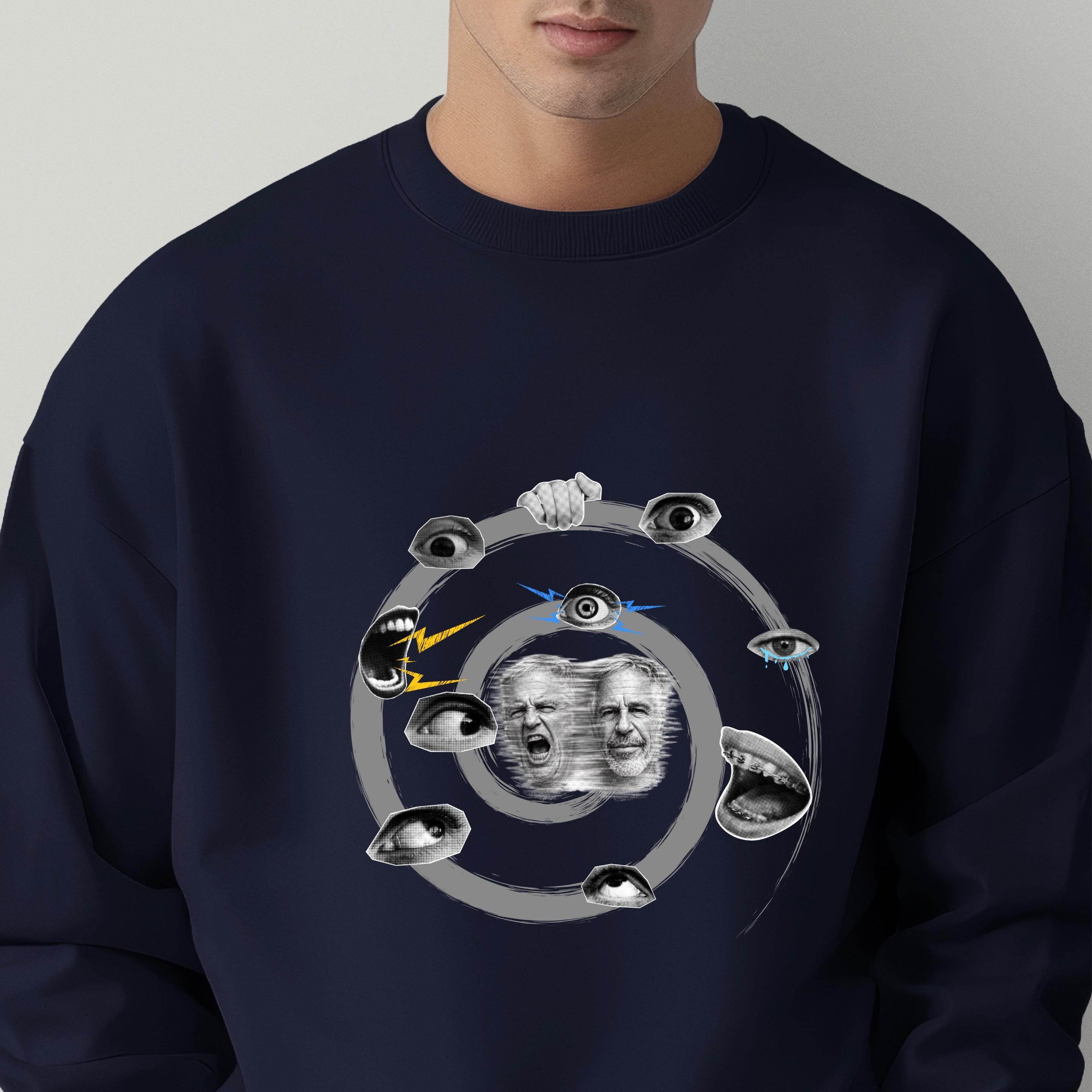 This design is a stark visual reckoning with power, silence, and the voices that refuse to disappear. The figure at the center is not the watcher, but the watched — surrounded by the eyes of victims, witnesses, and those who dared to speak when others stayed silent.