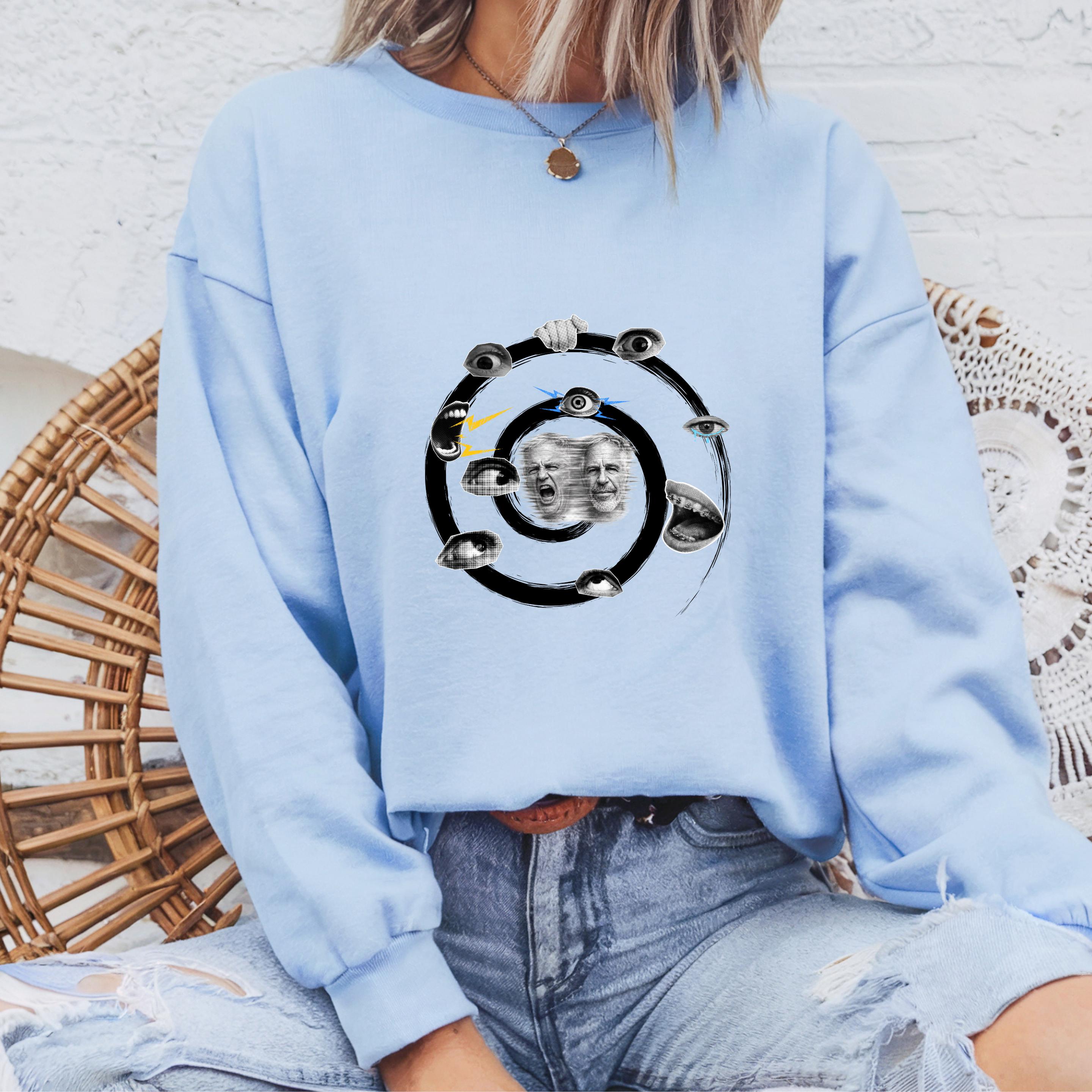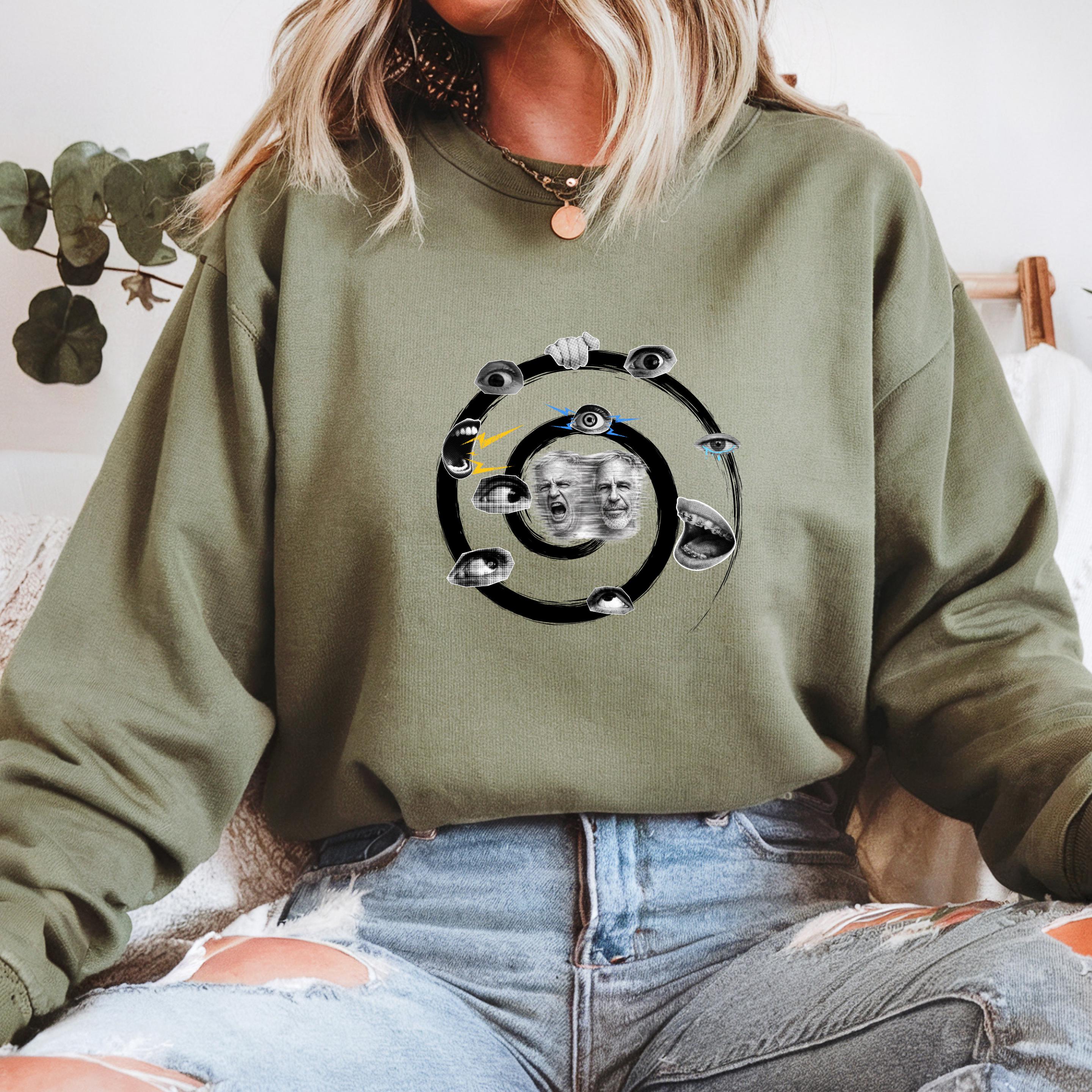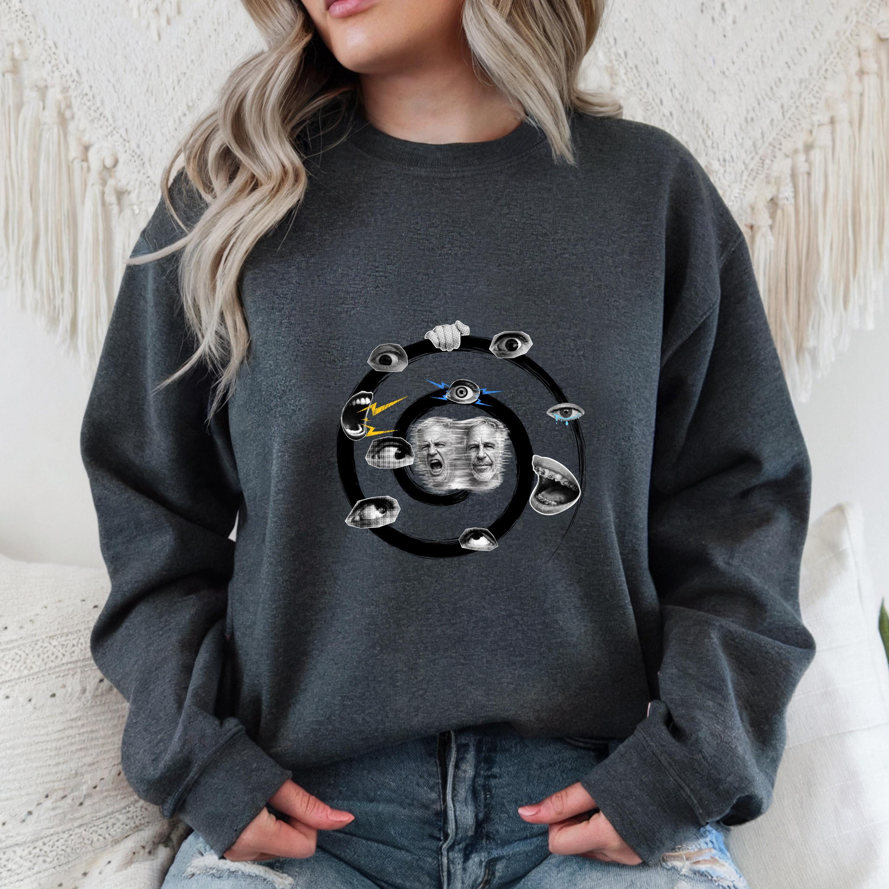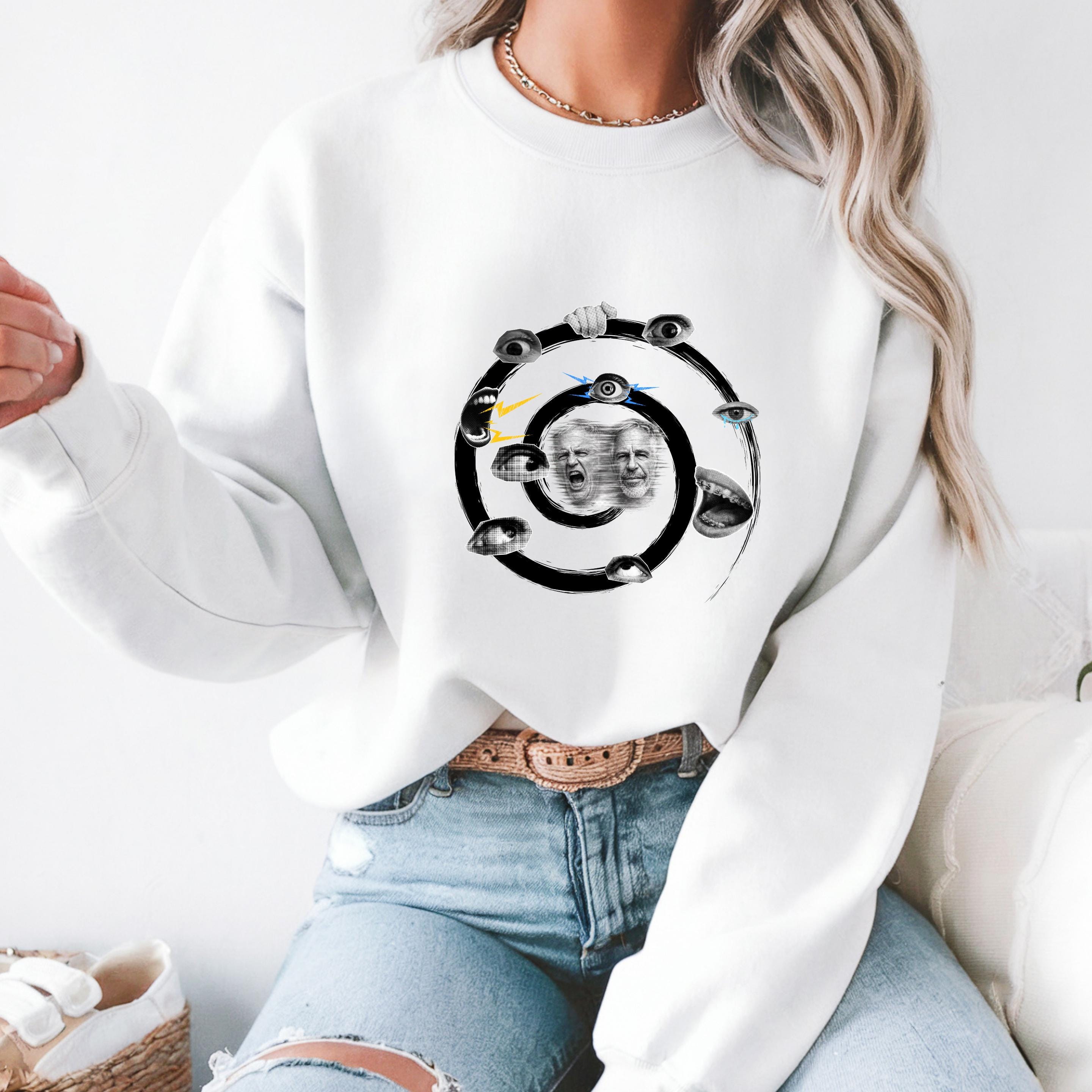This design is a stark visual reckoning with power, silence, and the voices that refuse to disappear. The figure at the center is not the watcher, but the watched — surrounded by the eyes of victims, witnesses, and those who dared to speak when others stayed silent.